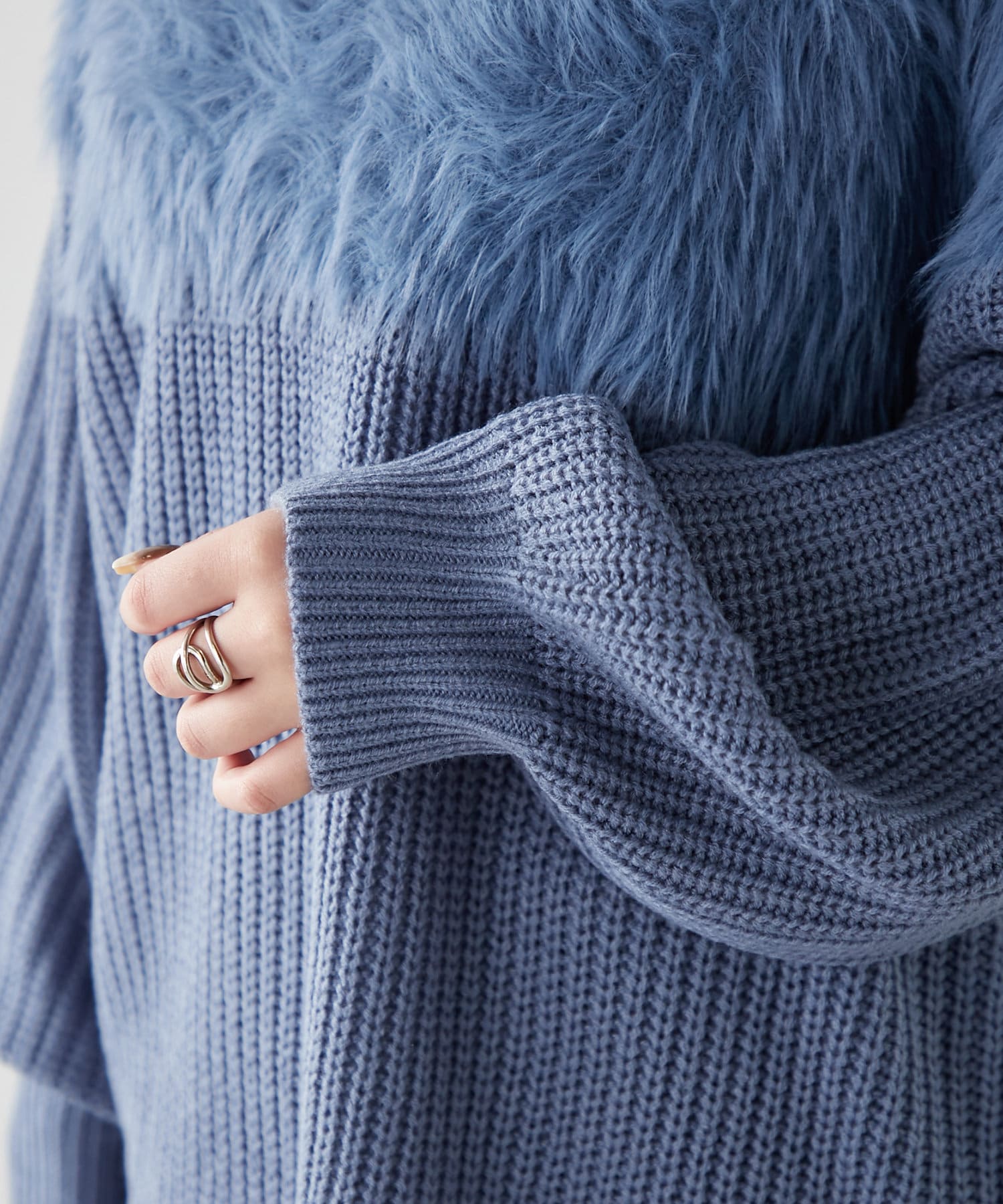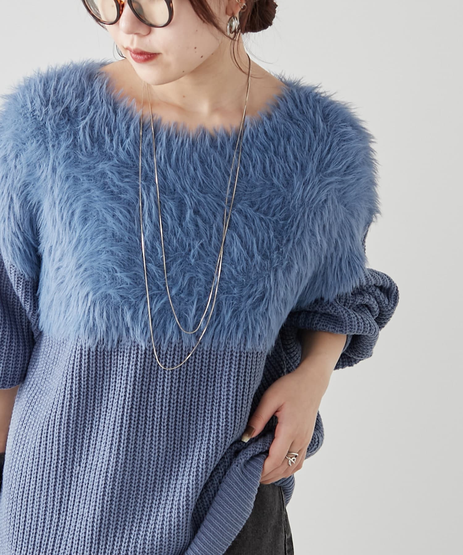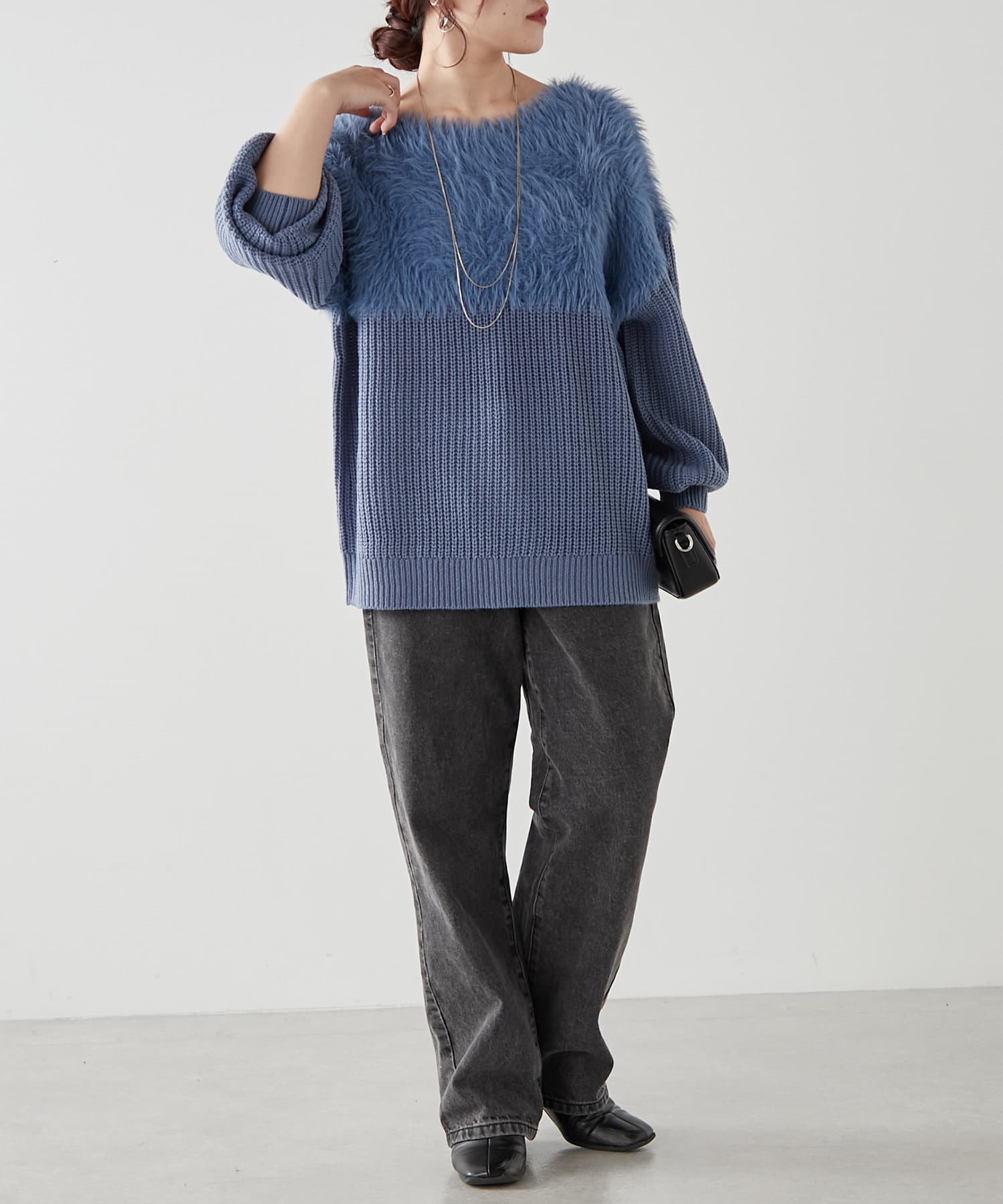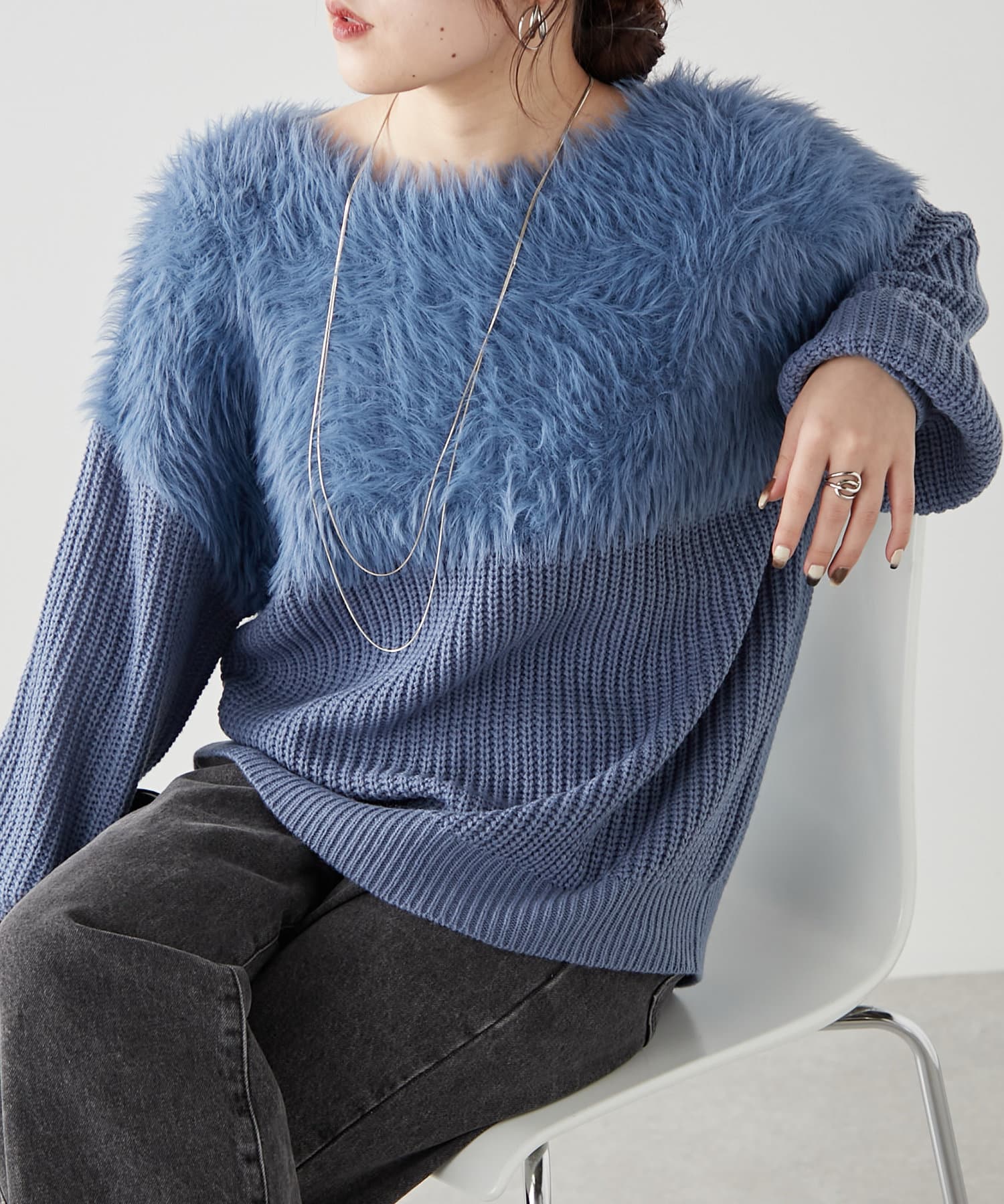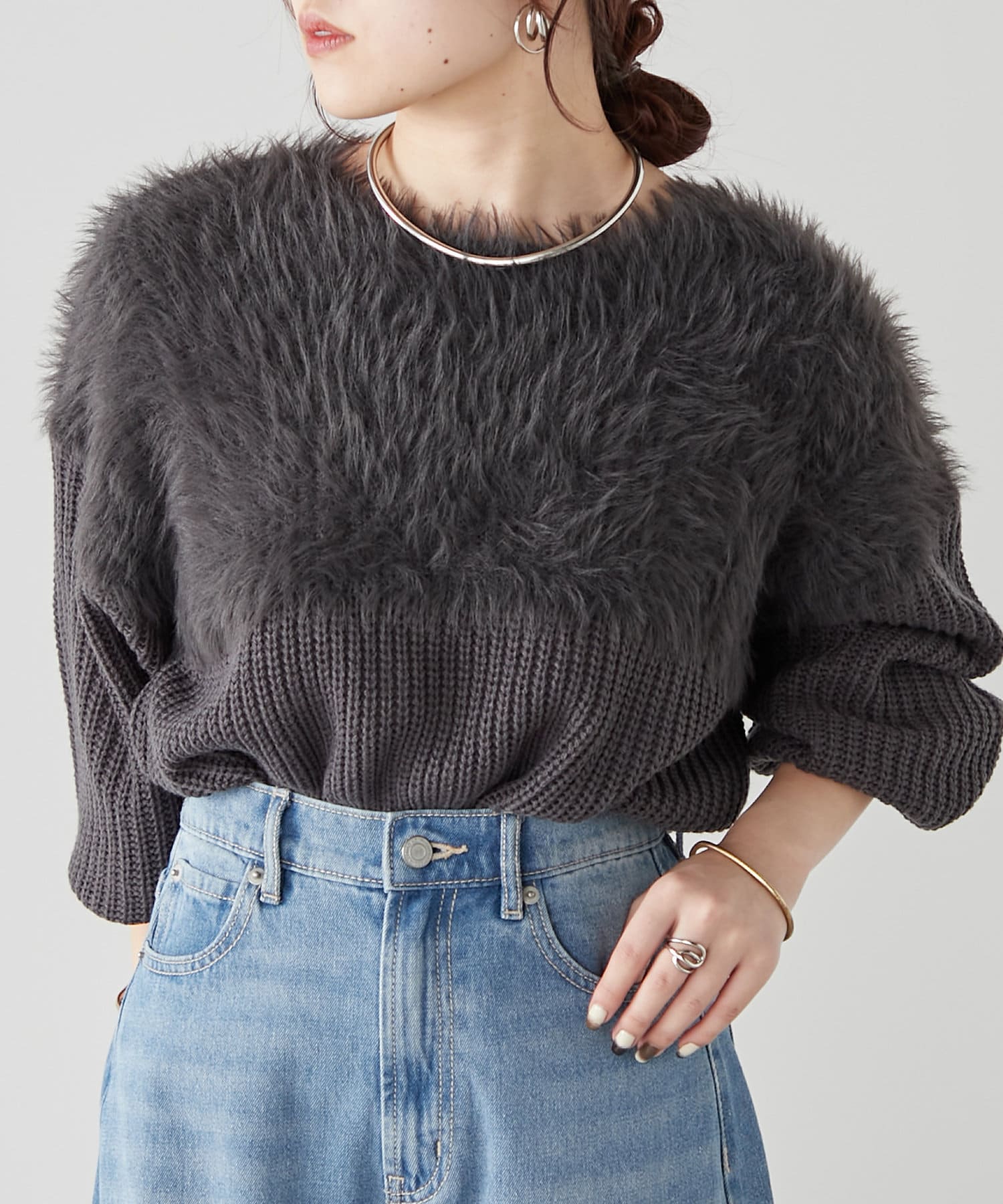 ・ふわふわっとしたシャギーと畦編みニットの切替がポイント