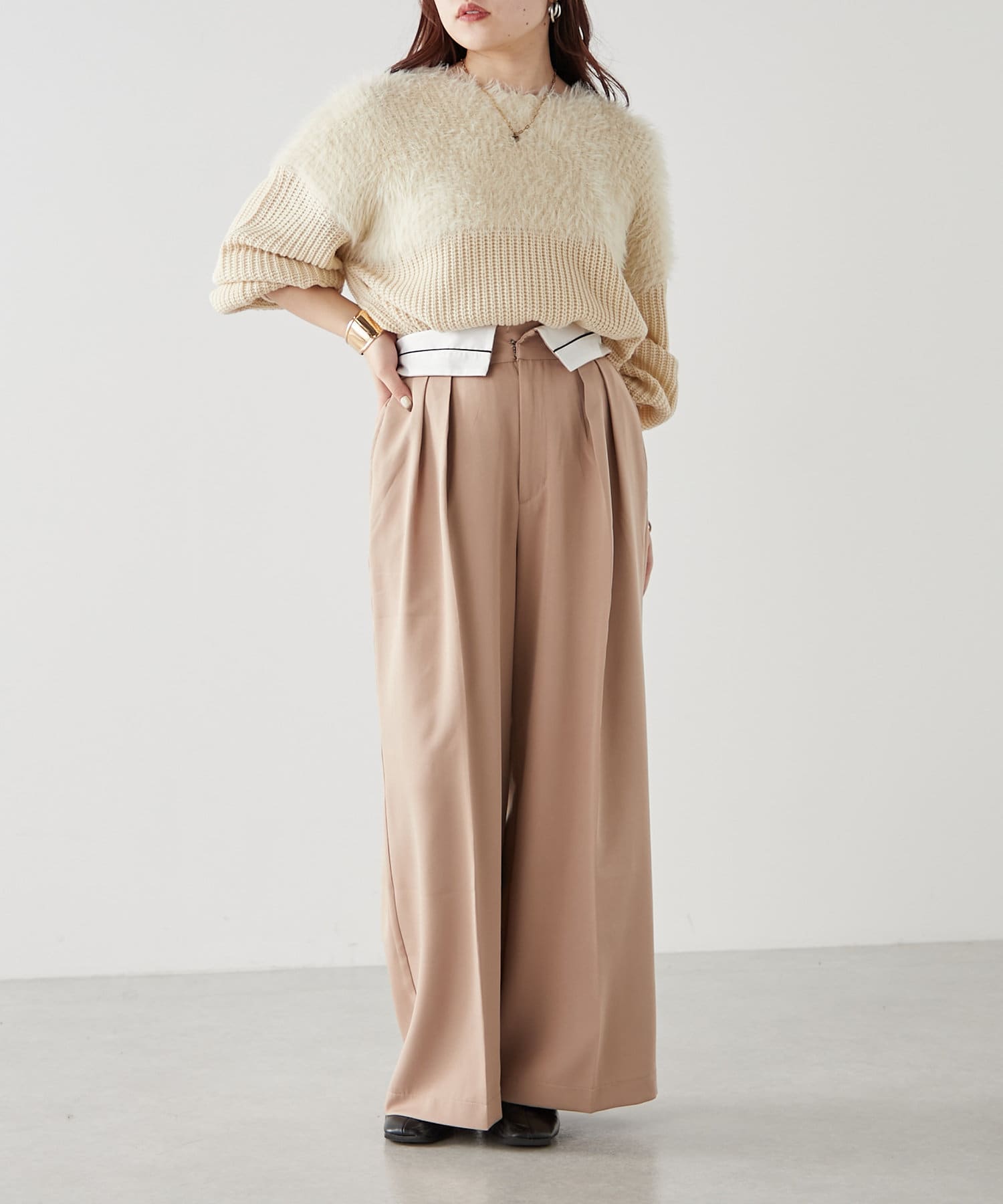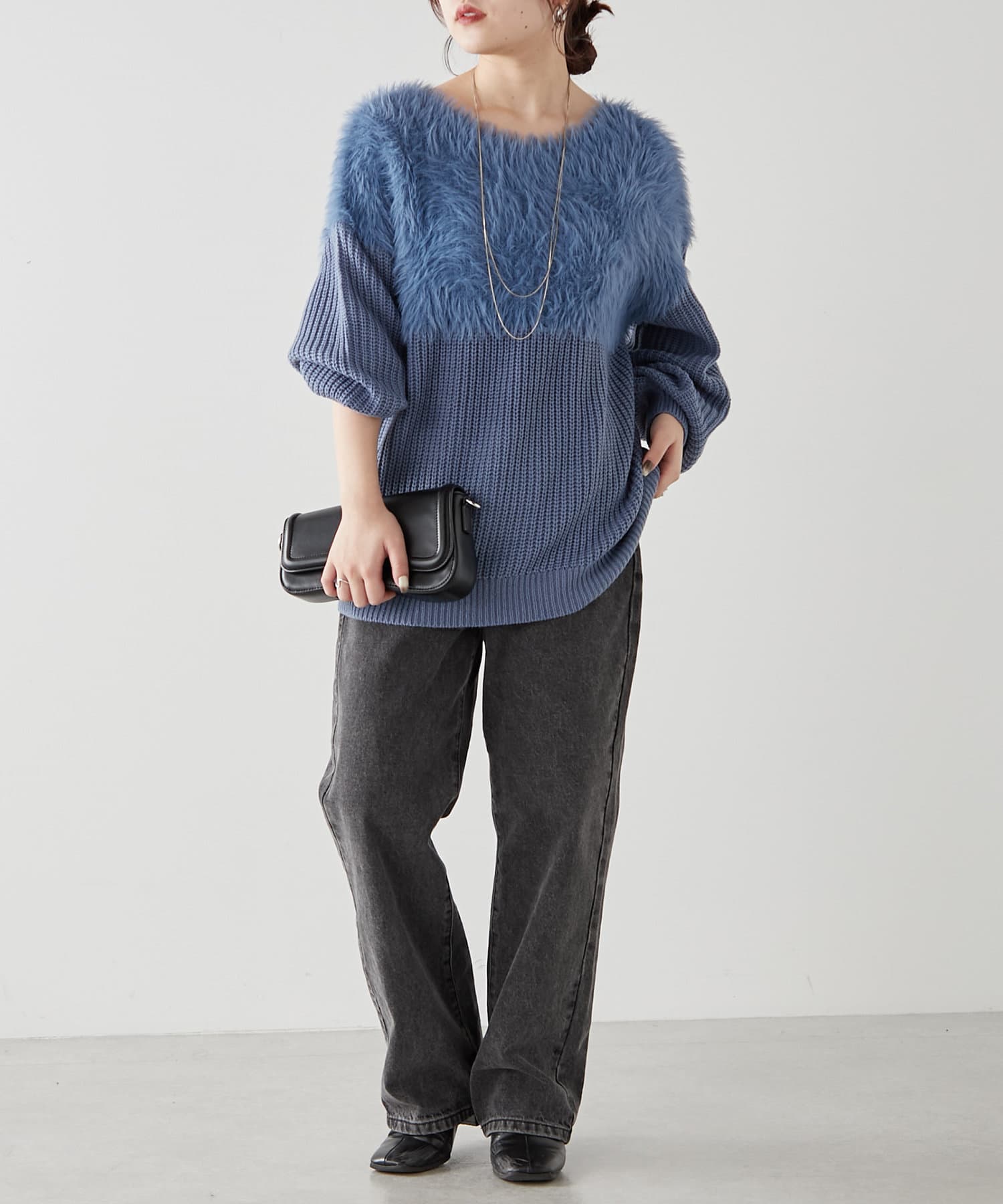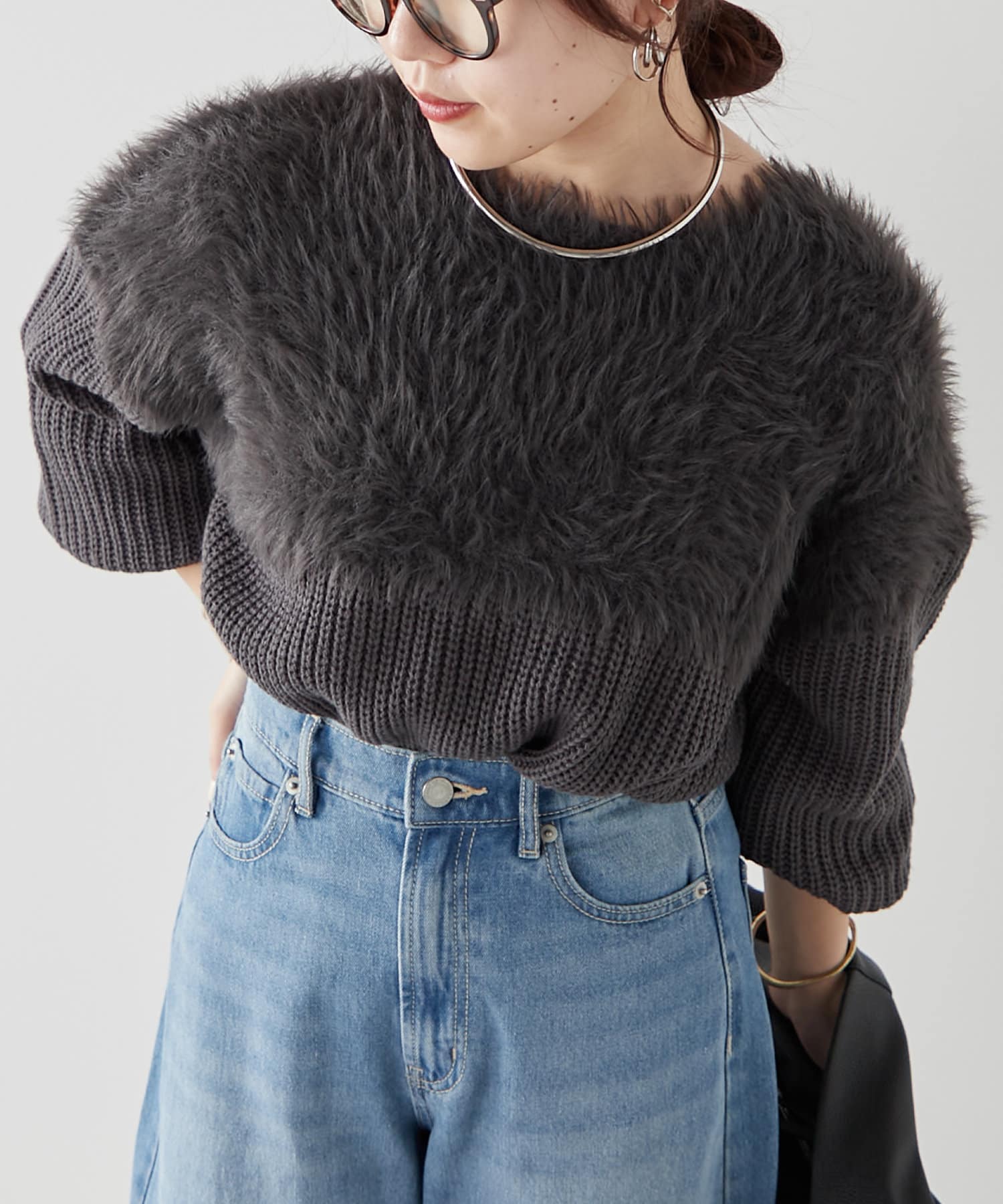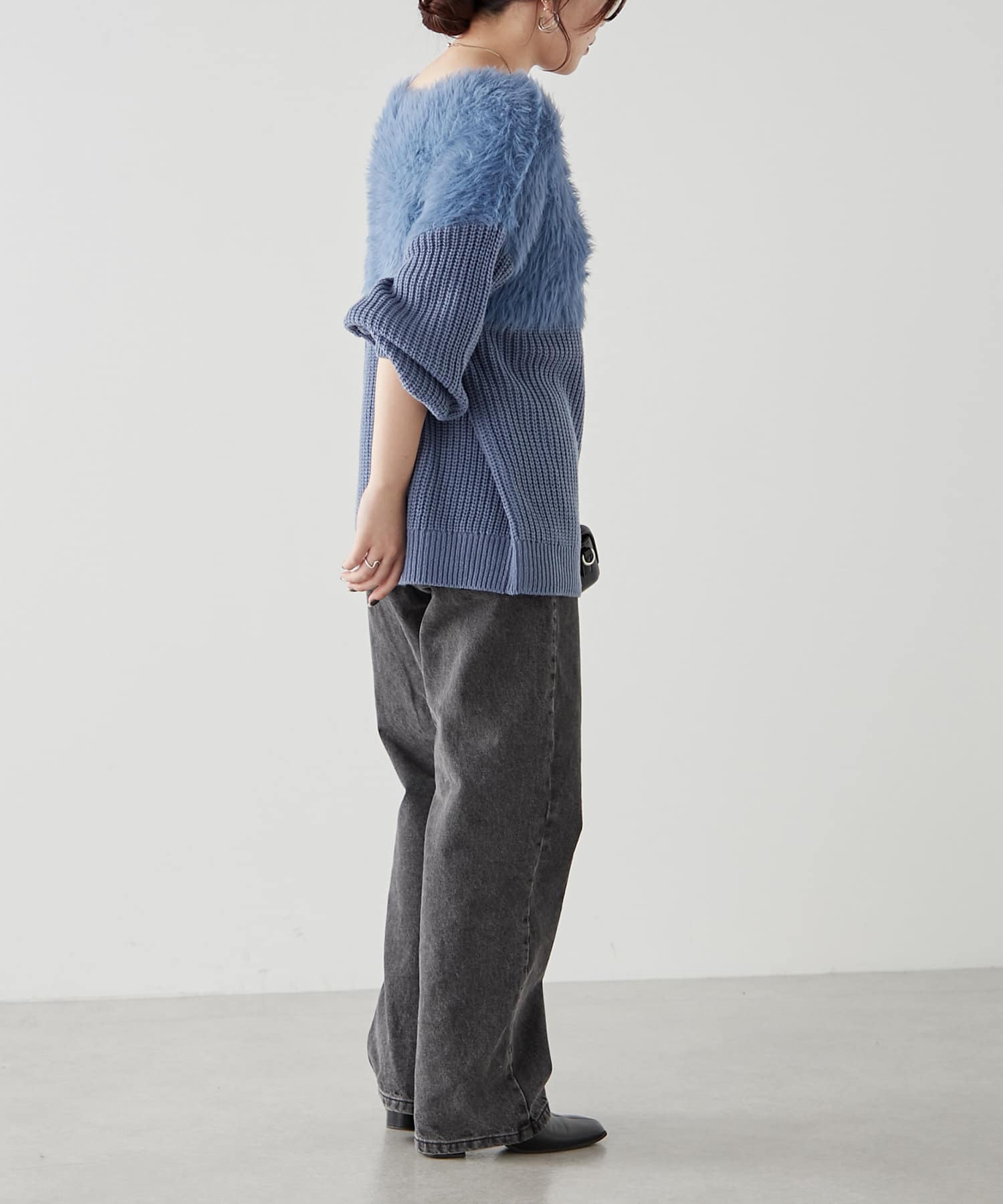 ・ふわふわっとしたシャギーと畦編みニットの切替がポイント