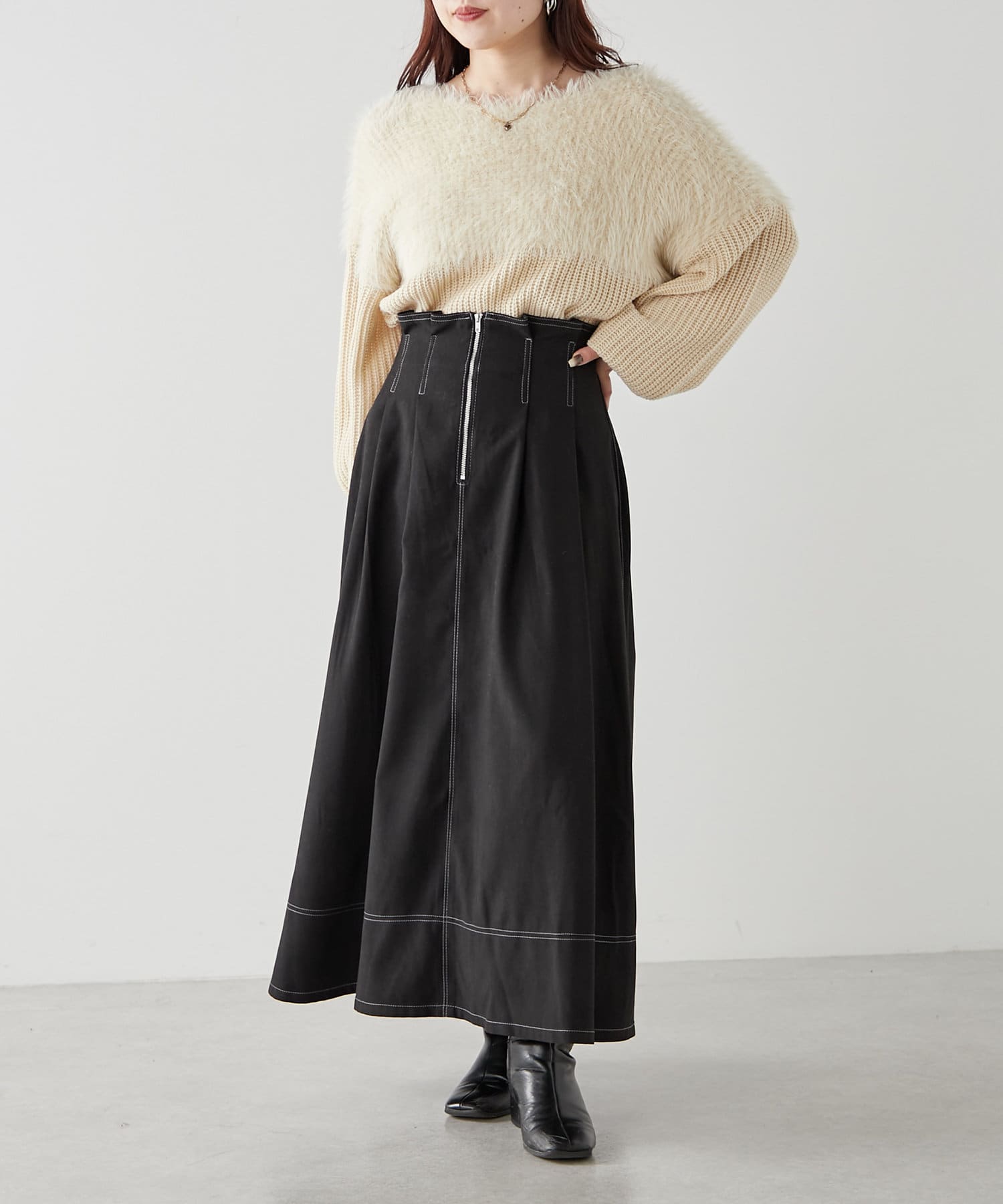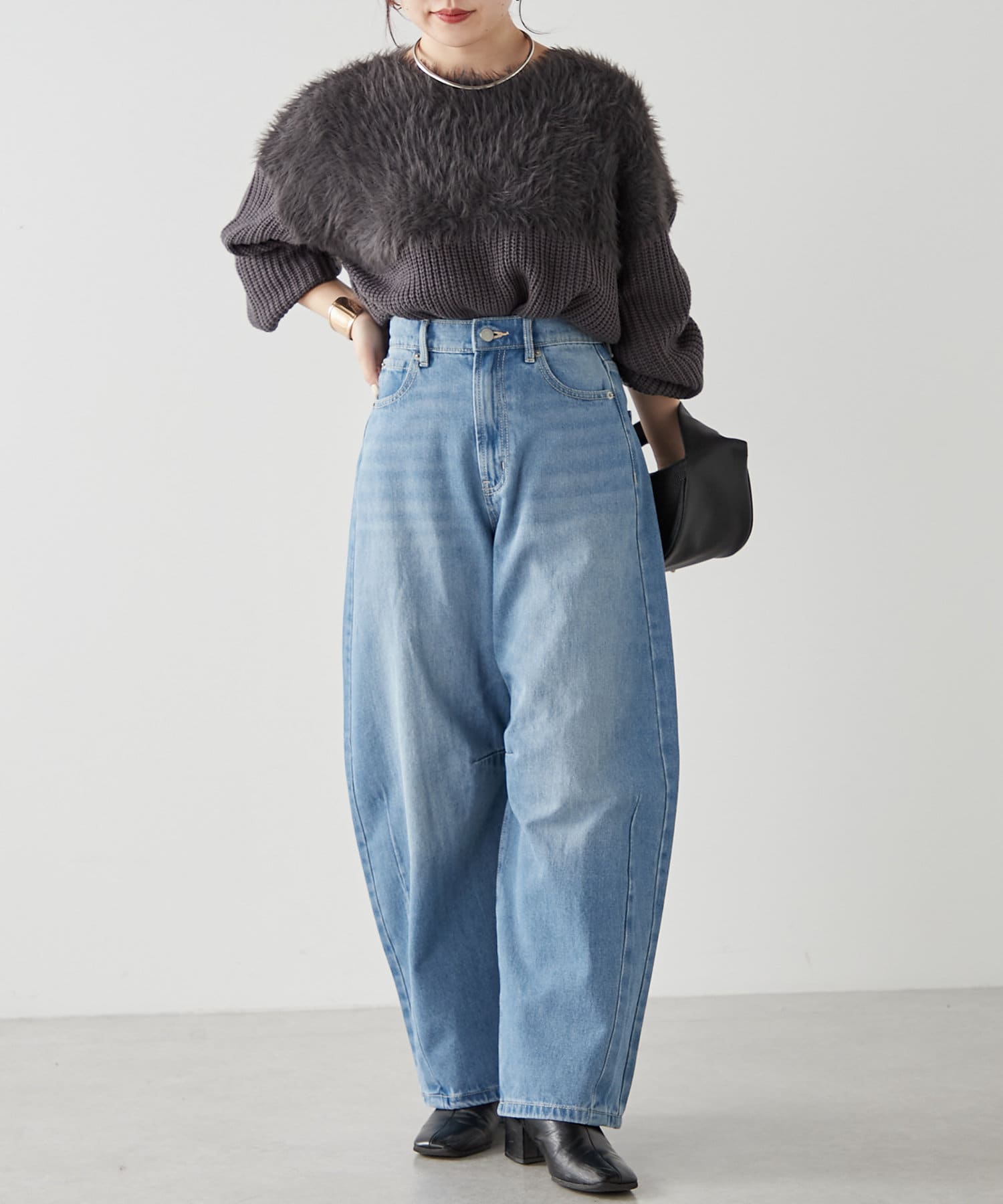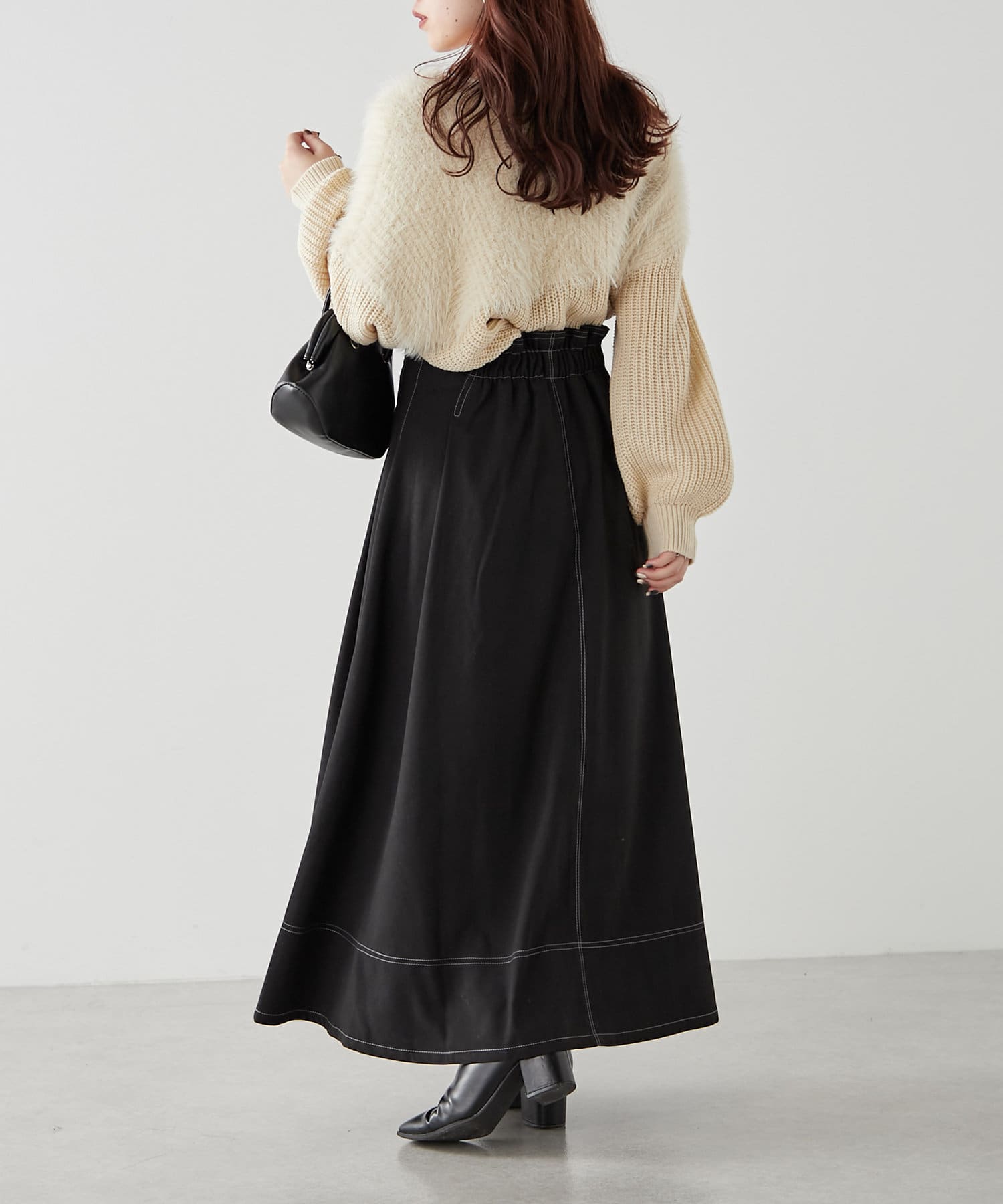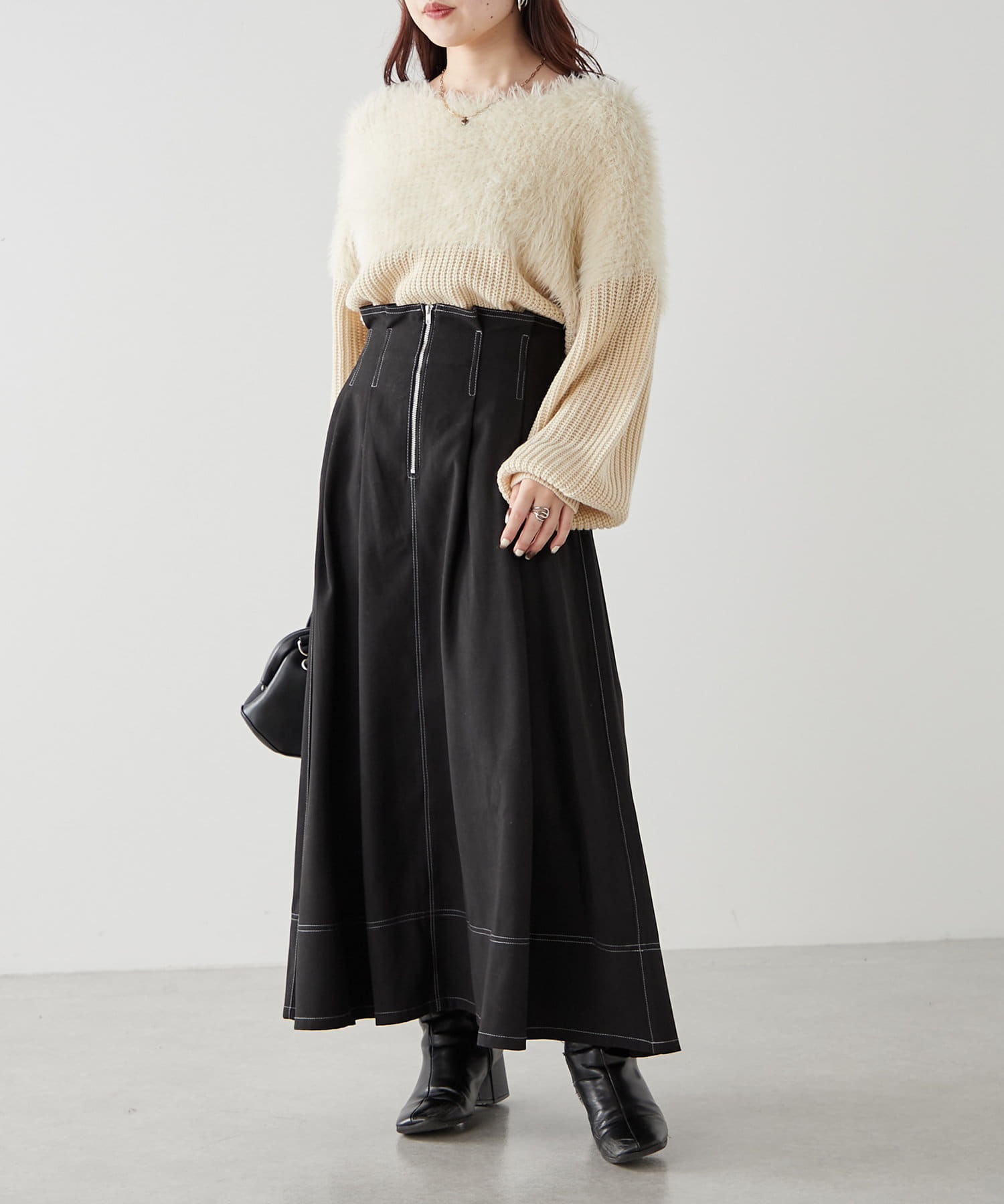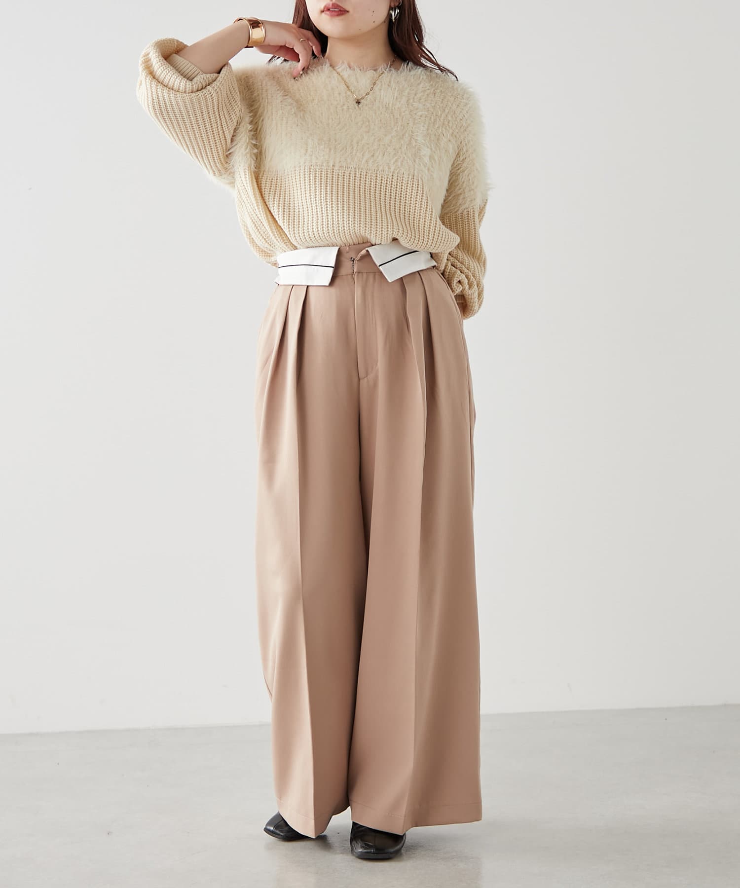 ・ふわふわっとしたシャギーと畦編みニットの切替がポイント
