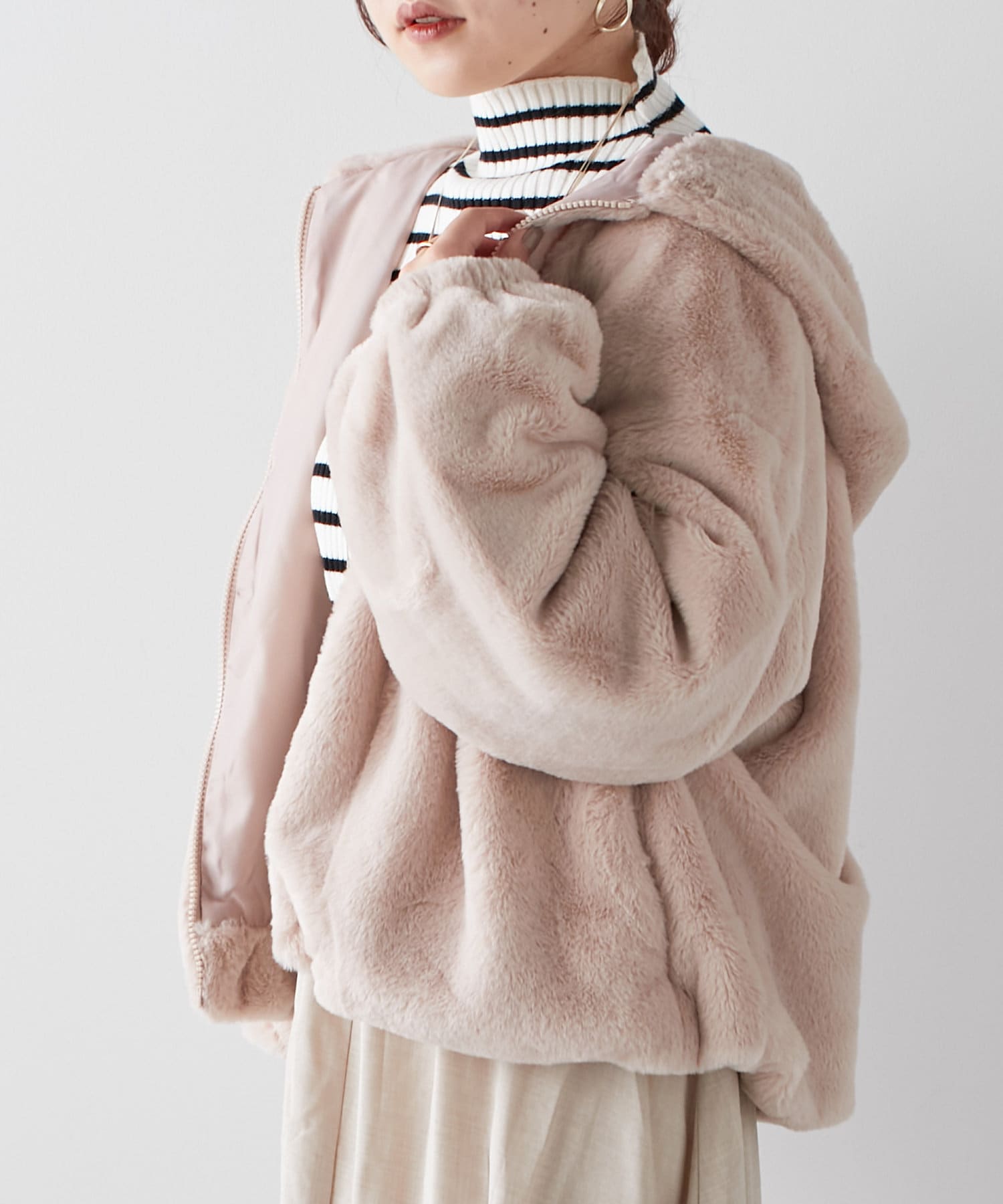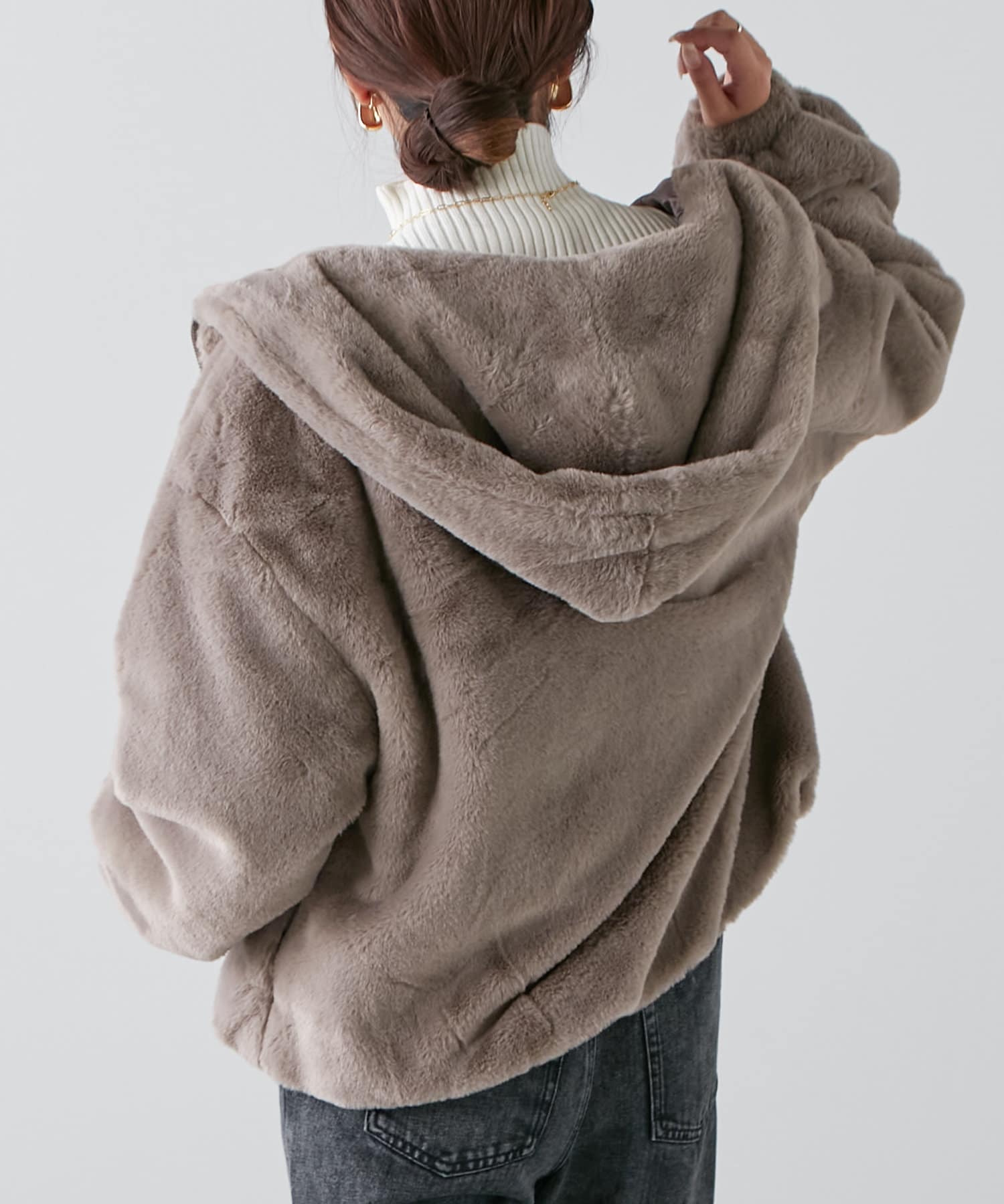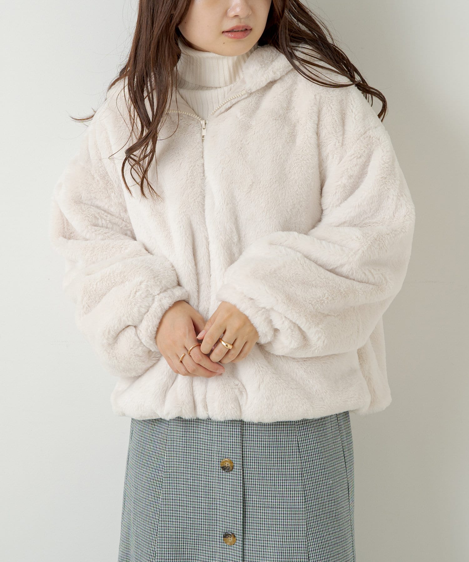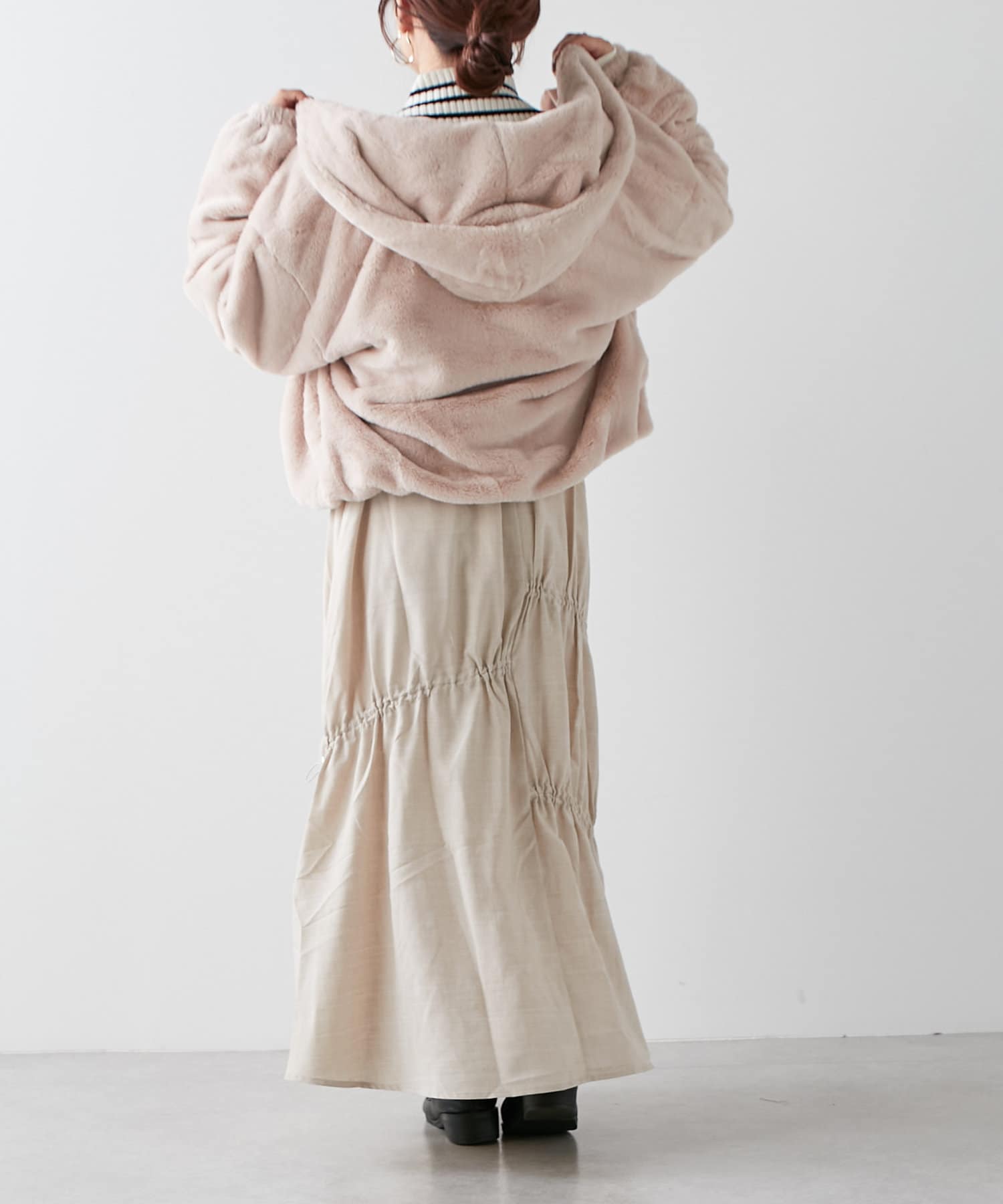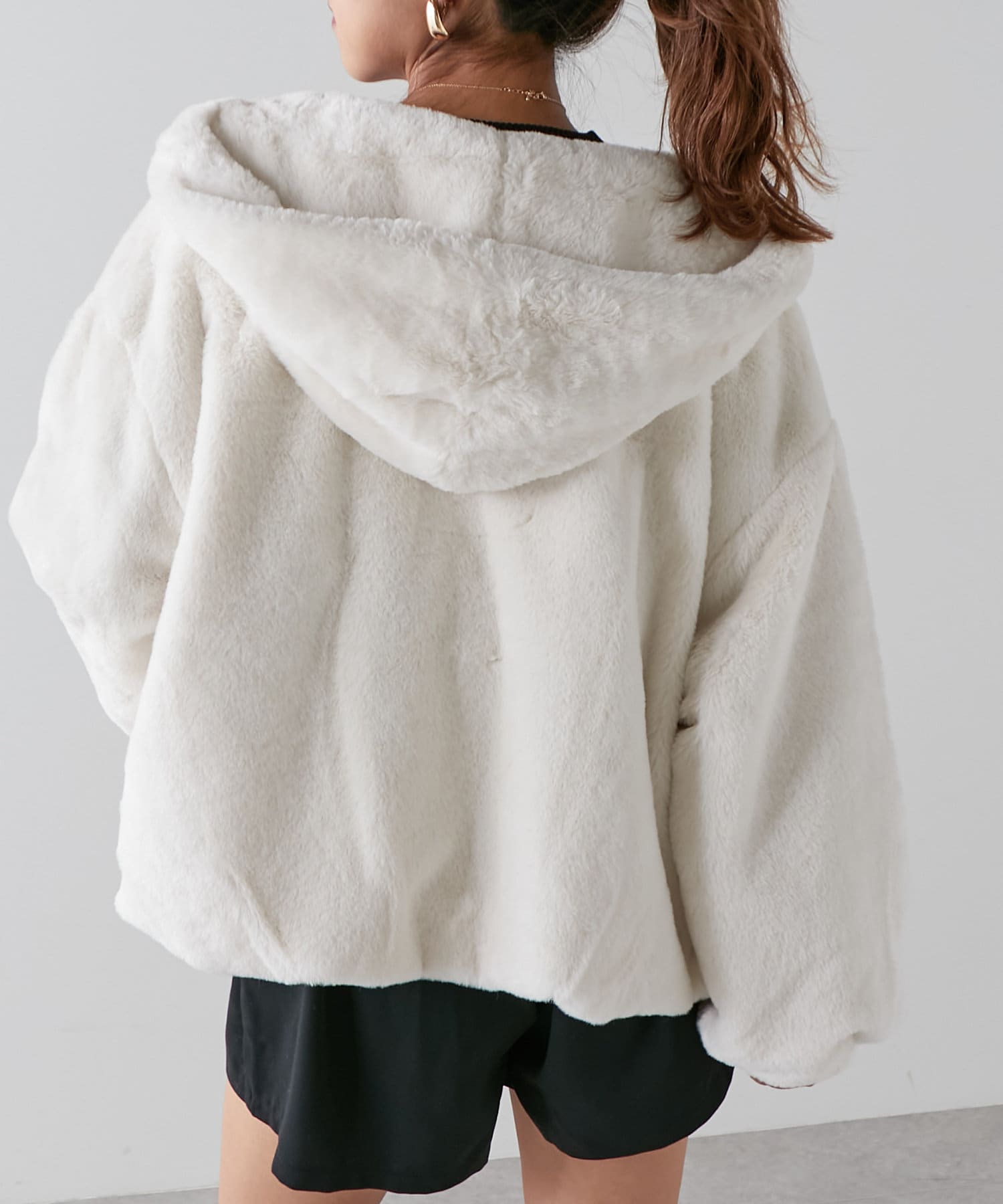 ・ボリュームのあるフード付きで小顔効果も抜群。