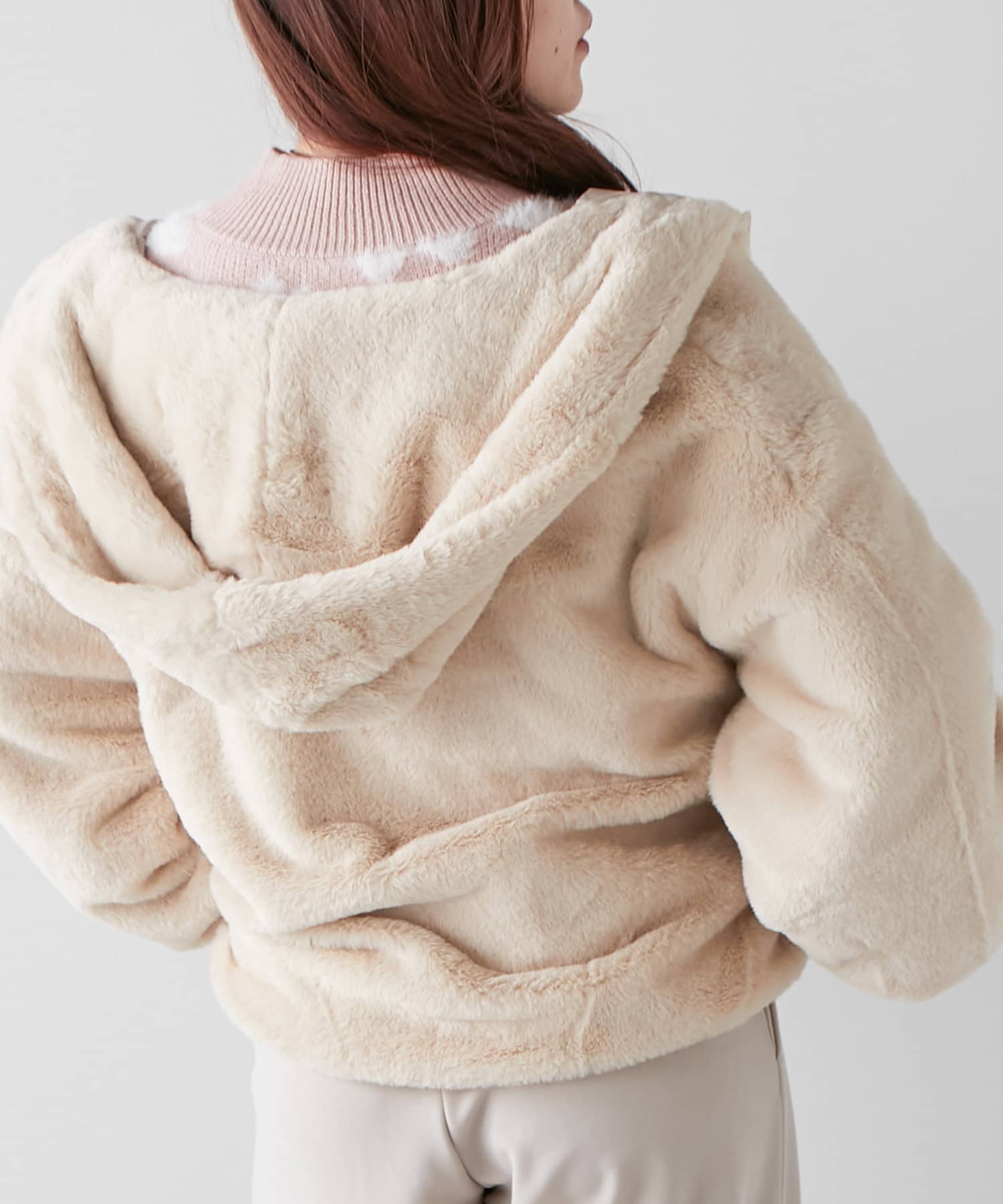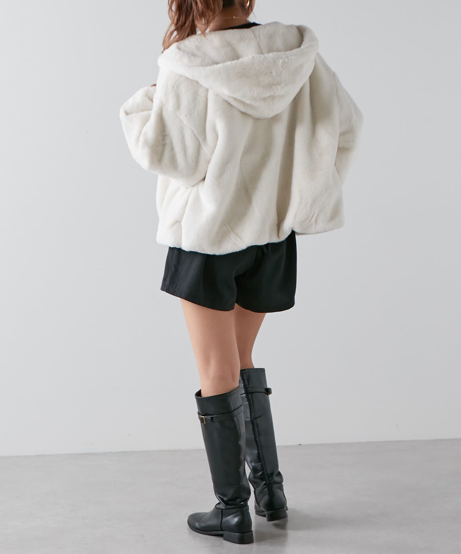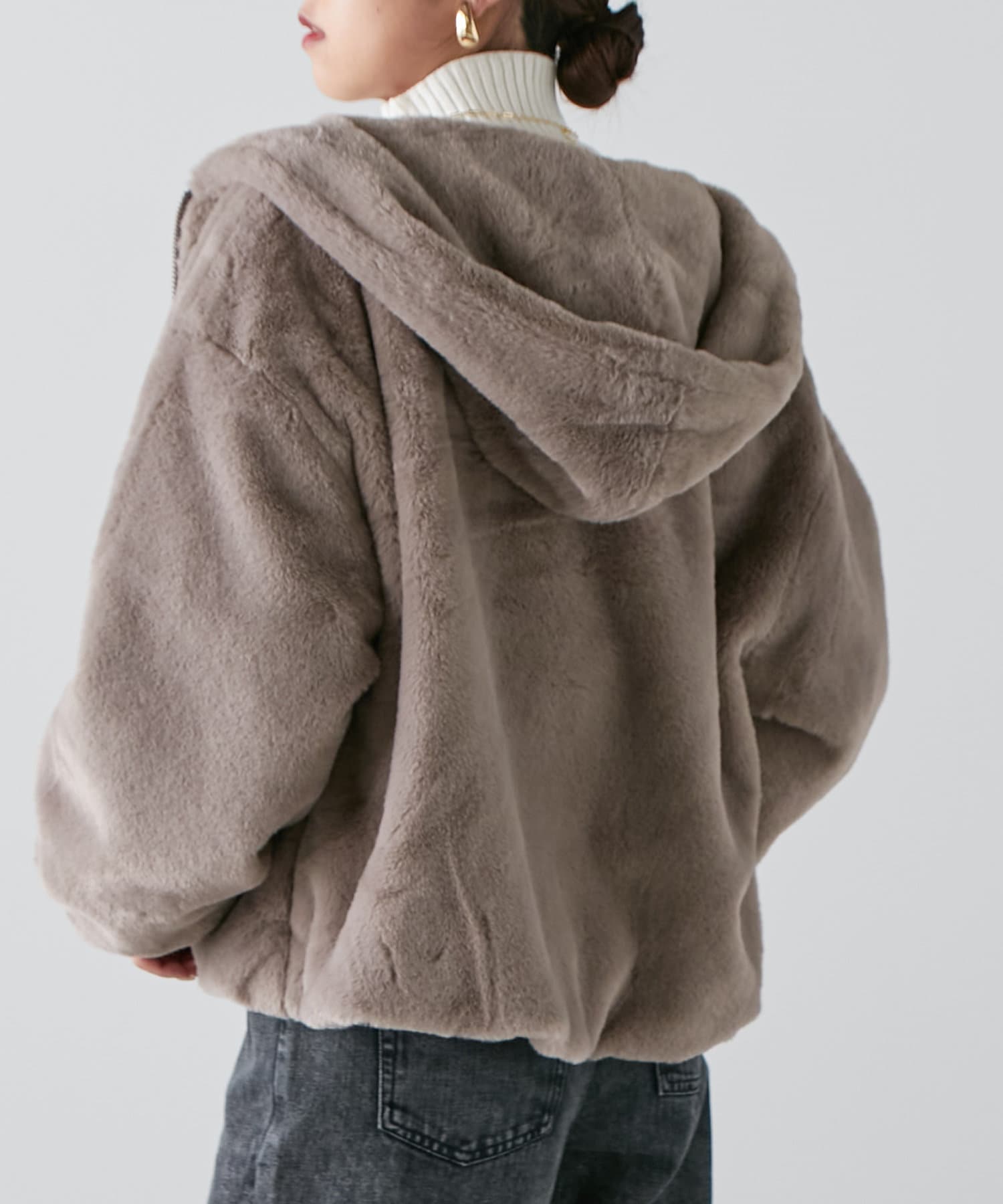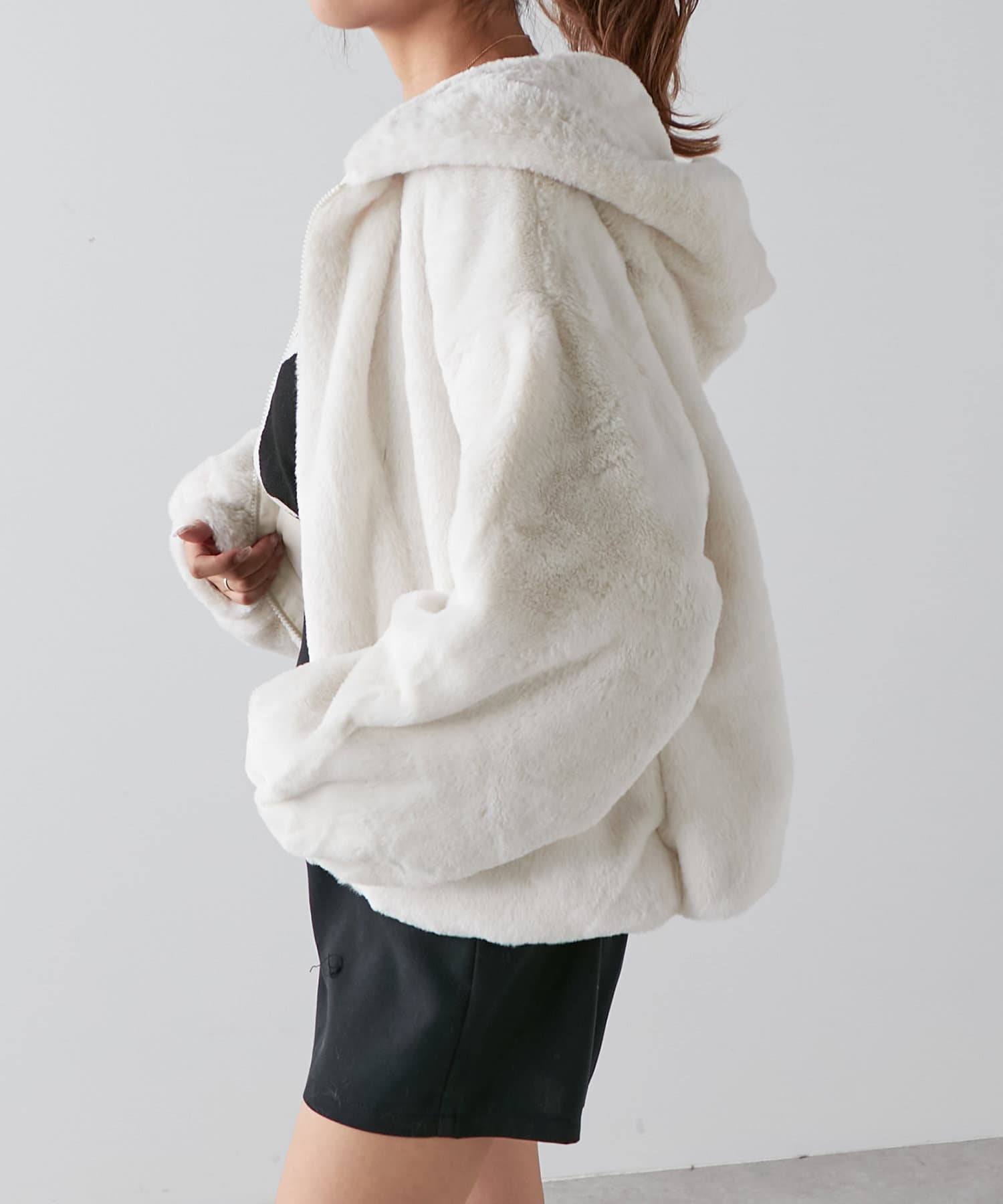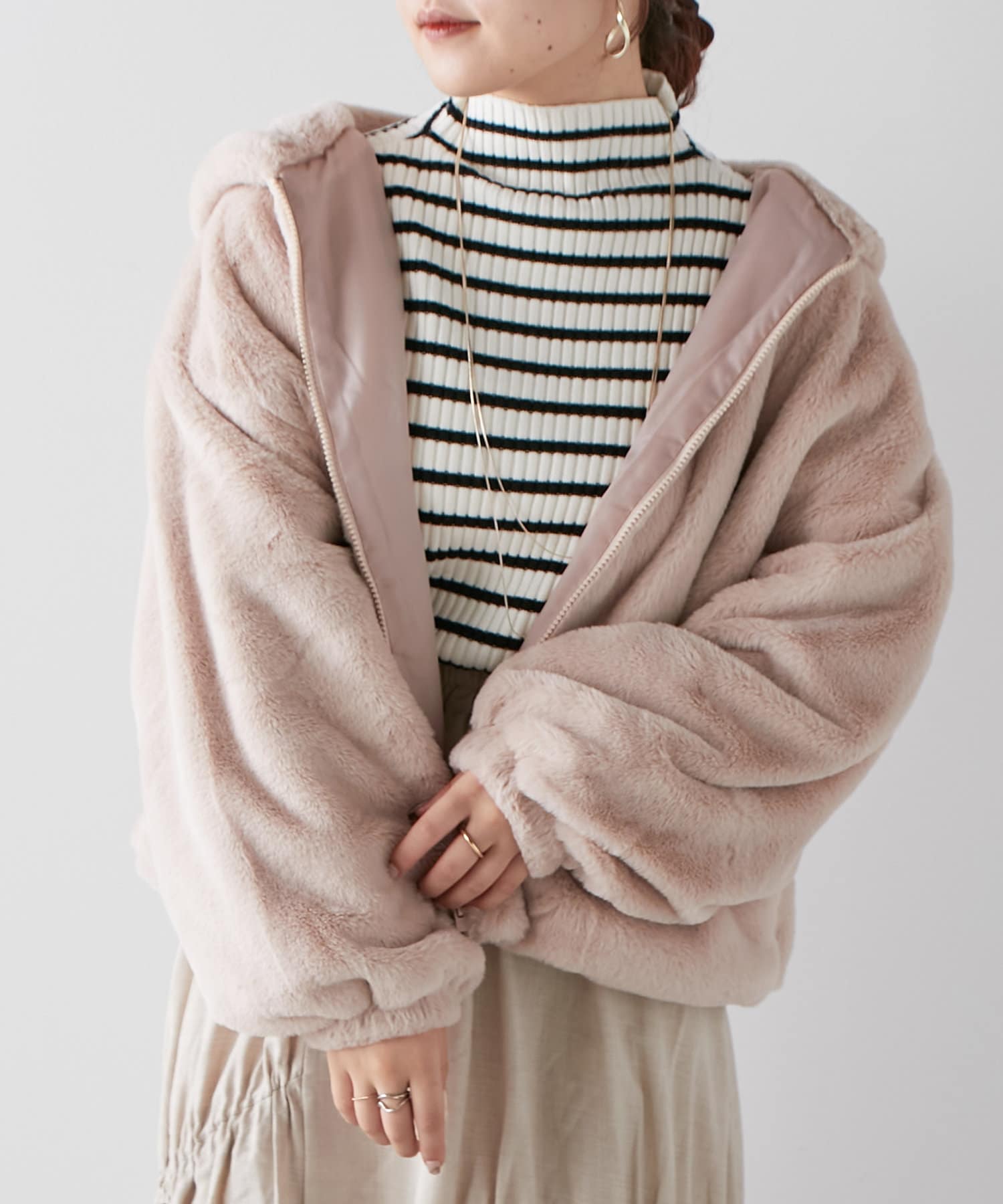 ・ボリュームのあるフード付きで小顔効果も抜群。