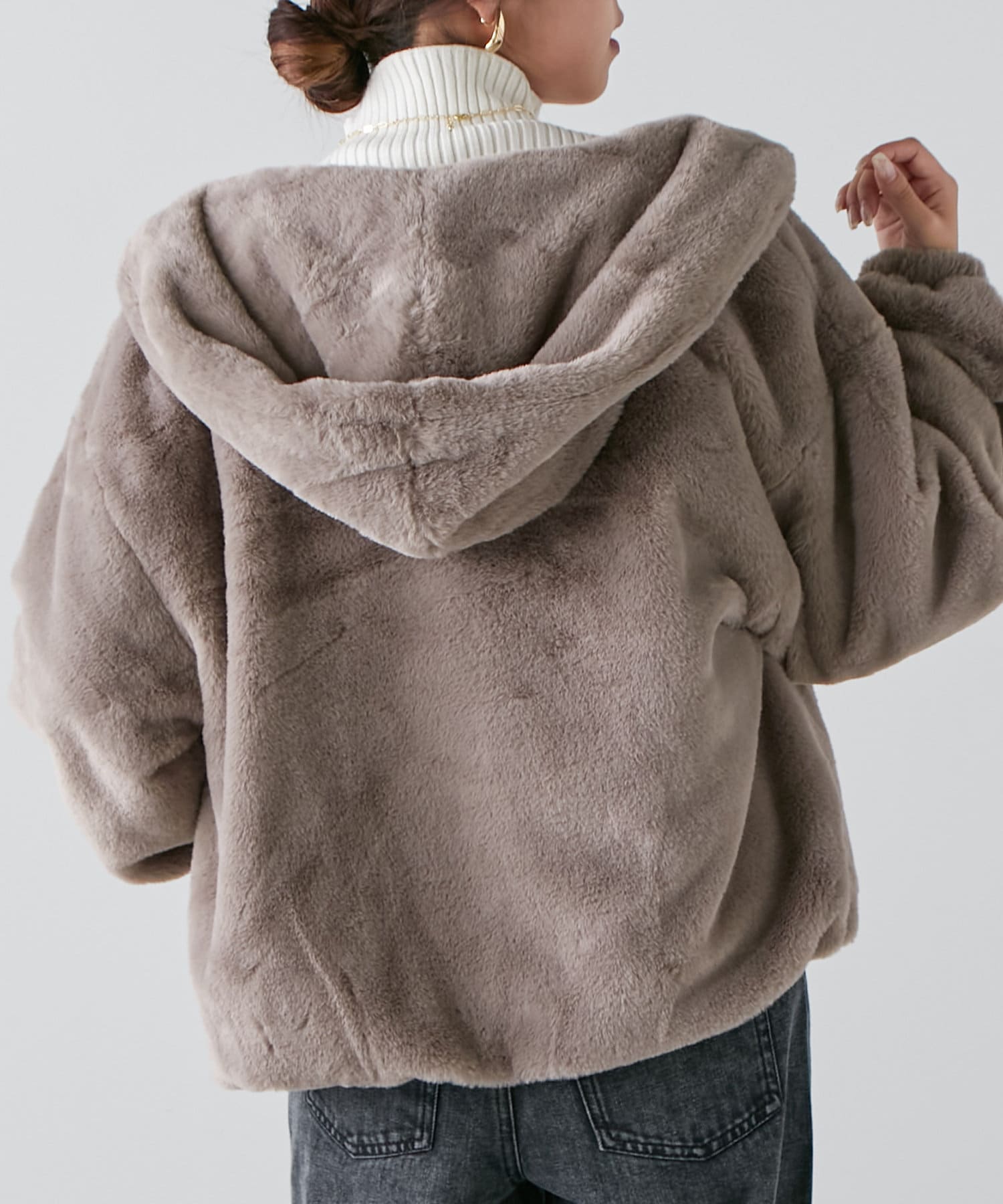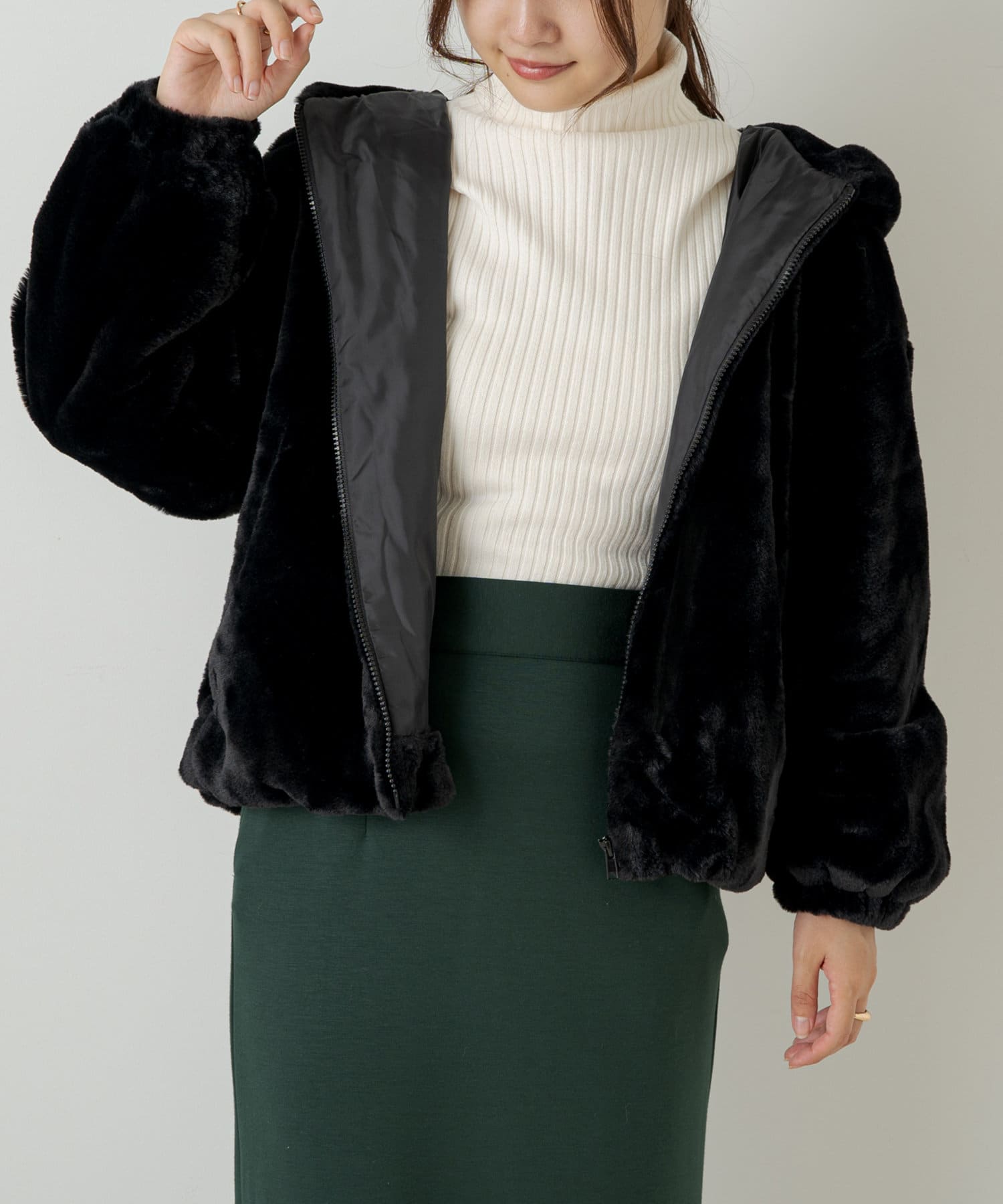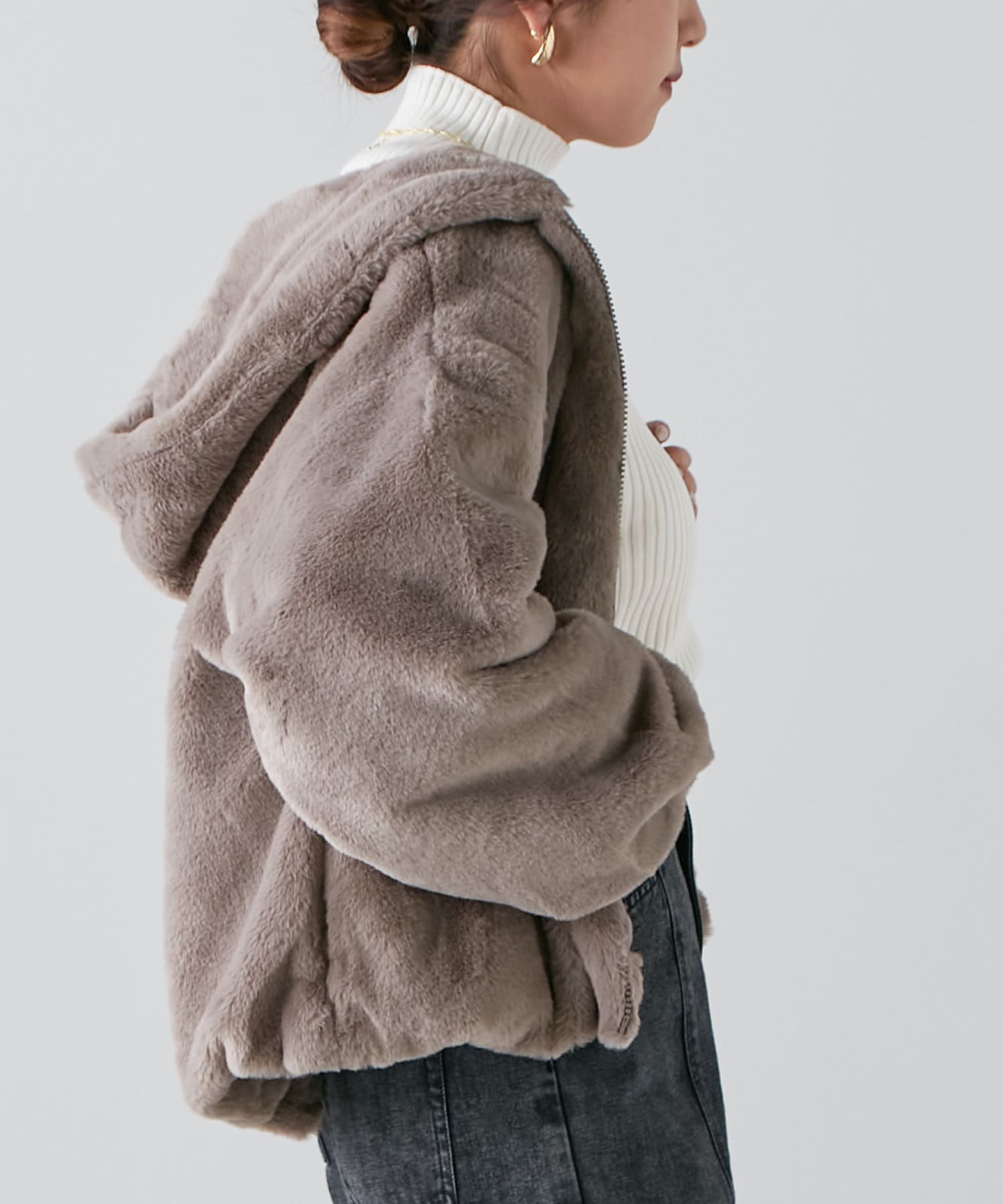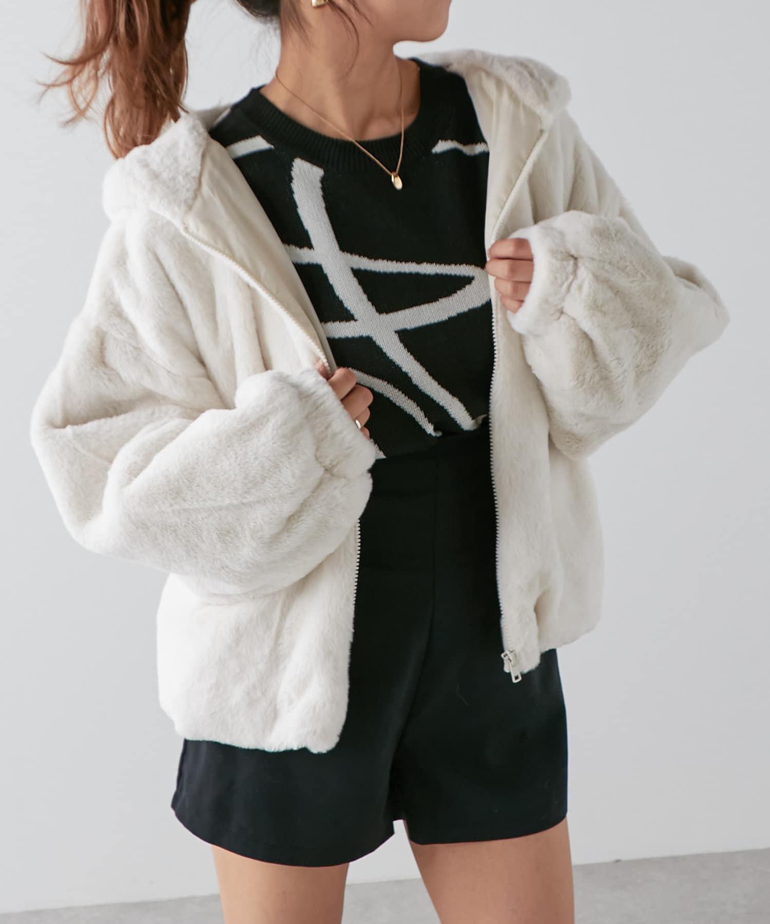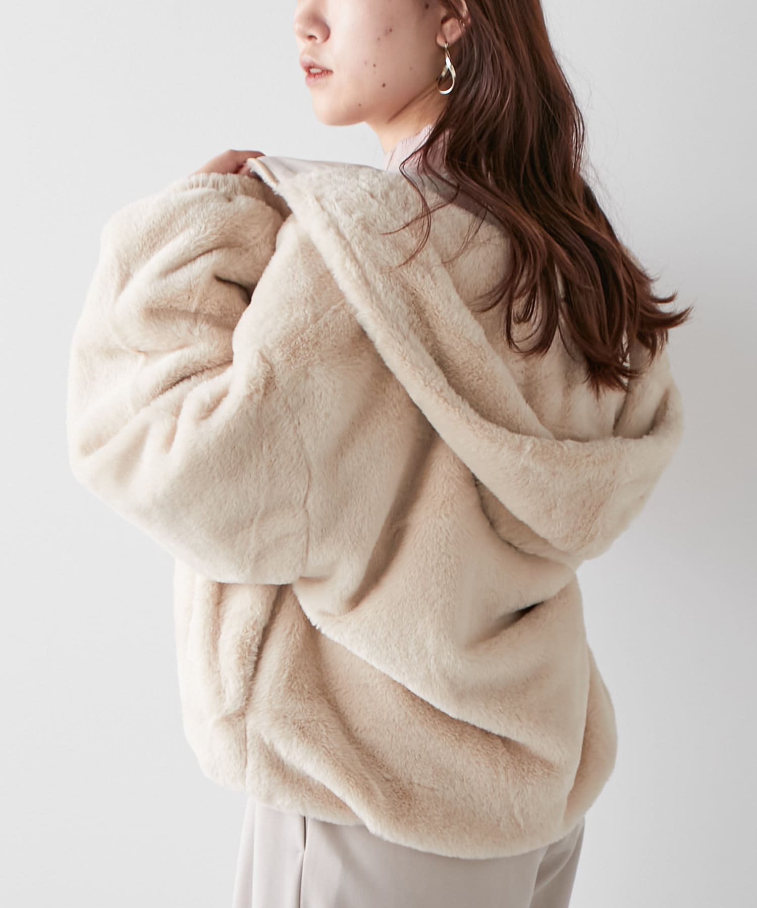 ・ボリュームのあるフード付きで小顔効果も抜群。