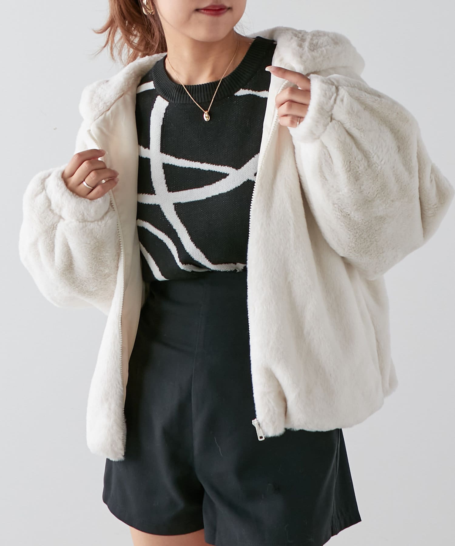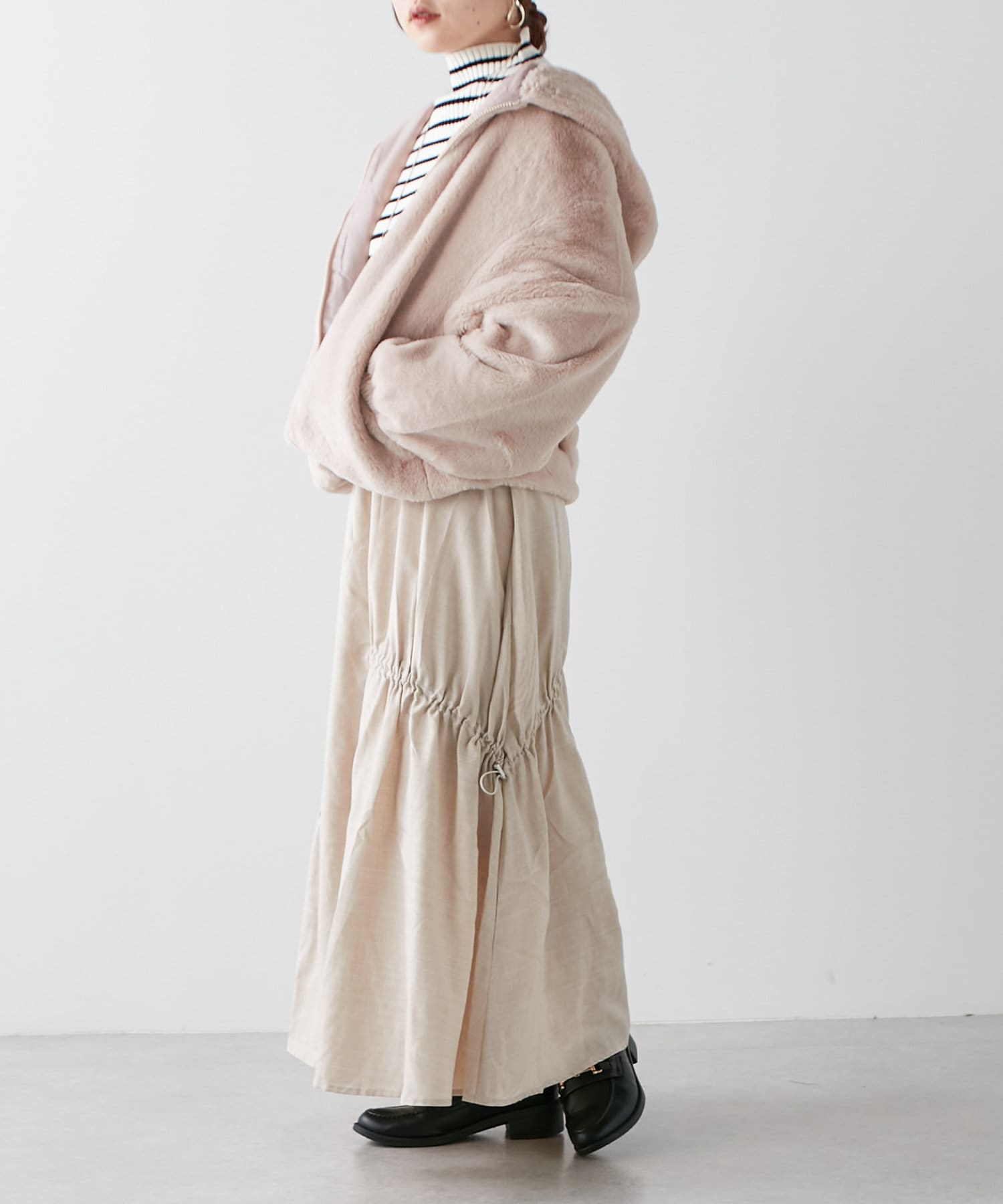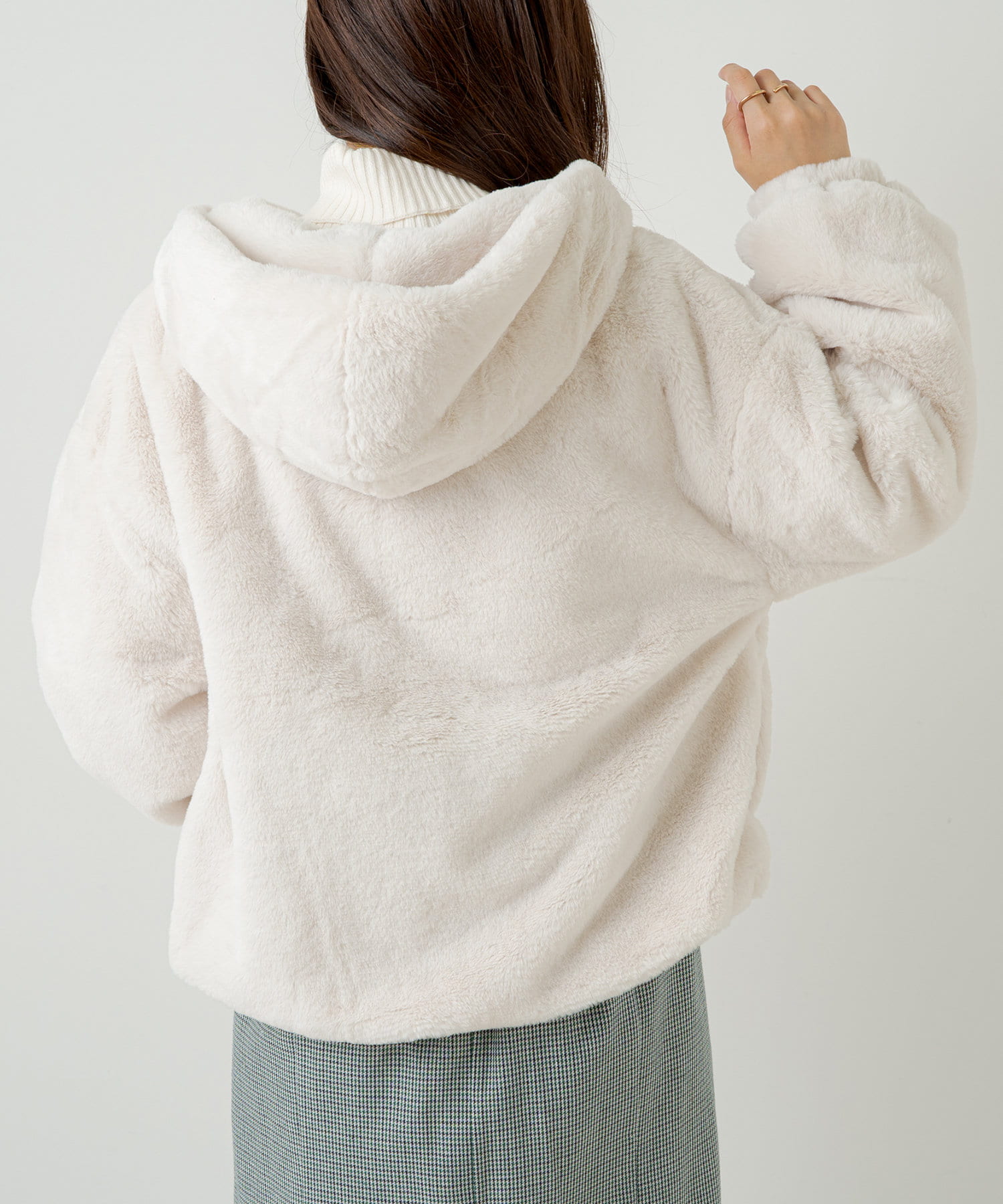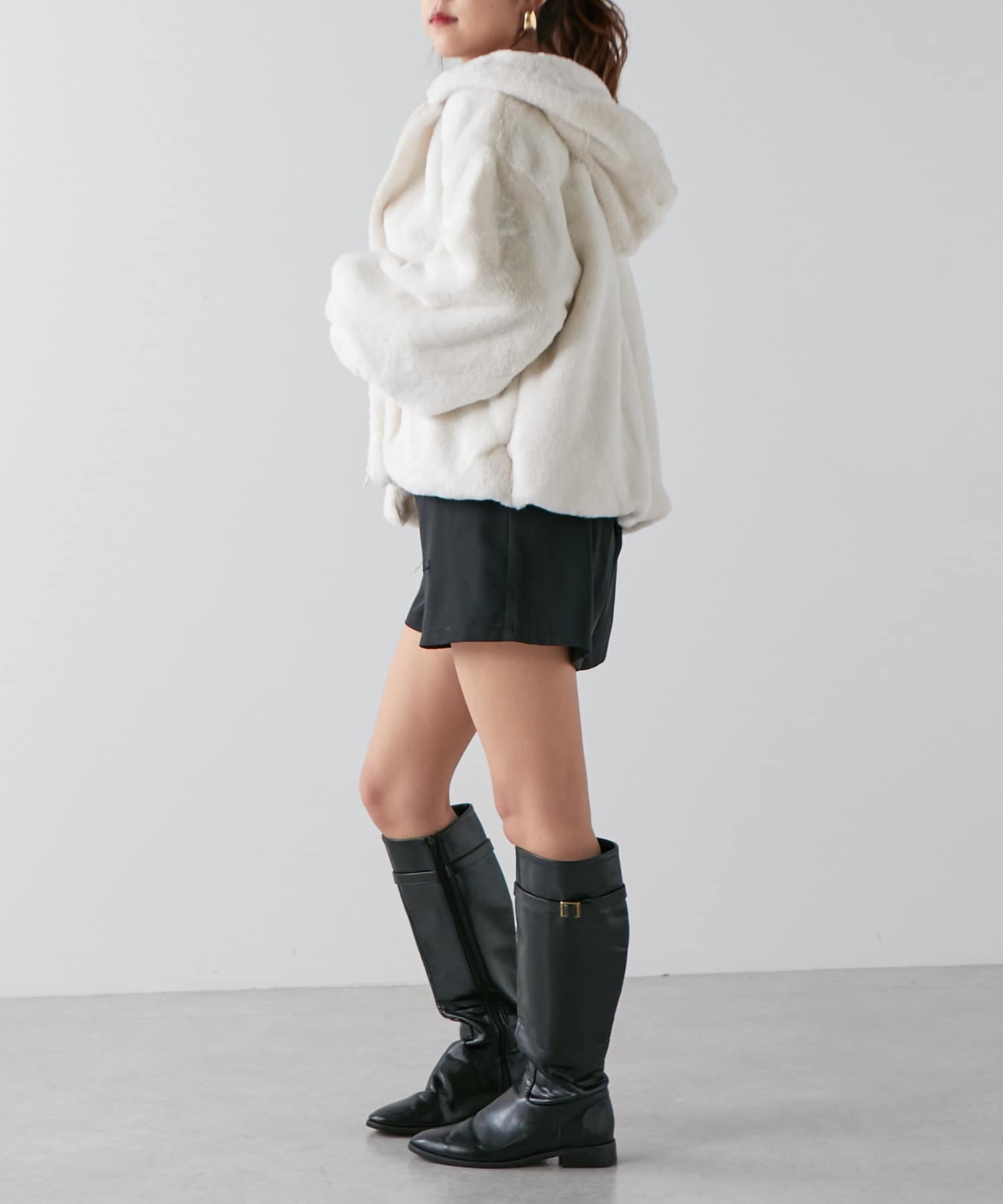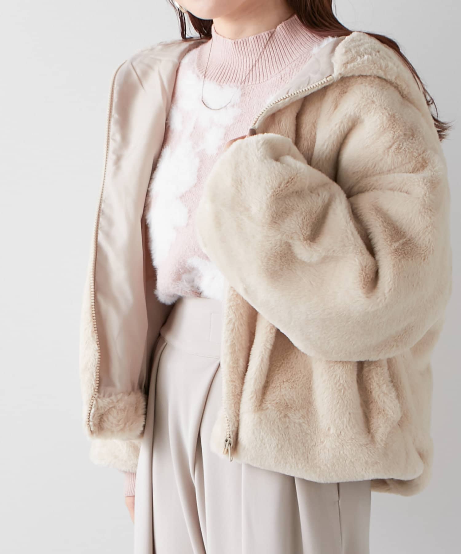 ・ボリュームのあるフード付きで小顔効果も抜群。
