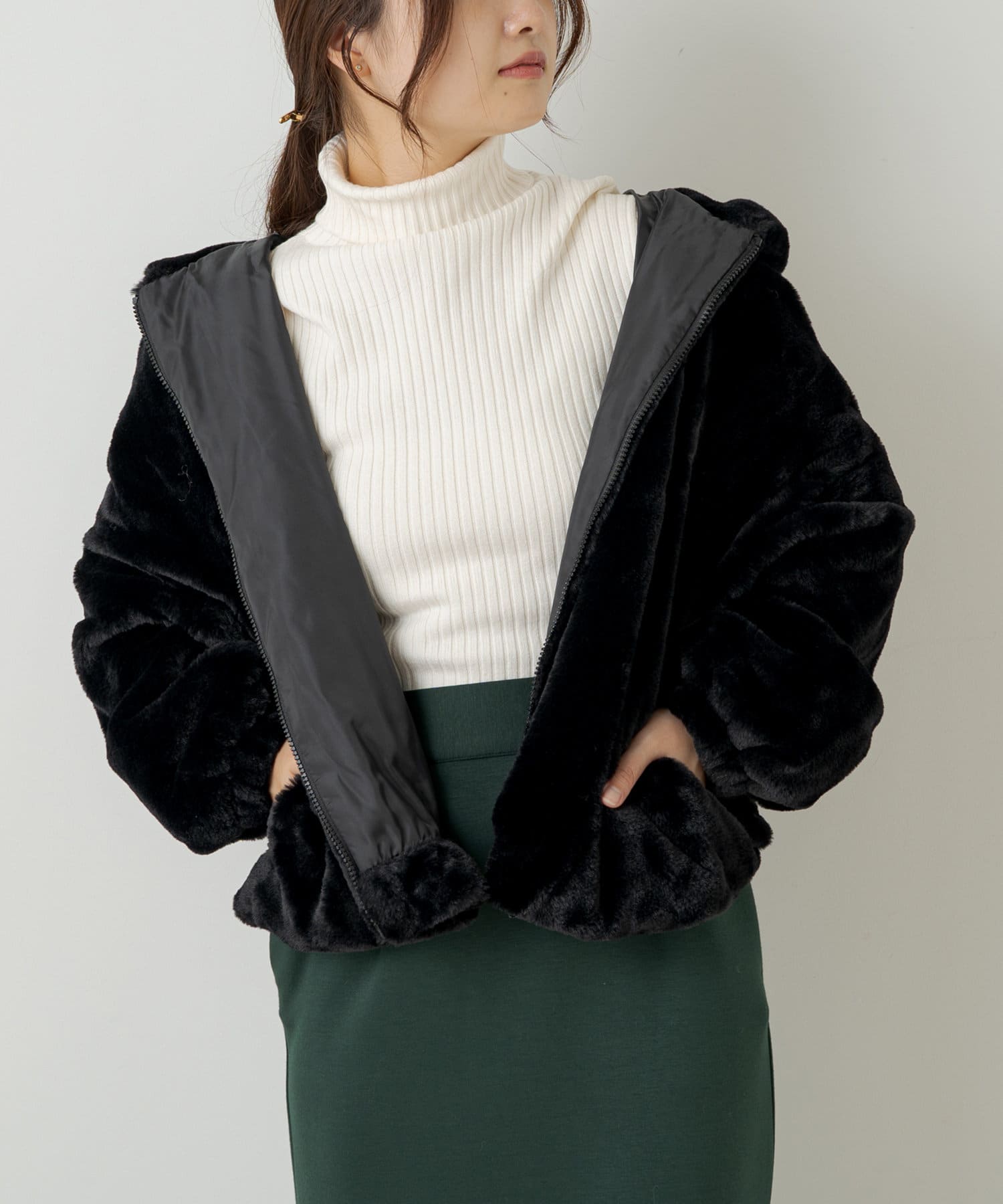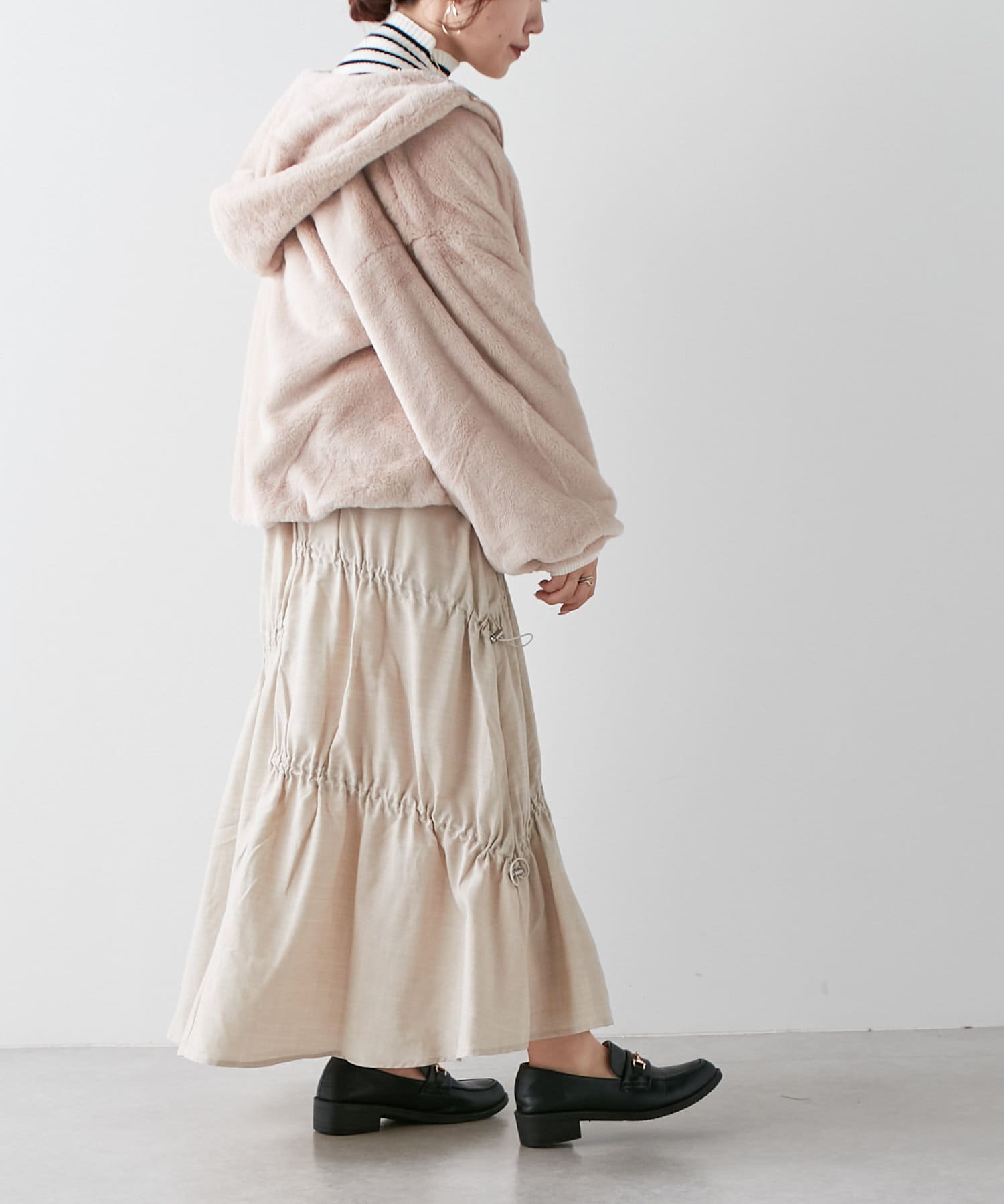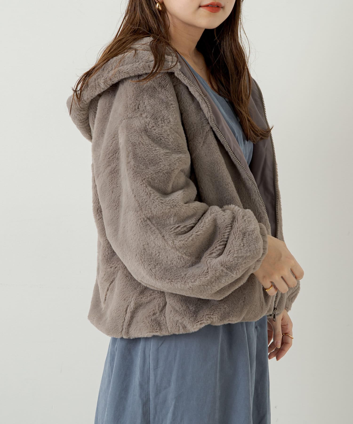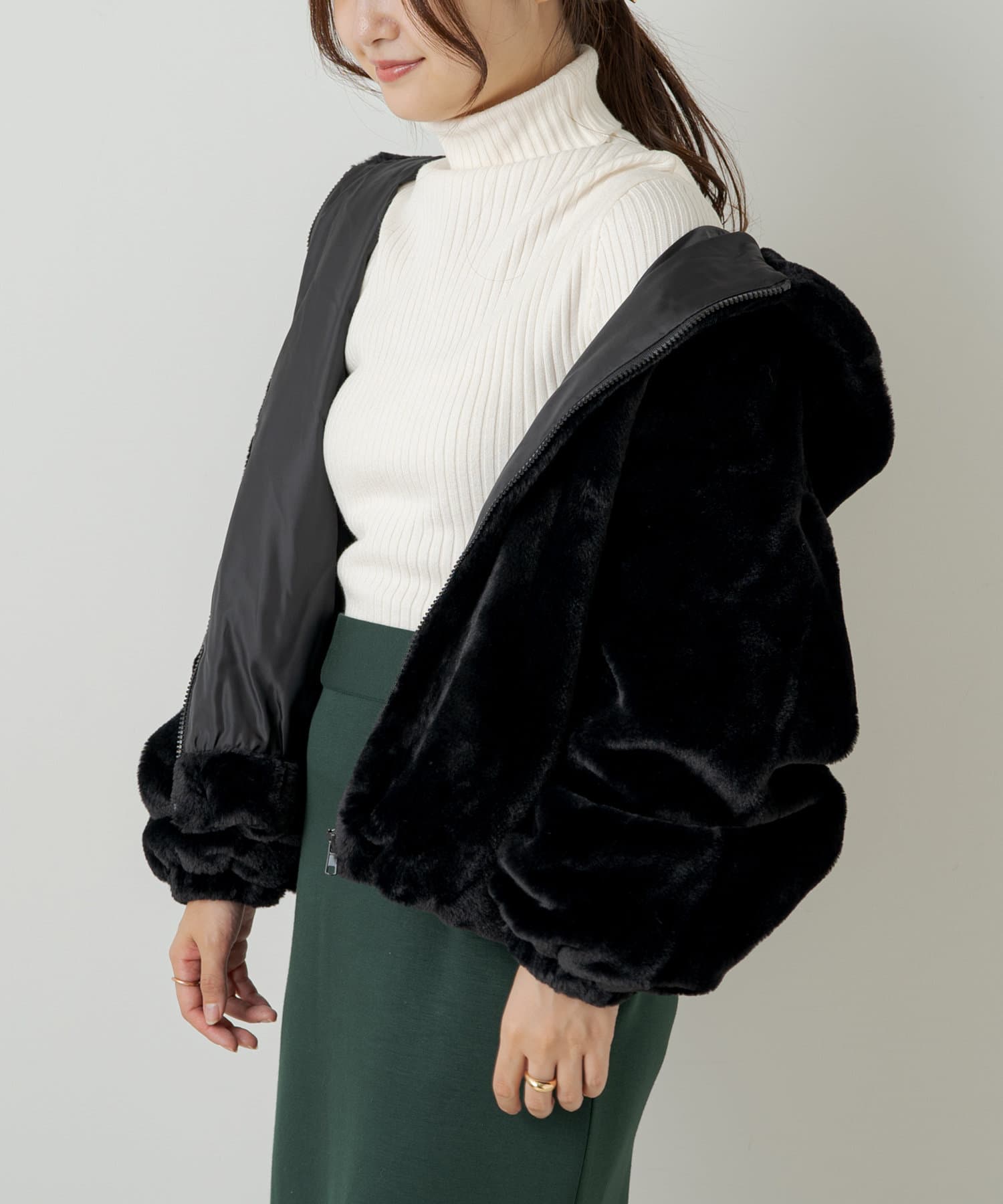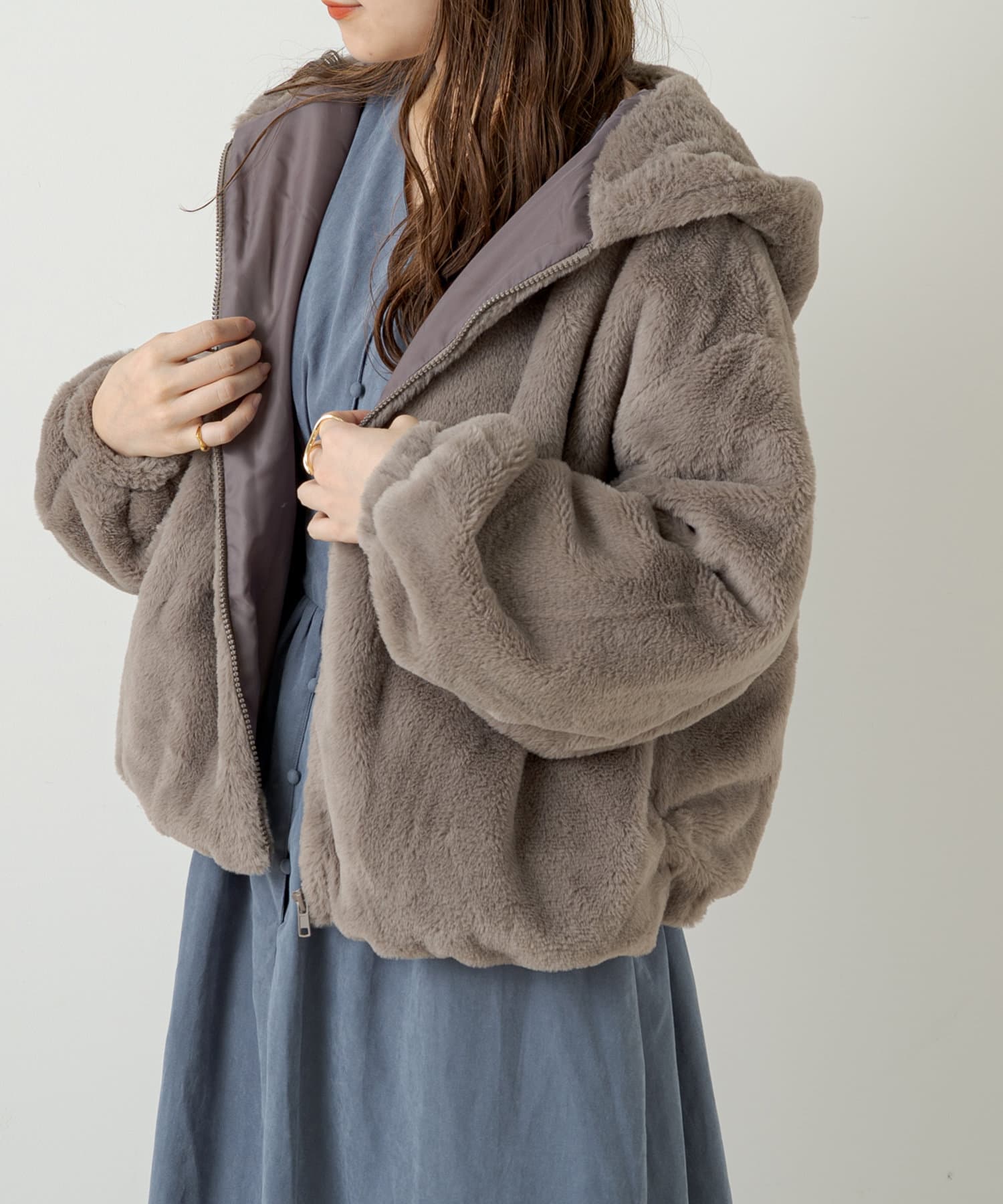 ・ボリュームのあるフード付きで小顔効果も抜群。