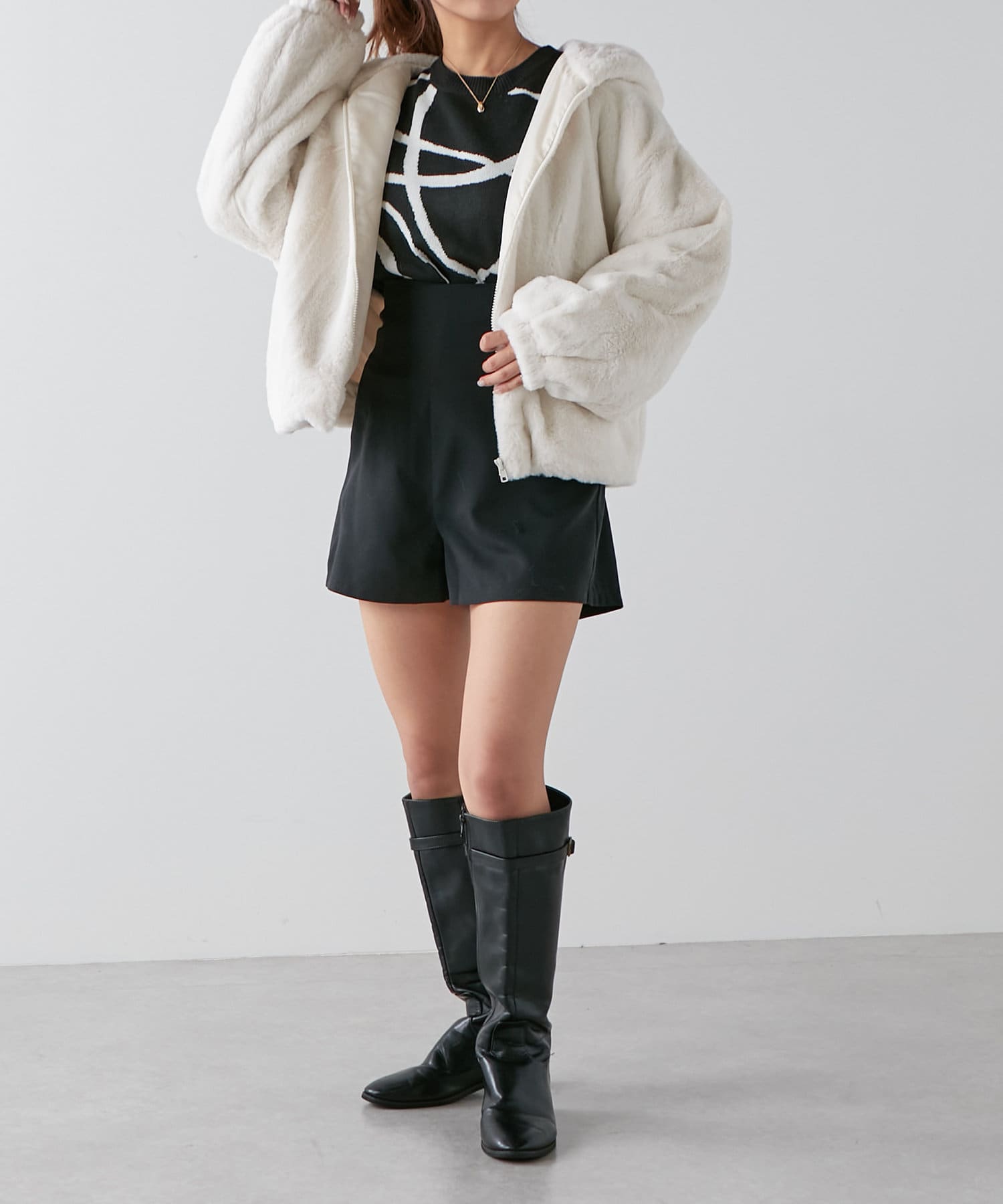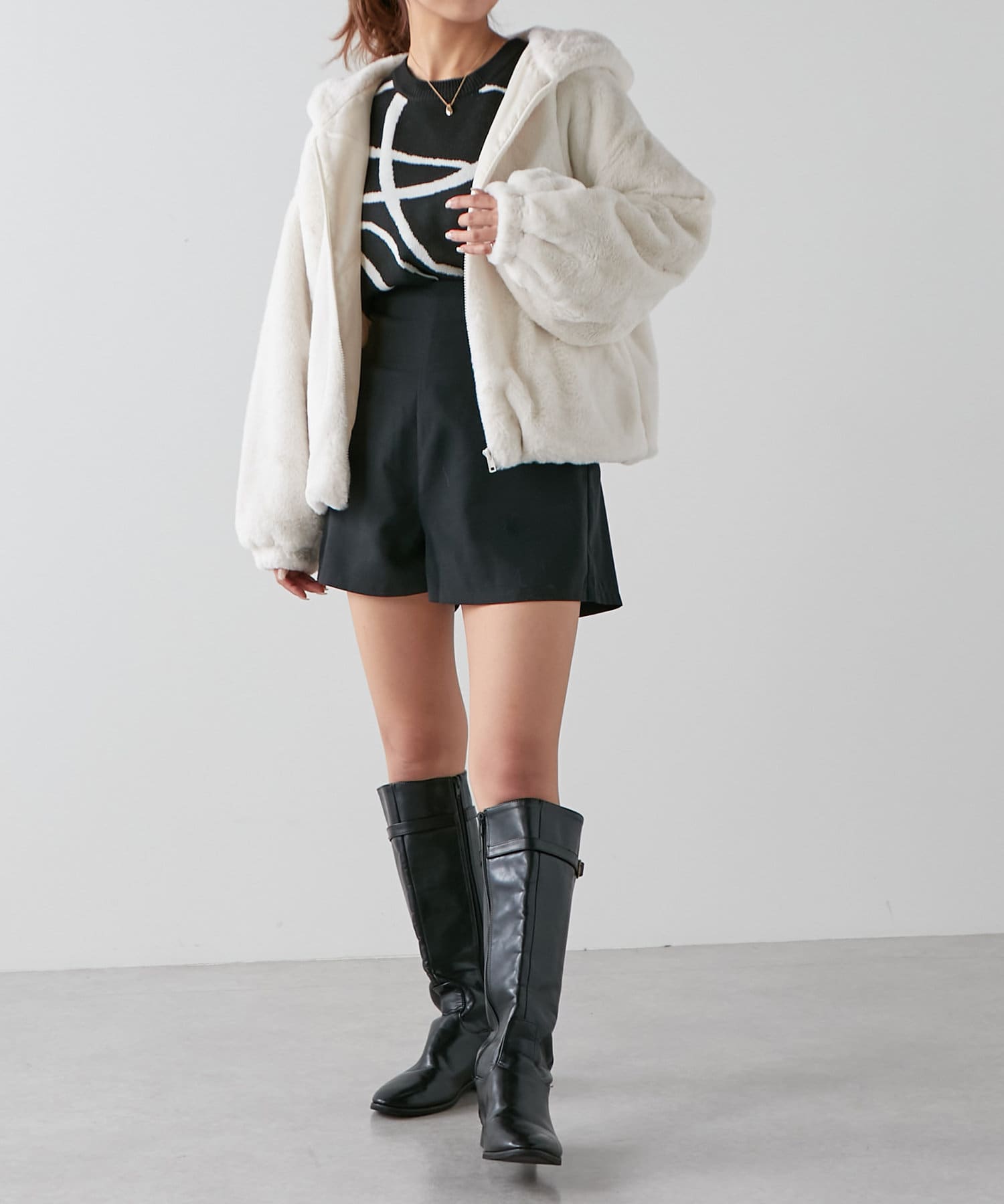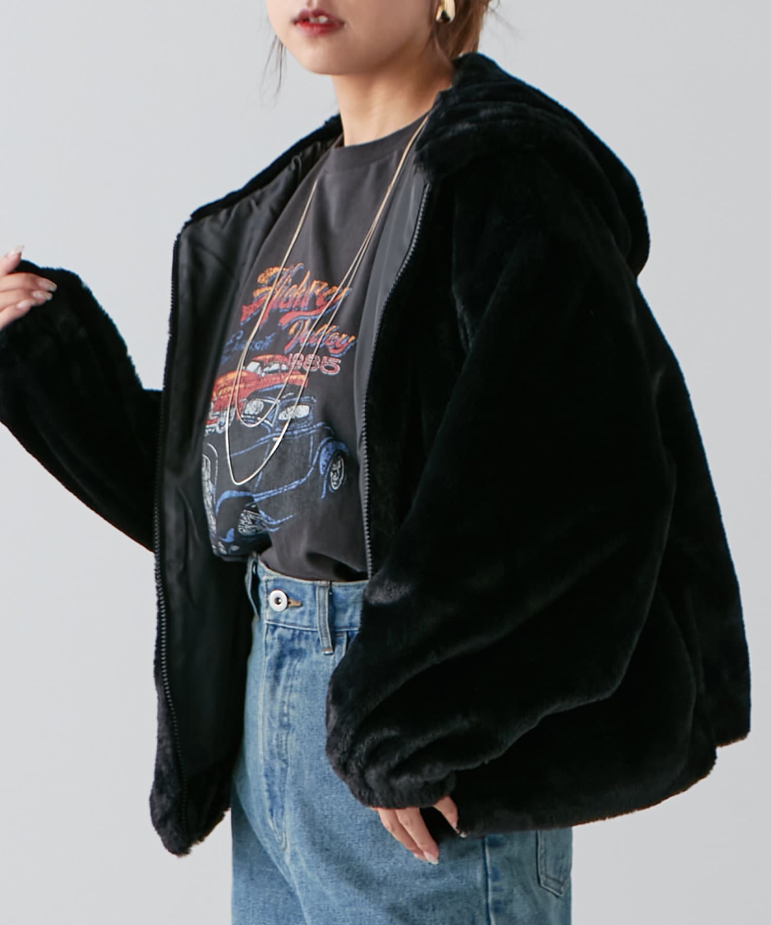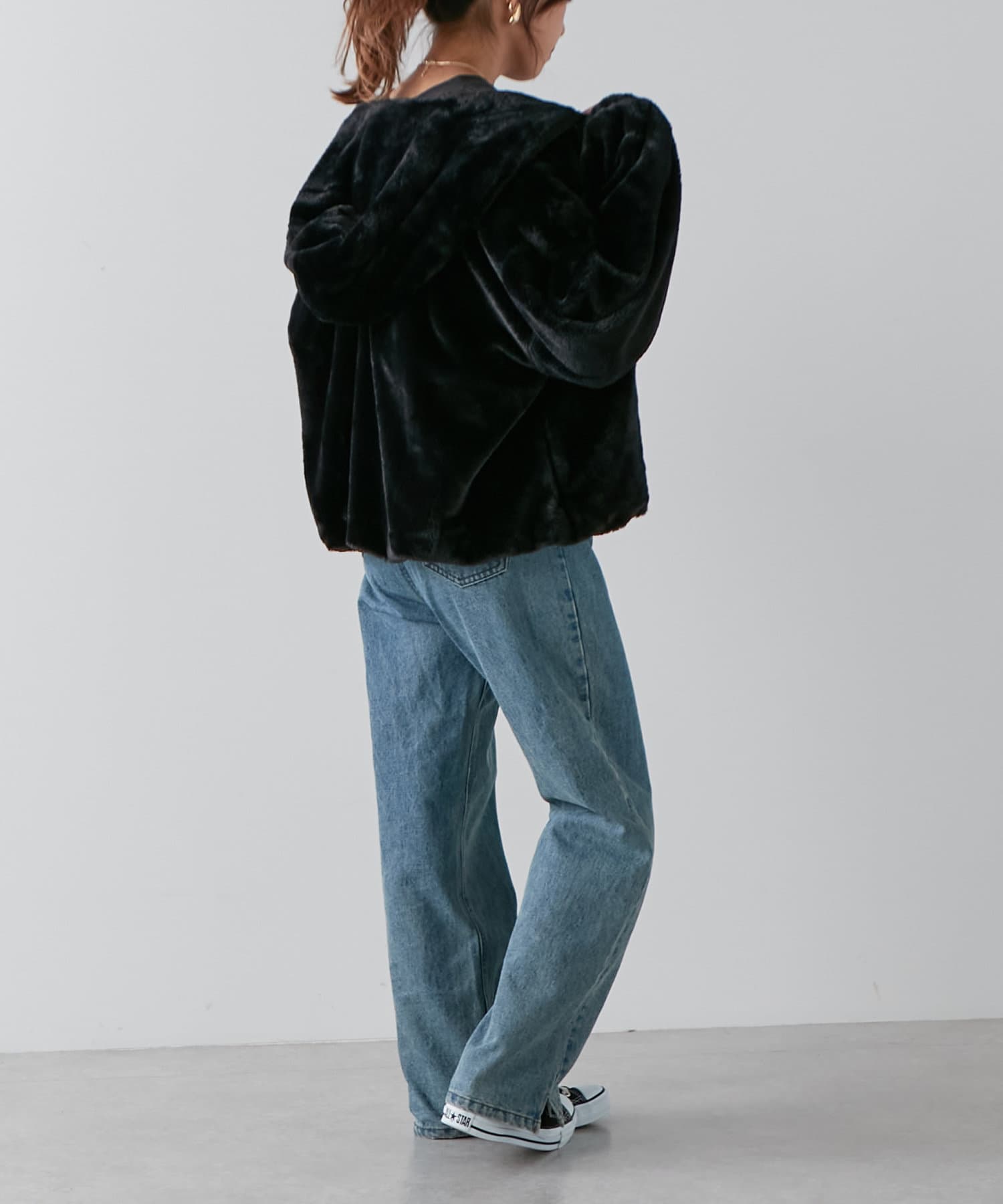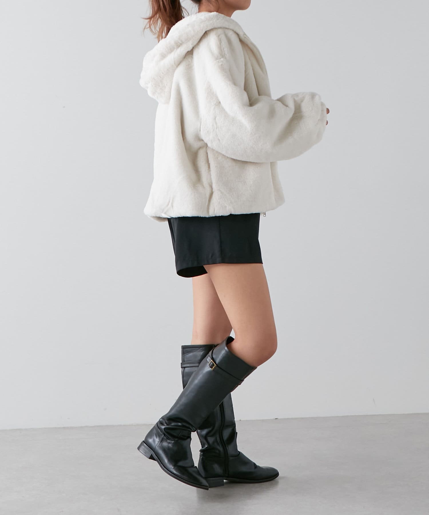 ・ボリュームのあるフード付きで小顔効果も抜群。