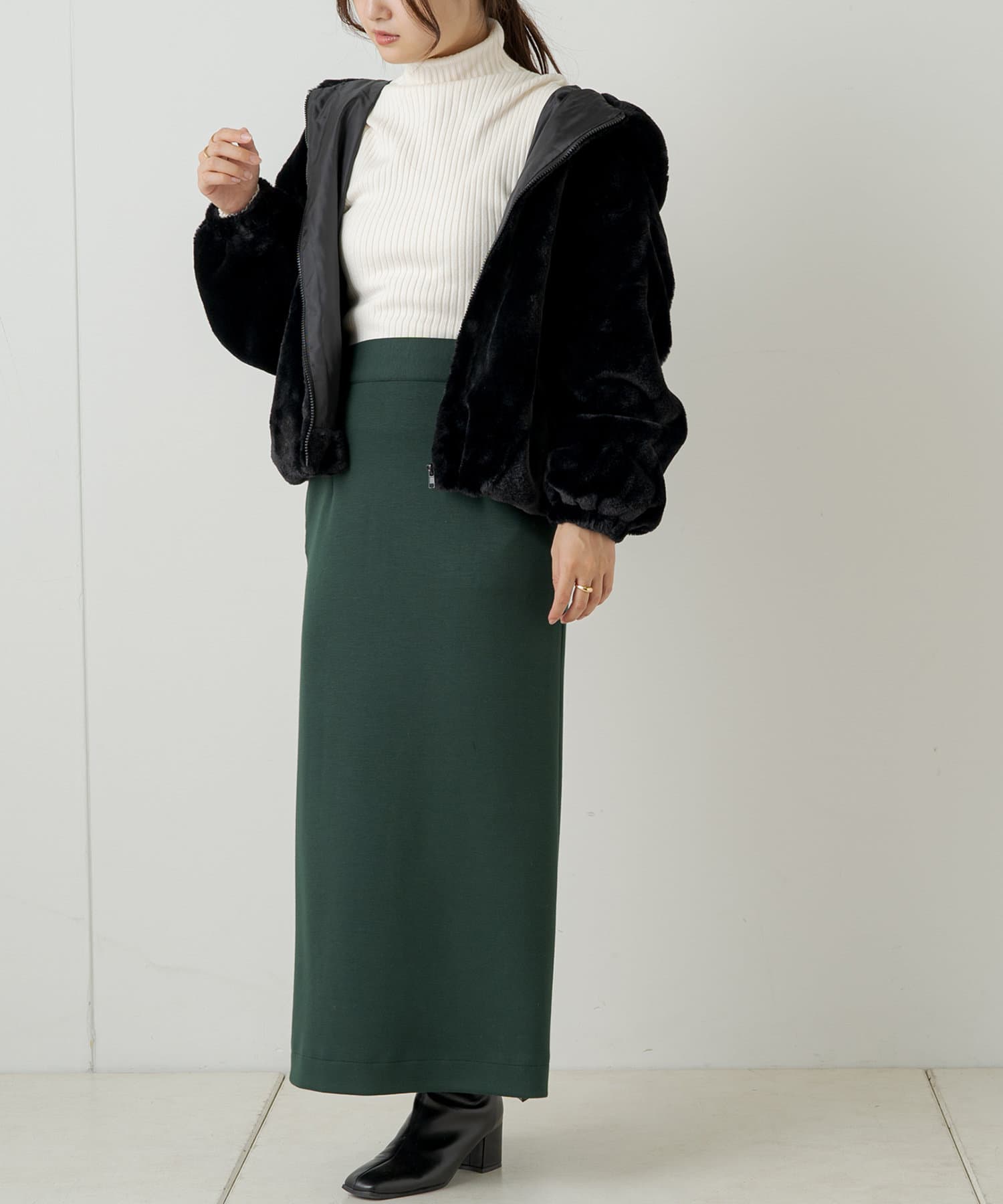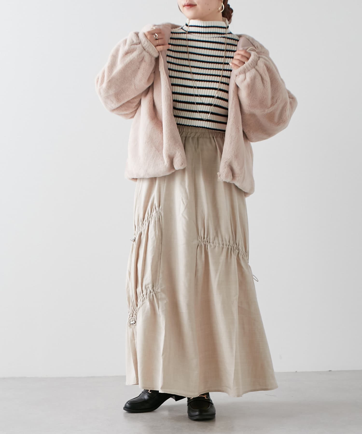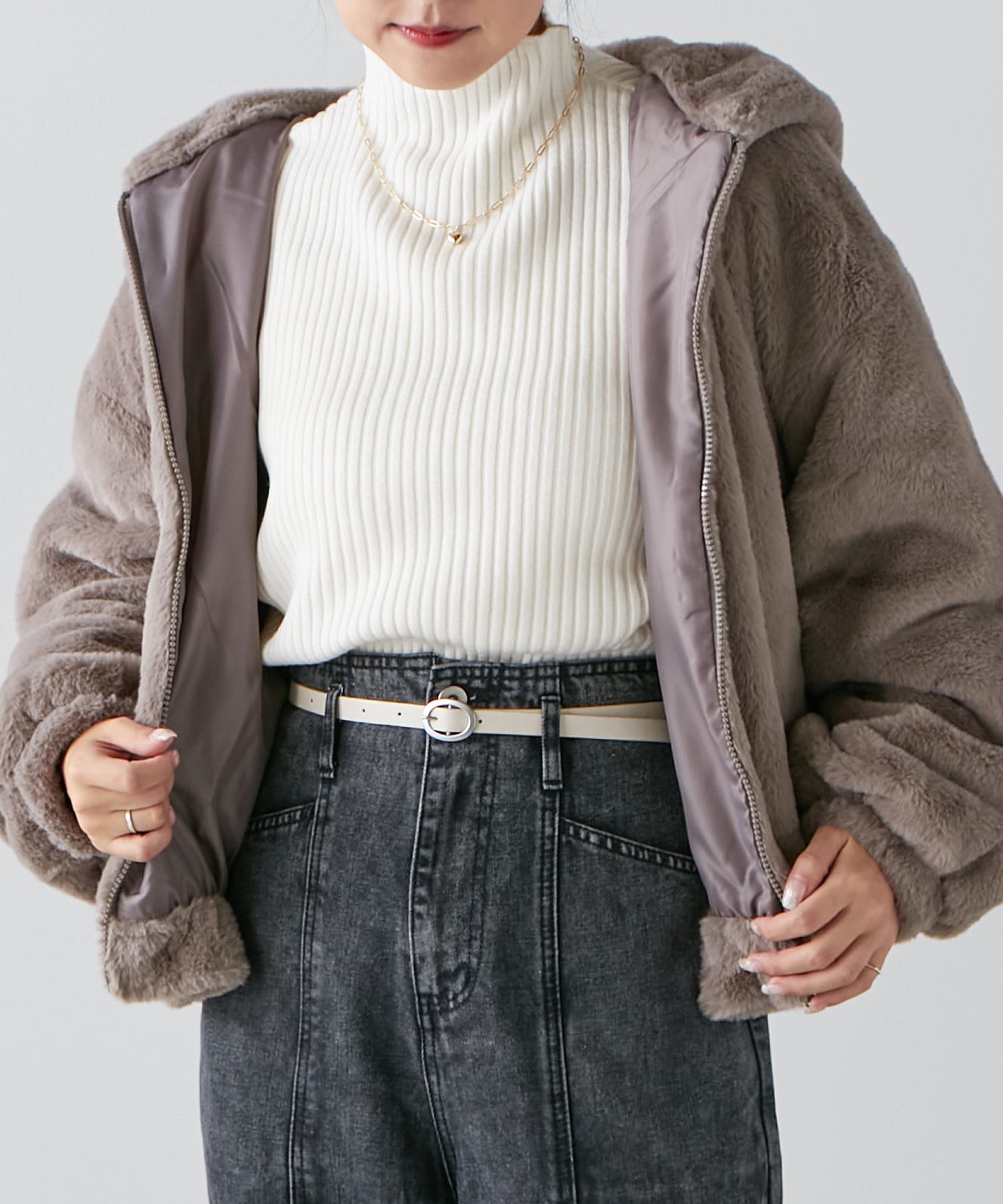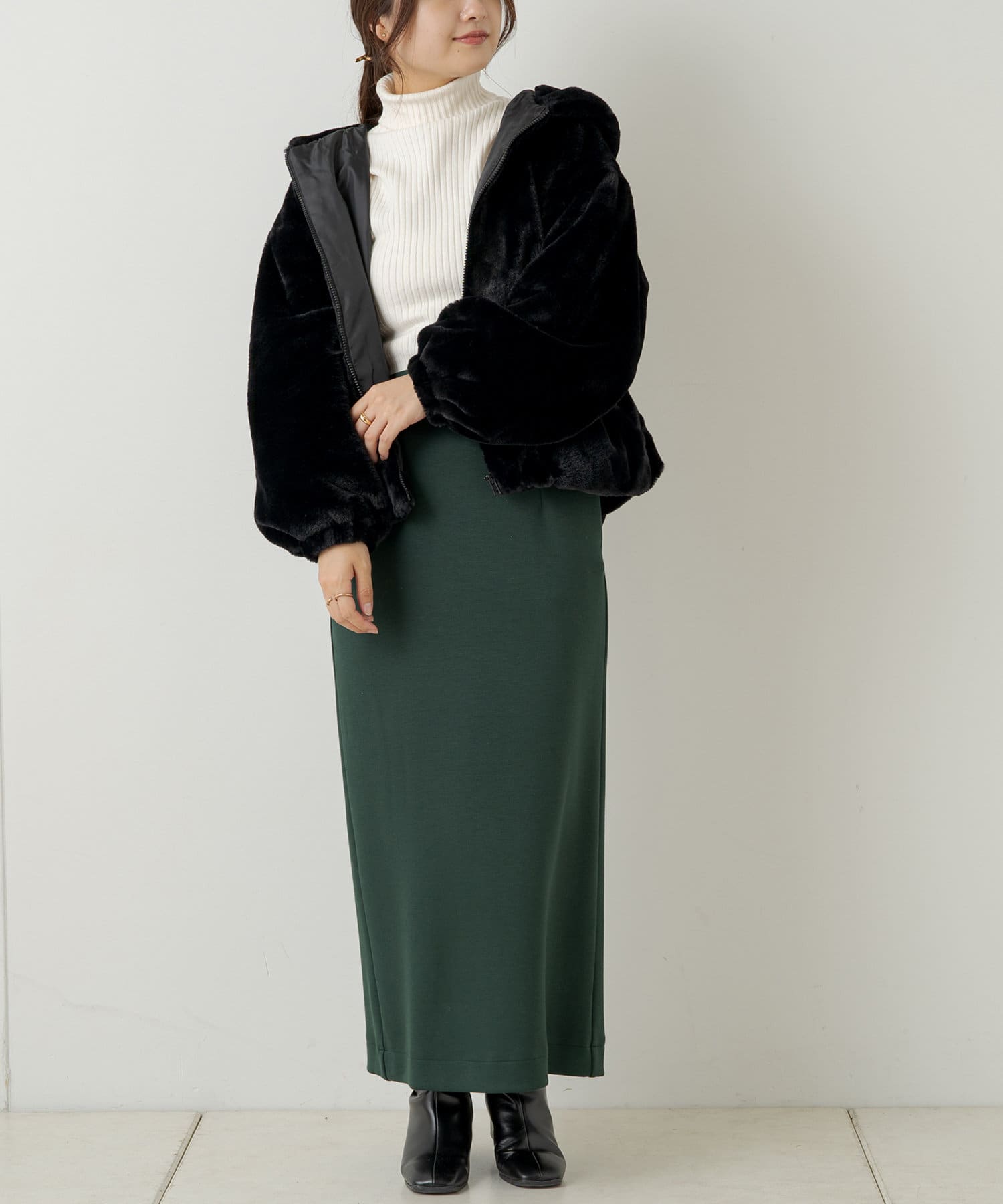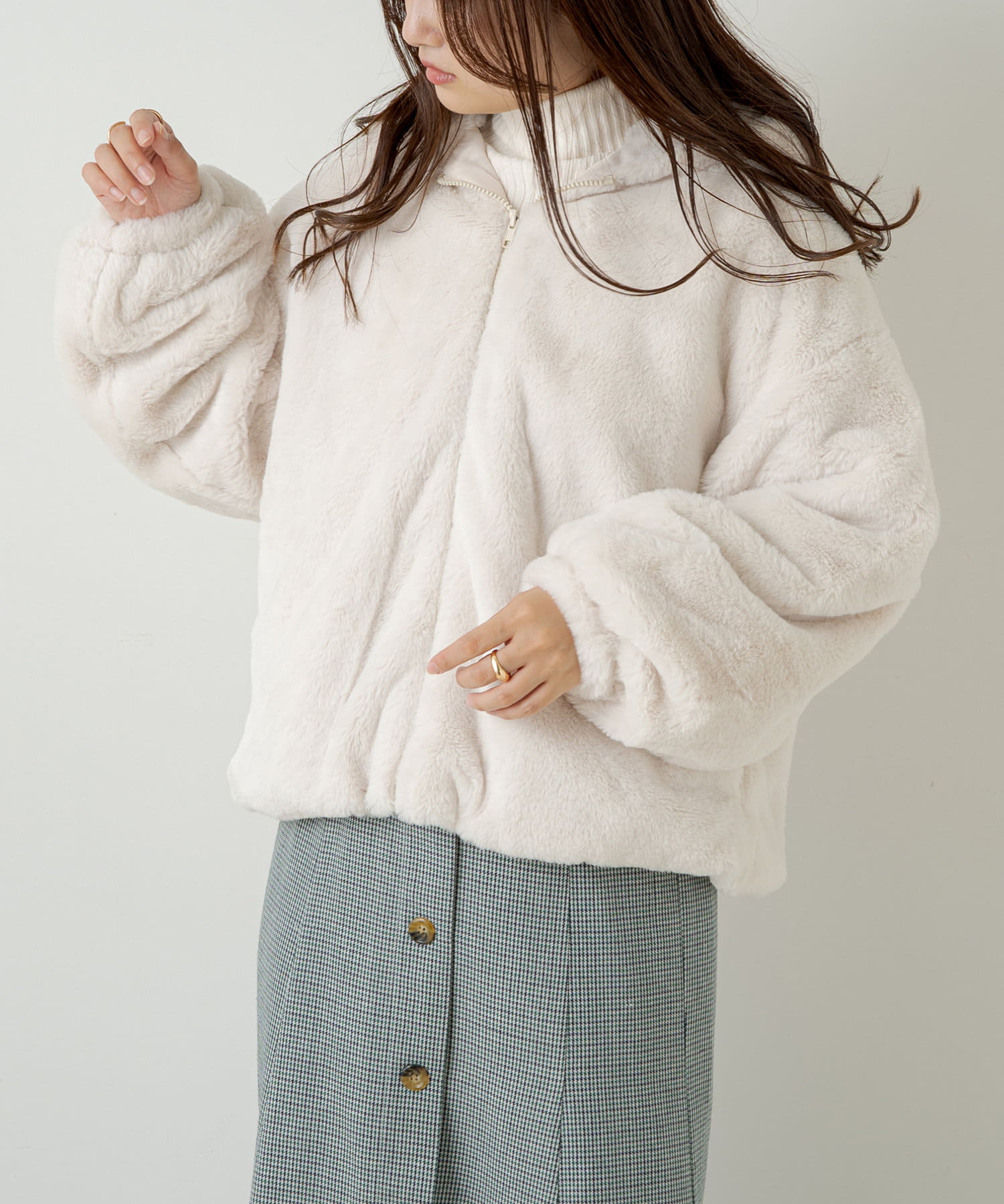 ・ボリュームのあるフード付きで小顔効果も抜群。