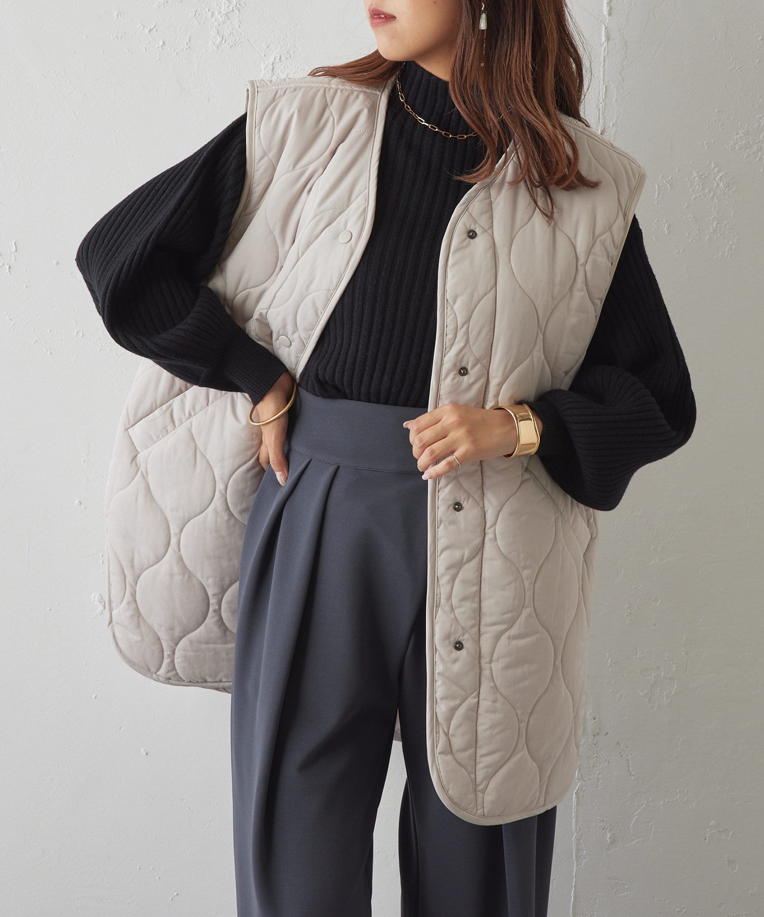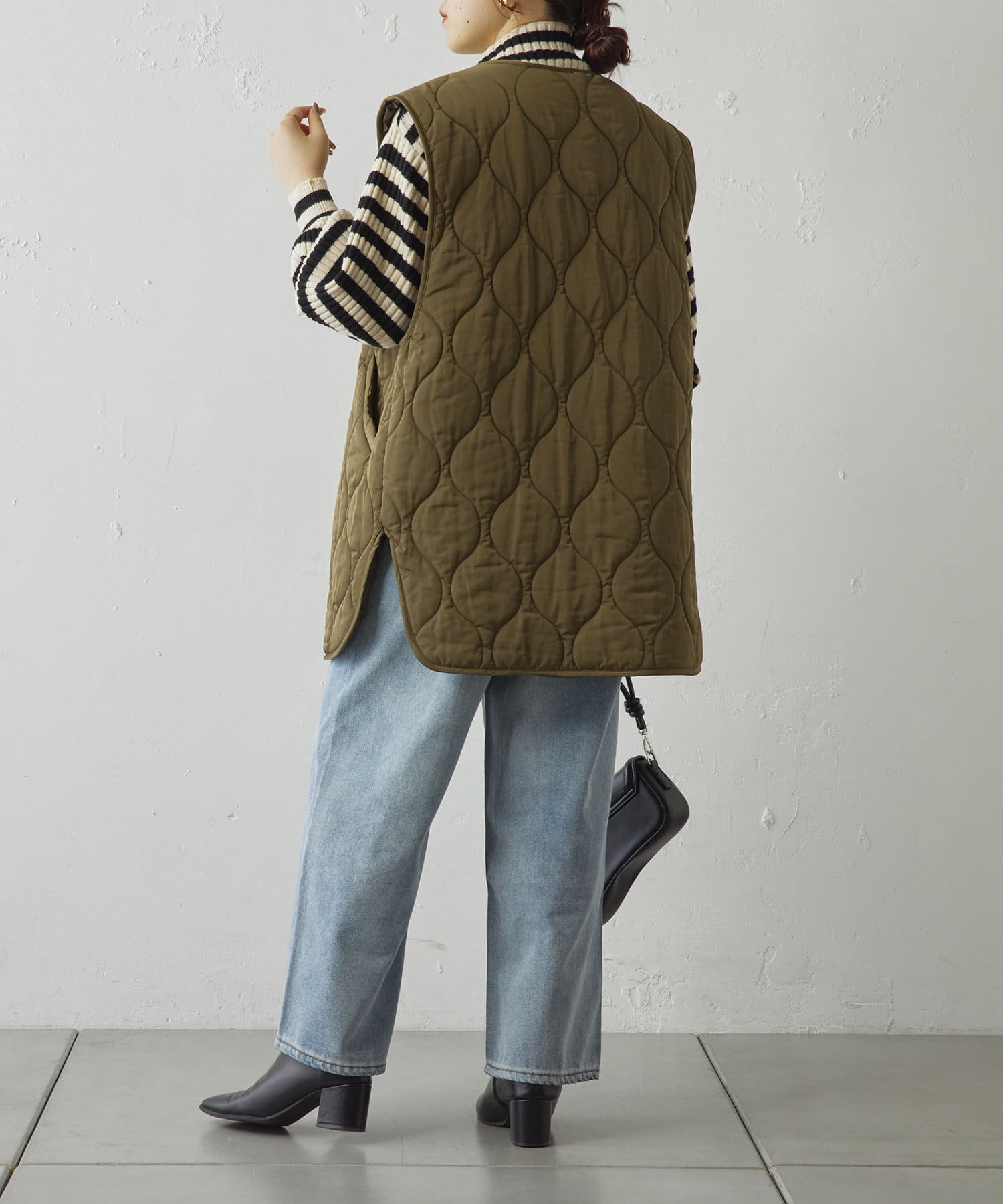 ・オーバーサイズのベストでも重たく見せないこだわりのキルティングです!