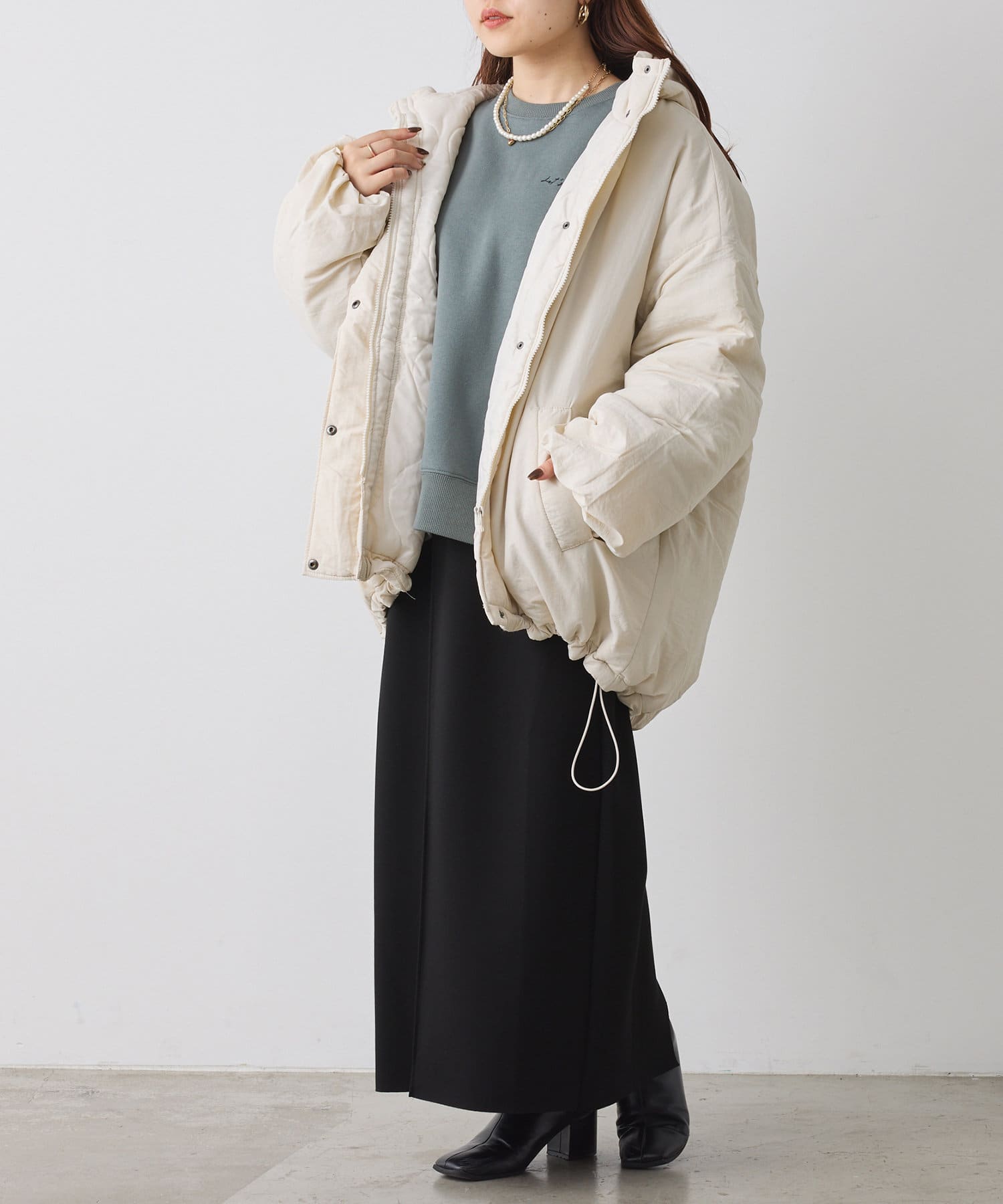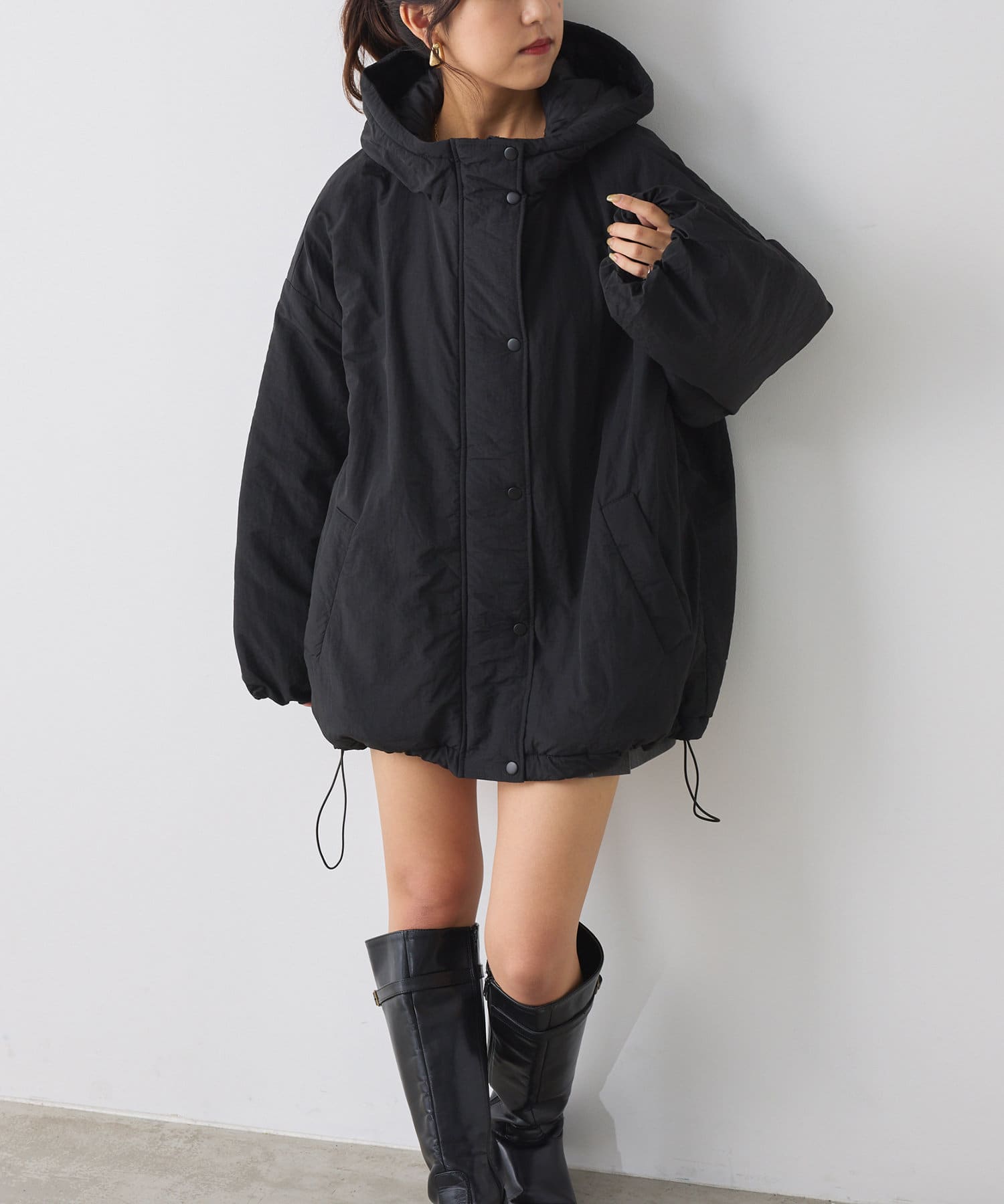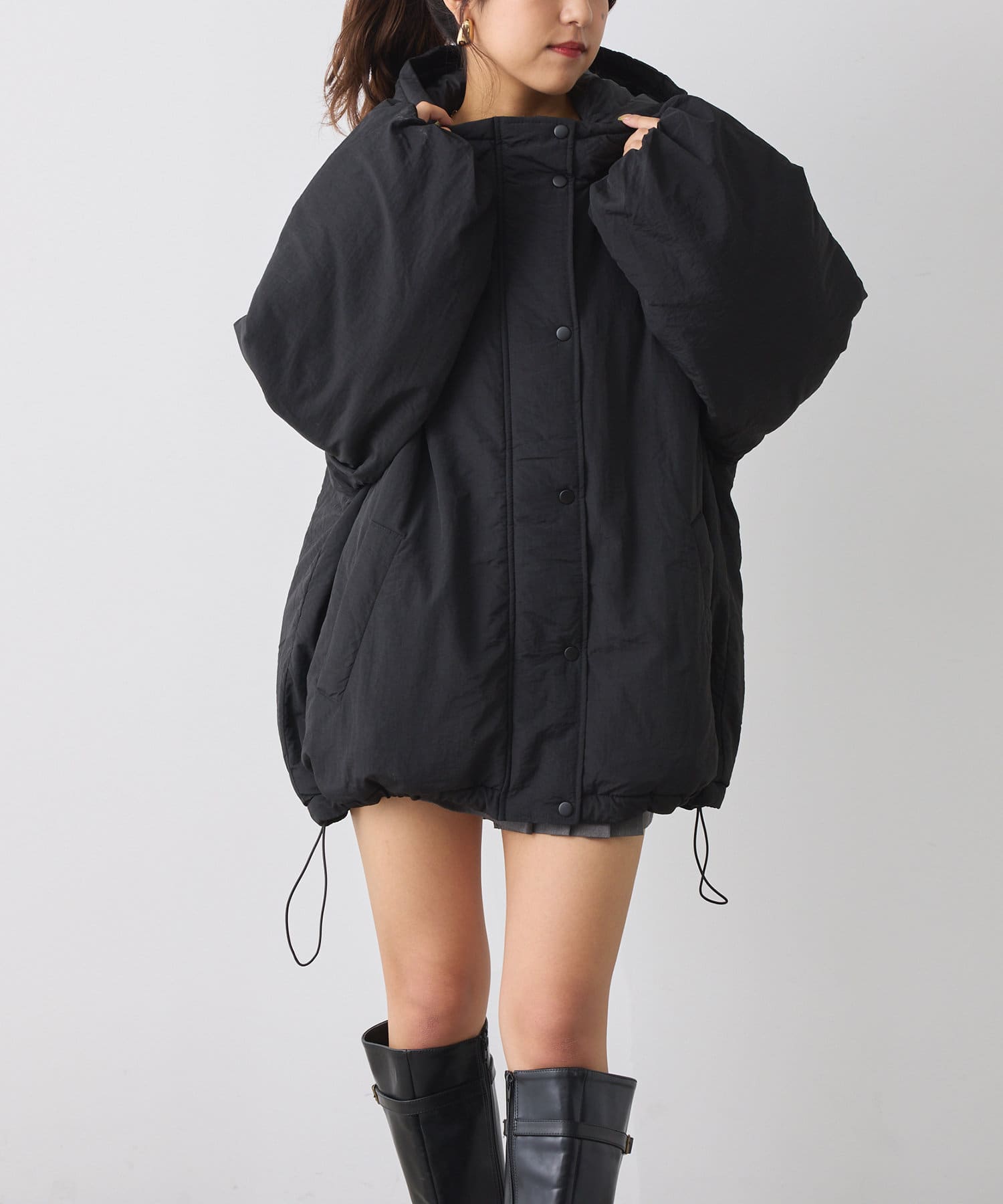・ボリューム感があるアウターなのでミニボトム合わせもおすすめな一枚。