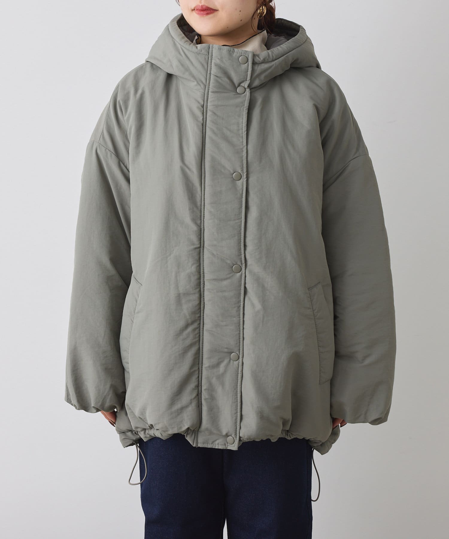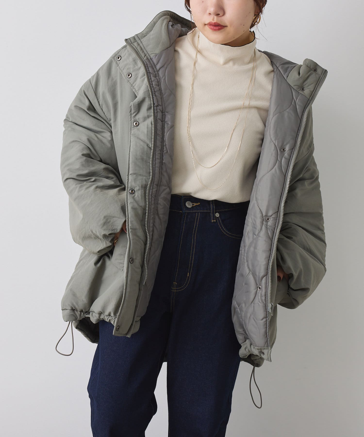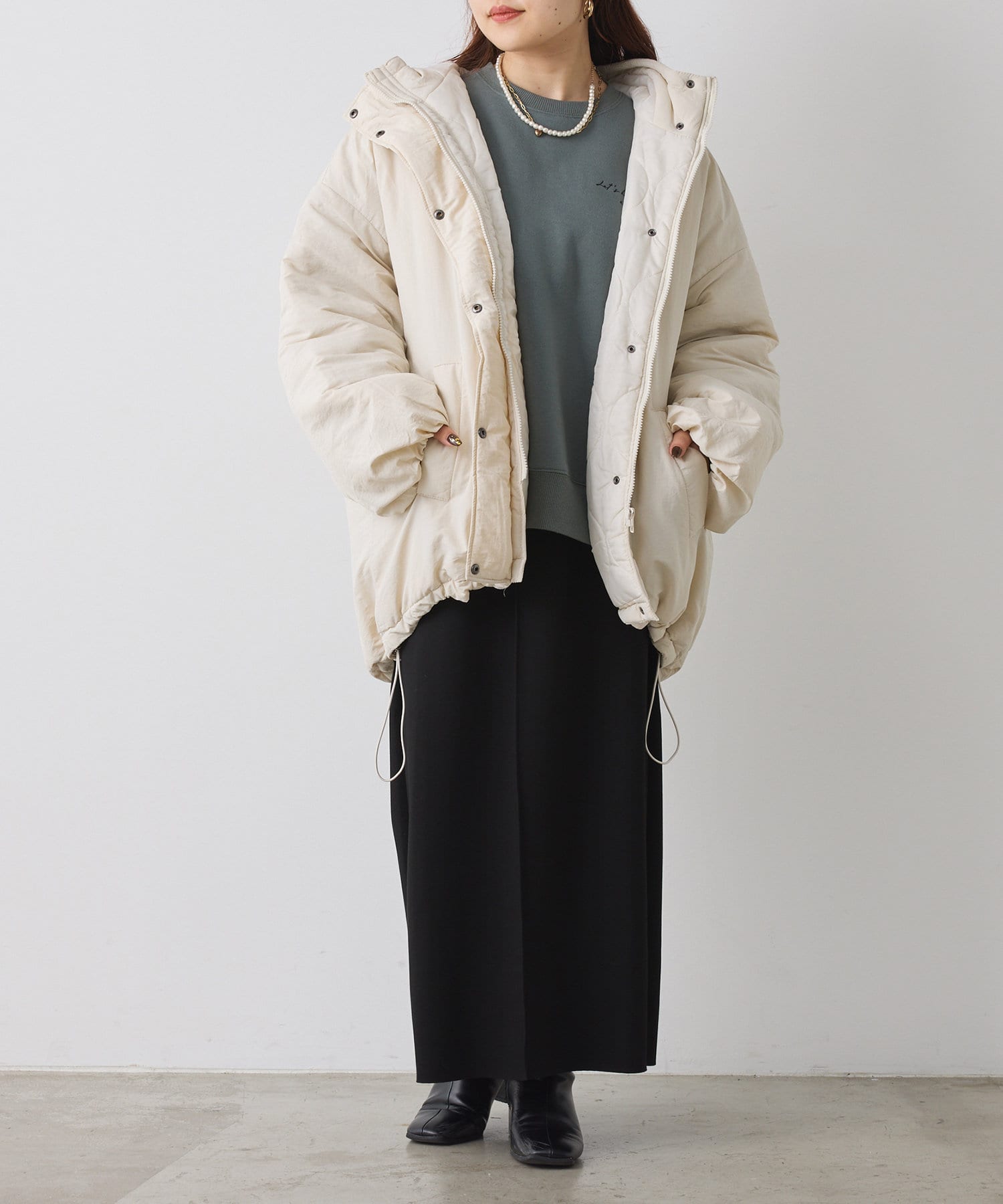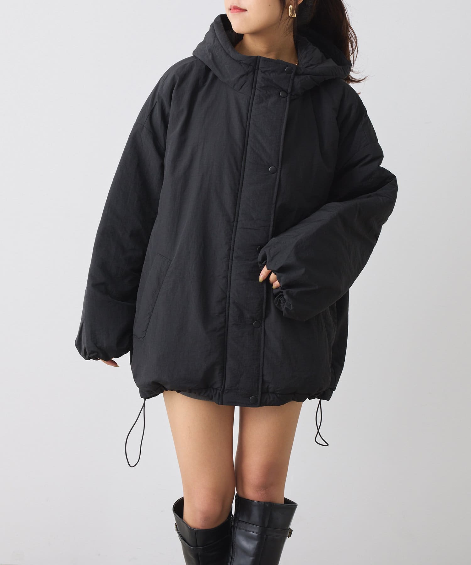 ・ボリューム感があるアウターなのでミニボトム合わせもおすすめな一枚。