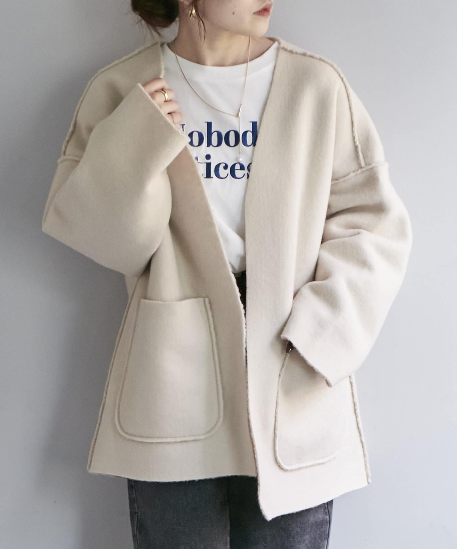 ・リバーシブルで素材感を変えて楽しめるジャケット