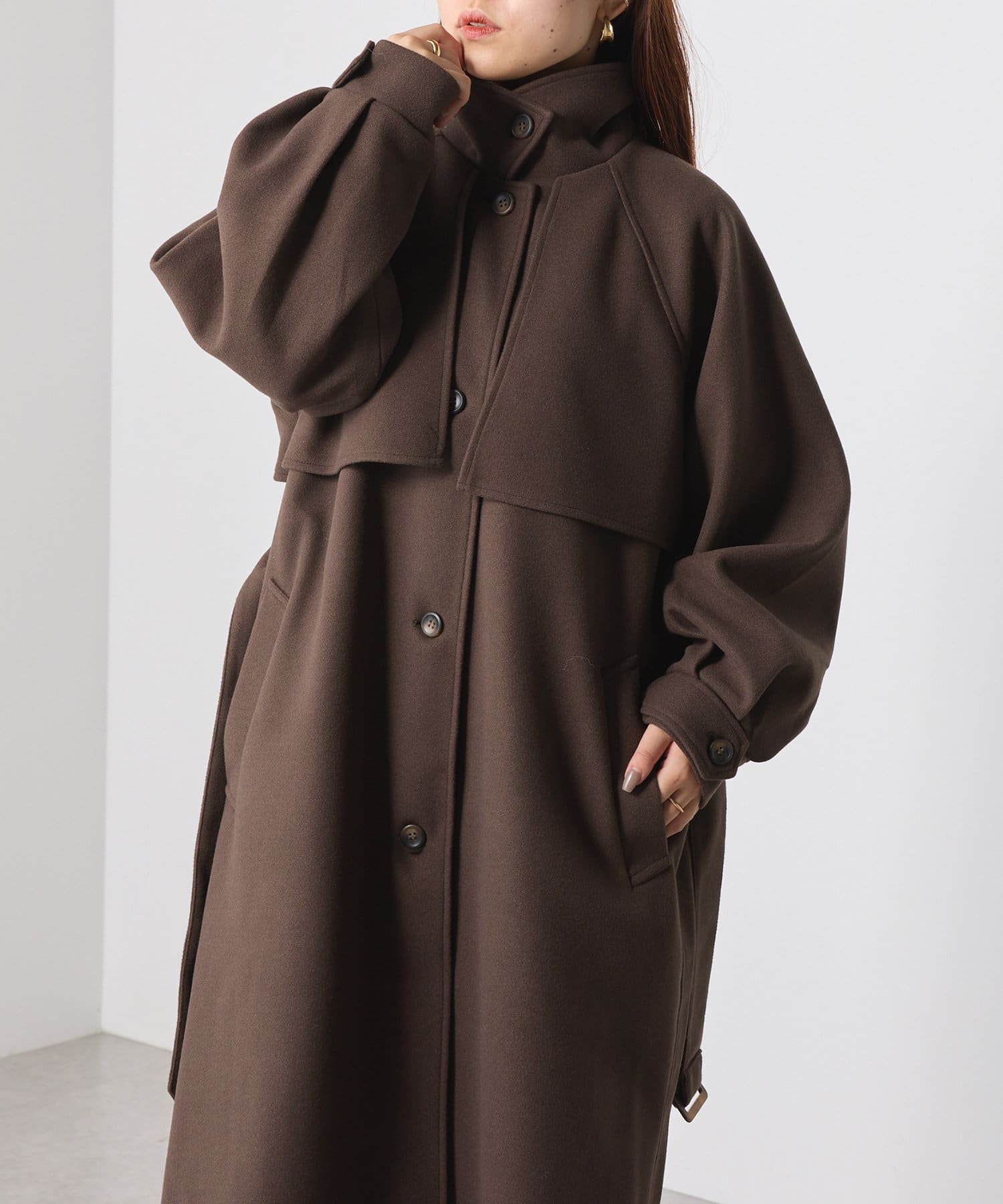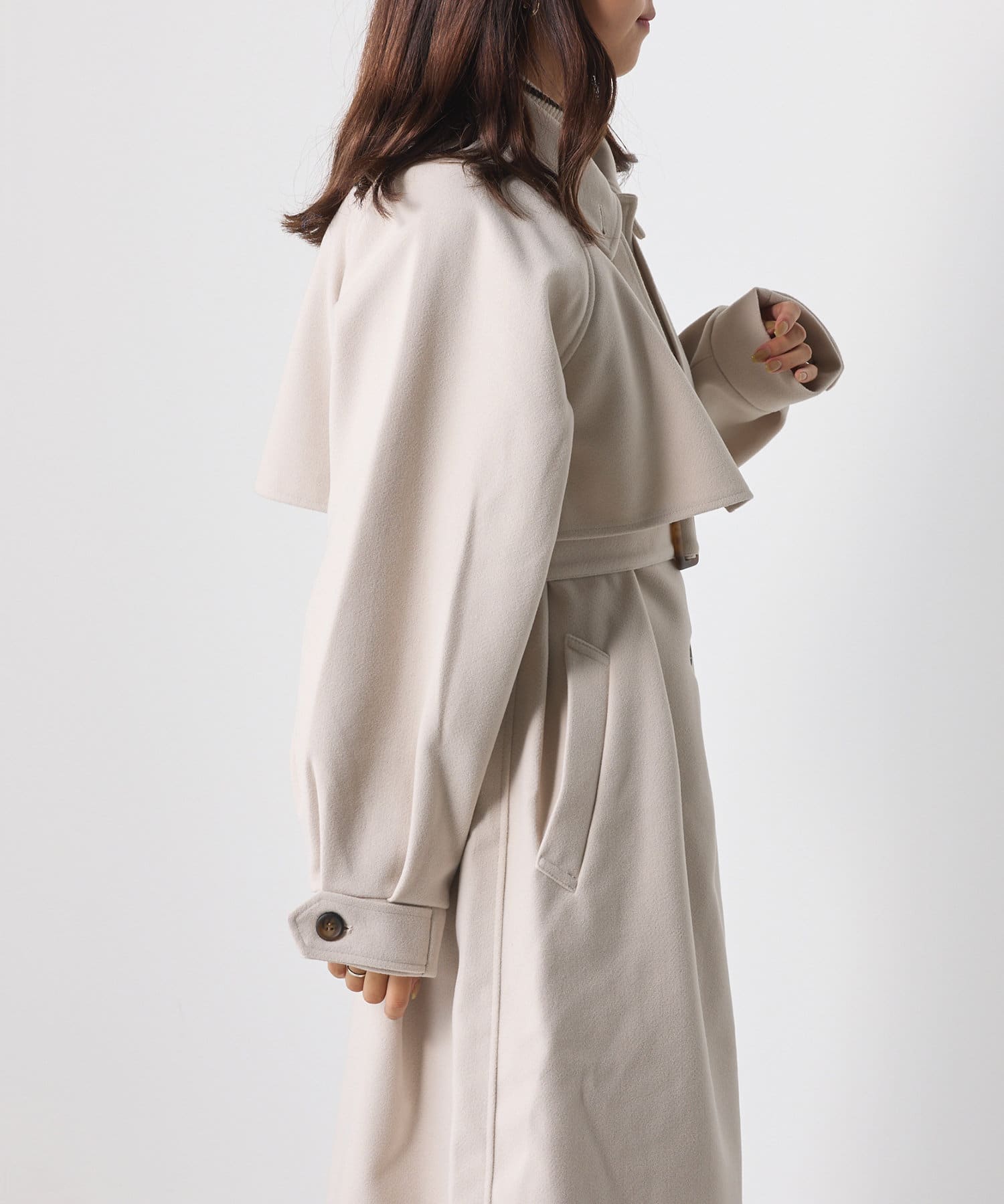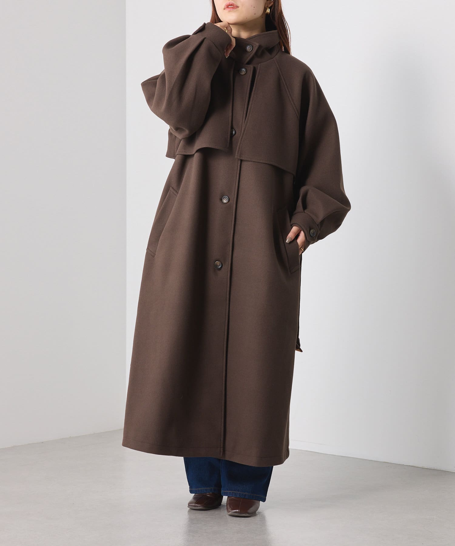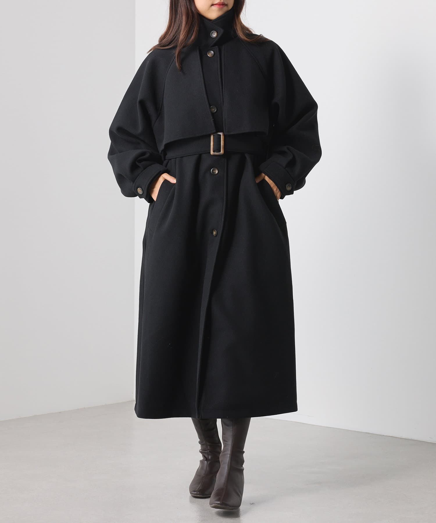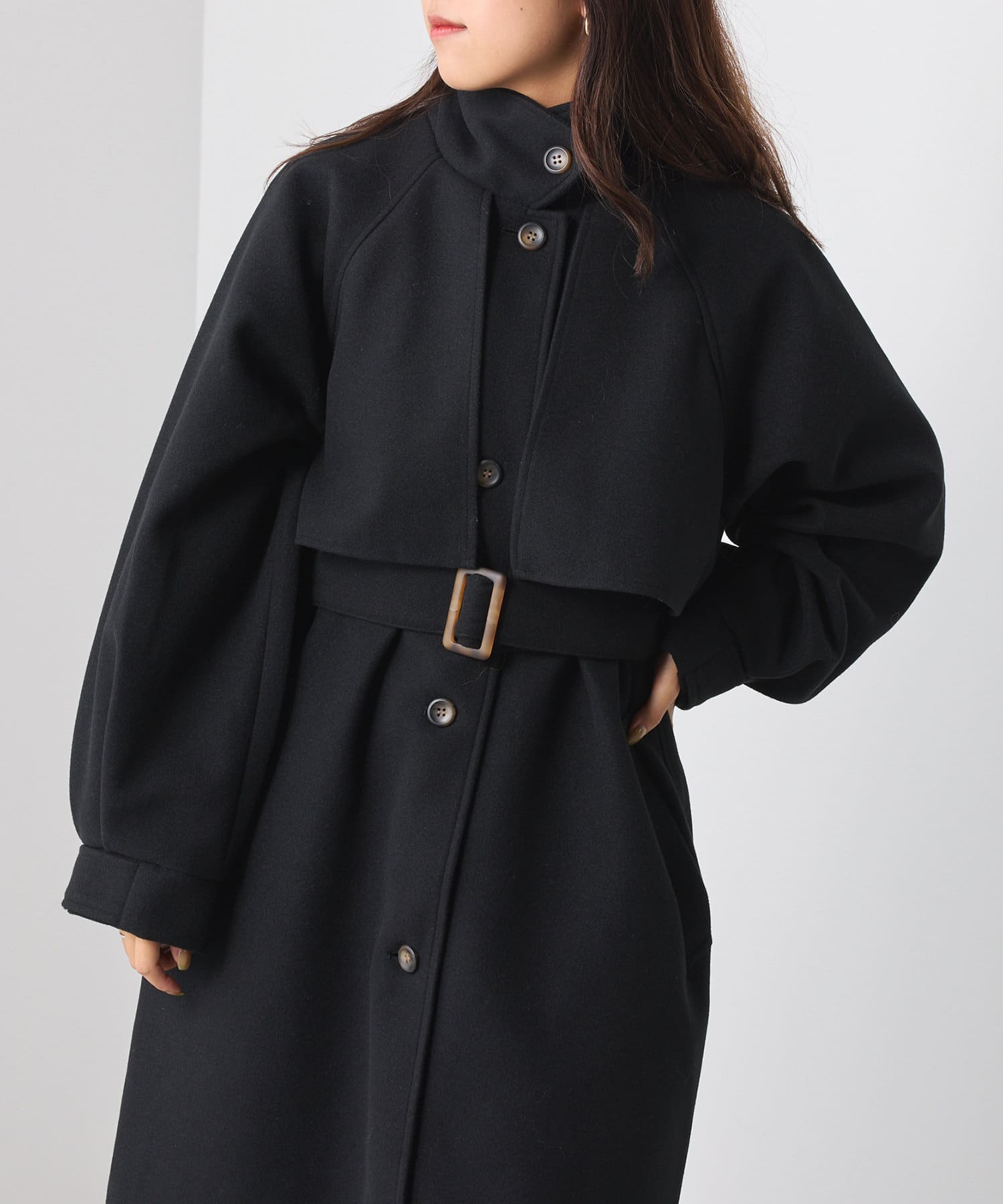・スタンドカラー×ケープデザインとトレンドが詰まった一着です。