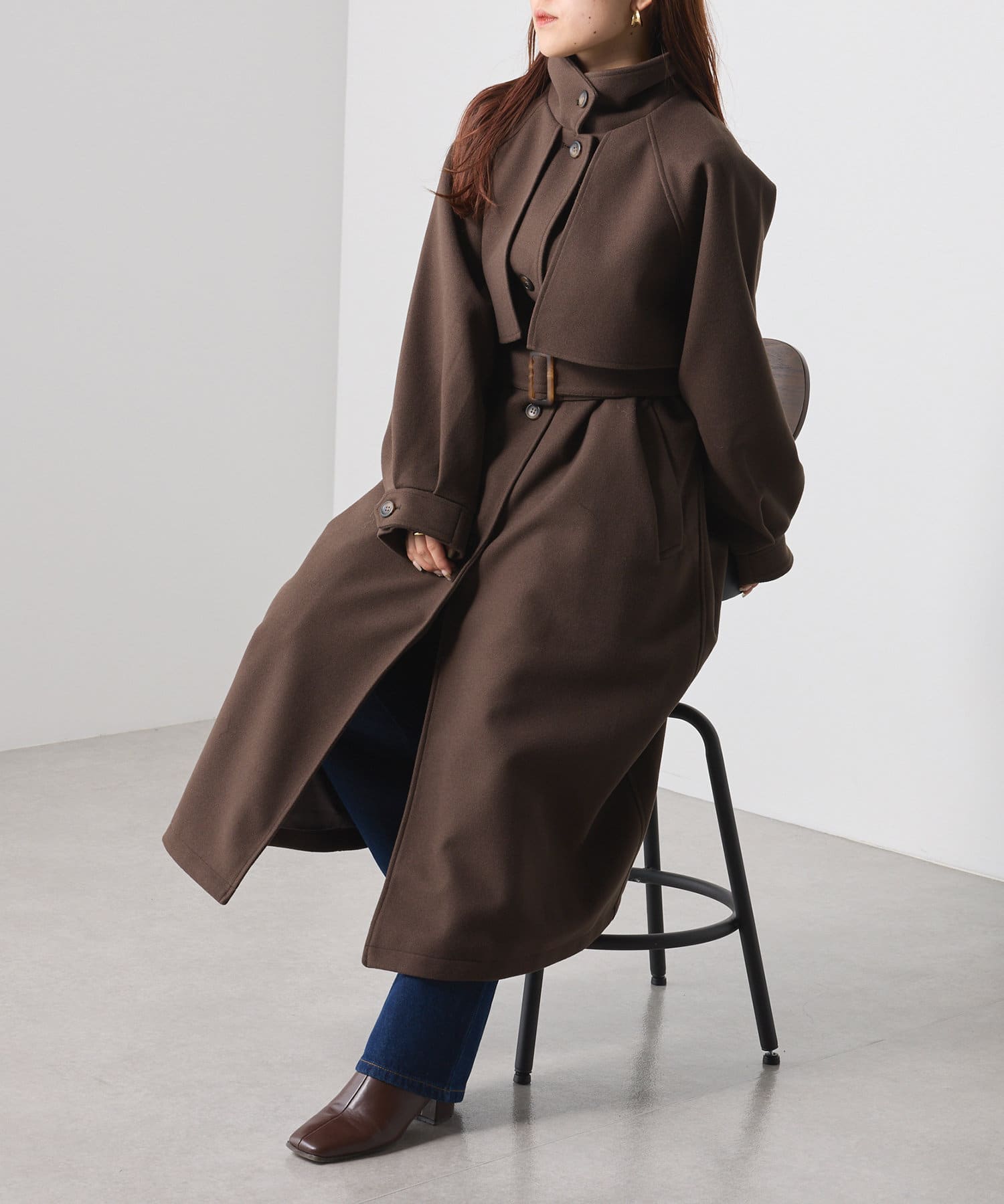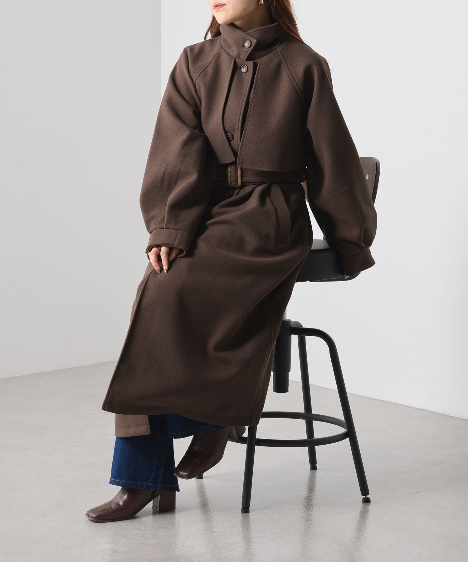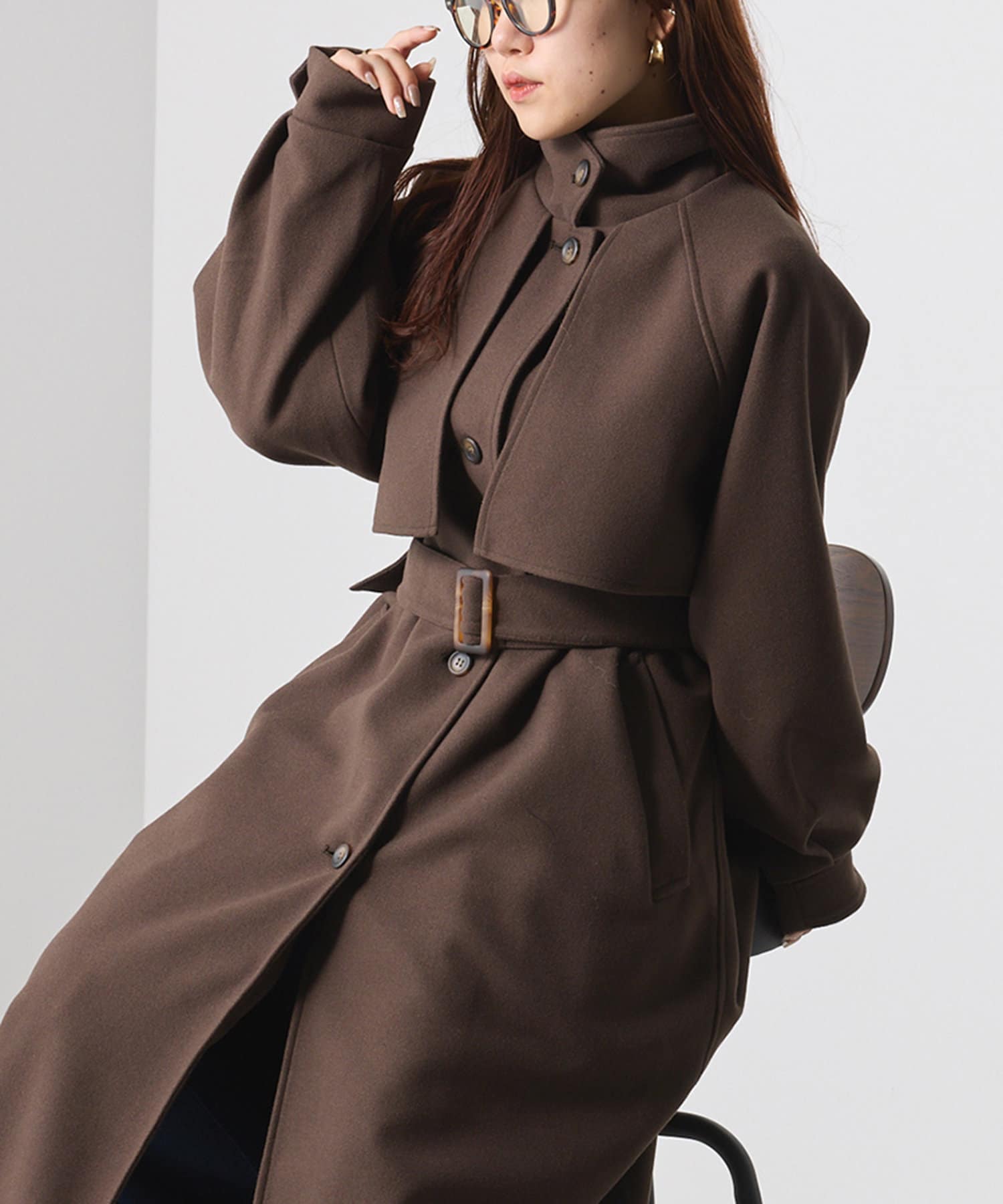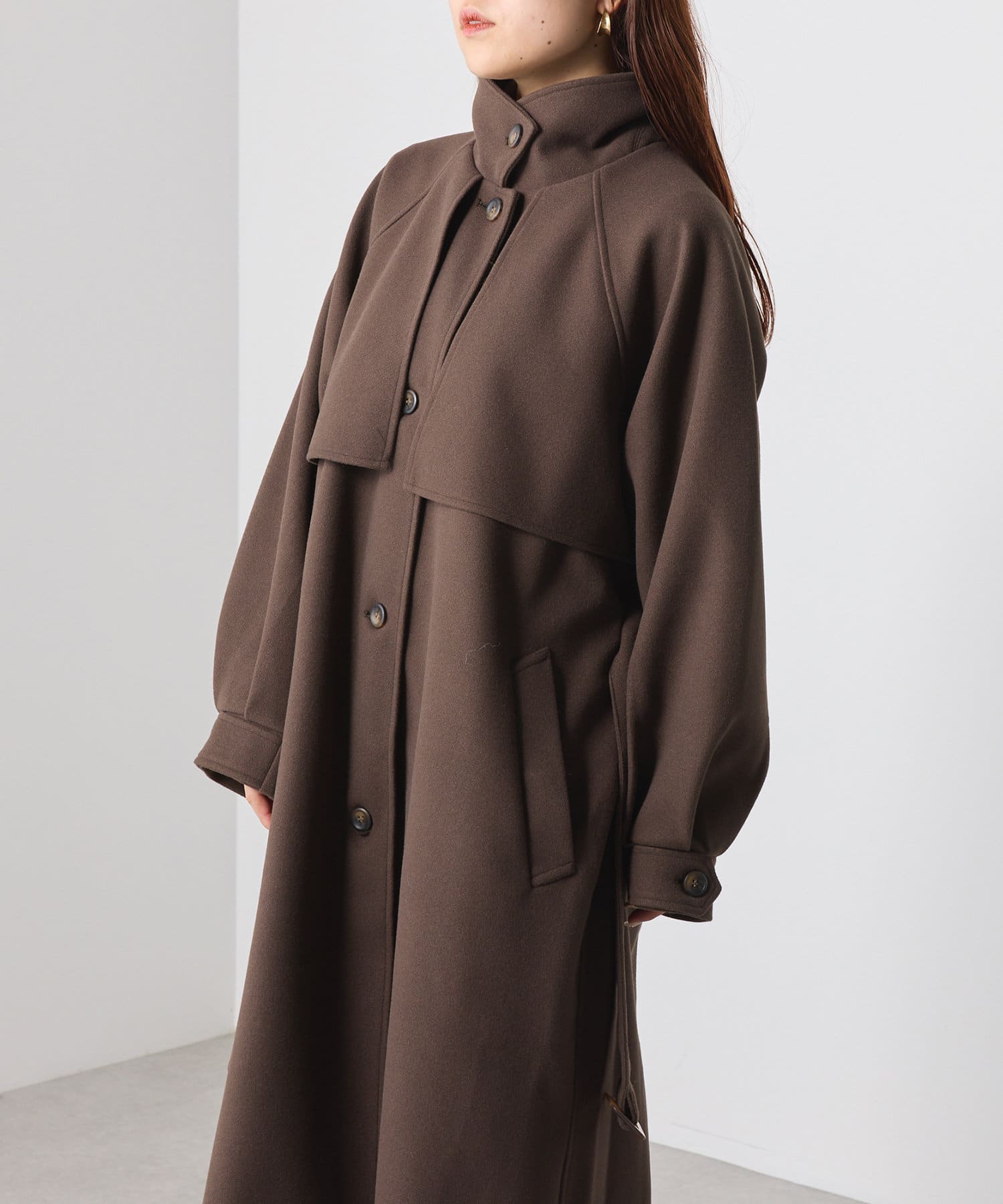 ・スタンドカラー×ケープデザインとトレンドが詰まった一着です。