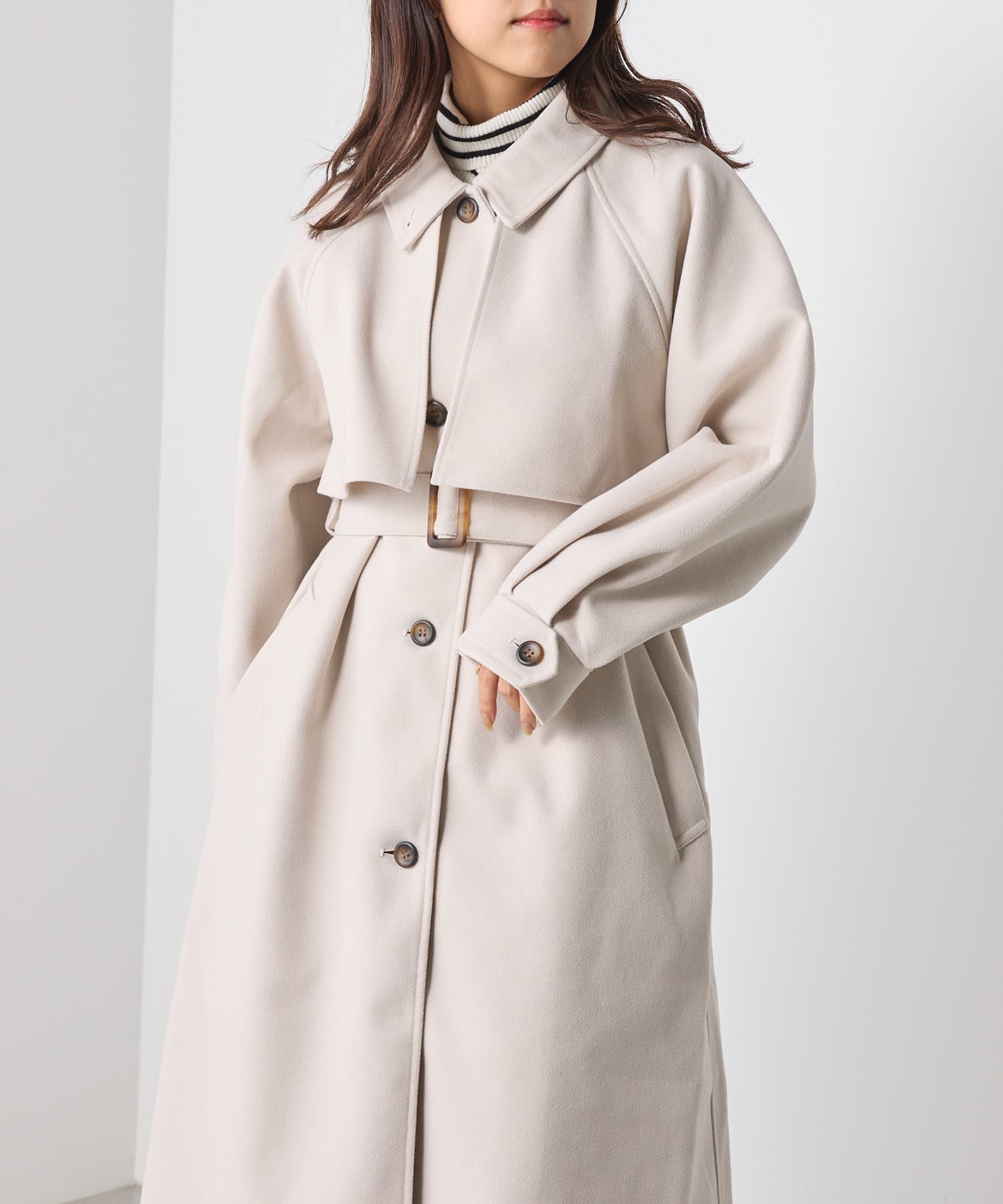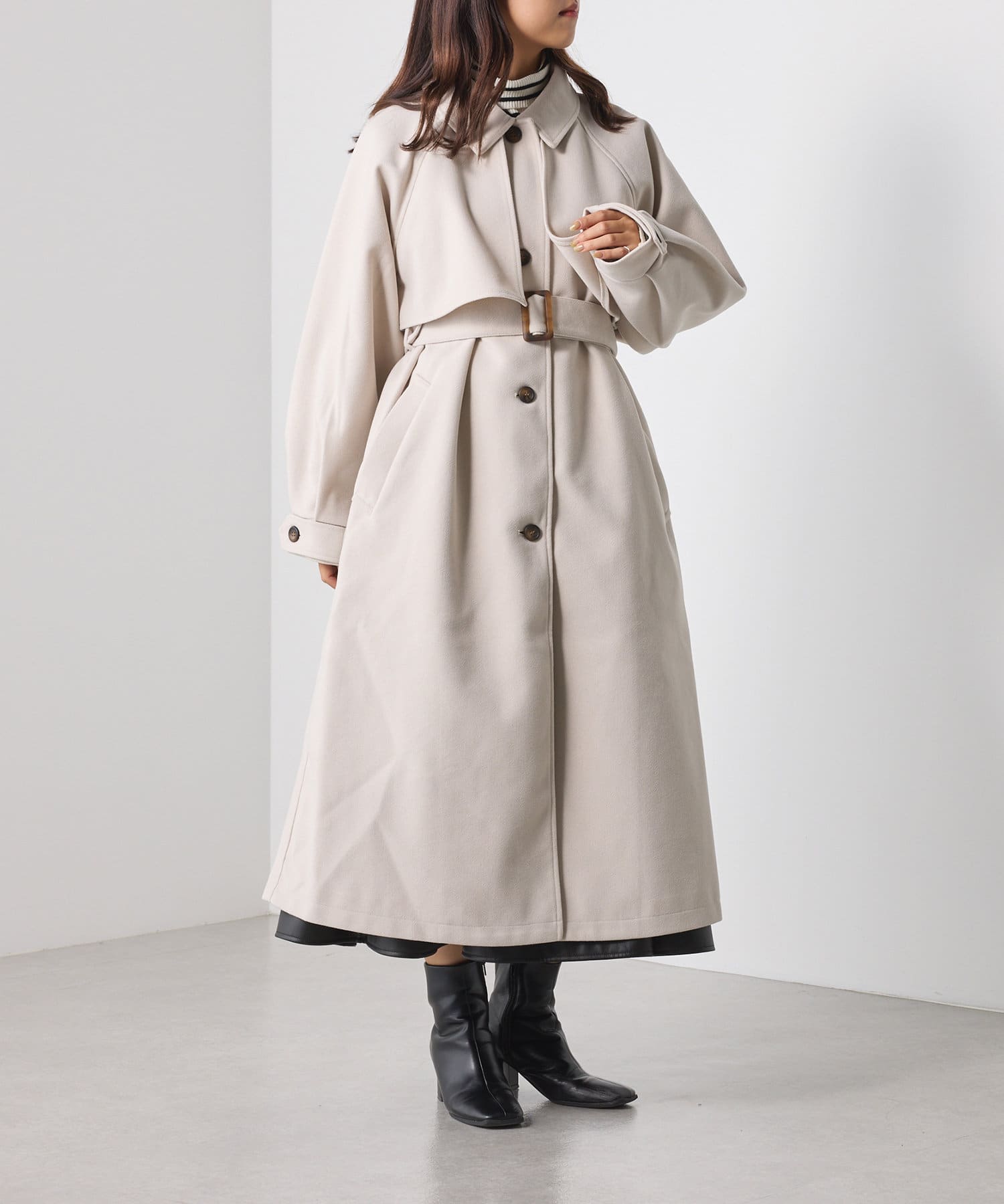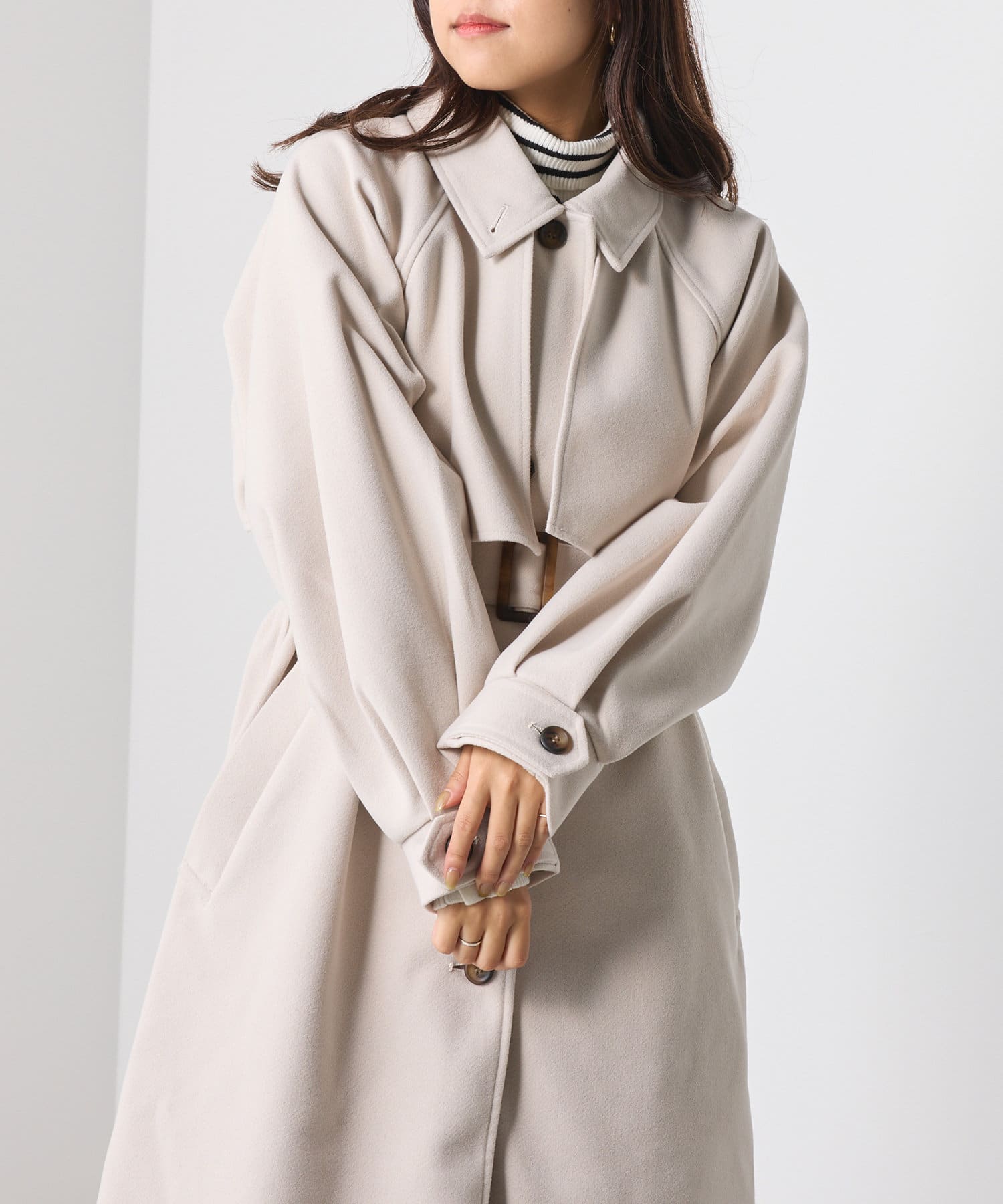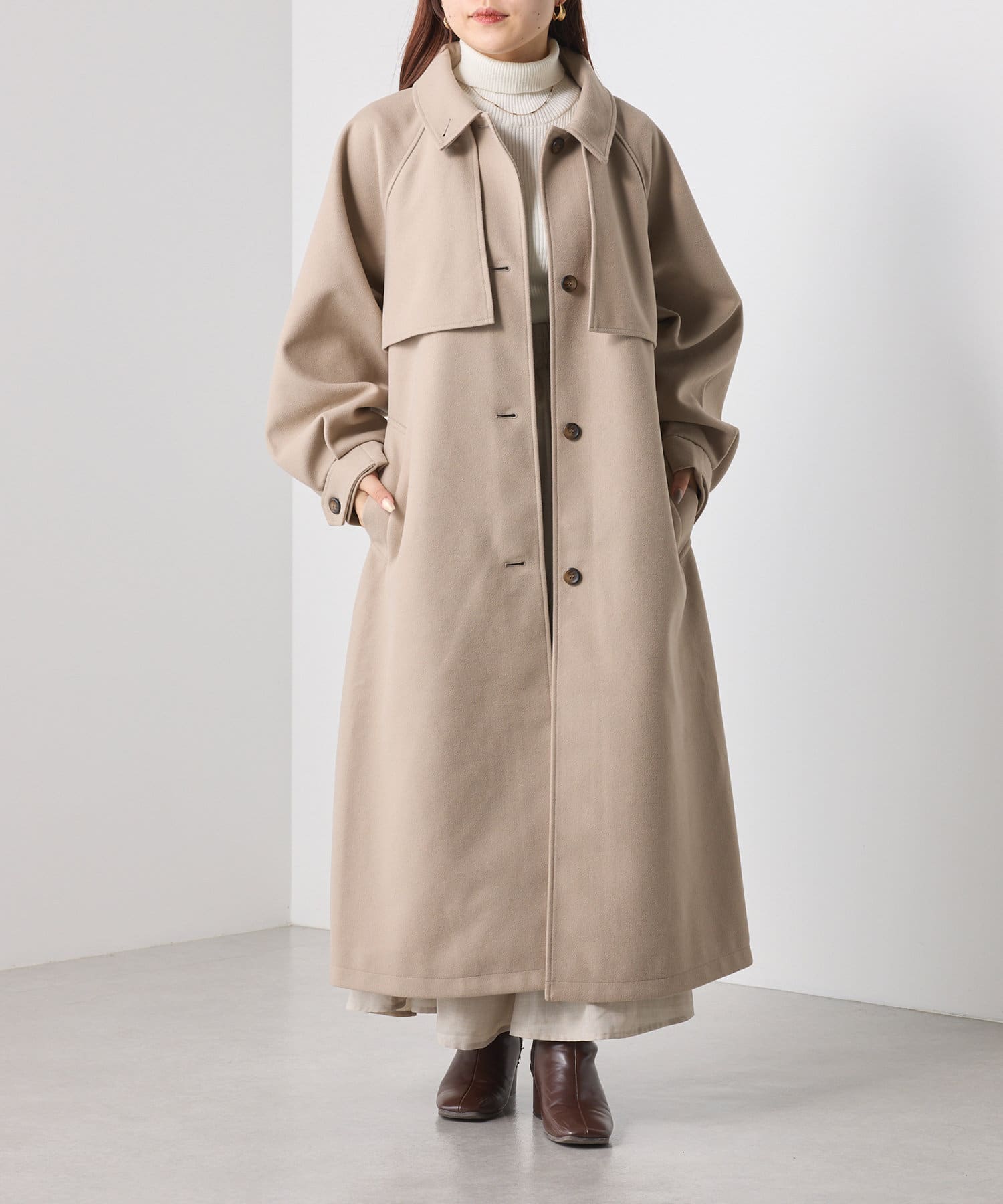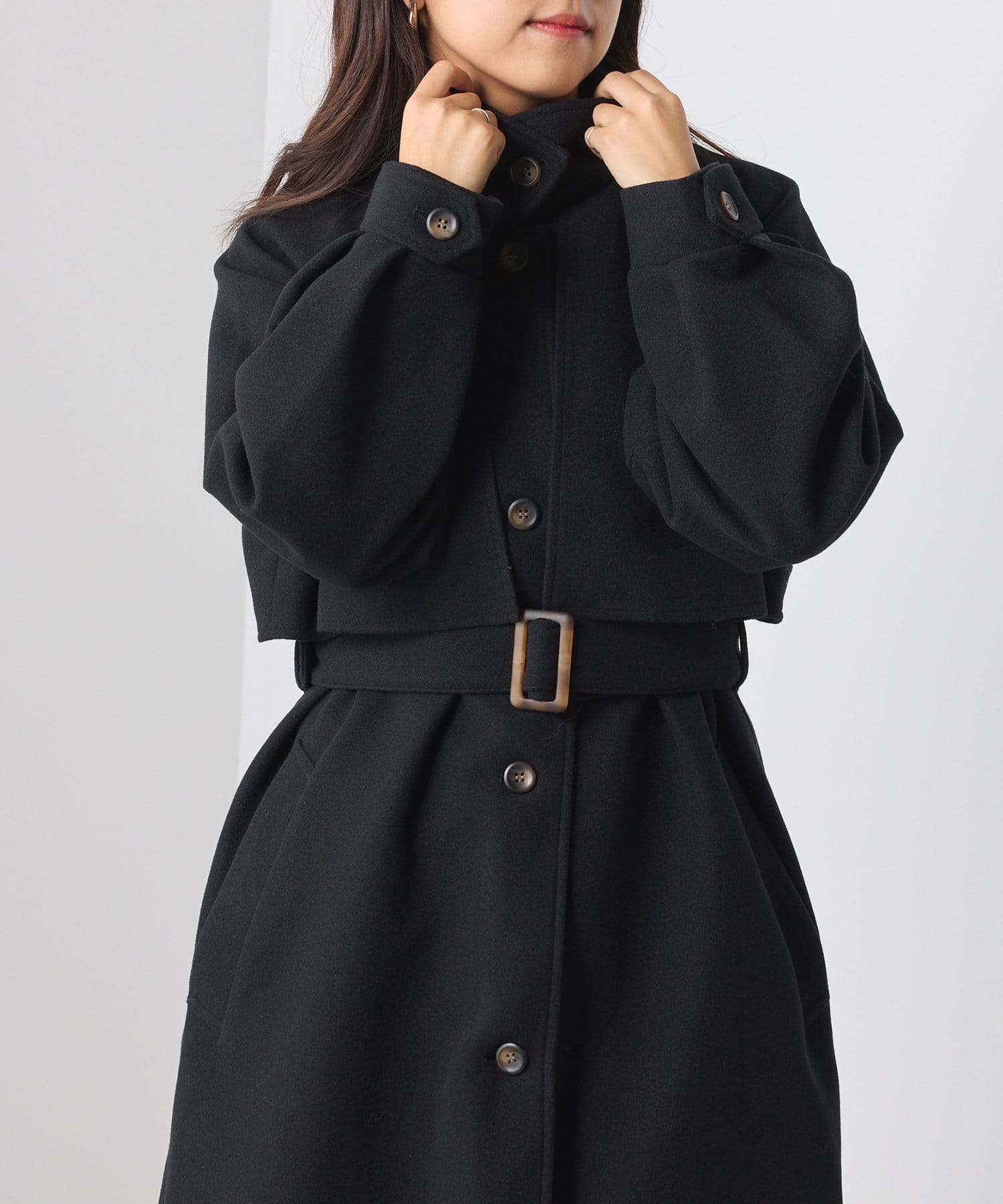 ・スタンドカラー×ケープデザインとトレンドが詰まった一着です。