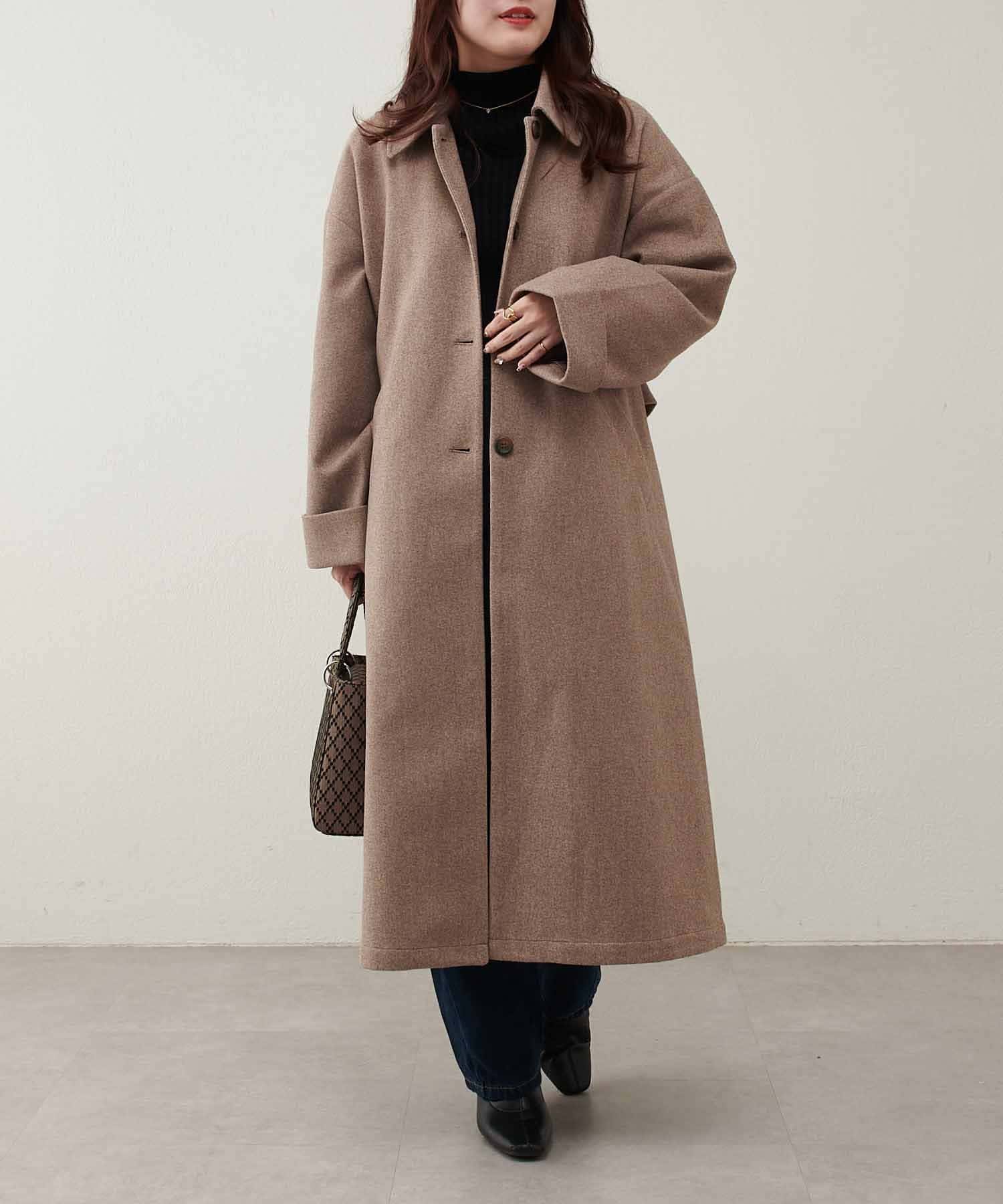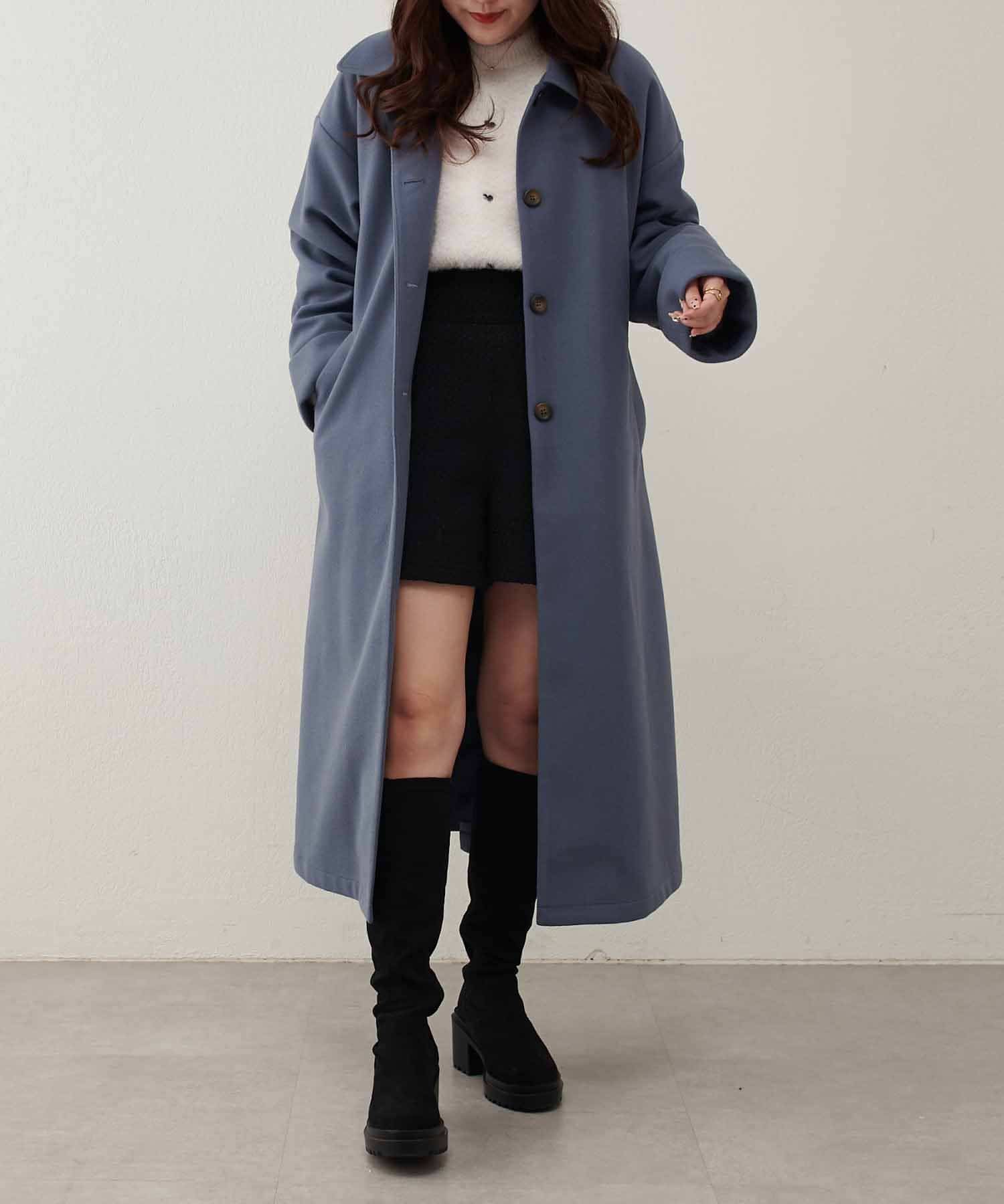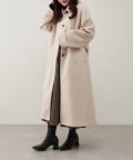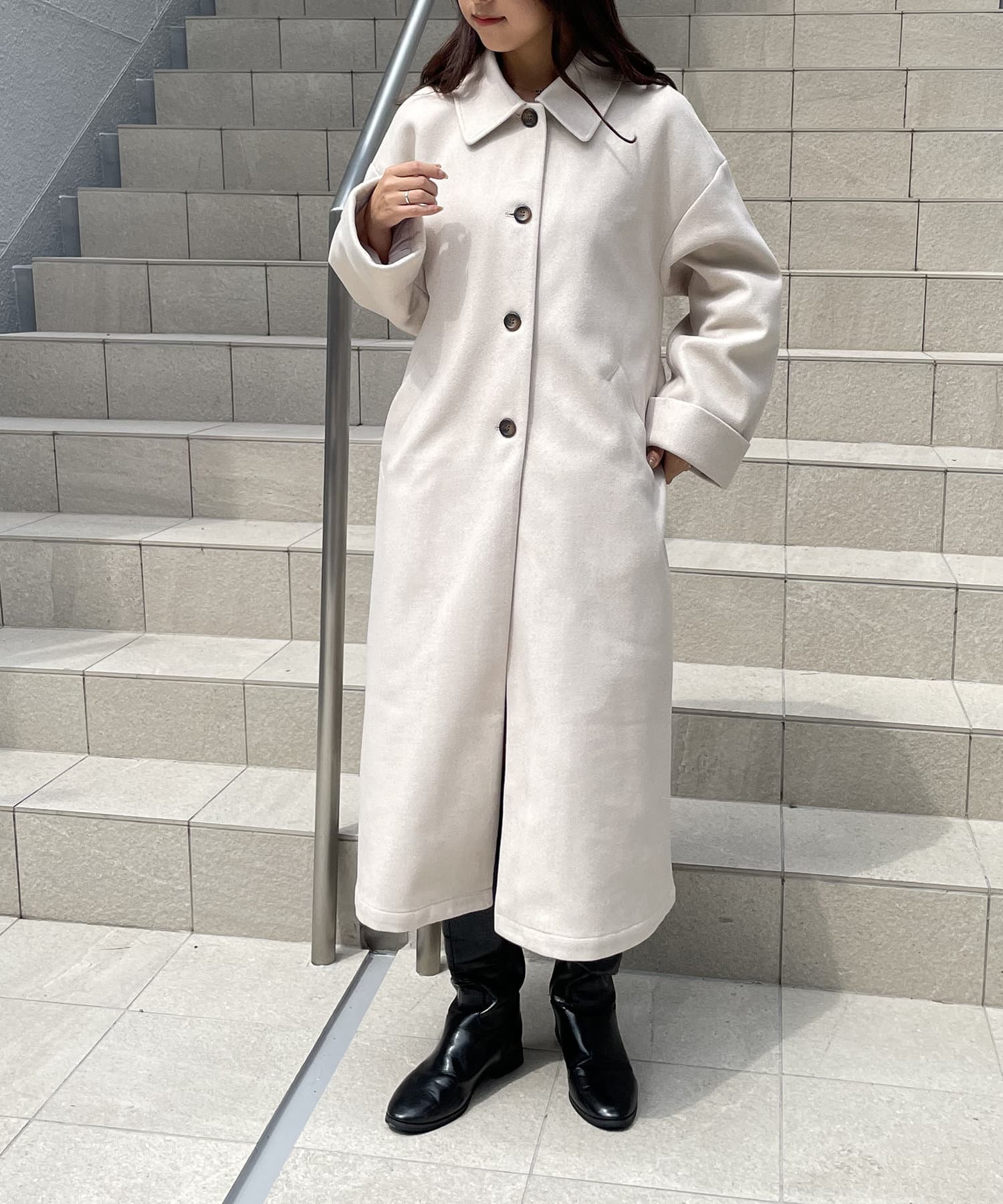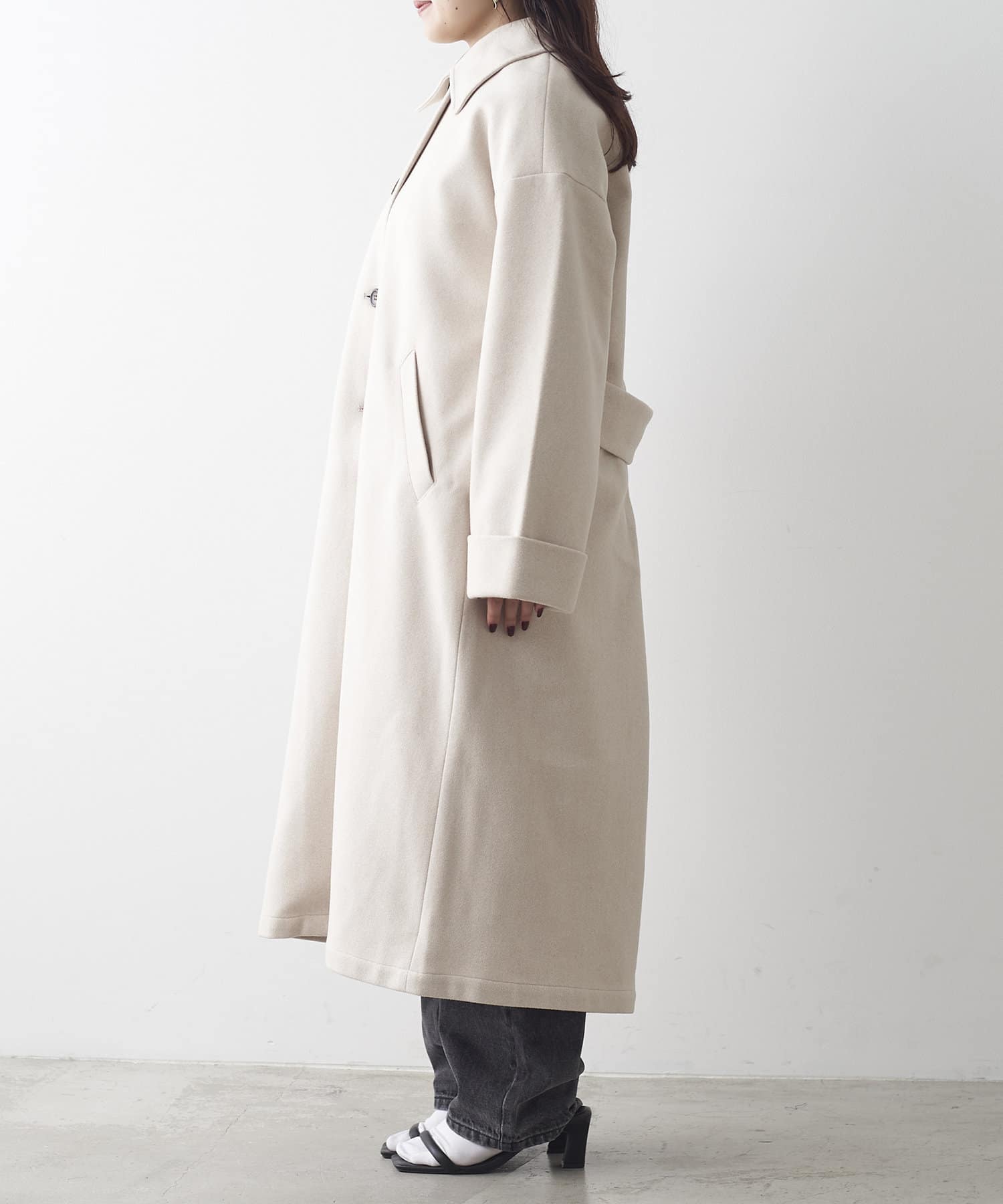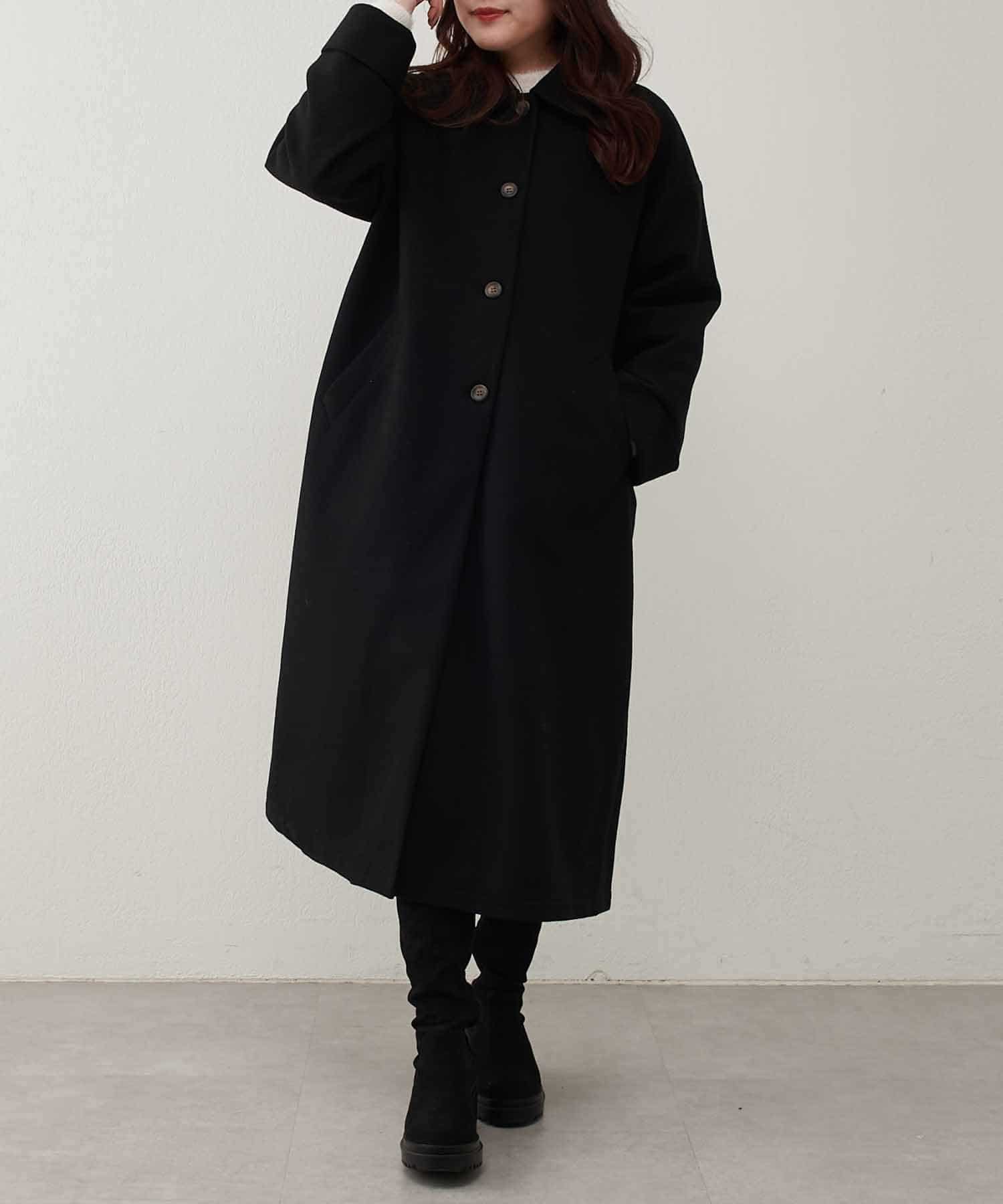 ・バックベルトがワンポイントな幅広いシーンに対応できるロングコート。