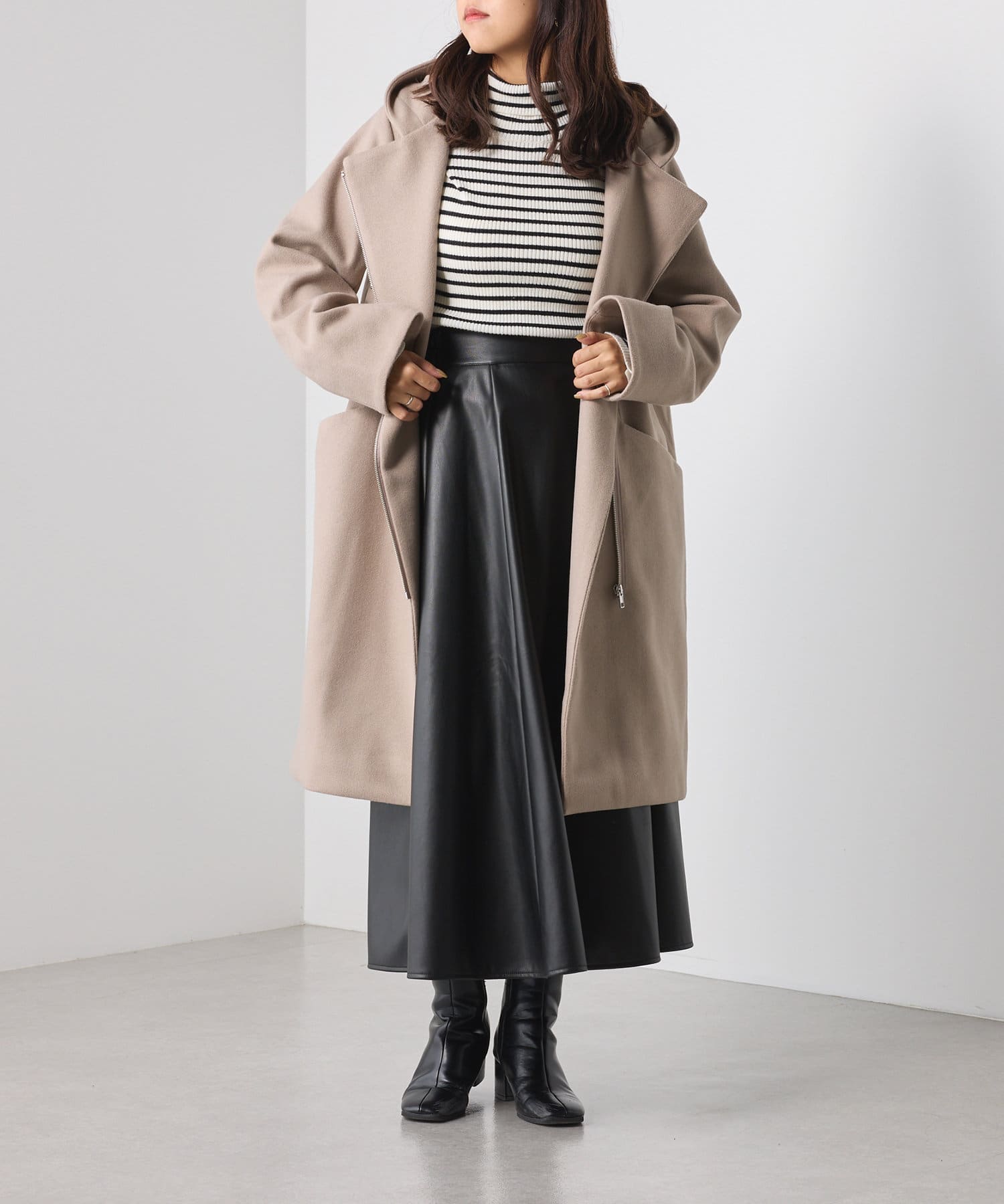 ・ニットやデニムとカジュアルにはもちろん、ワンピースやマーメイドスカートとのフェミニンさあるコーデにもおすすめ。