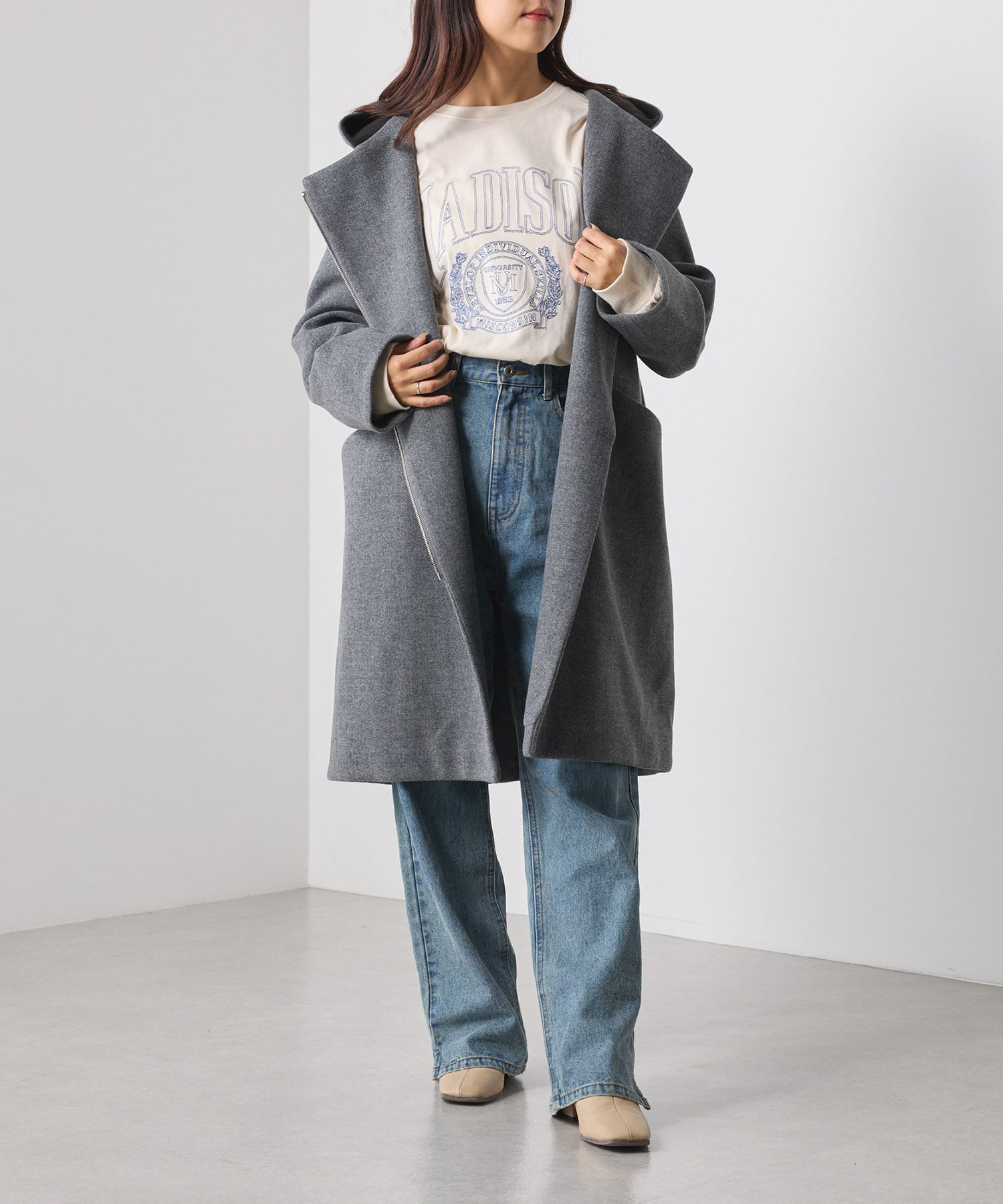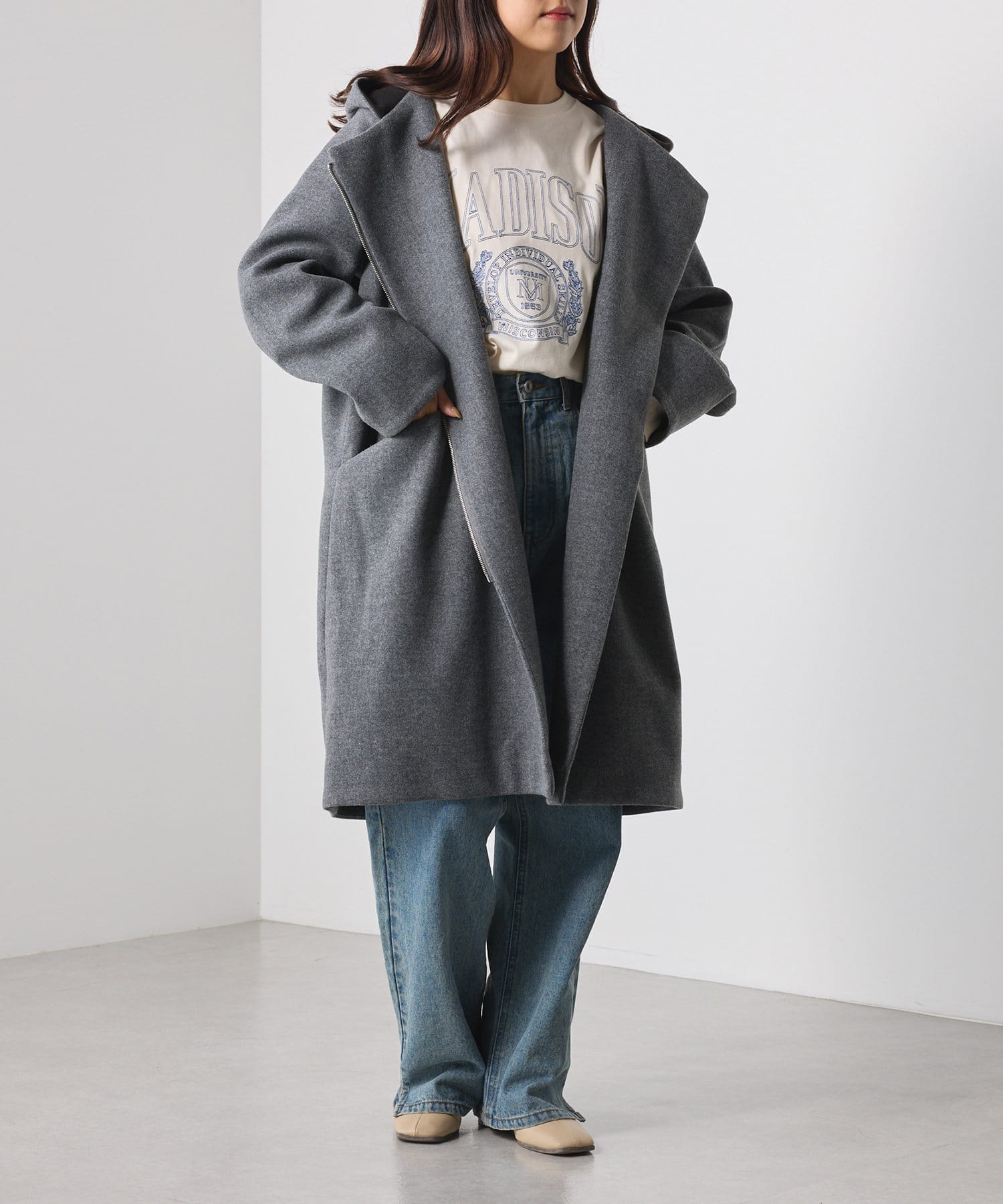 ・ほどよいハリのある生地がカジュアルすぎず、きれいめな印象に。