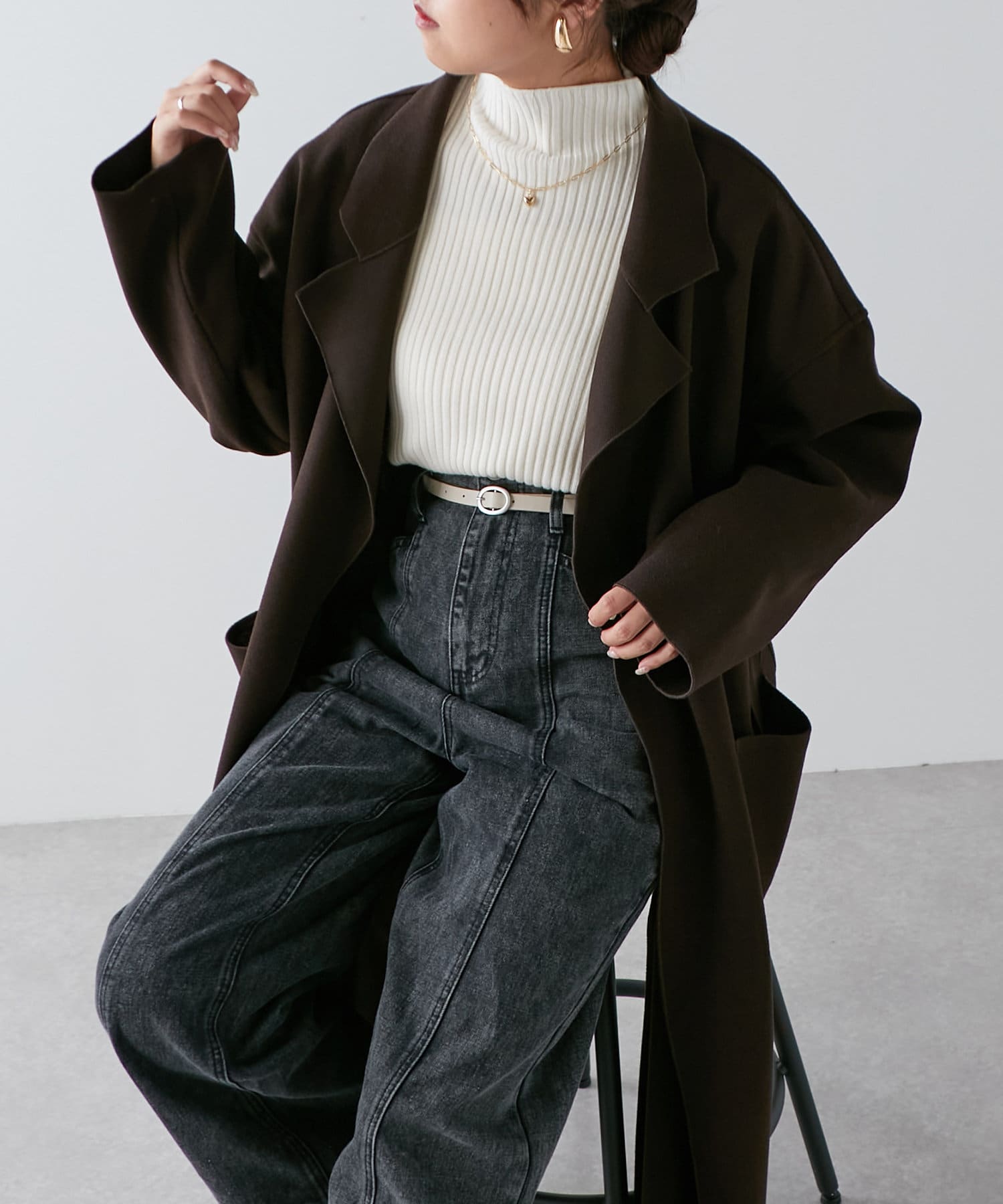 ・ベルト付なのでガウン風コーディネートも◎