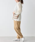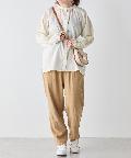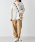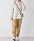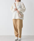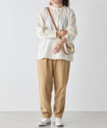 ・ボトムスは、細身のスキニーデニムに合わせたり、トレンドのテーパードパンツや、リブパンツ、プリーツパンツなど合わせやすいです。