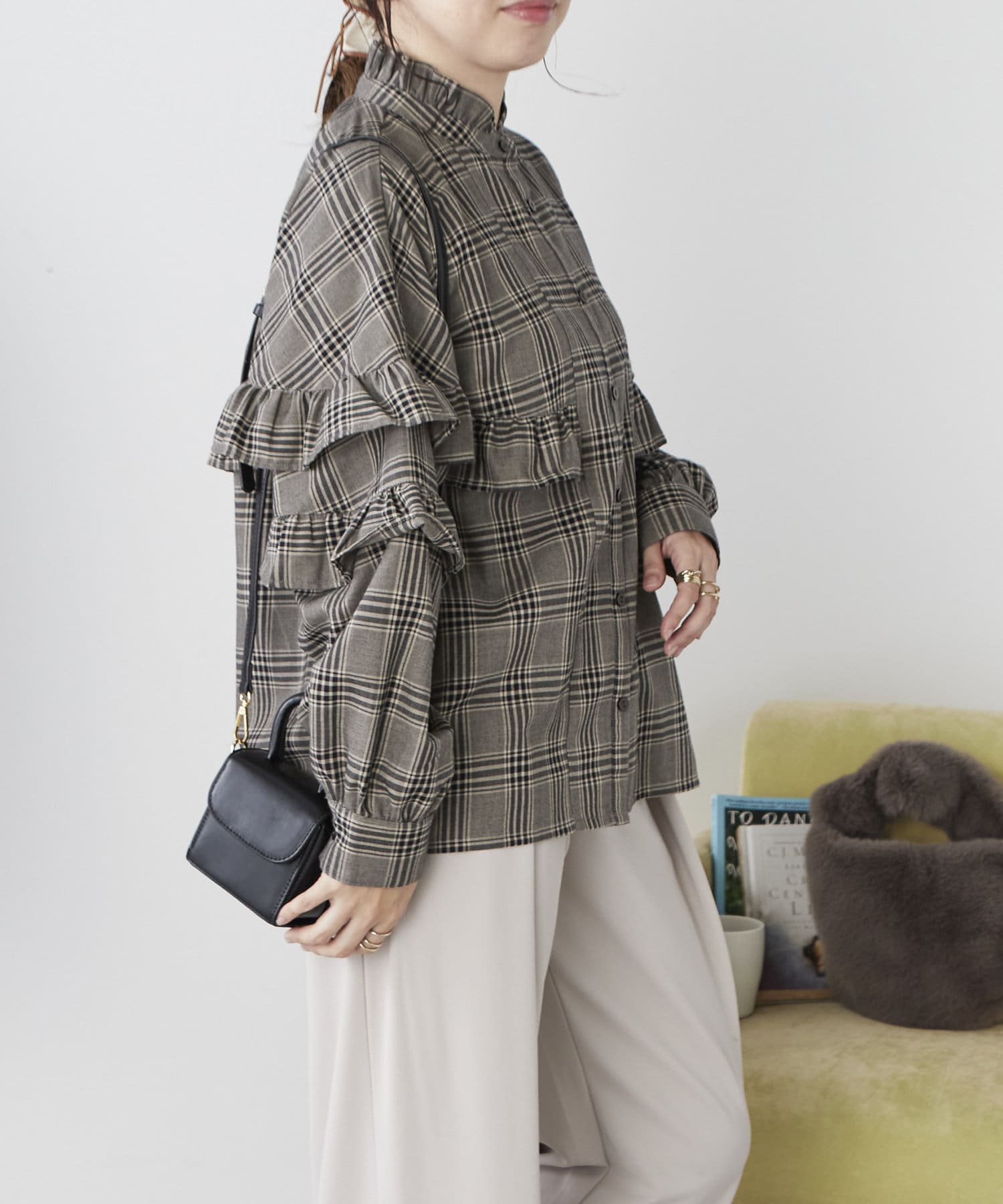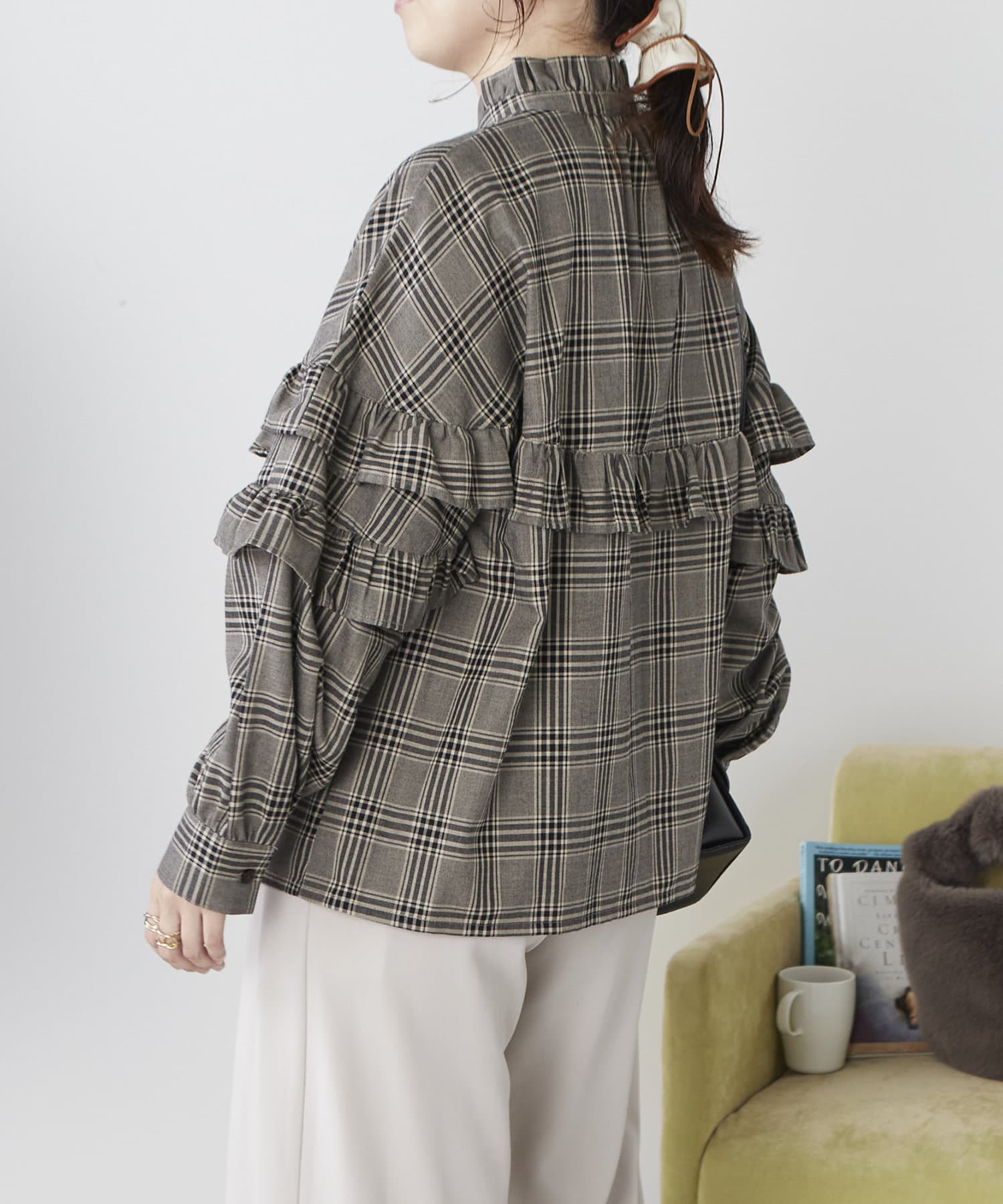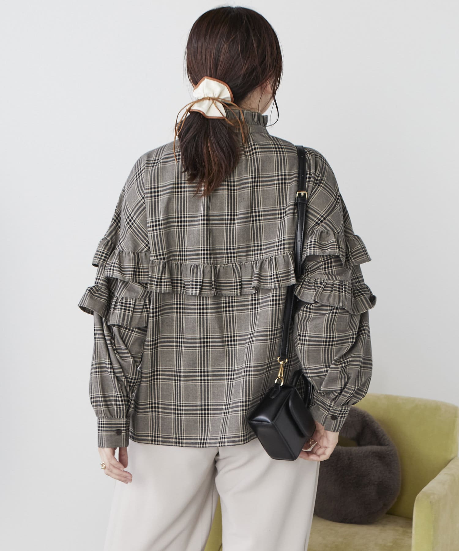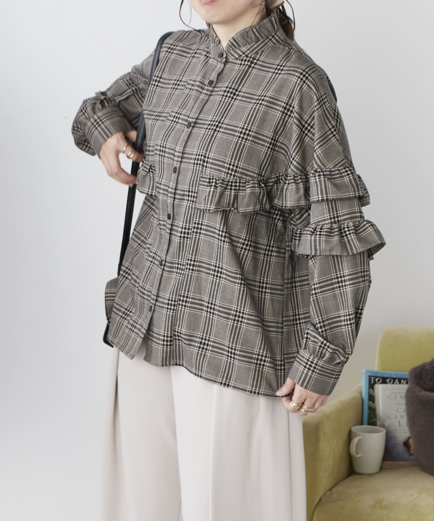 • NICE CLAUP / OLIVE des OLIVE OUTLET(ナイスクラップ  / オリーブ デ オリーブ アウトレット) 【nao】大人チェックフリルブラウス
