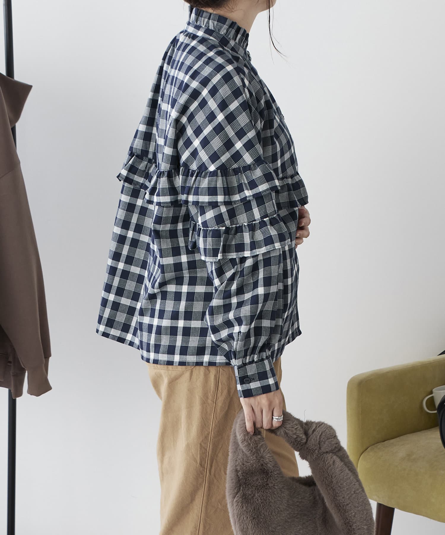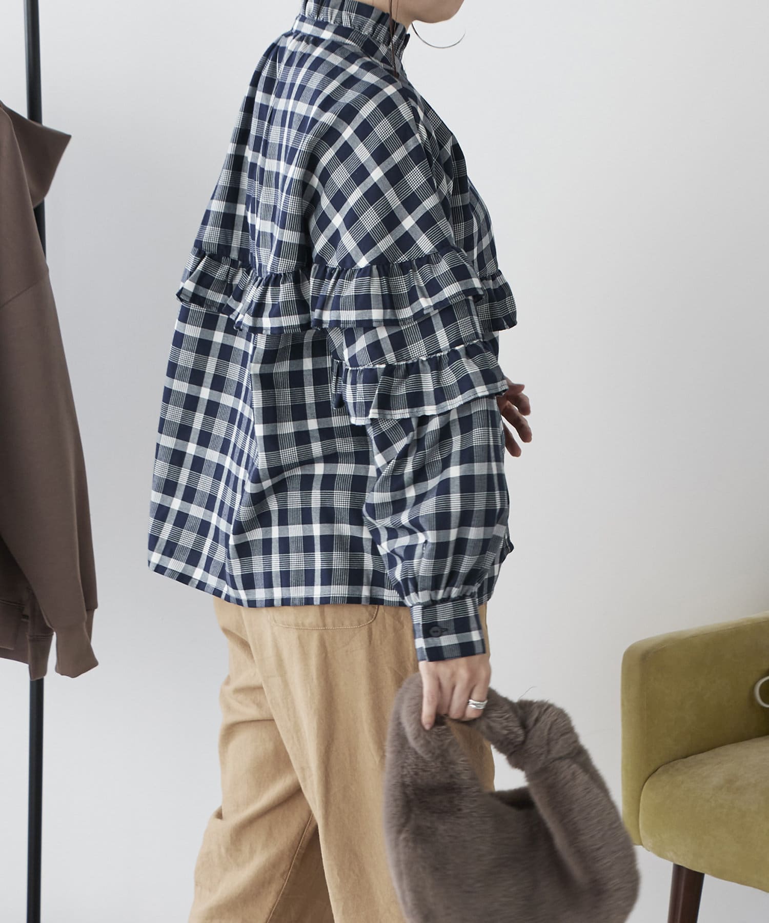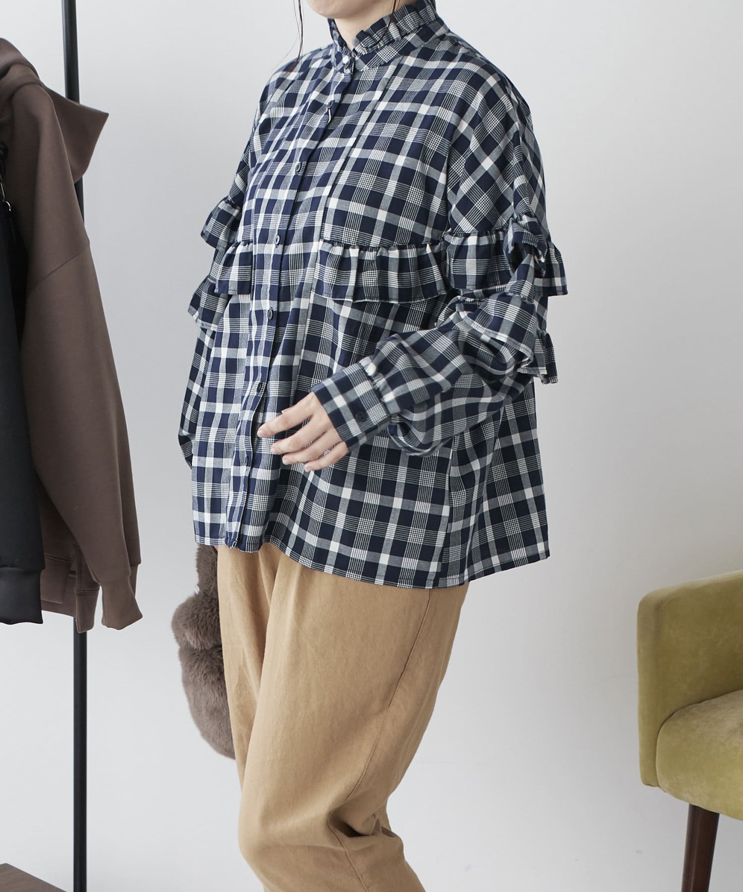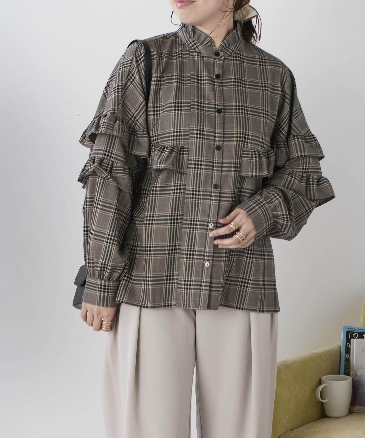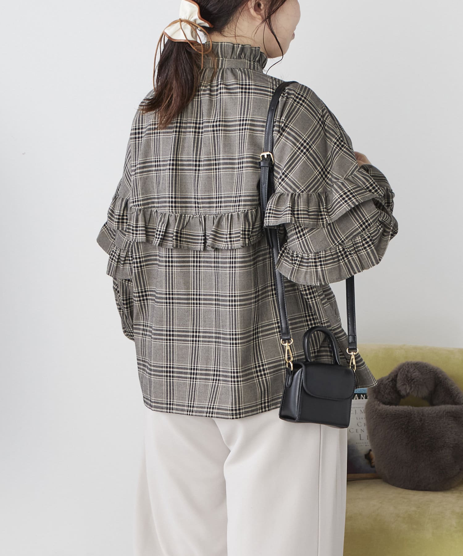 • NICE CLAUP / OLIVE des OLIVE OUTLET(ナイスクラップ  / オリーブ デ オリーブ アウトレット) 【nao】大人チェックフリルブラウス