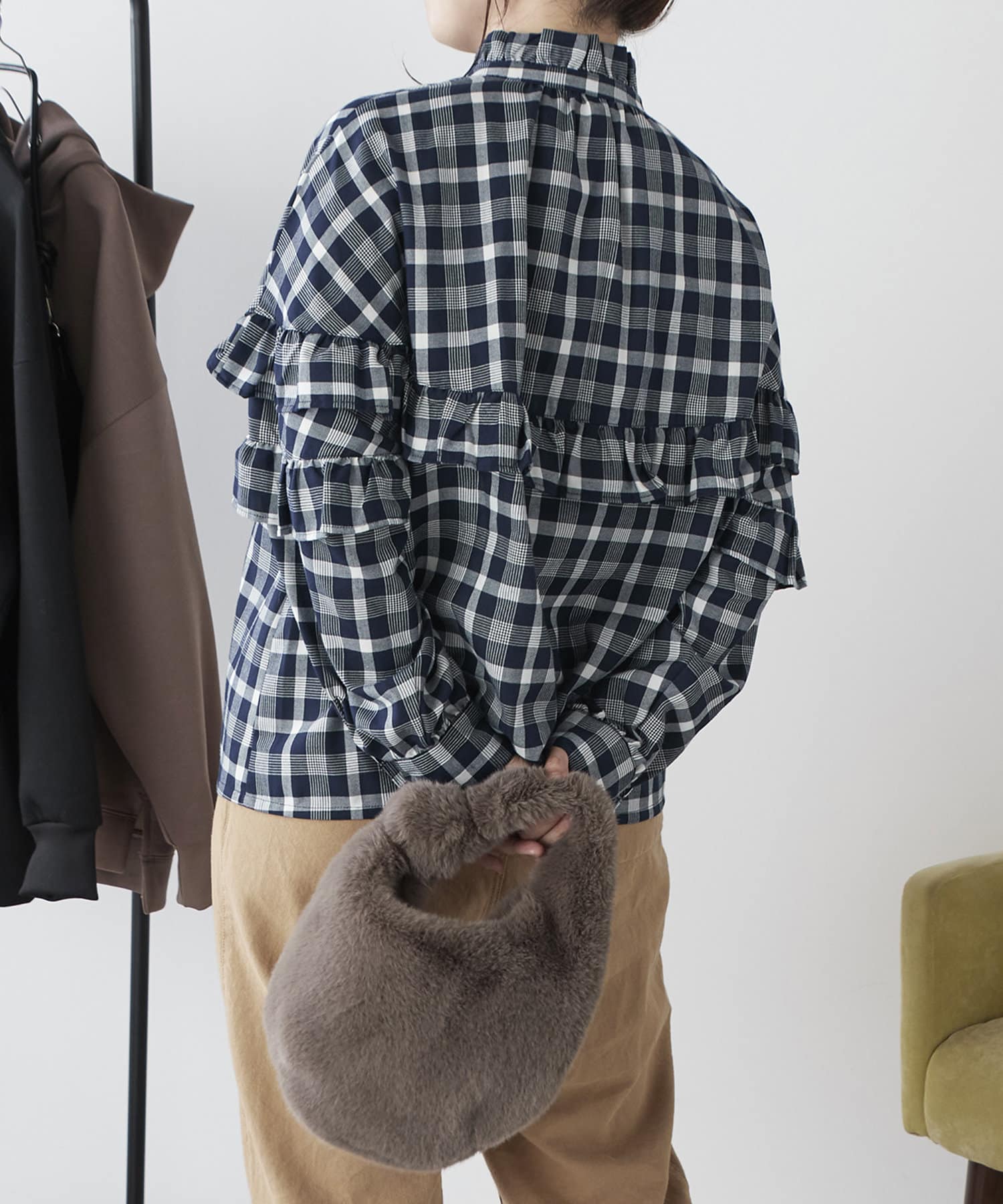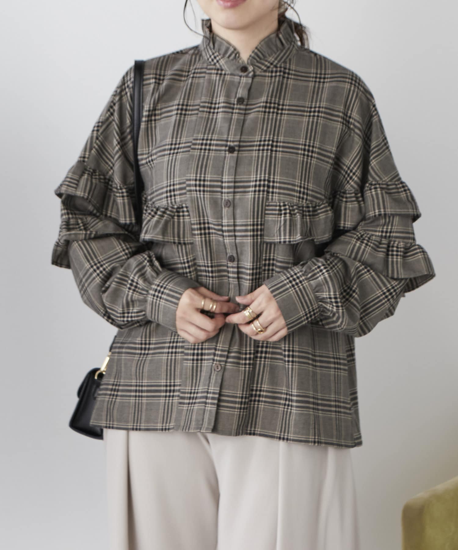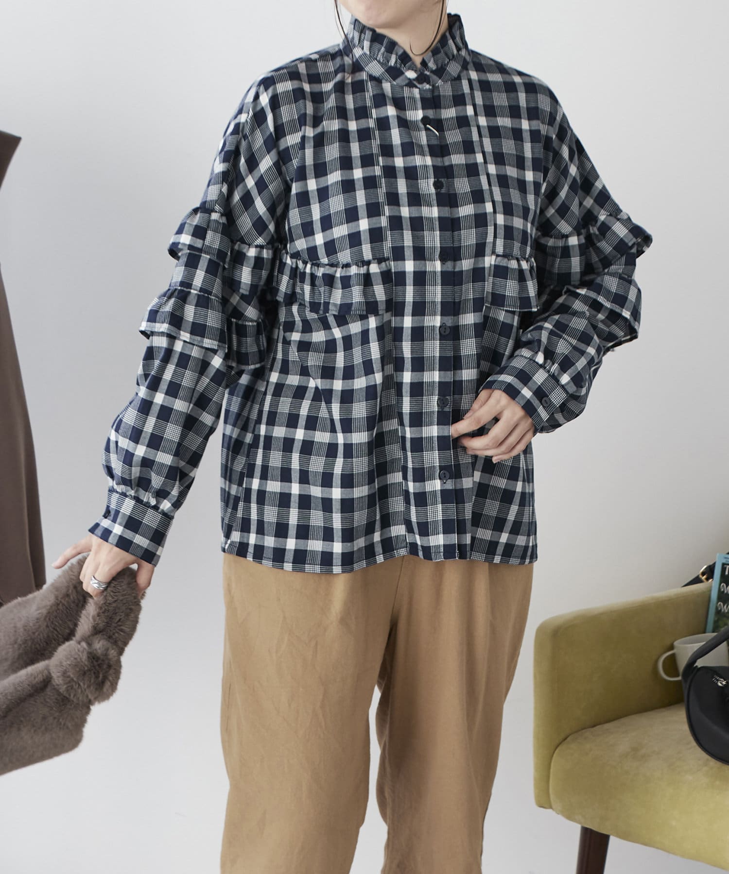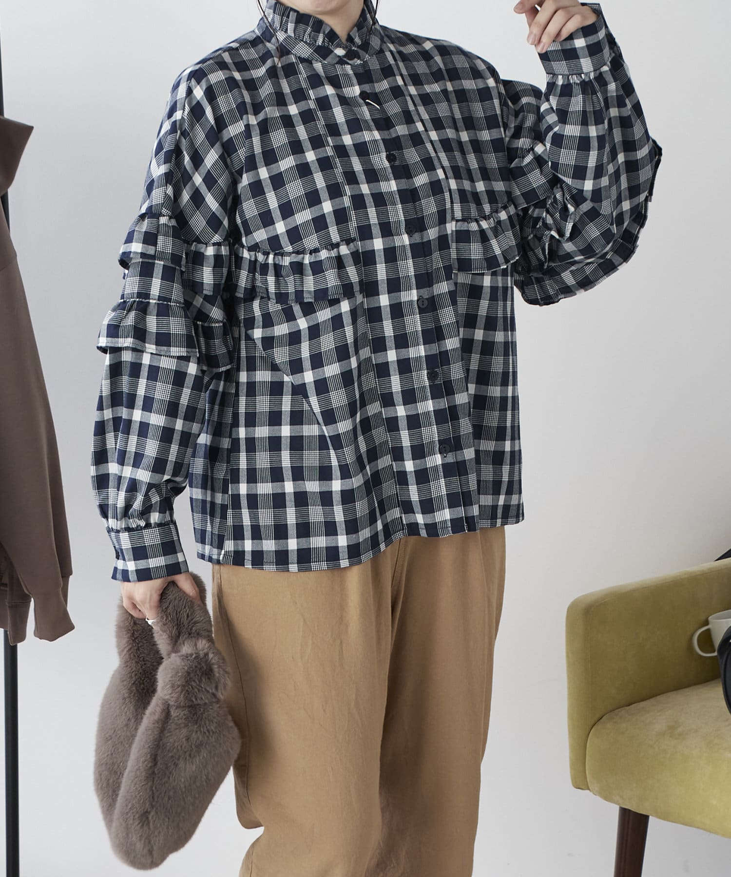 • NICE CLAUP / OLIVE des OLIVE OUTLET(ナイスクラップ  / オリーブ デ オリーブ アウトレット) 【nao】大人チェックフリルブラウス