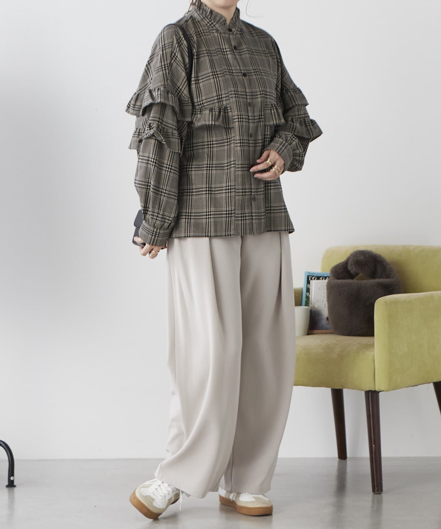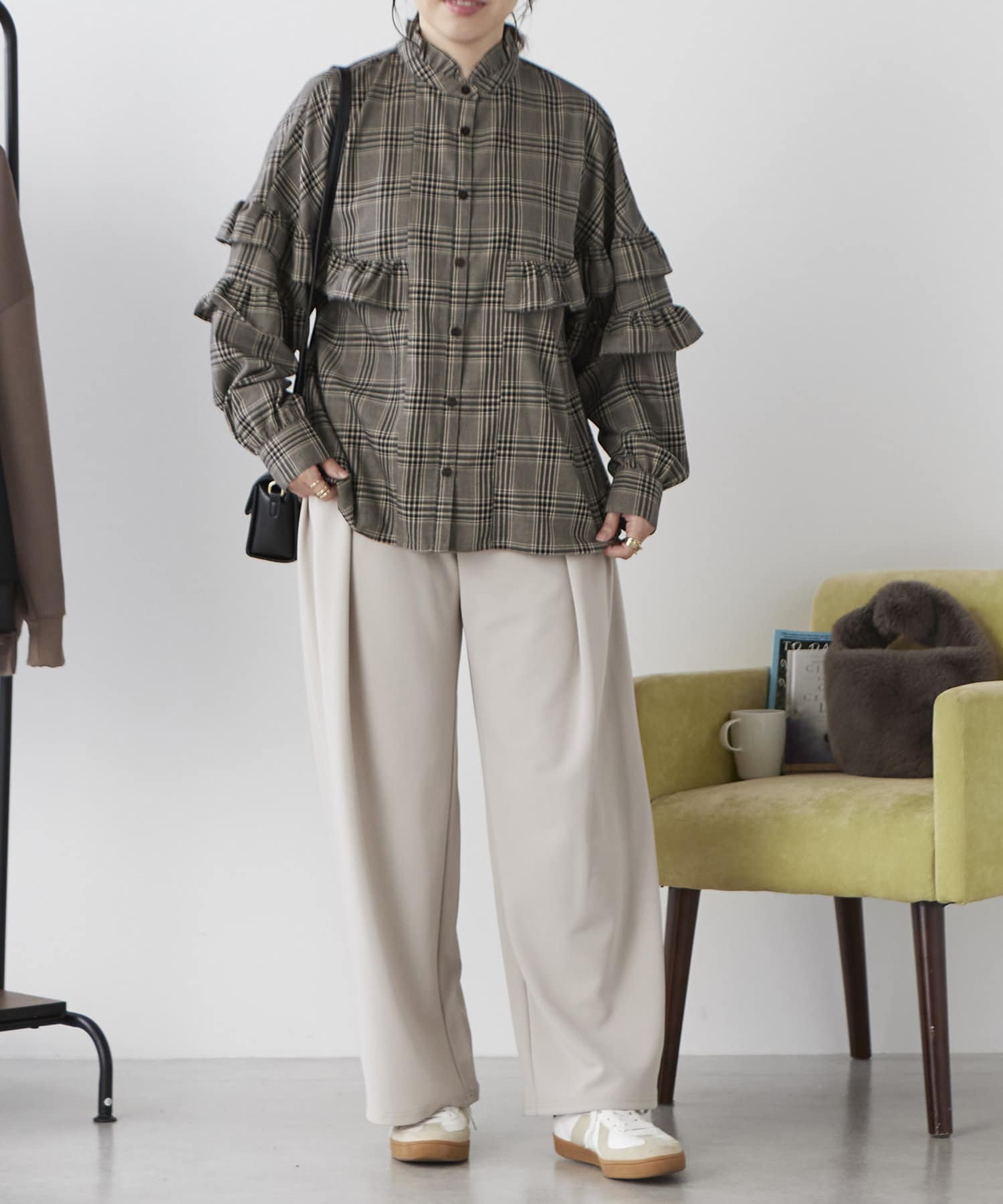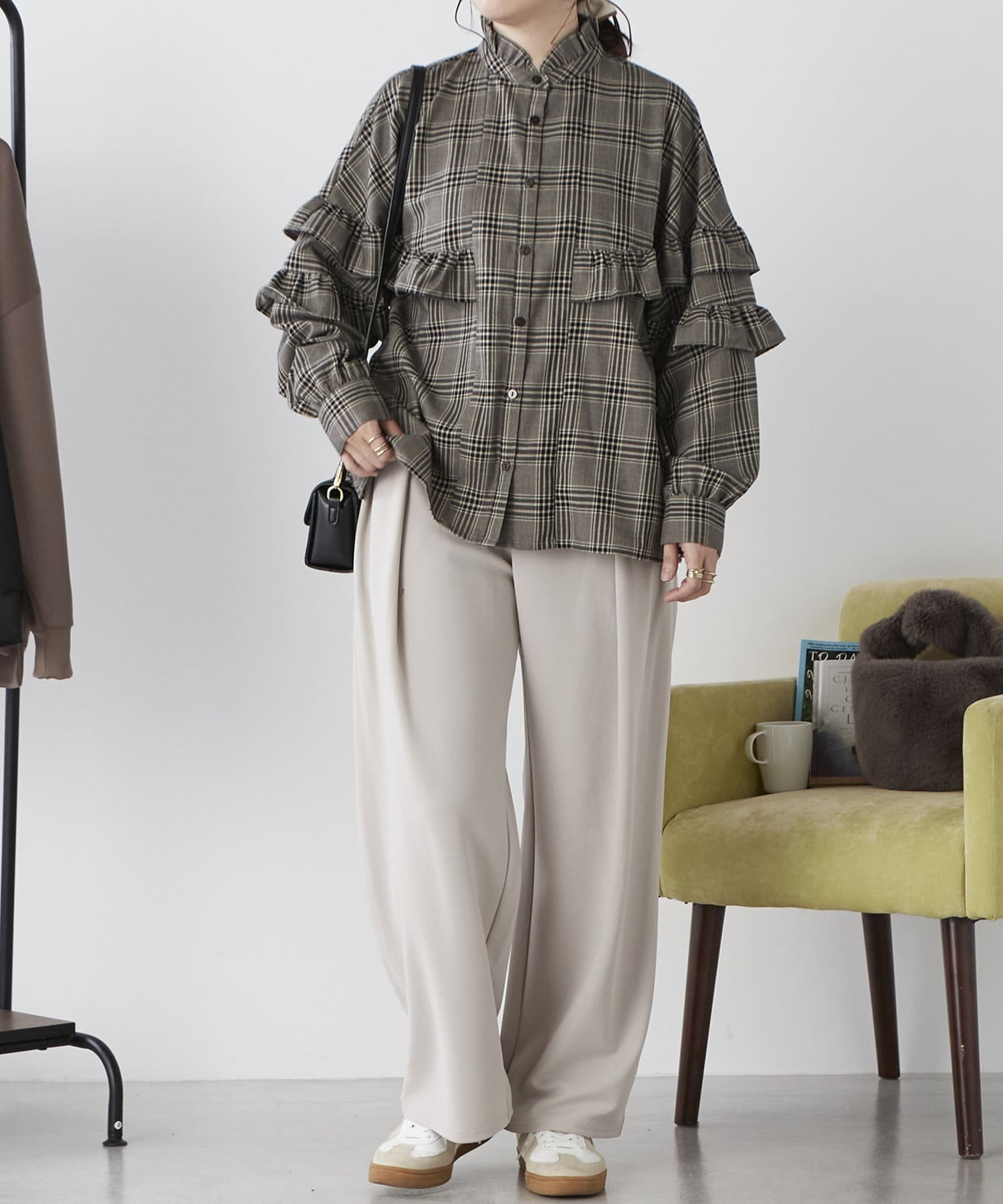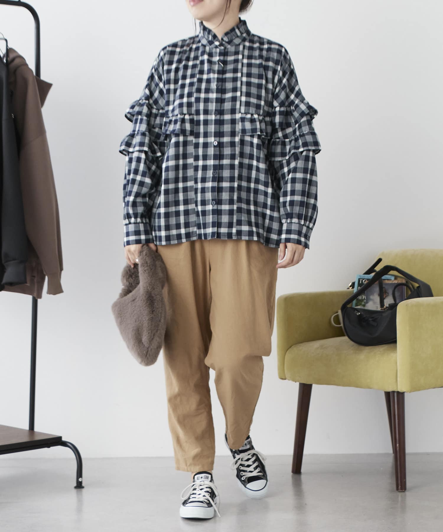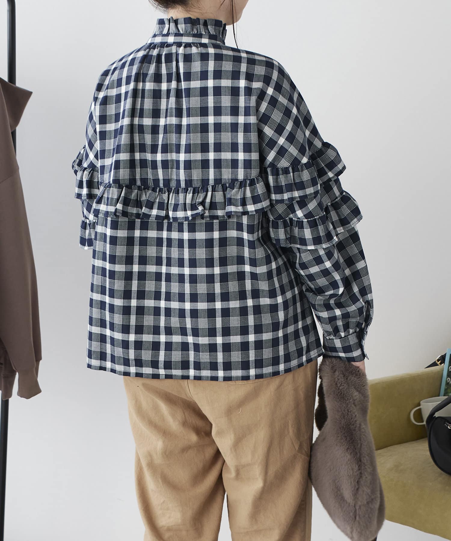 • NICE CLAUP / OLIVE des OLIVE OUTLET(ナイスクラップ  / オリーブ デ オリーブ アウトレット) 【nao】大人チェックフリルブラウス