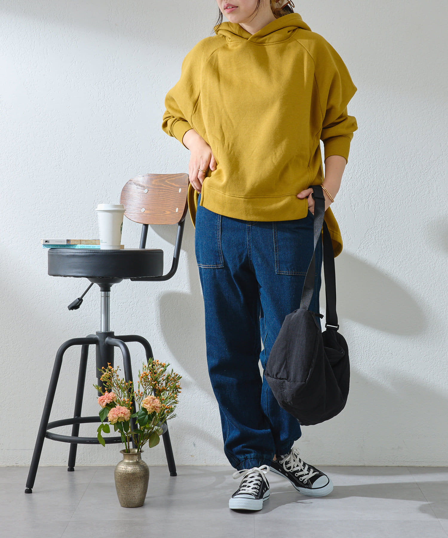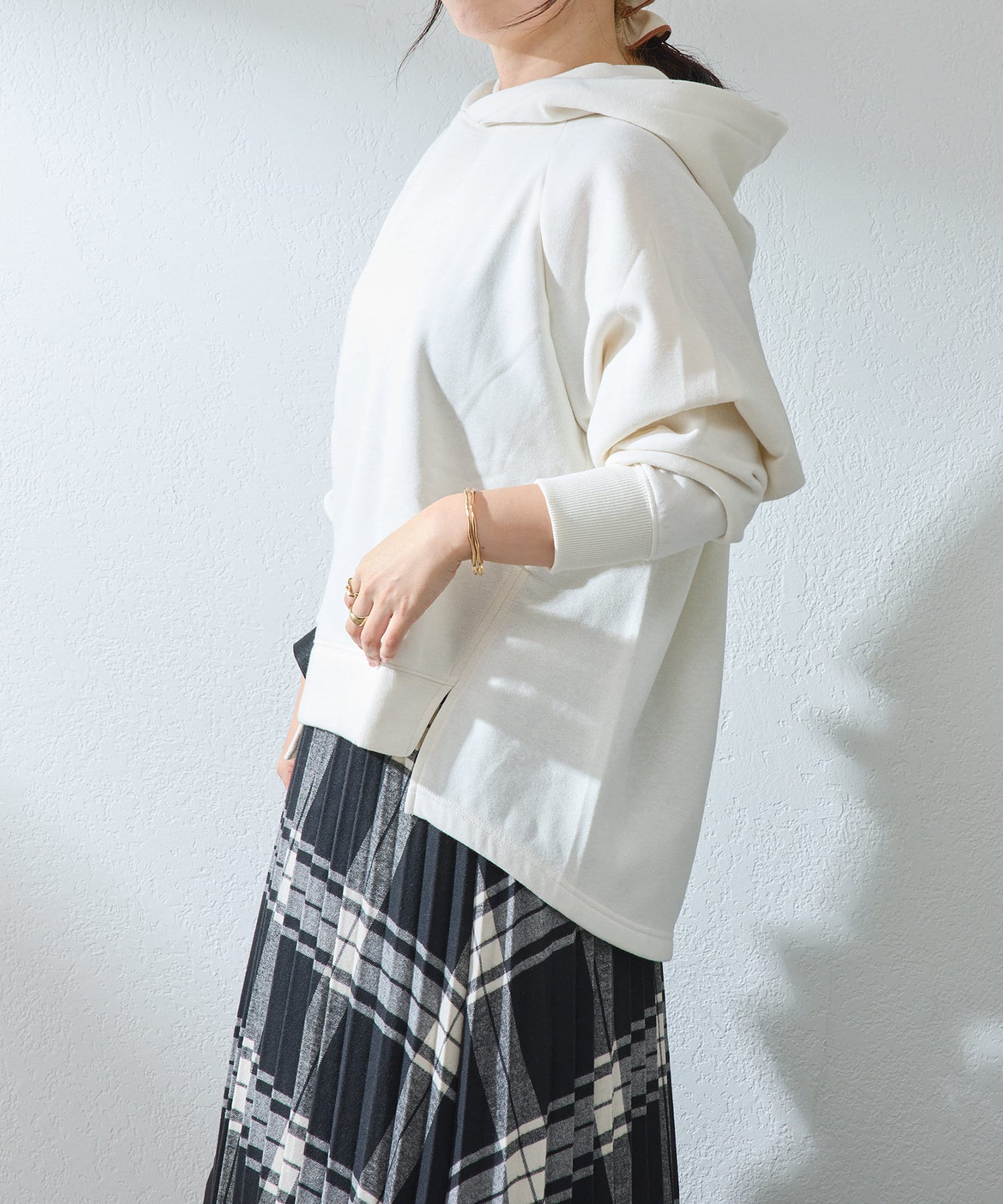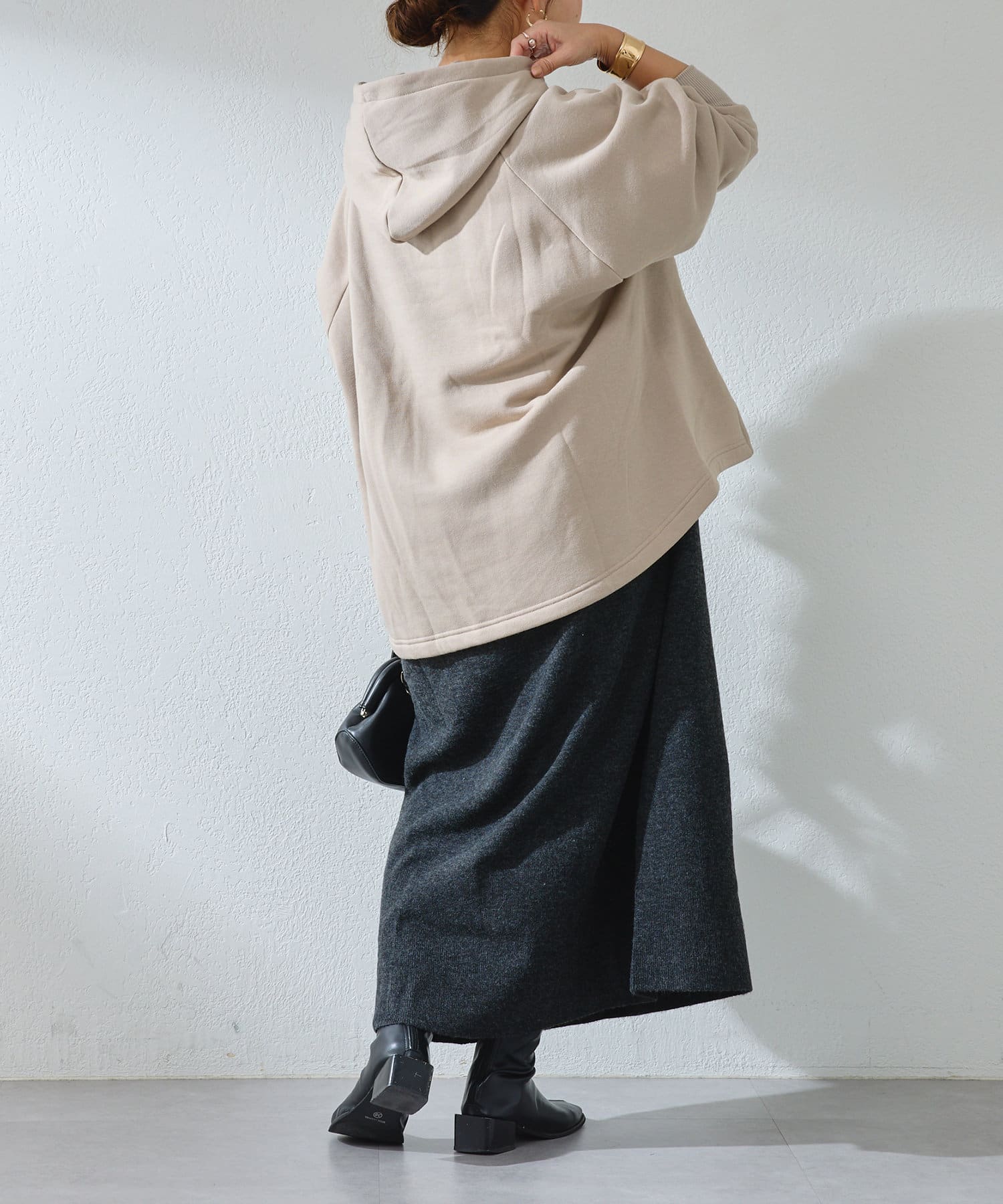 ・ゆったりとしたサイズ感なのでハイネックインナーとのレイヤードコーデもしやすい◎