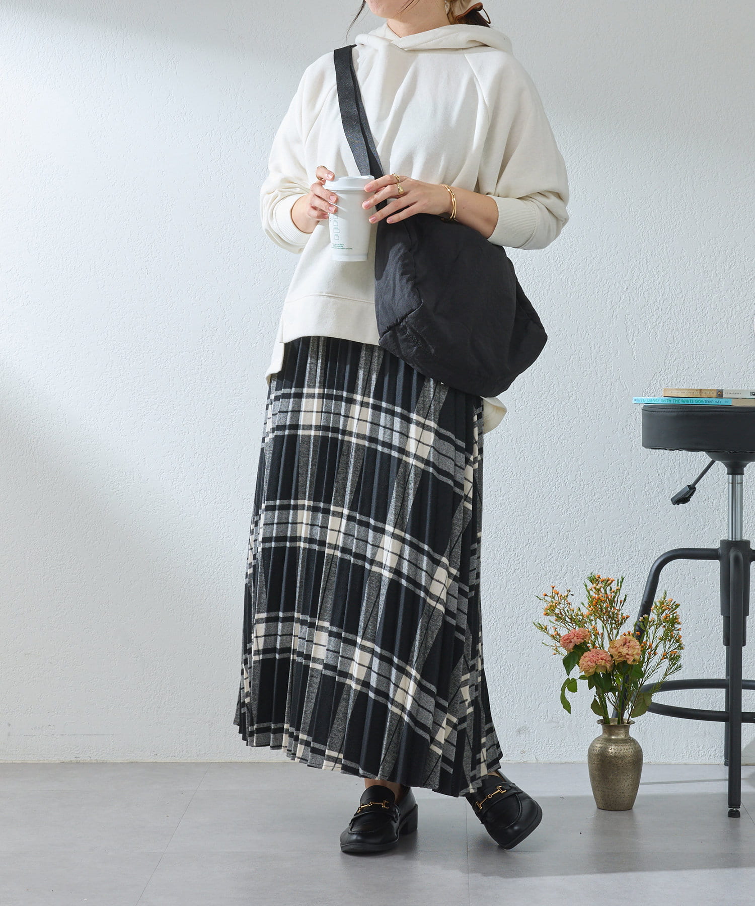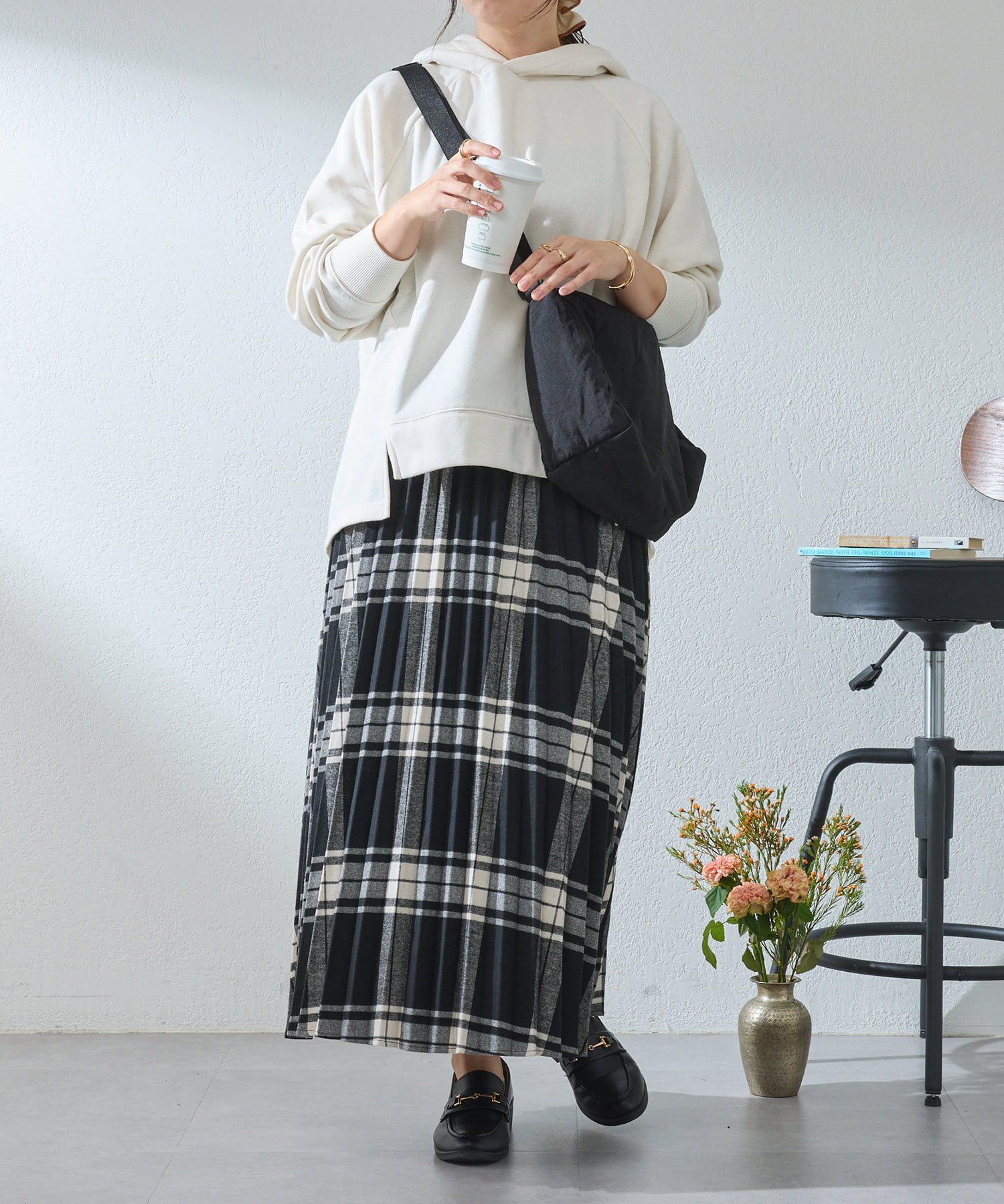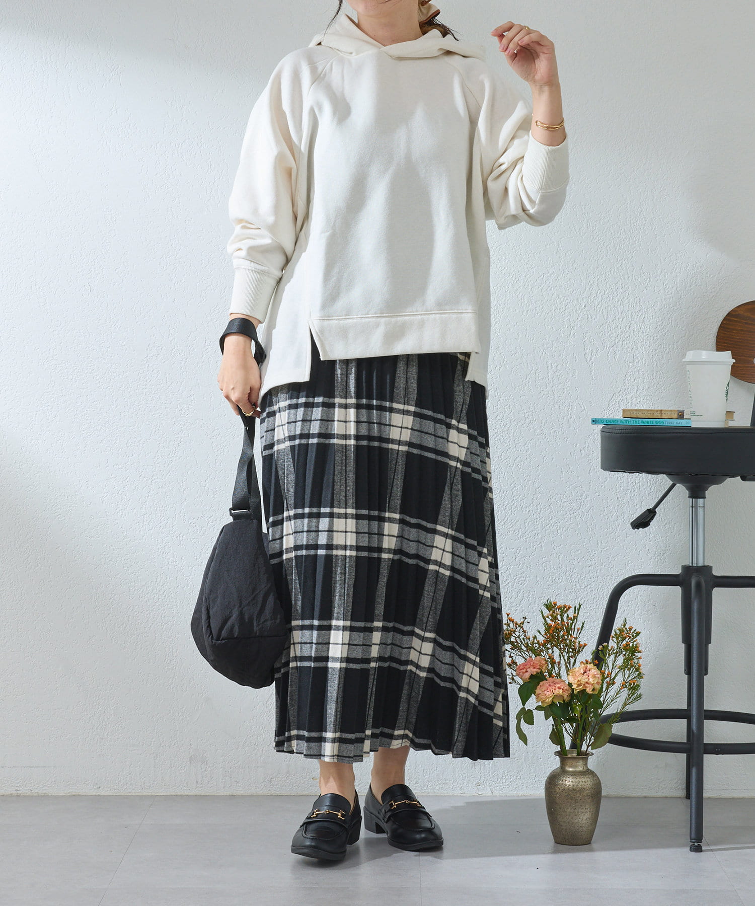 ・ゆったりとしたサイズ感なのでハイネックインナーとのレイヤードコーデもしやすい◎