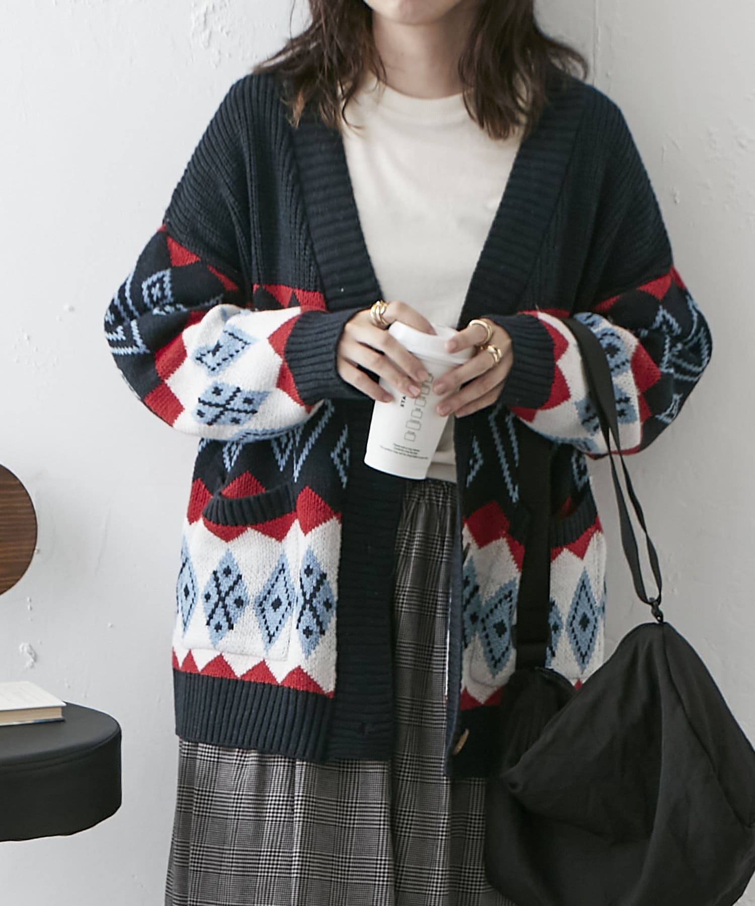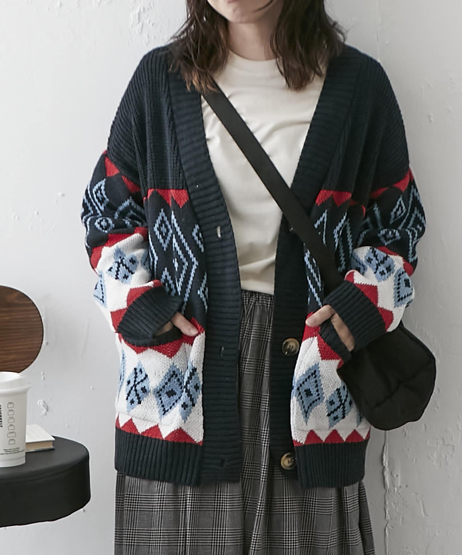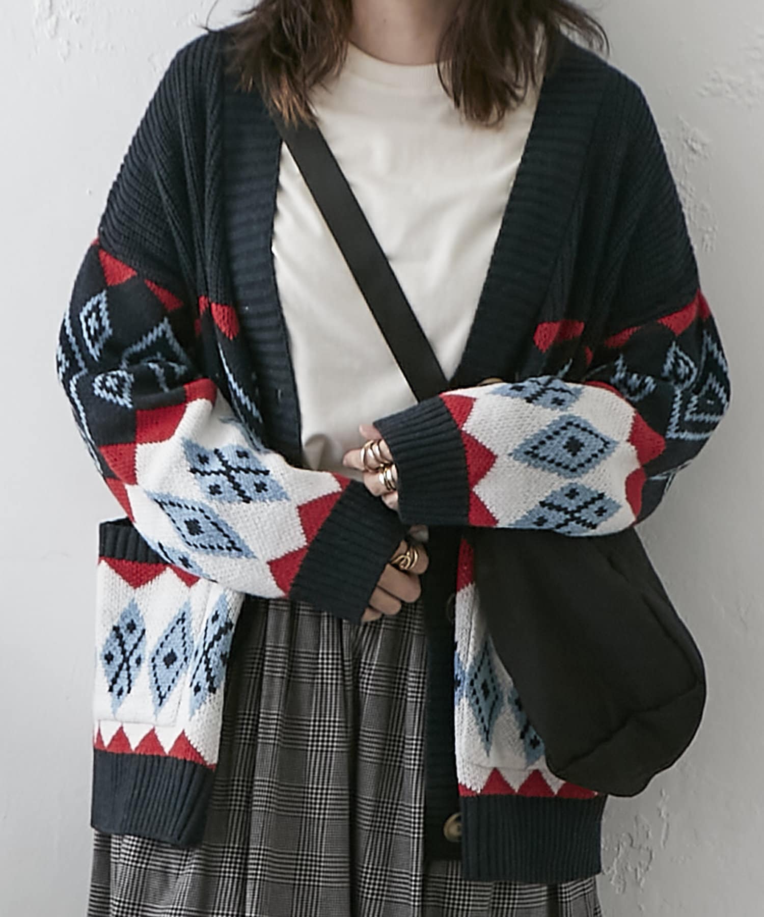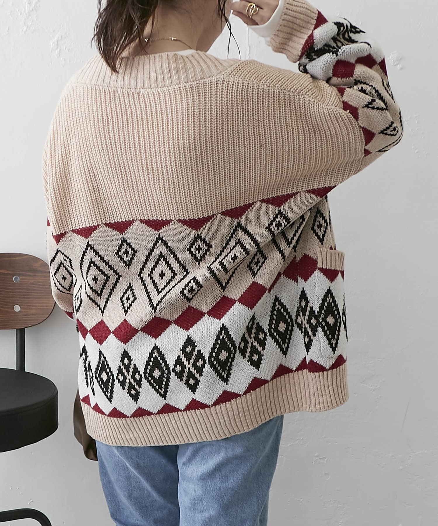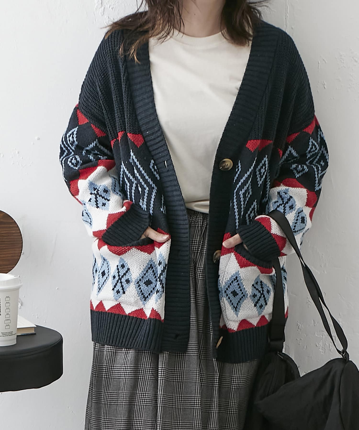 【nao】雪柄ニットカーディガン