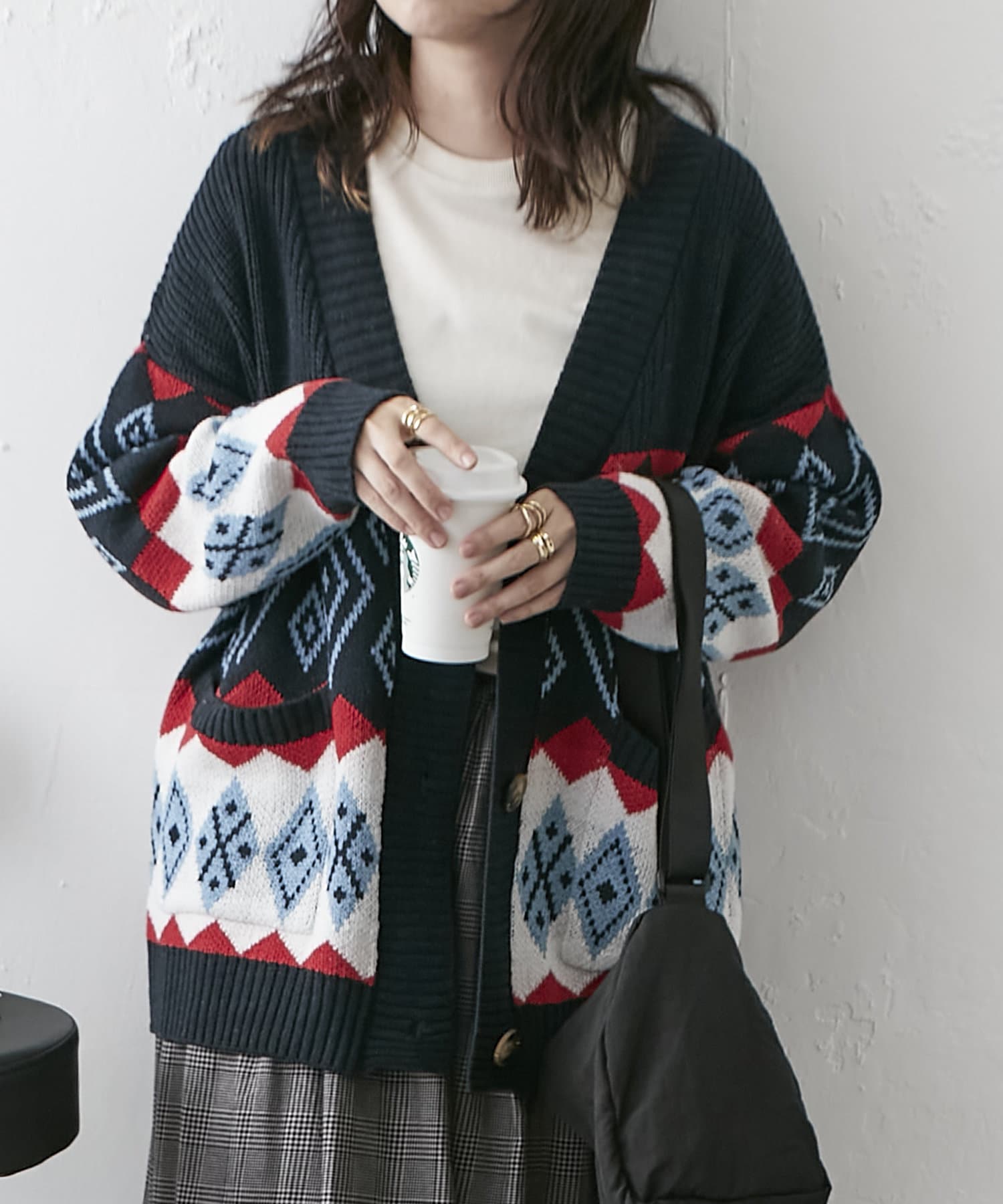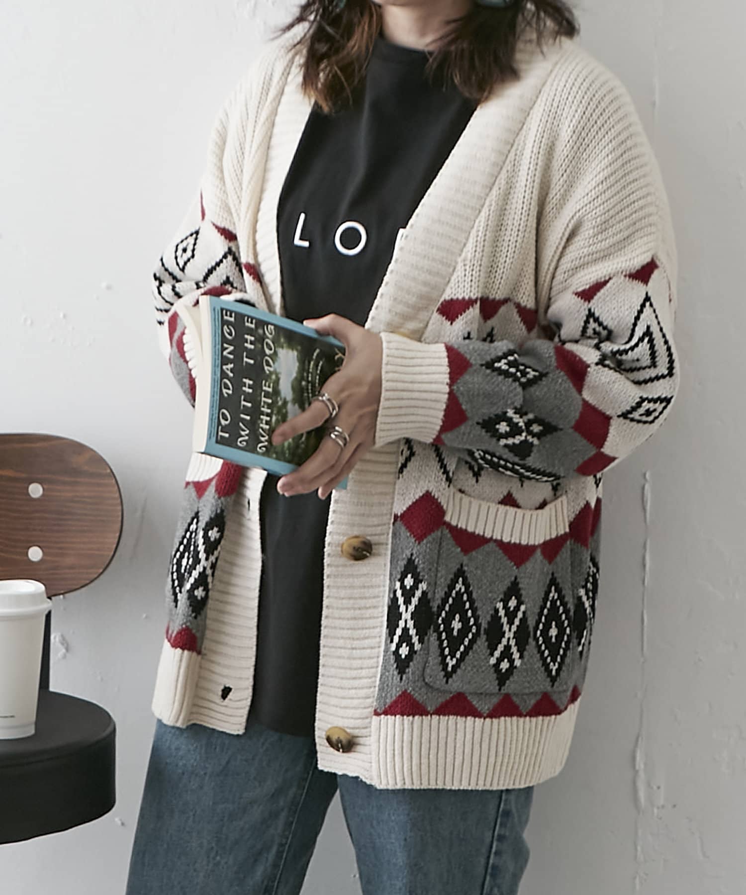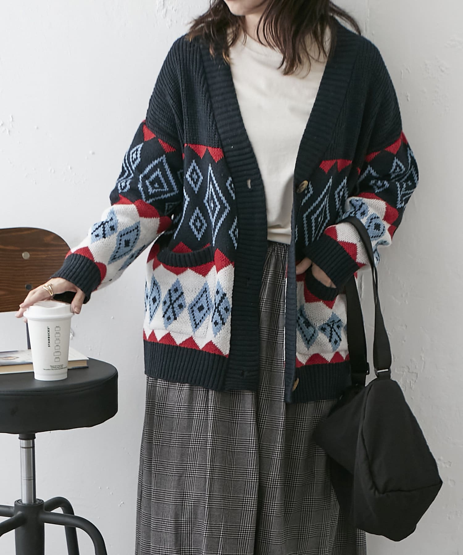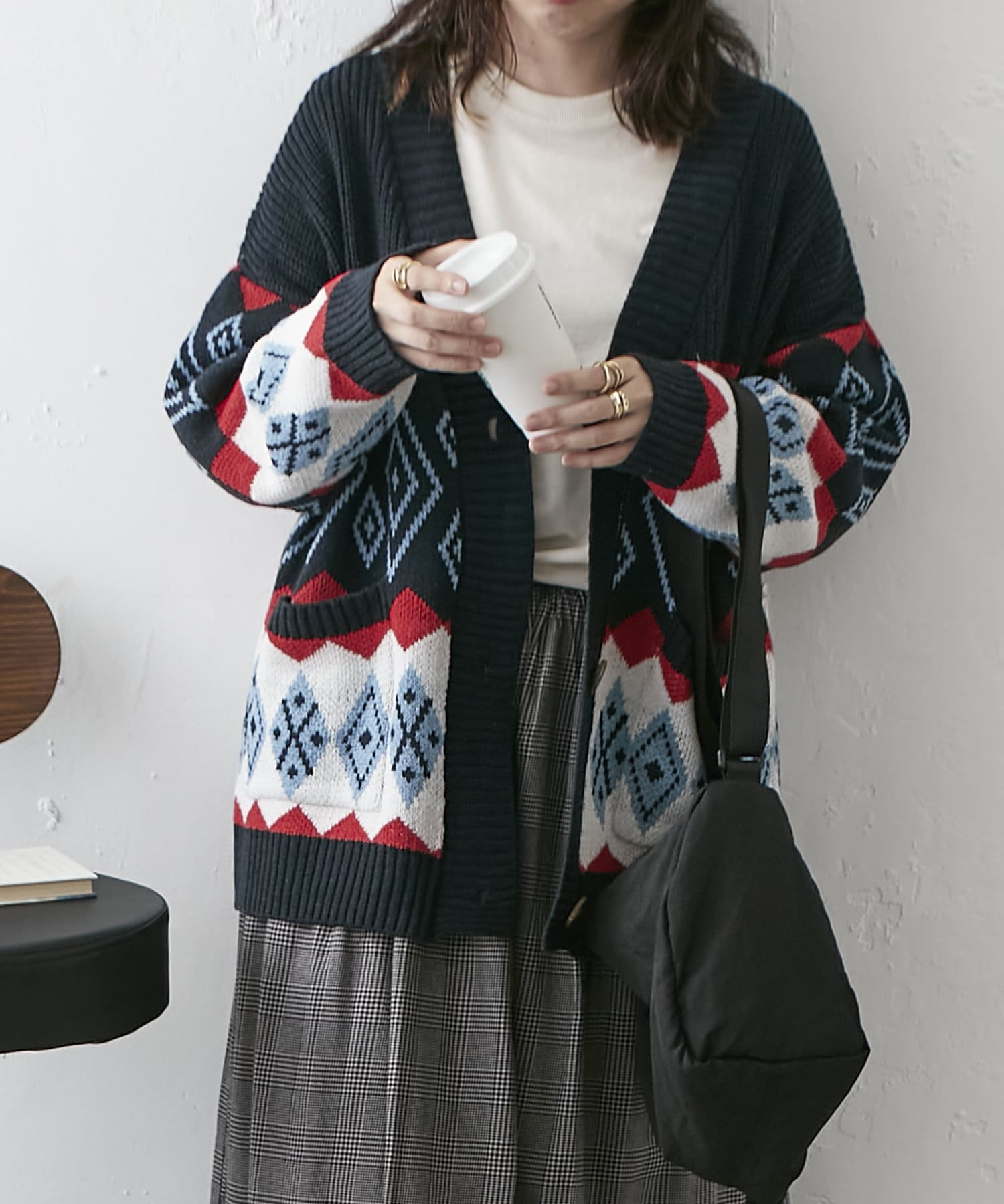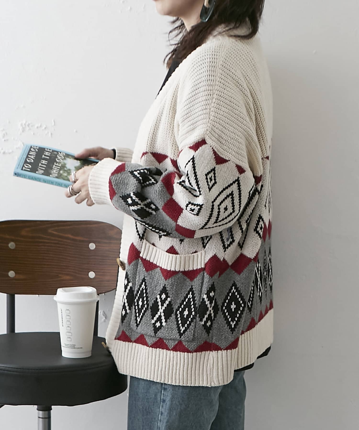 【nao】雪柄ニットカーディガン
