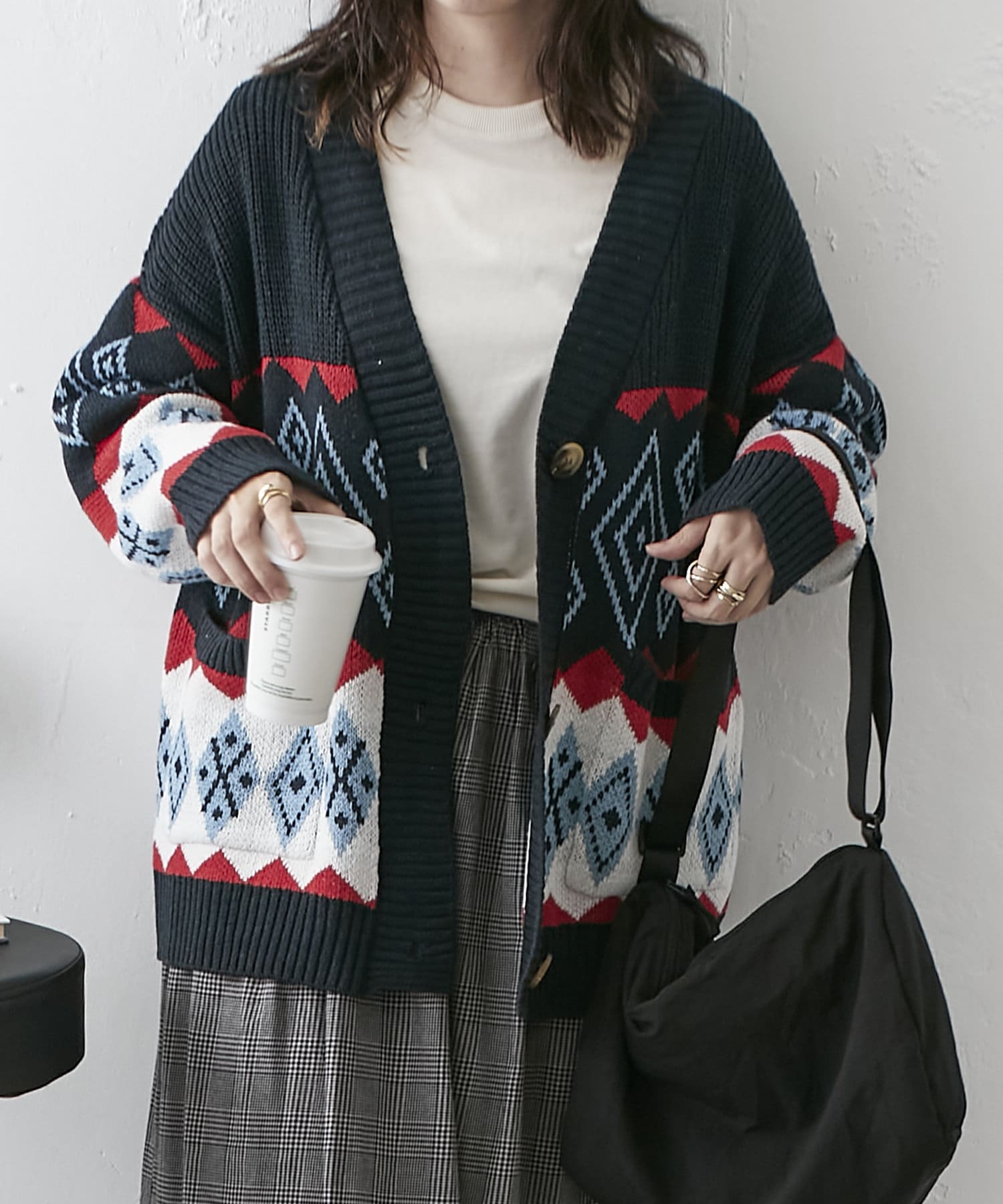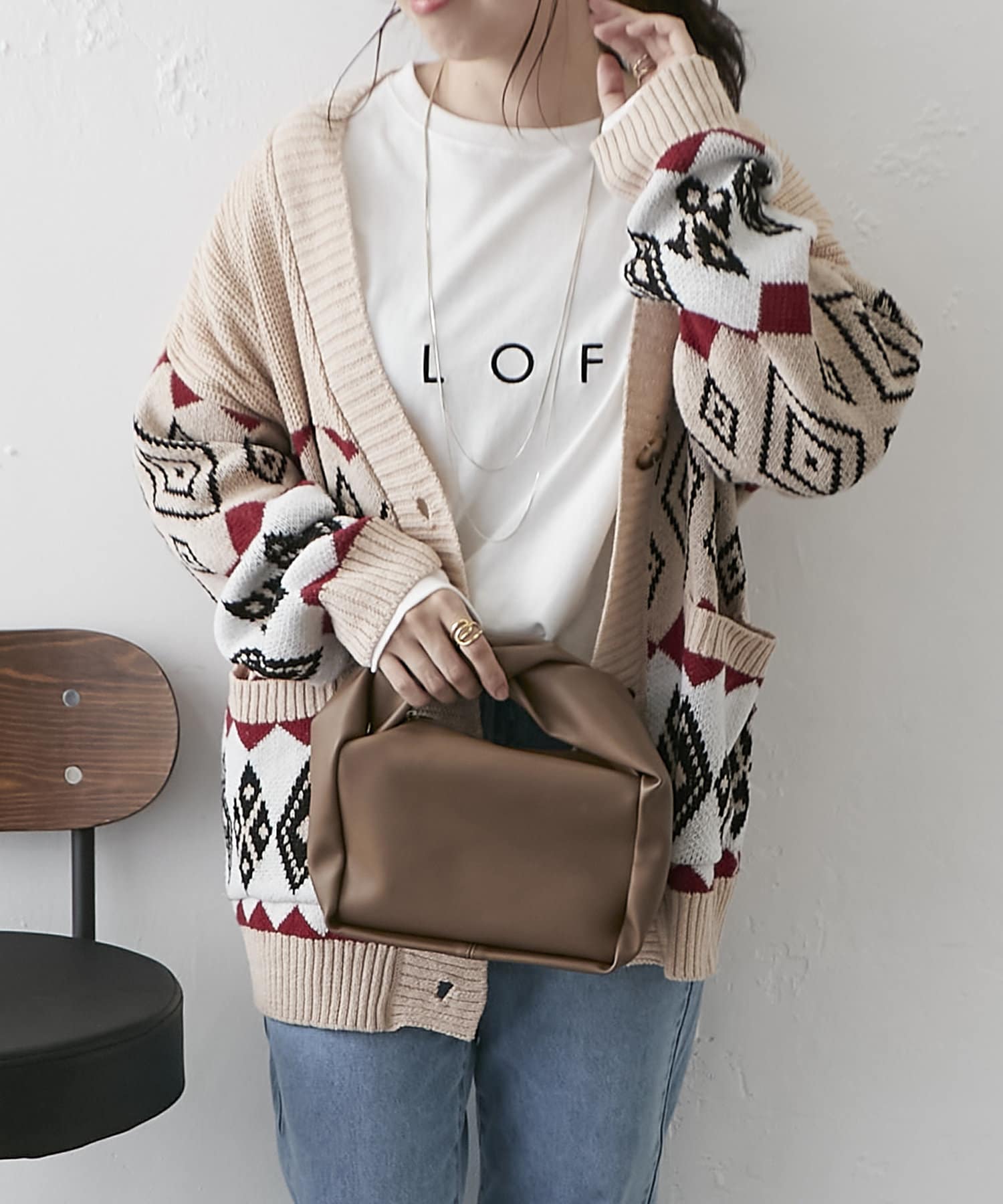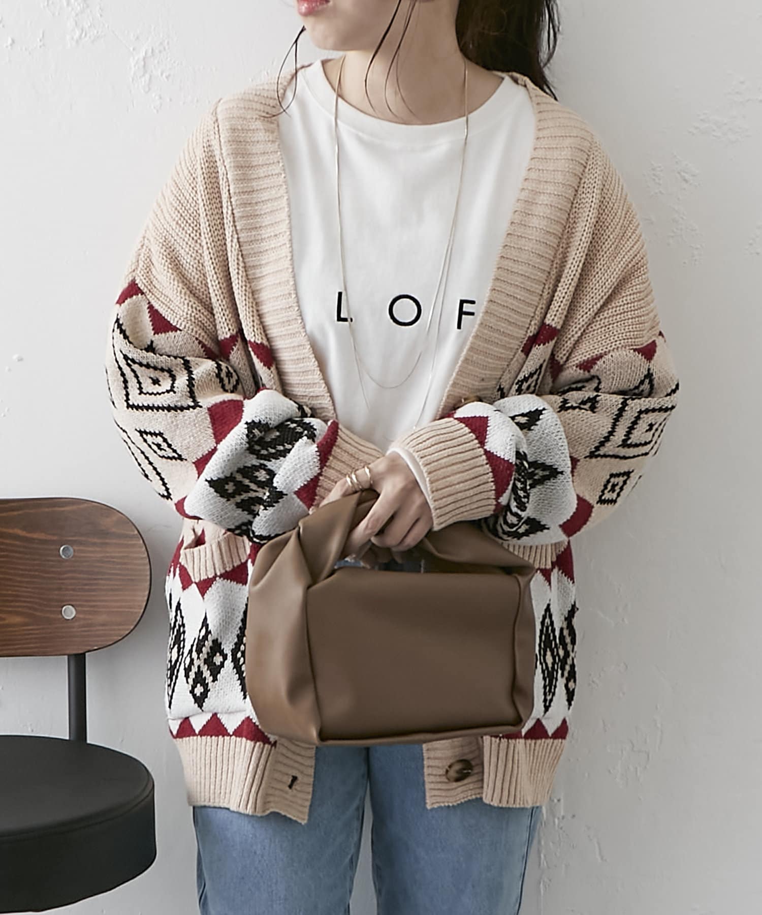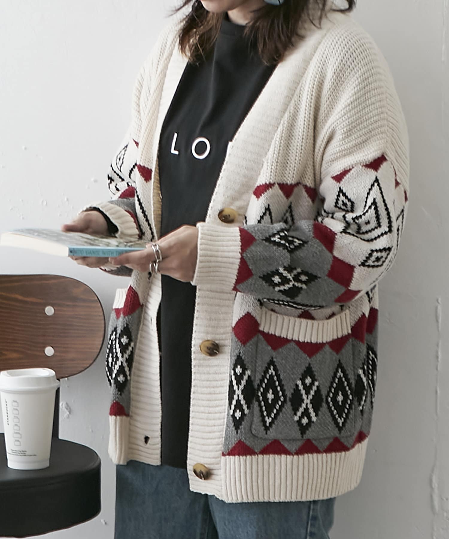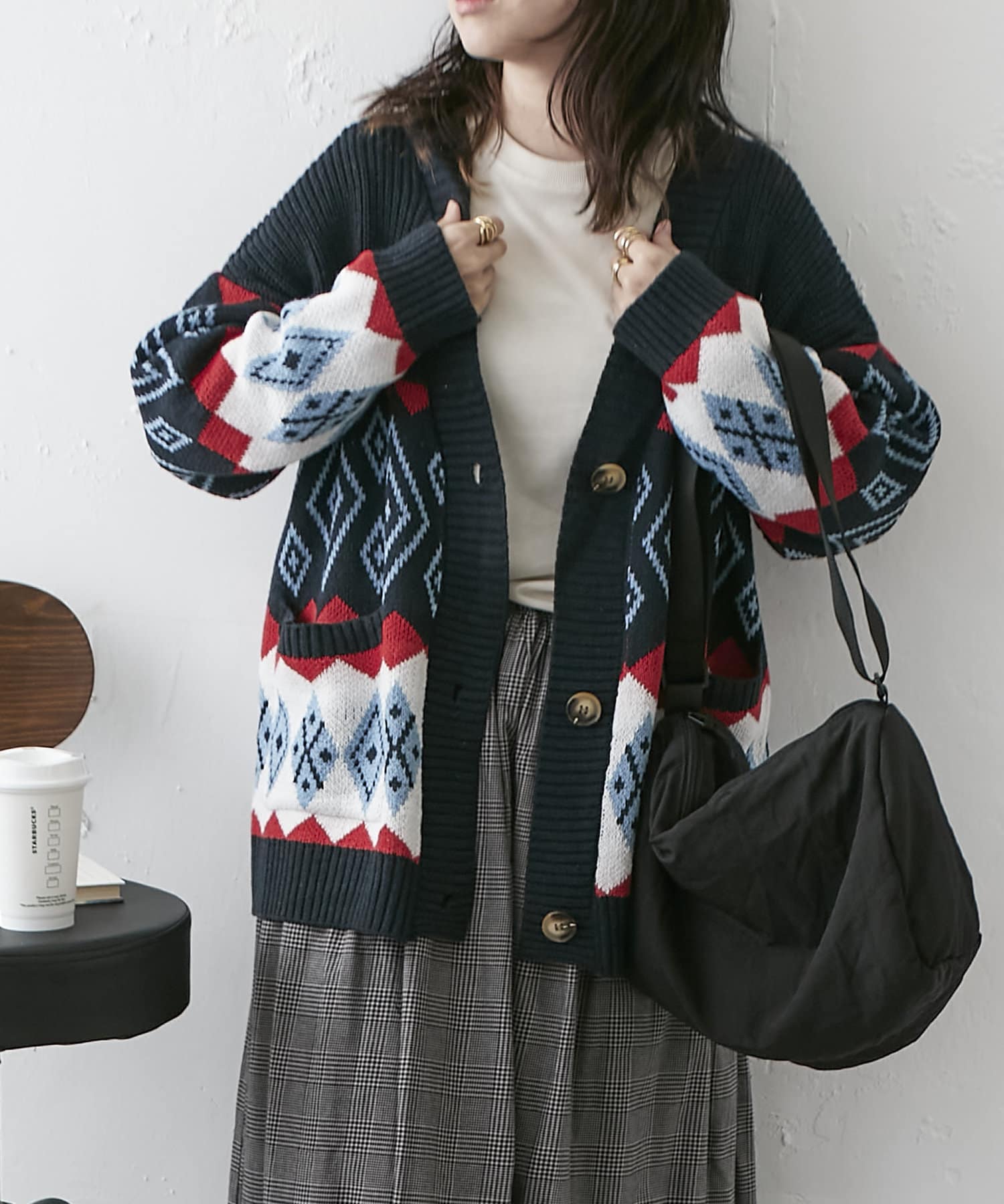 【nao】雪柄ニットカーディガン