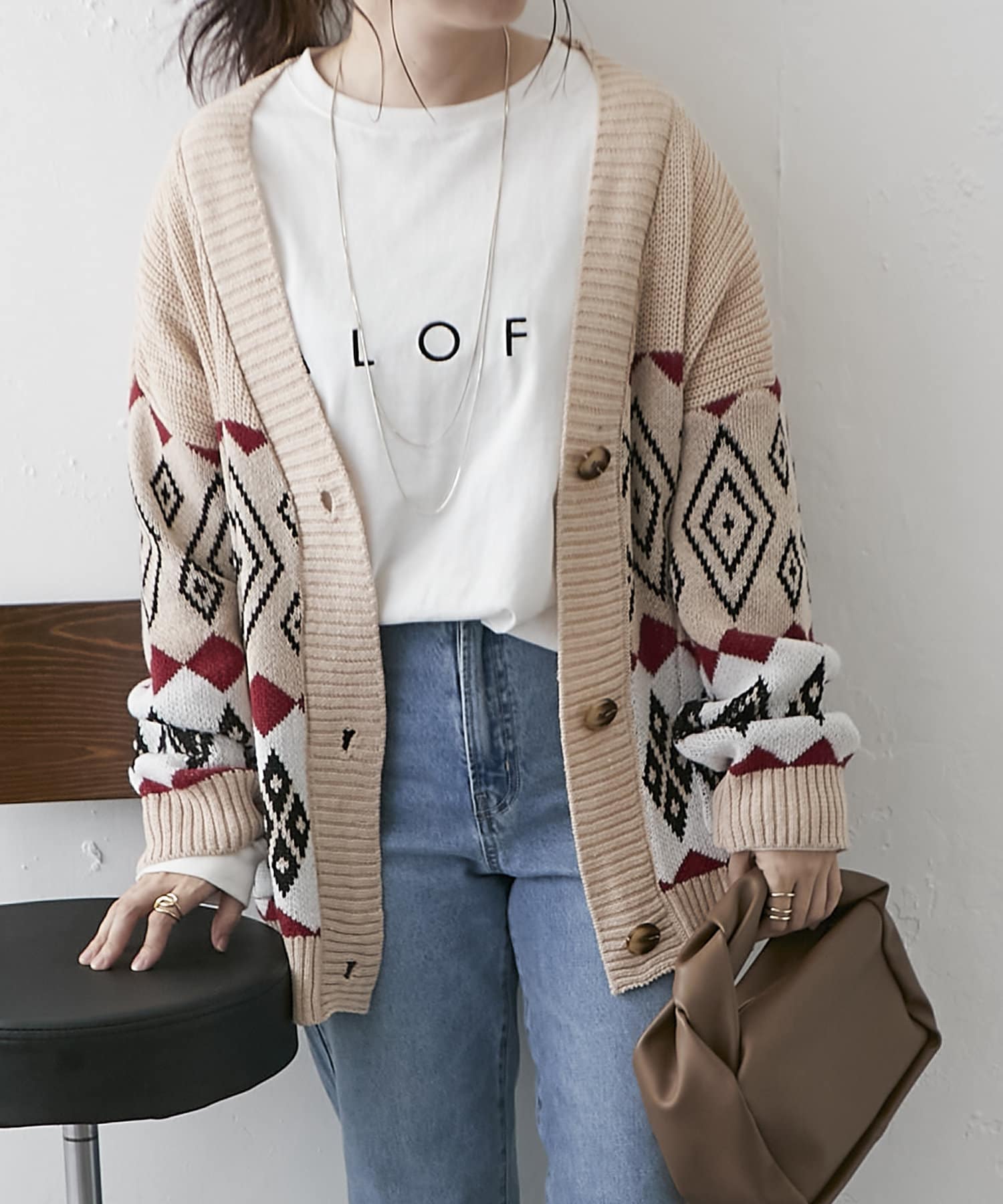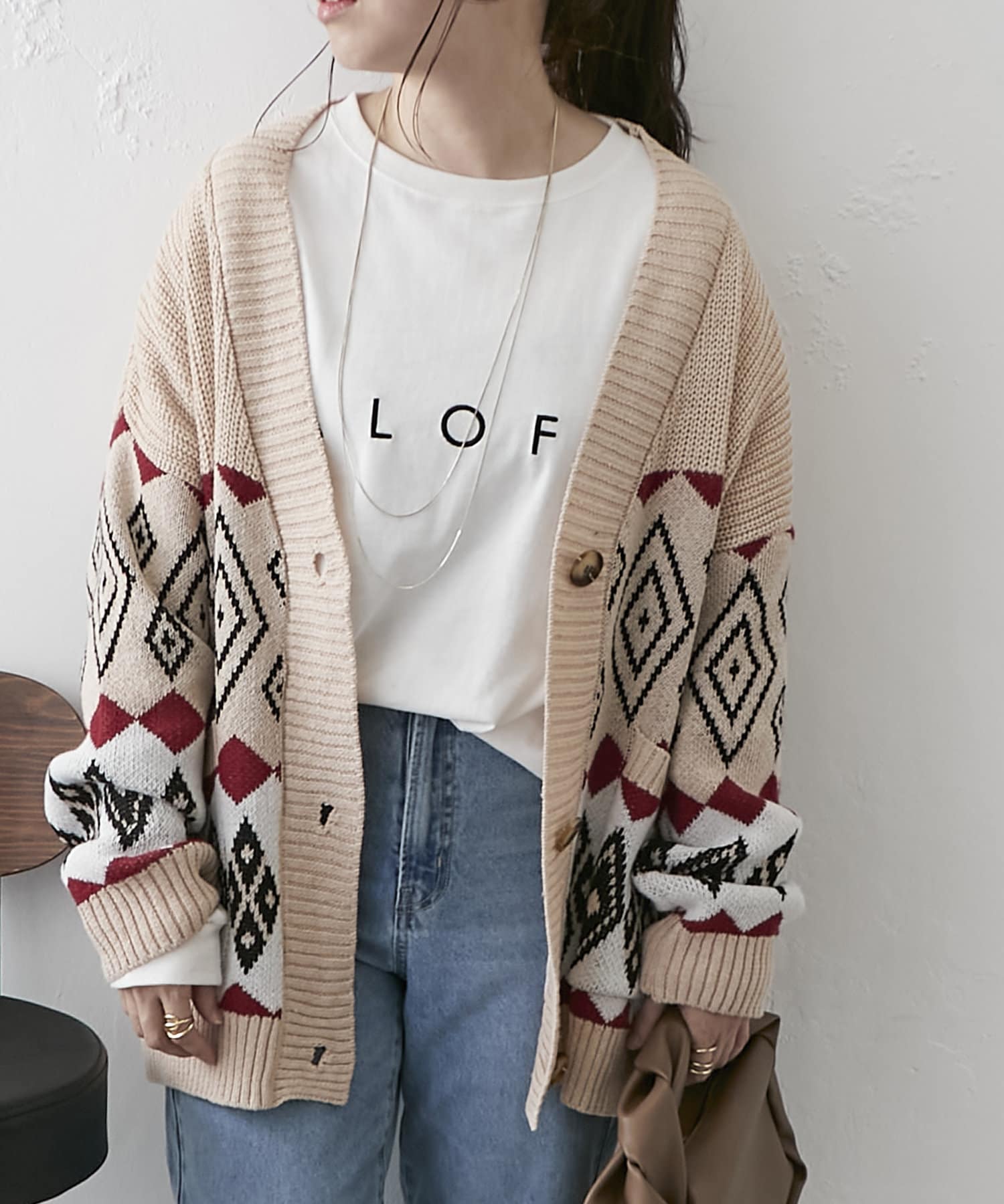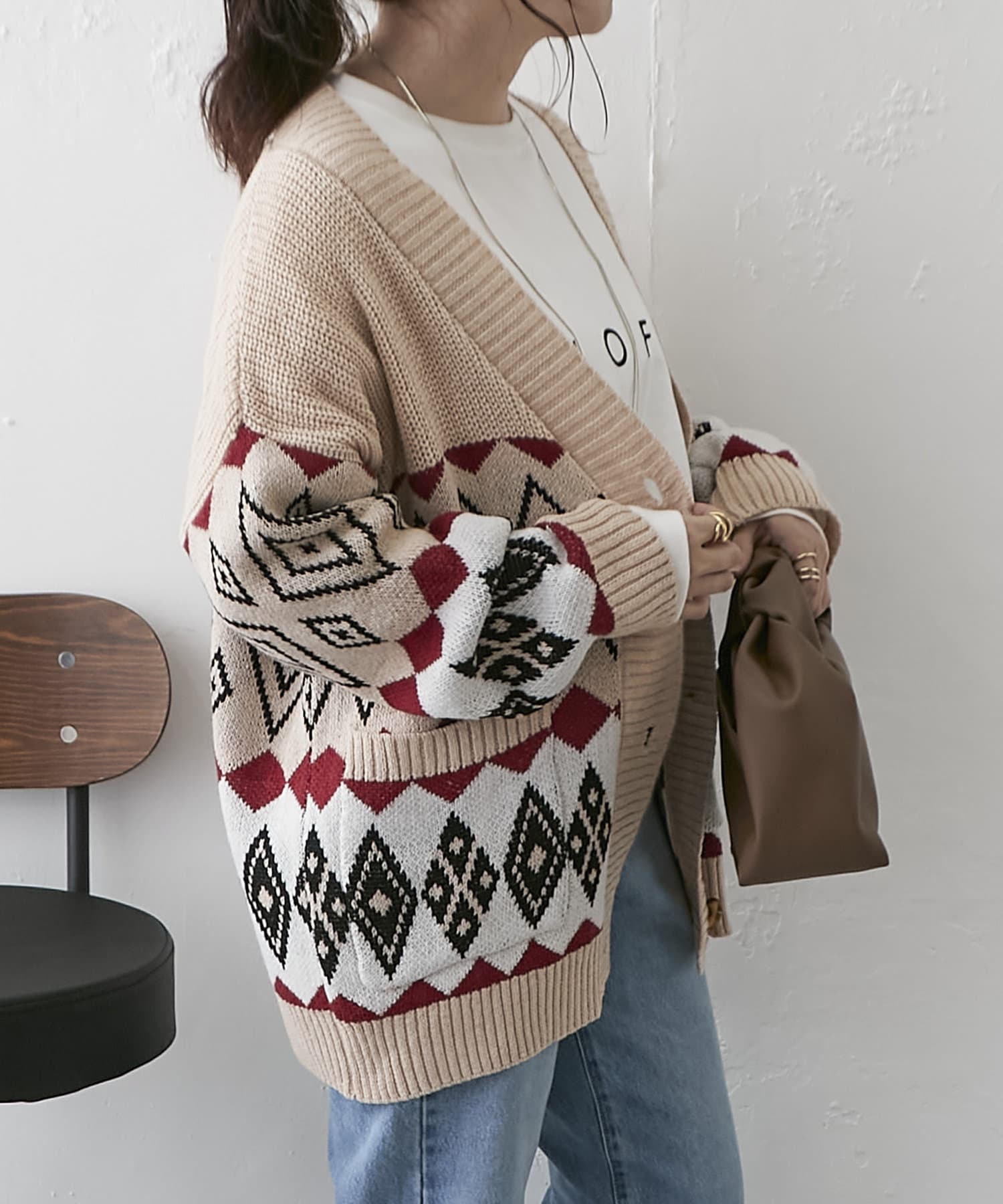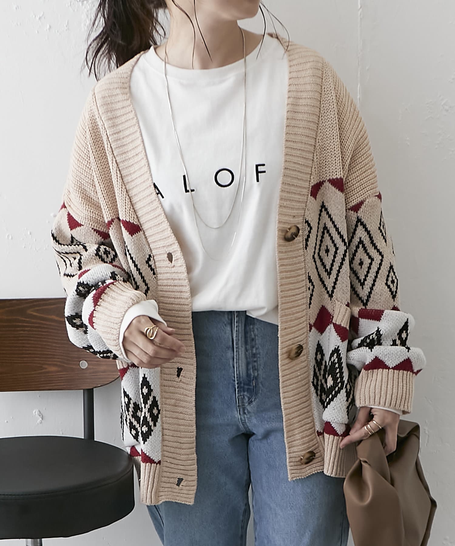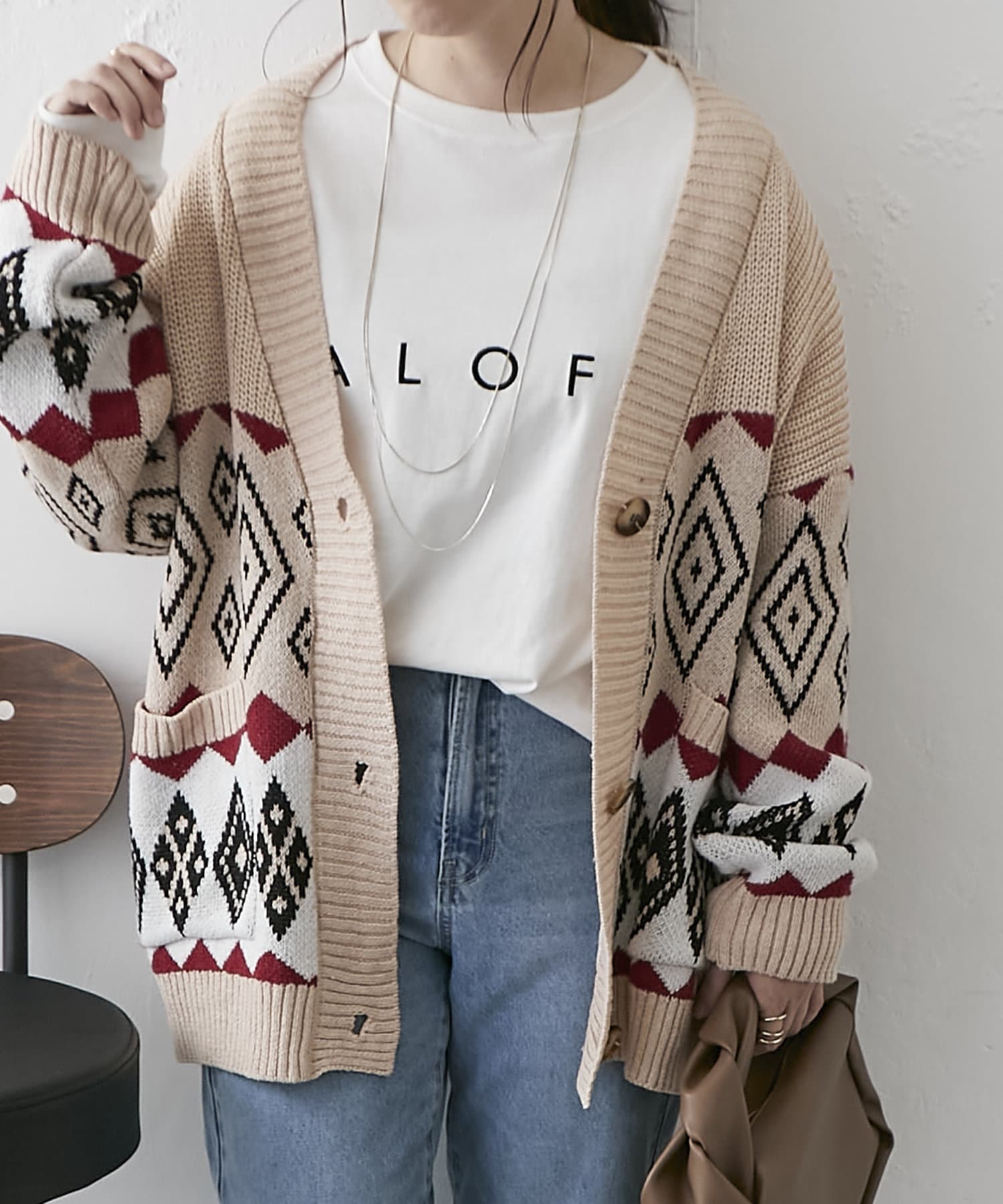 【nao】雪柄ニットカーディガン