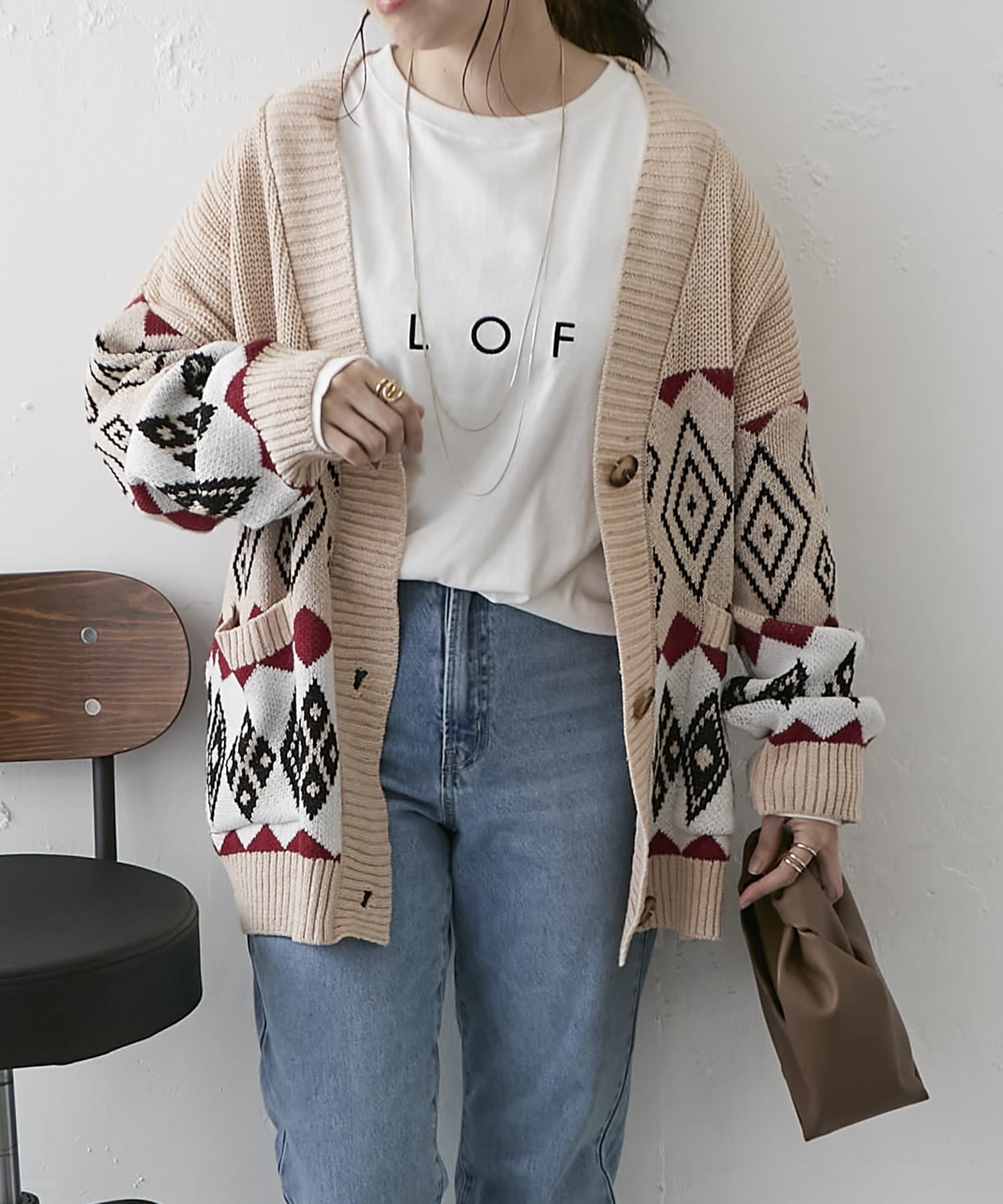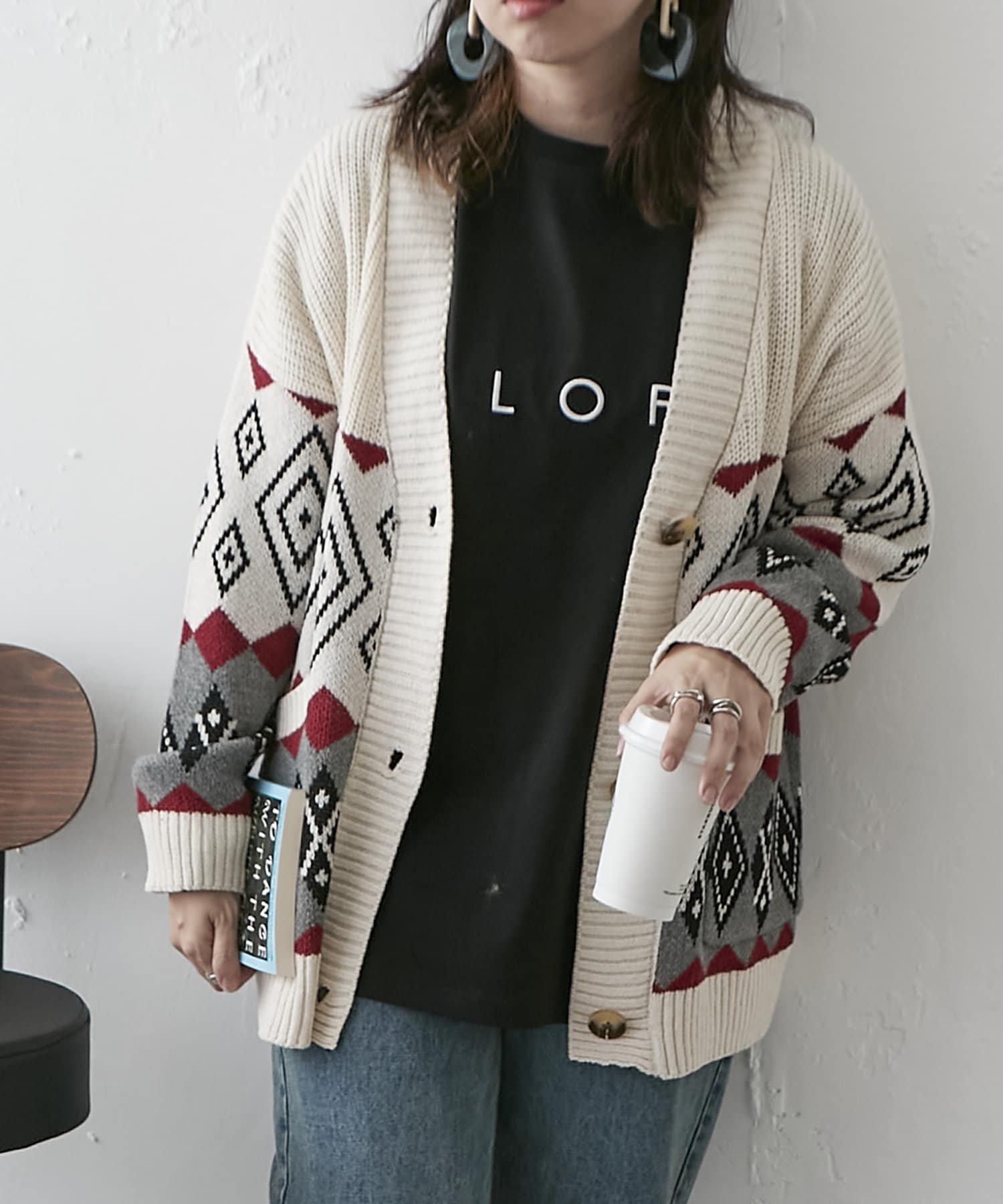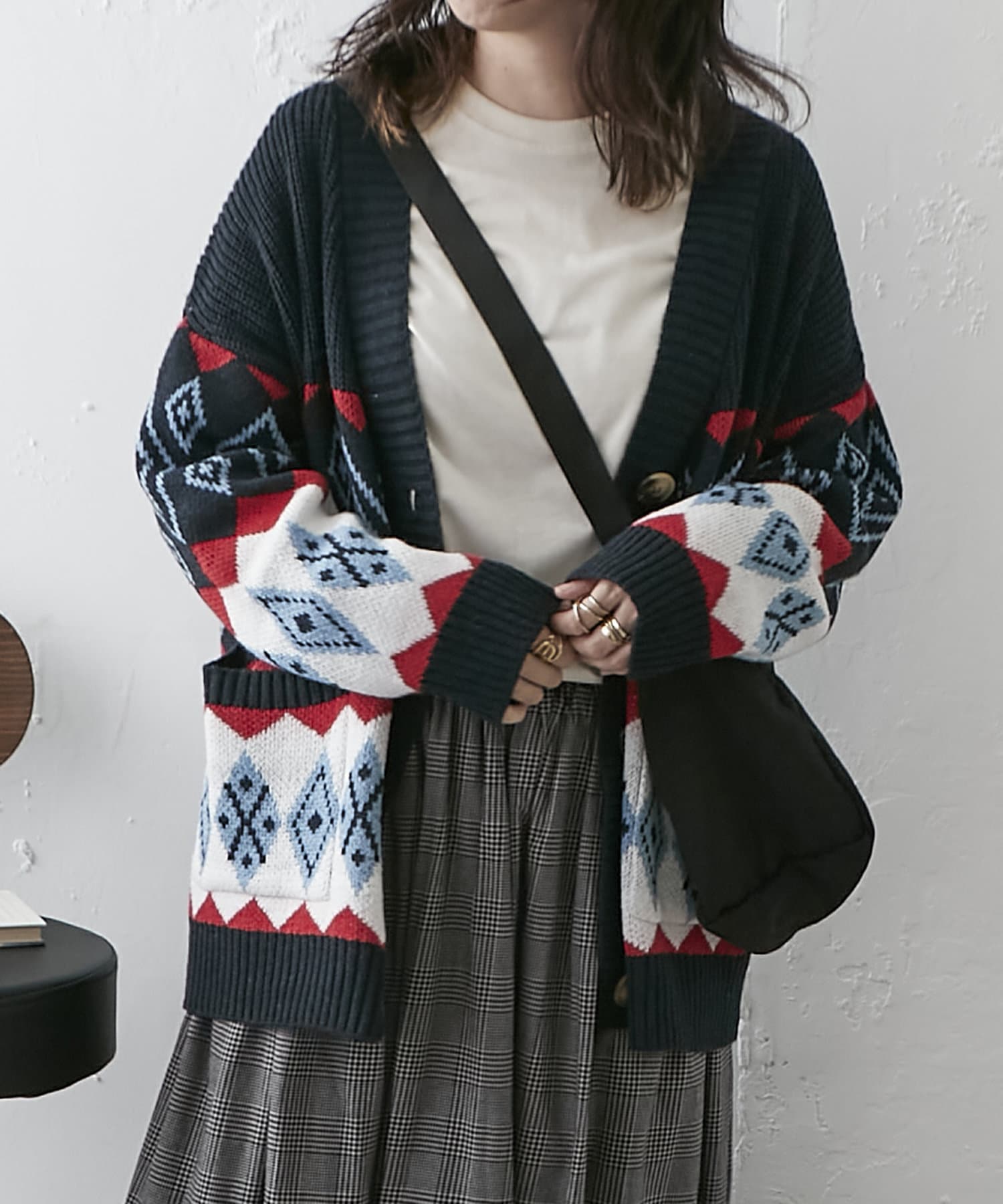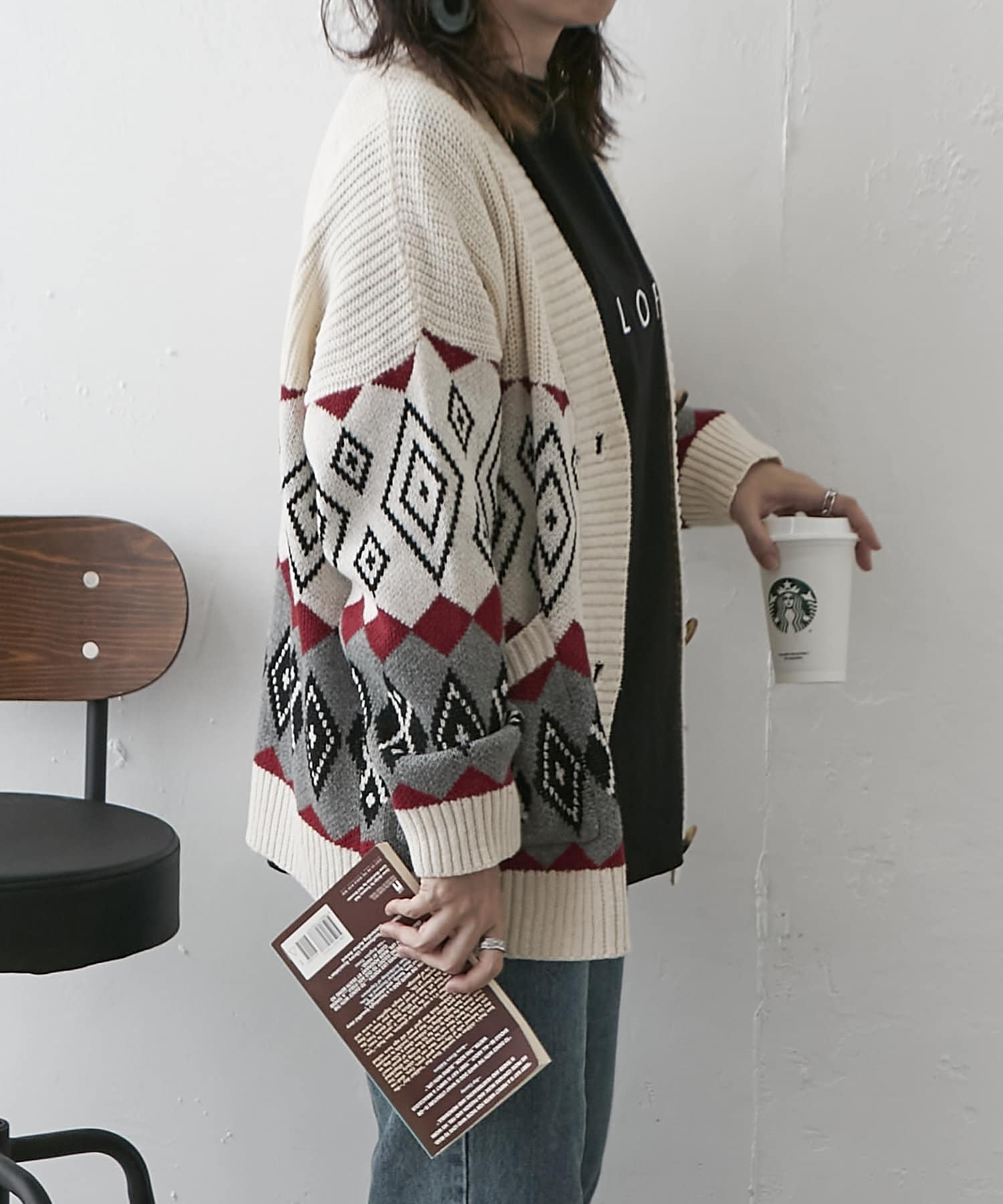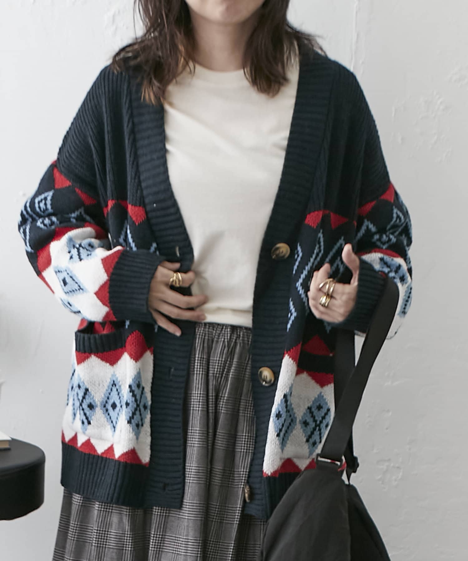 【nao】雪柄ニットカーディガン