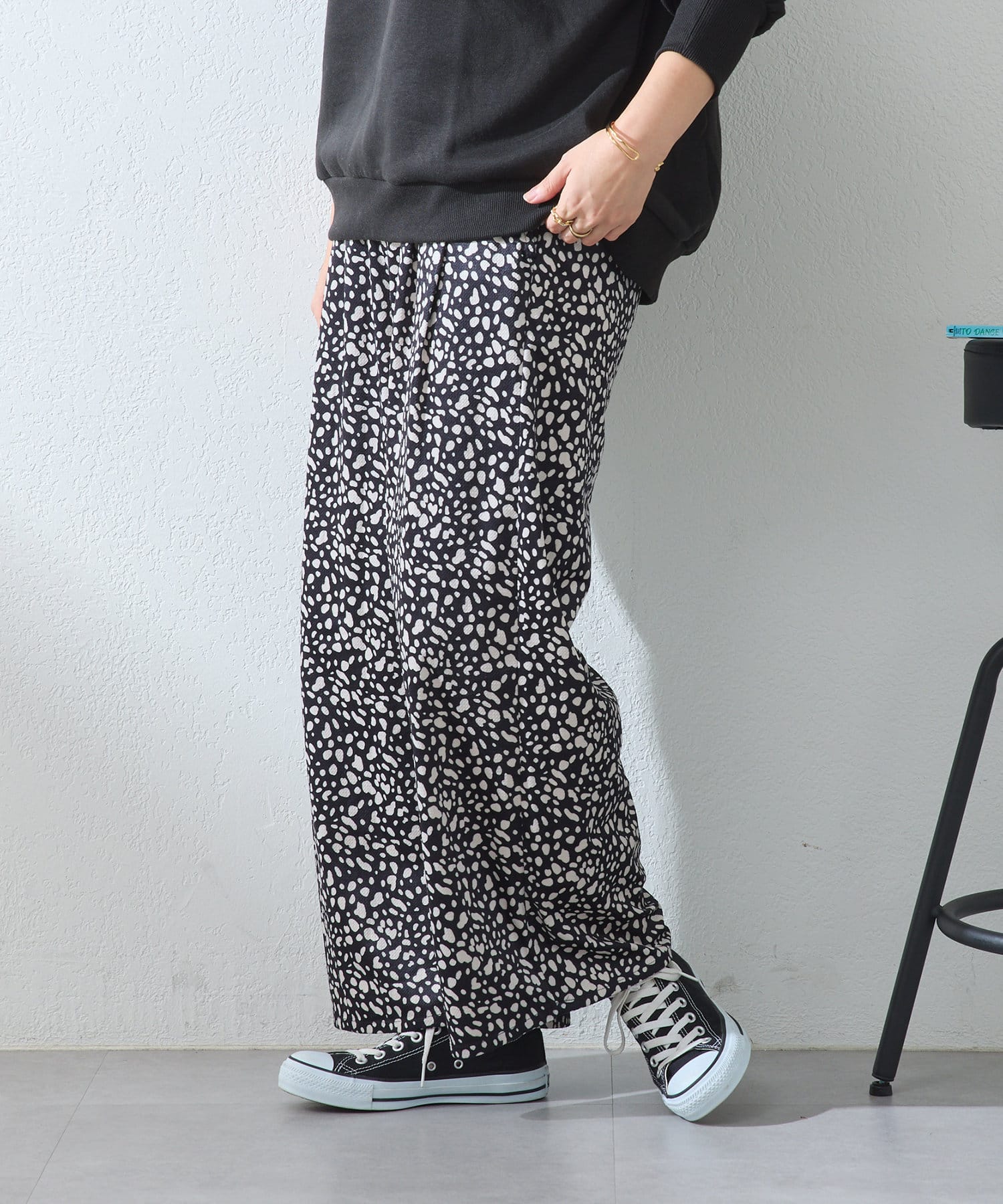 ・ウエストは総ゴムでストレスフリーな履き心地を叶えるイージーパンツ。