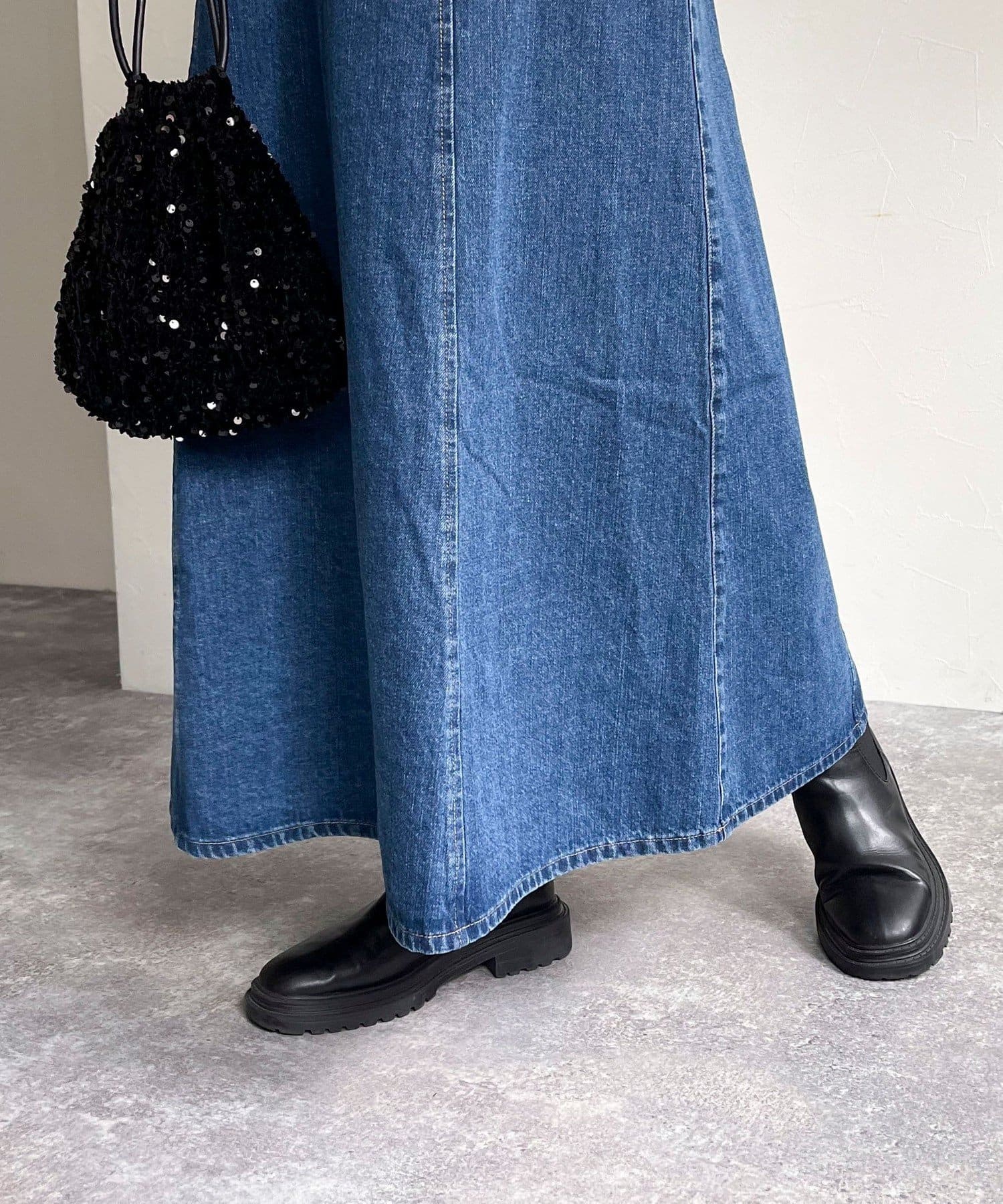・着こなしが今っぽく垢抜けるデニムフレアジャンスカです
