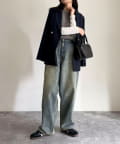 ・美シルエットを叶えてくれるデニムパンツは、コンパクトなトップスと好相性◎