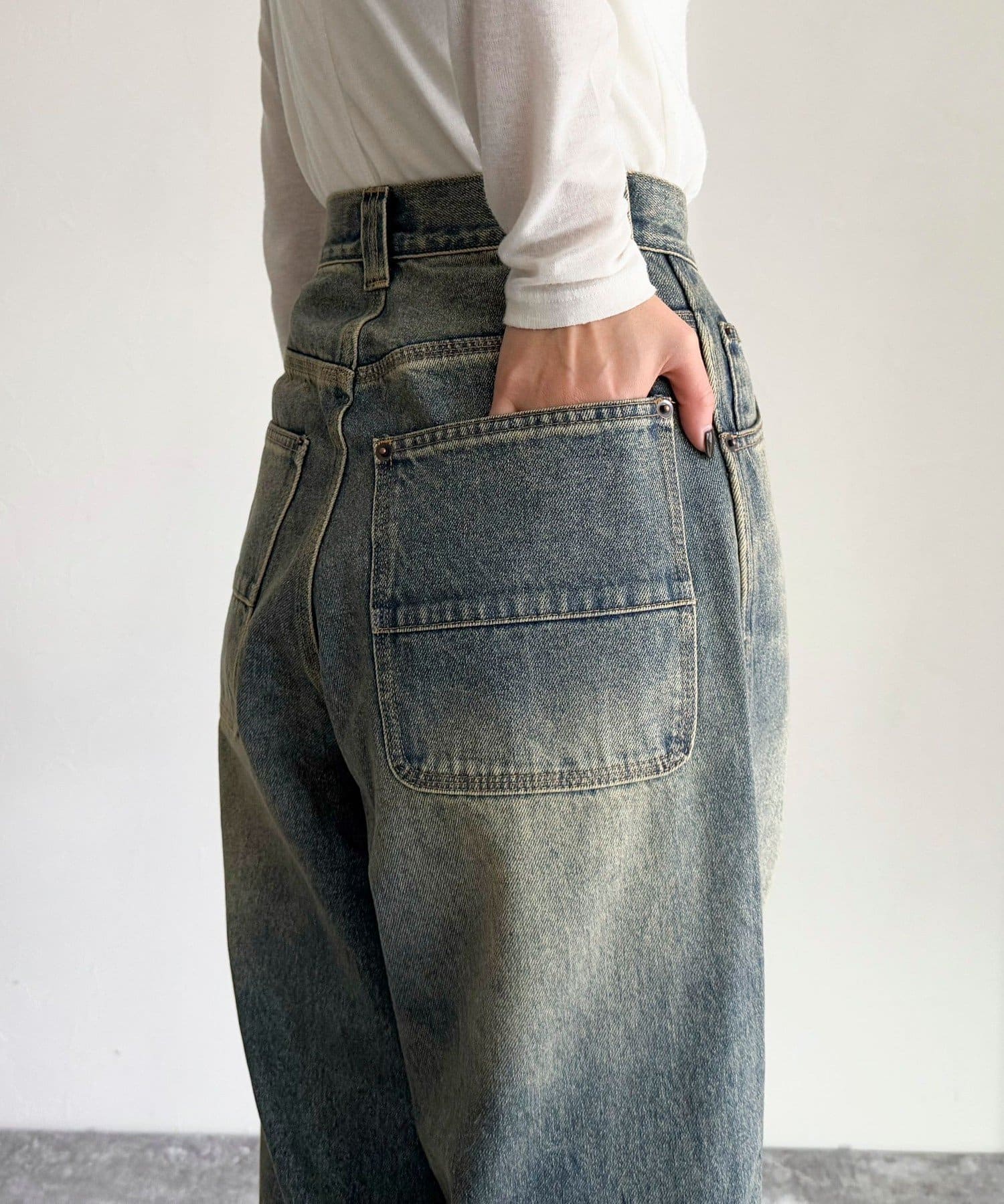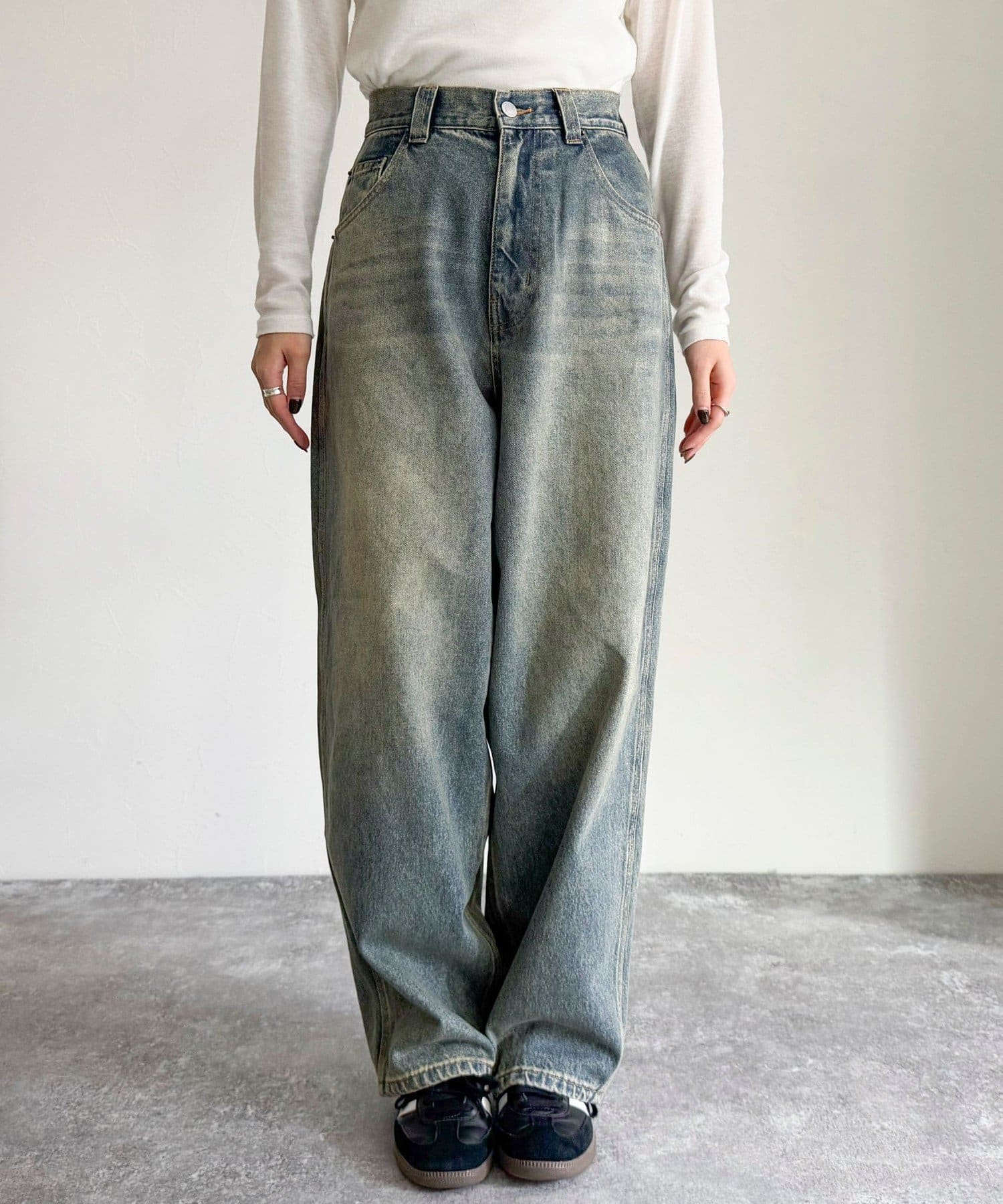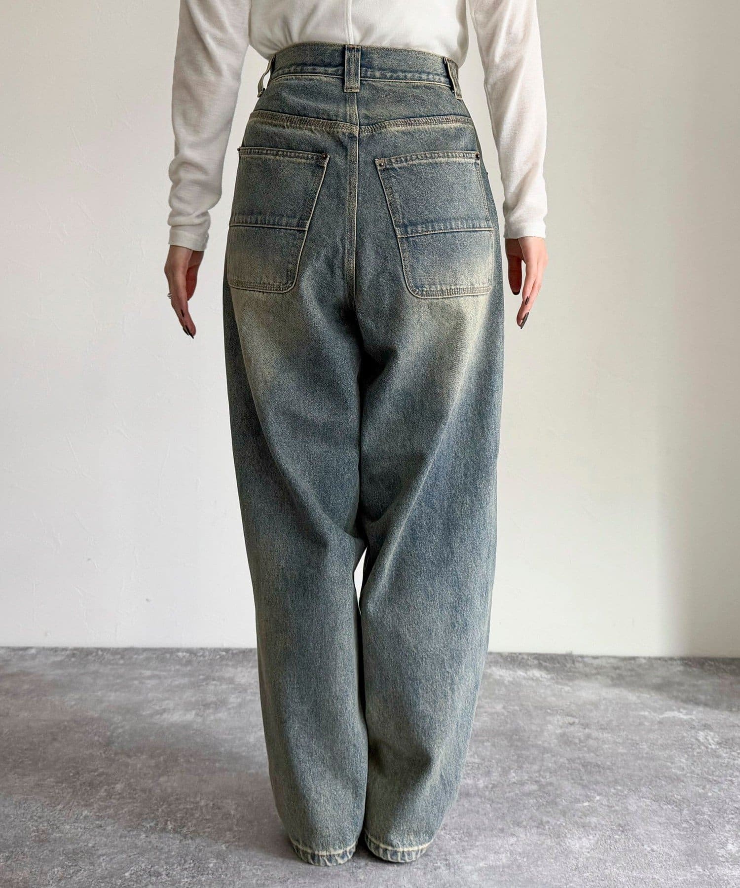 ・ハイウエストが腰回りをスッキリとみせ、トレンドシルエットを作ってくれるルーズデニムパンツです