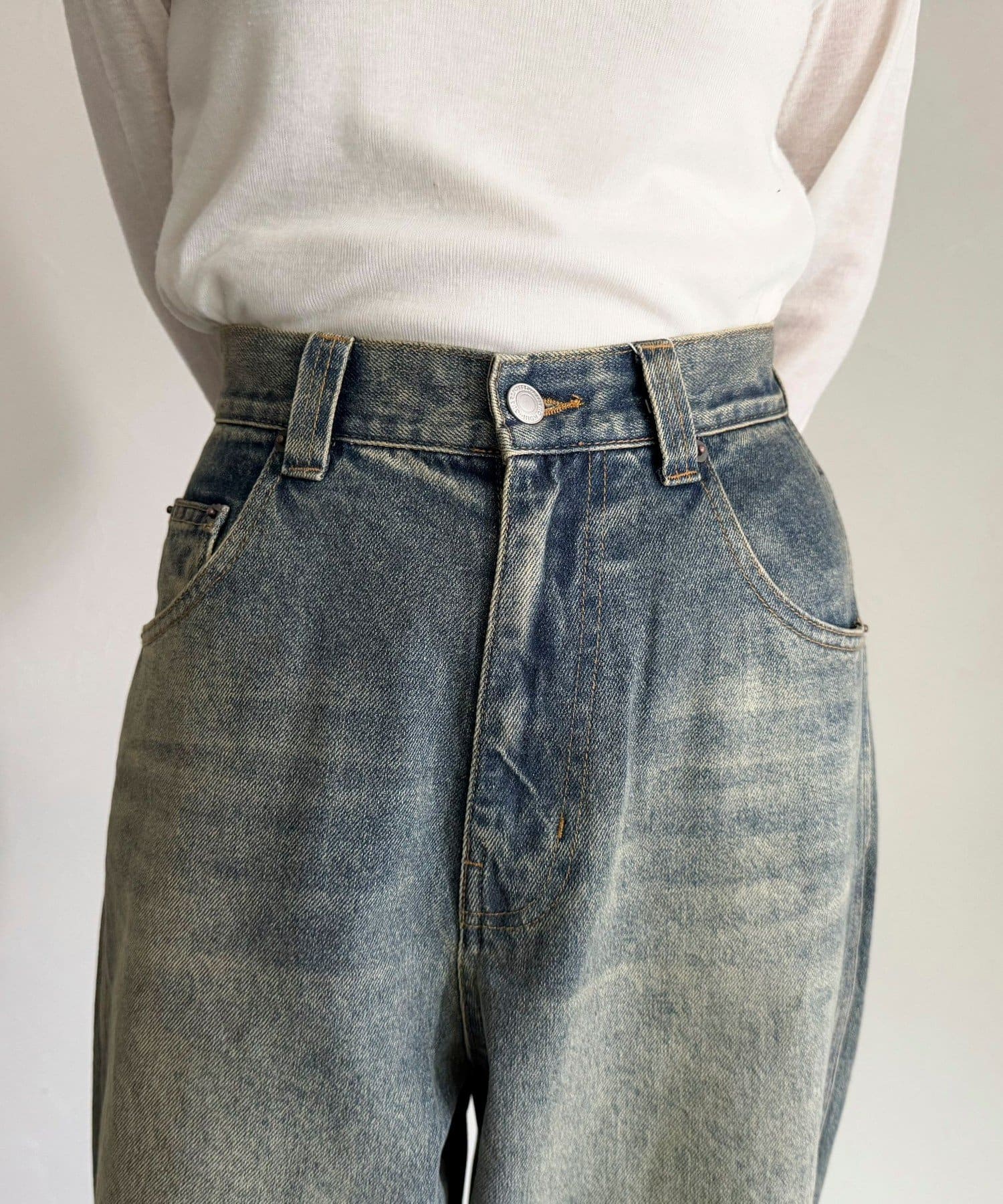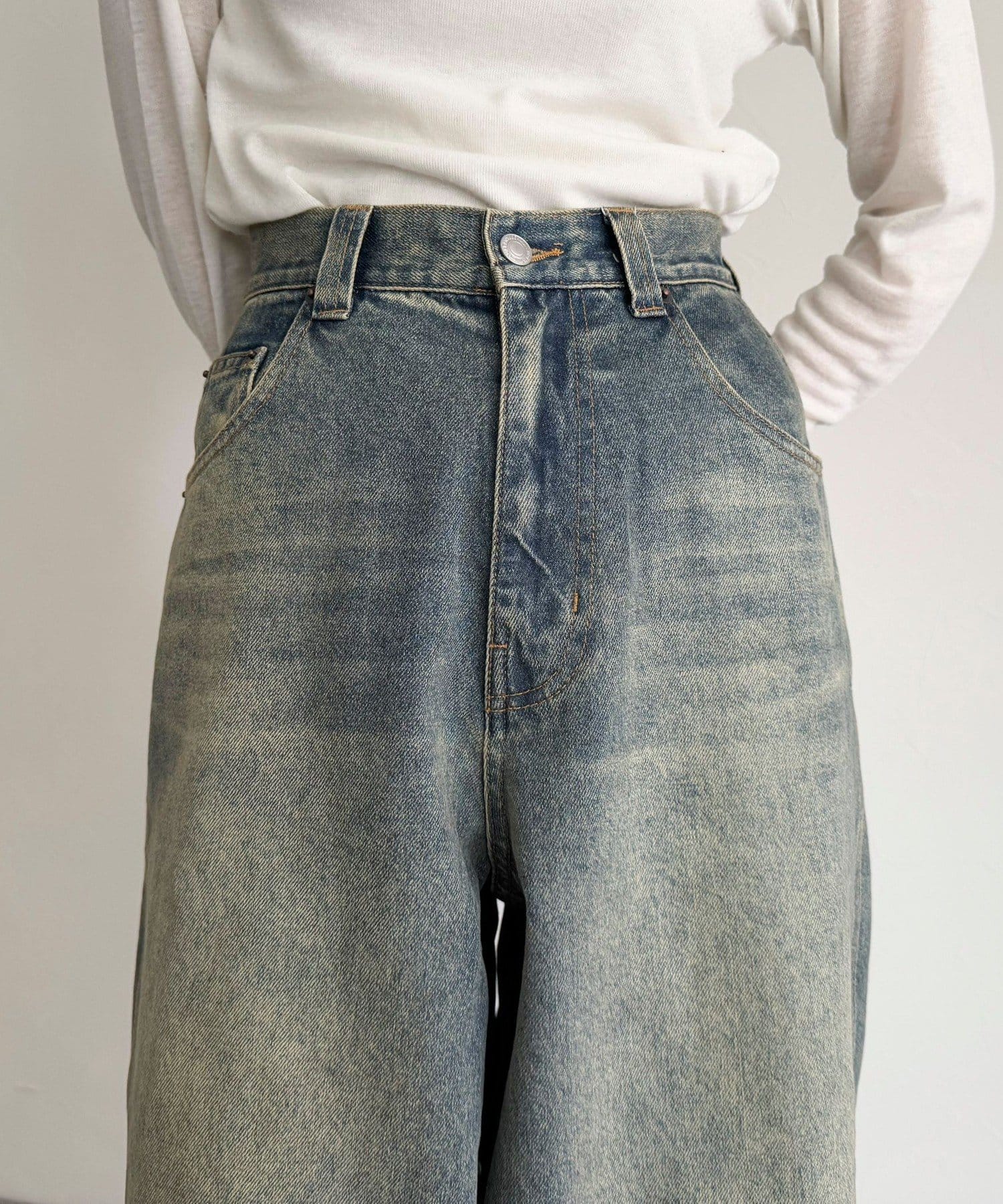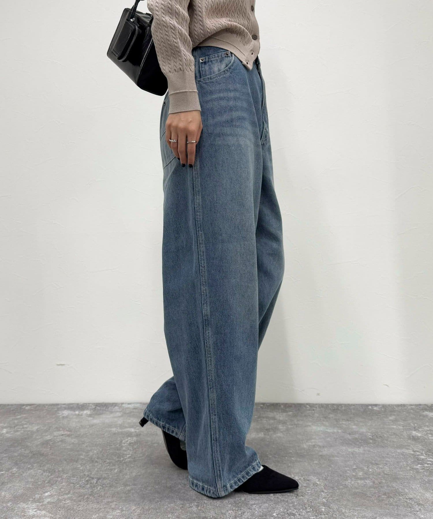 ・ハイウエストが腰回りをスッキリとみせ、トレンドシルエットを作ってくれるルーズデニムパンツです