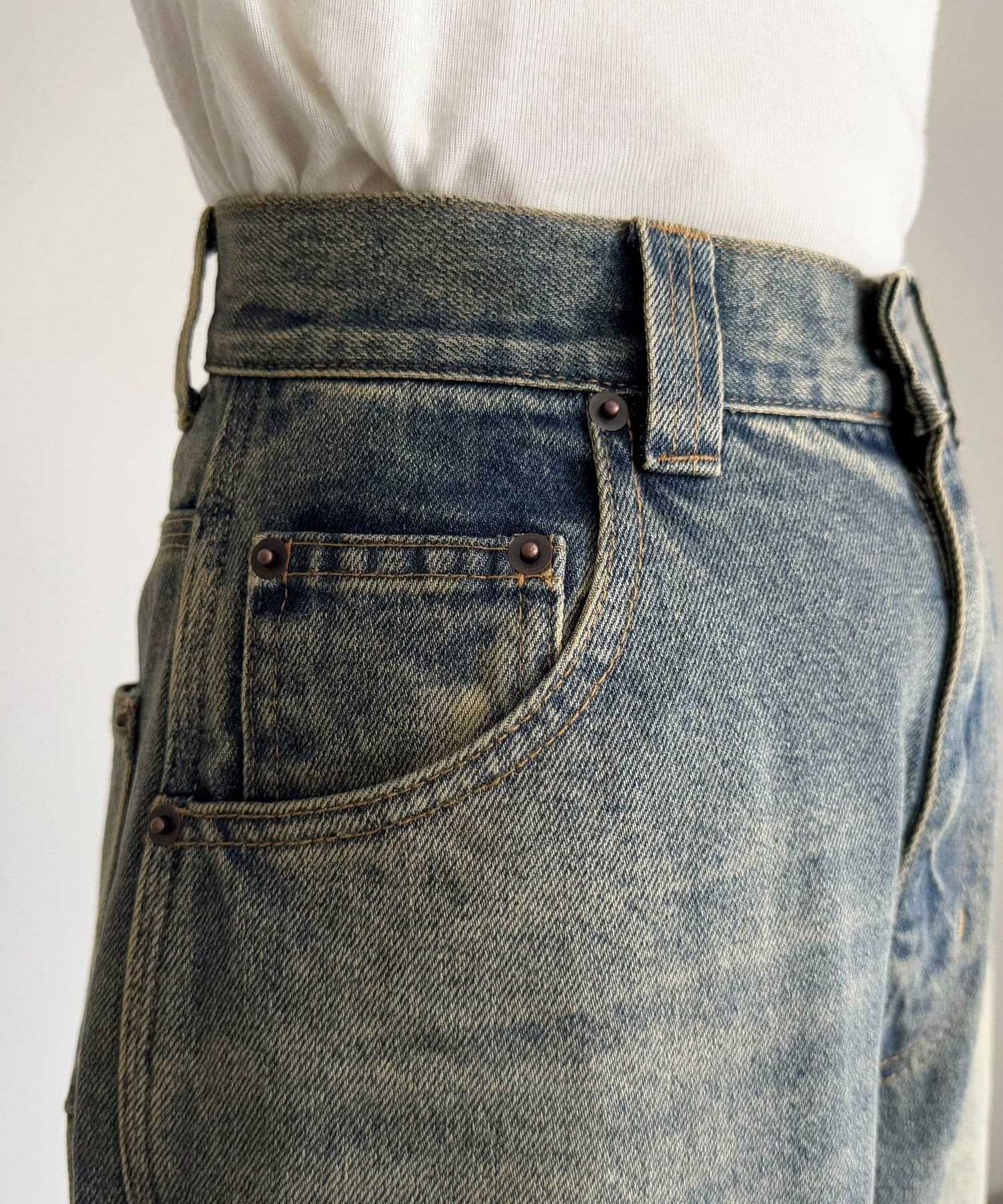 *この製品はインディゴ染めです。他の製品では味わえない自然な風合いがあり、洗っていくごとに独特な色落ち変化を楽しめます。