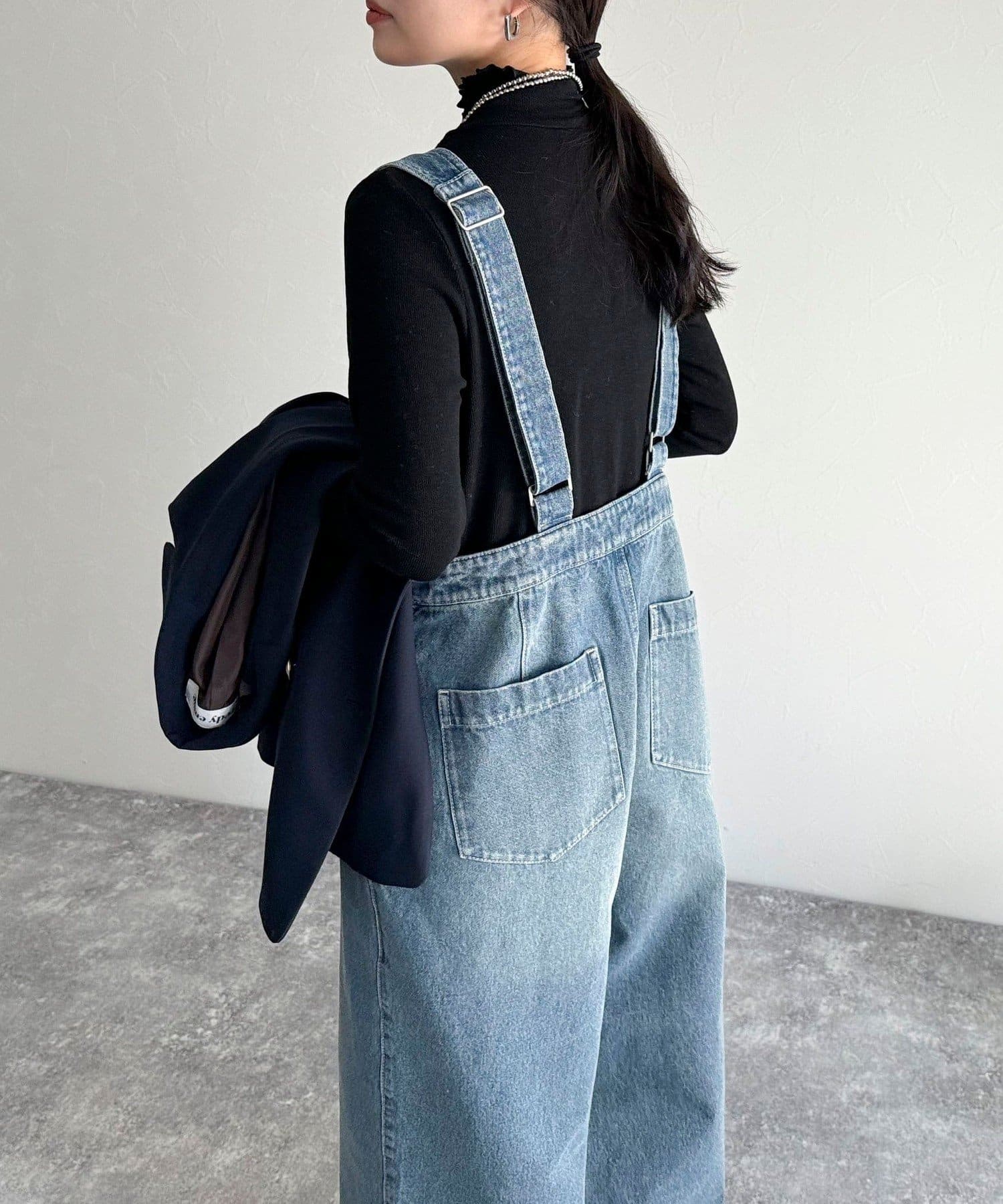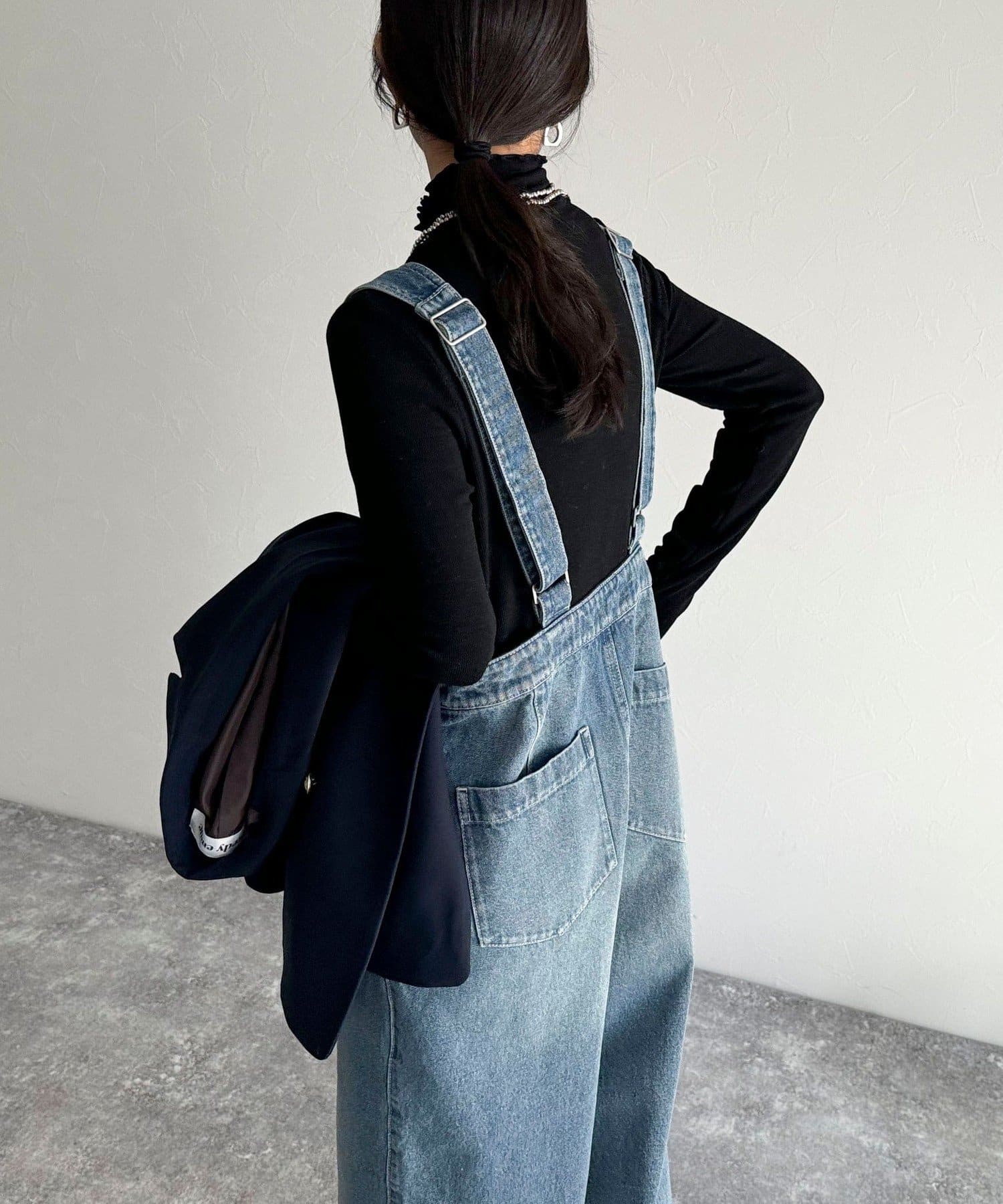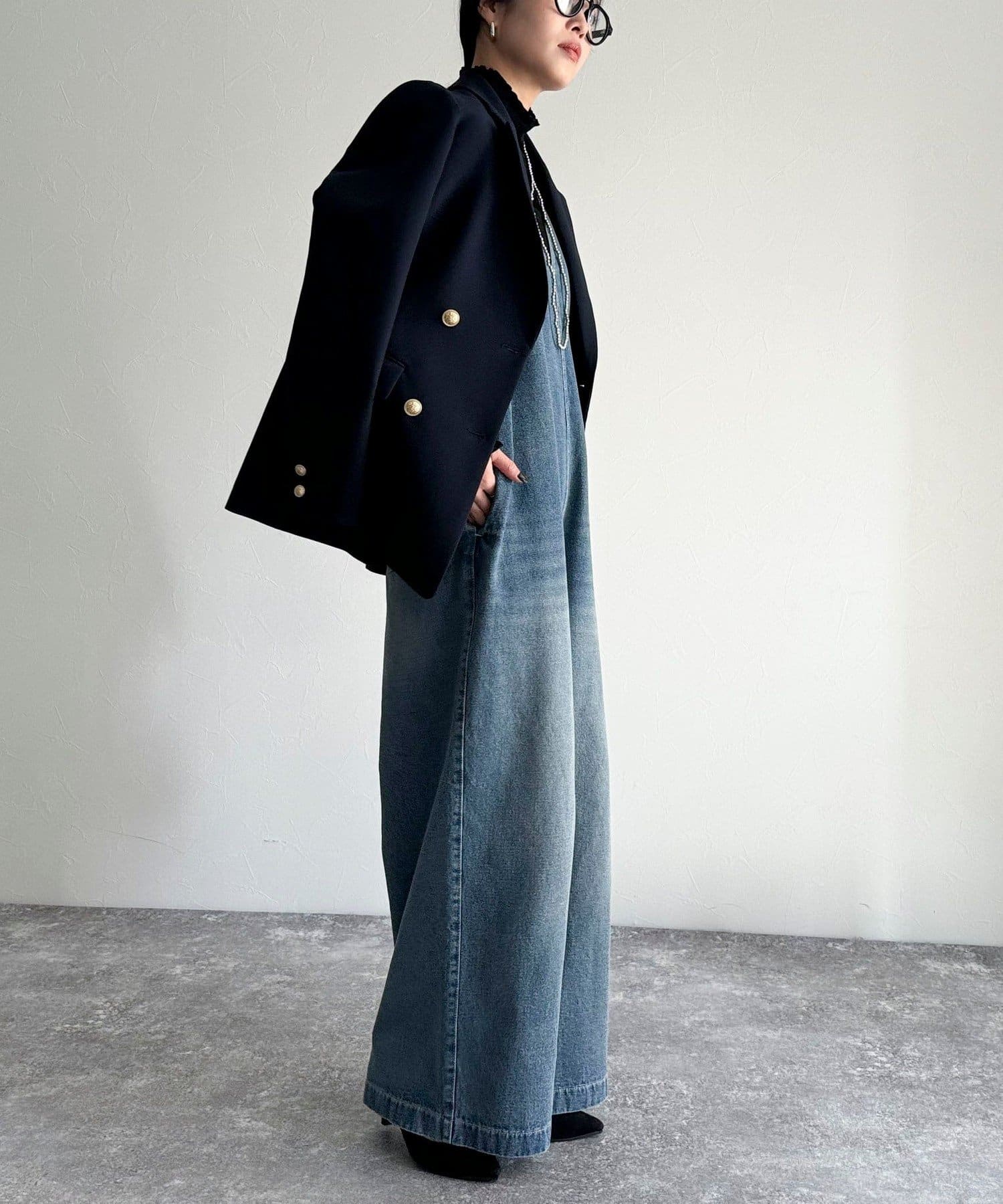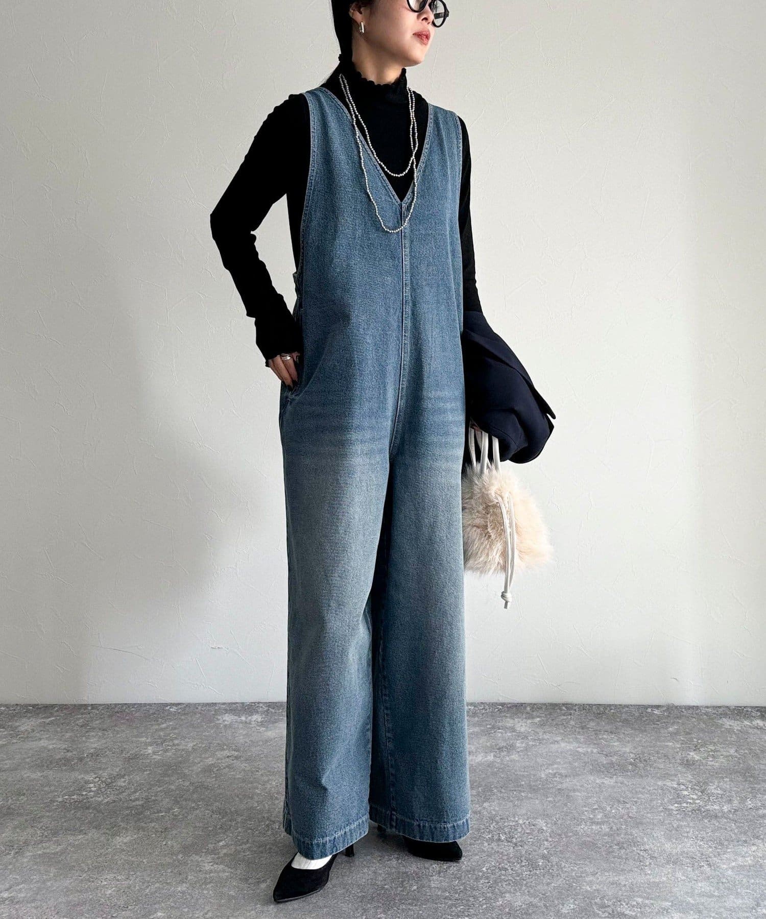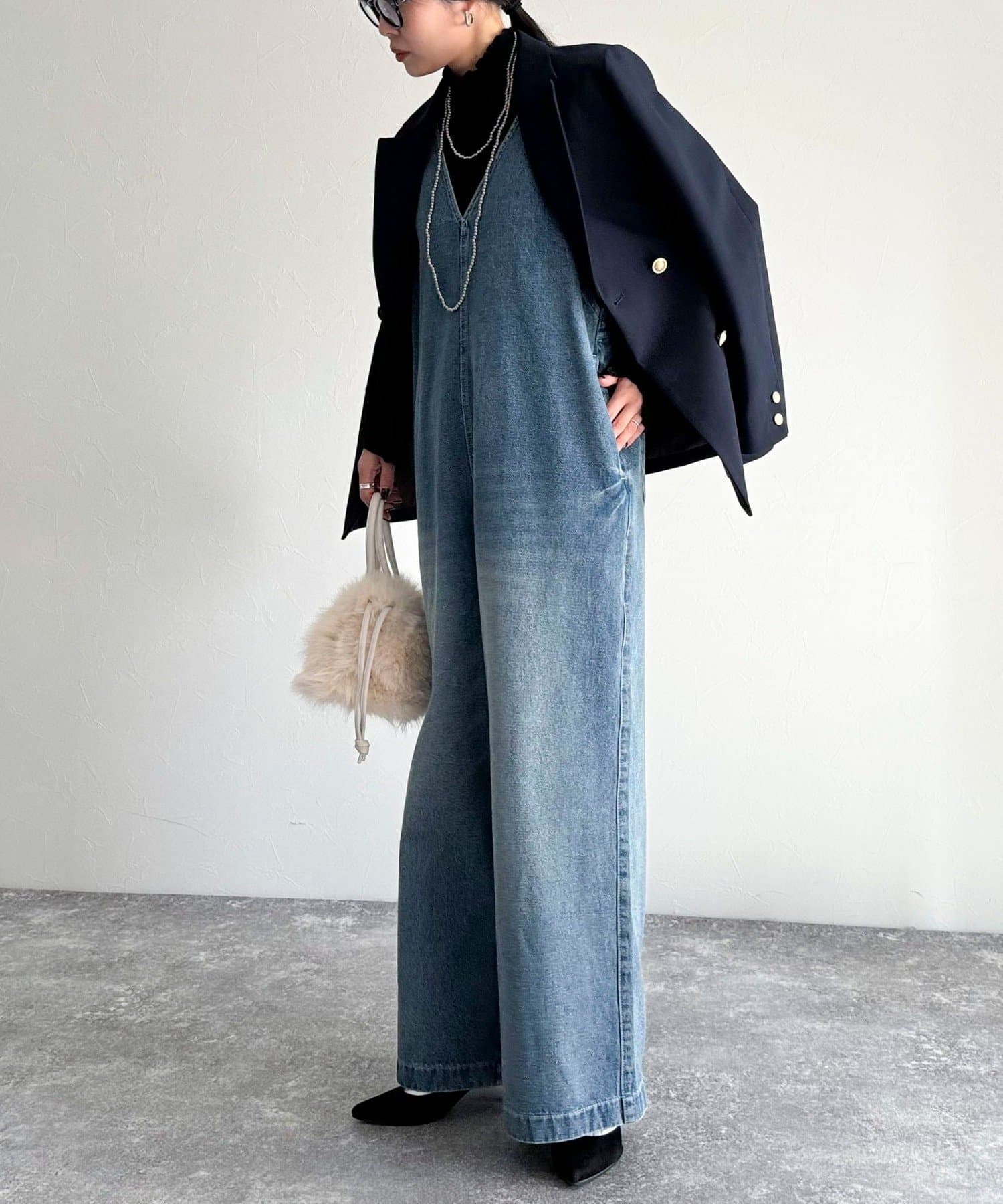 ・縦のシルエットがキレイな大人のデニムオールインワンです