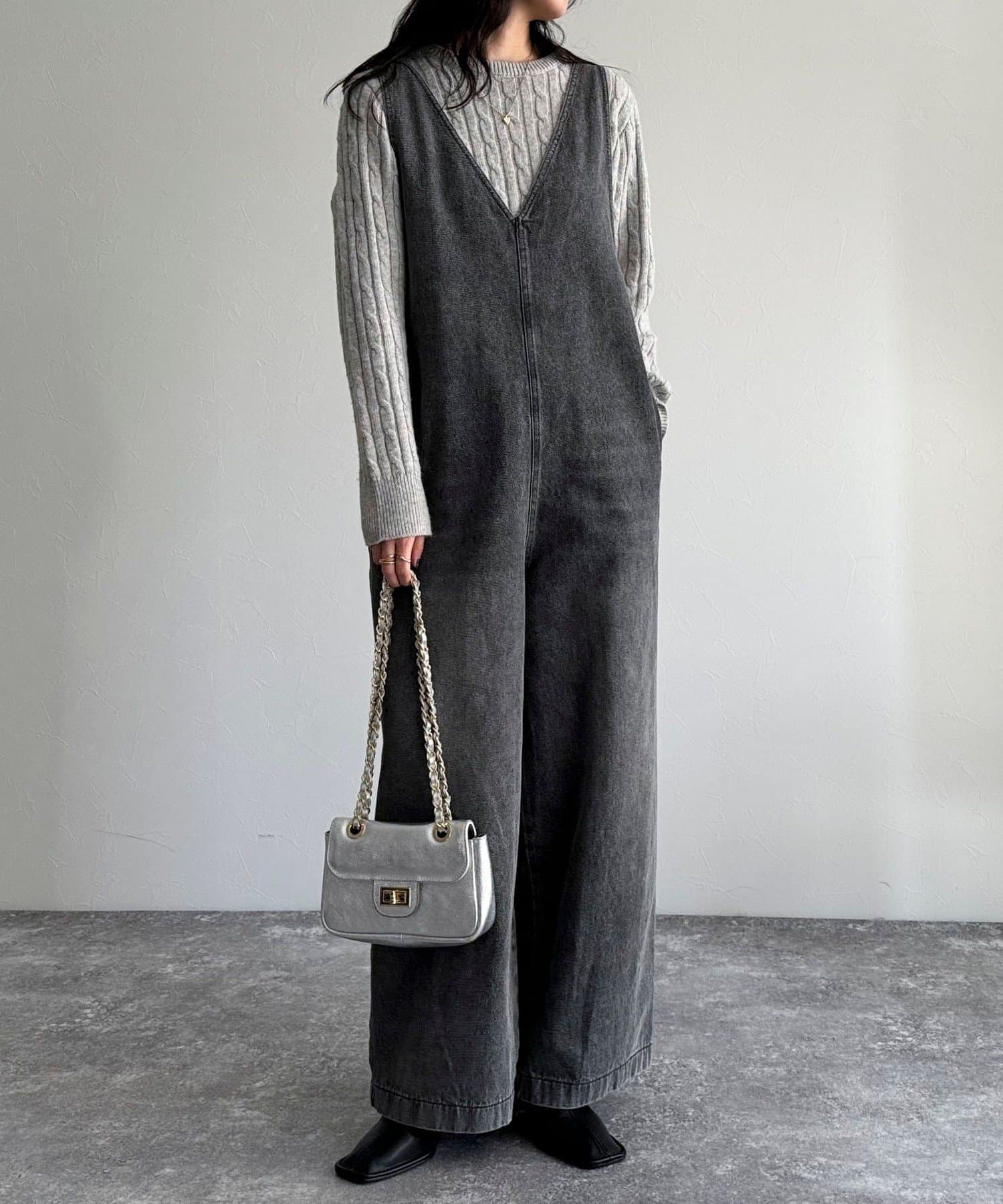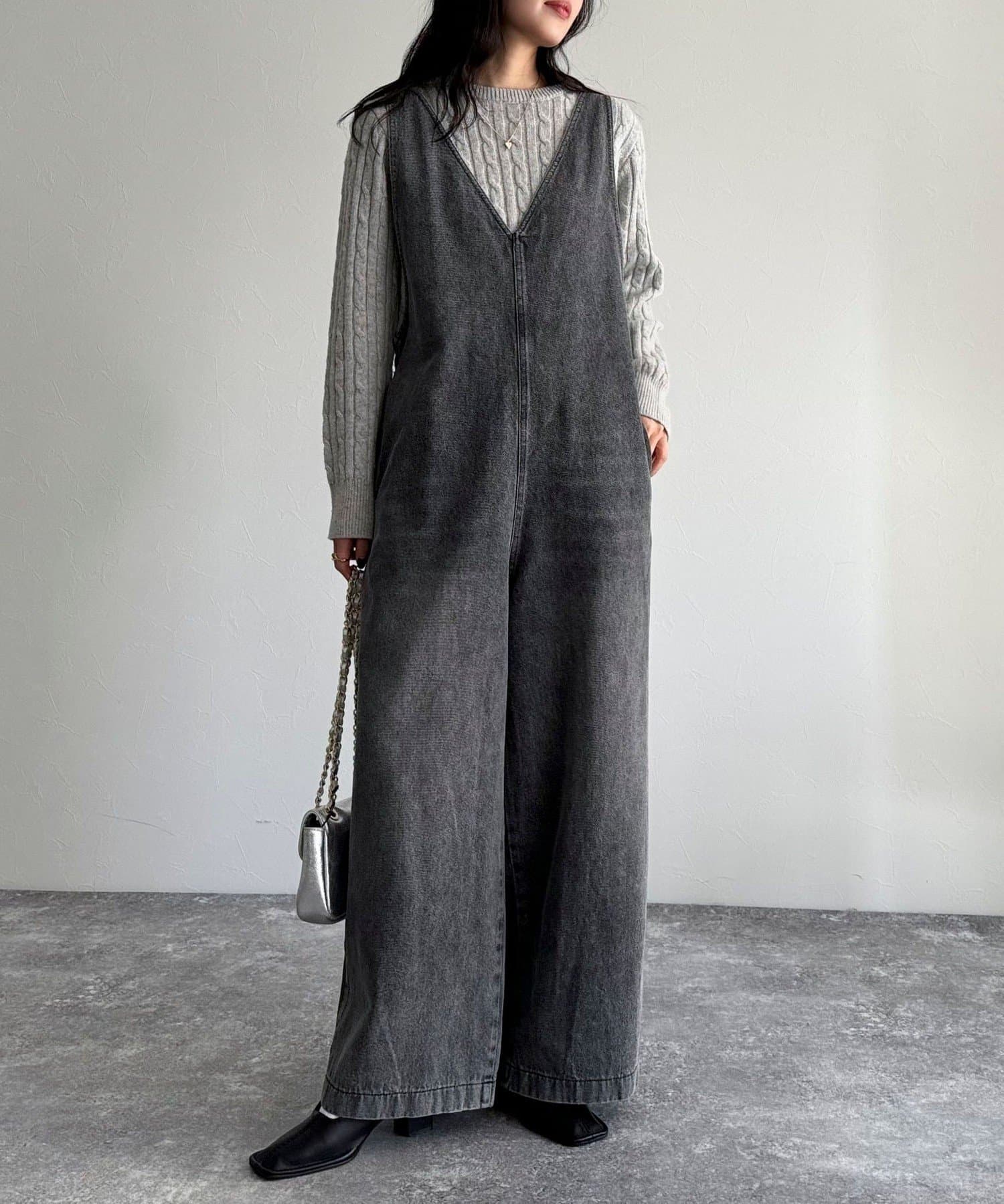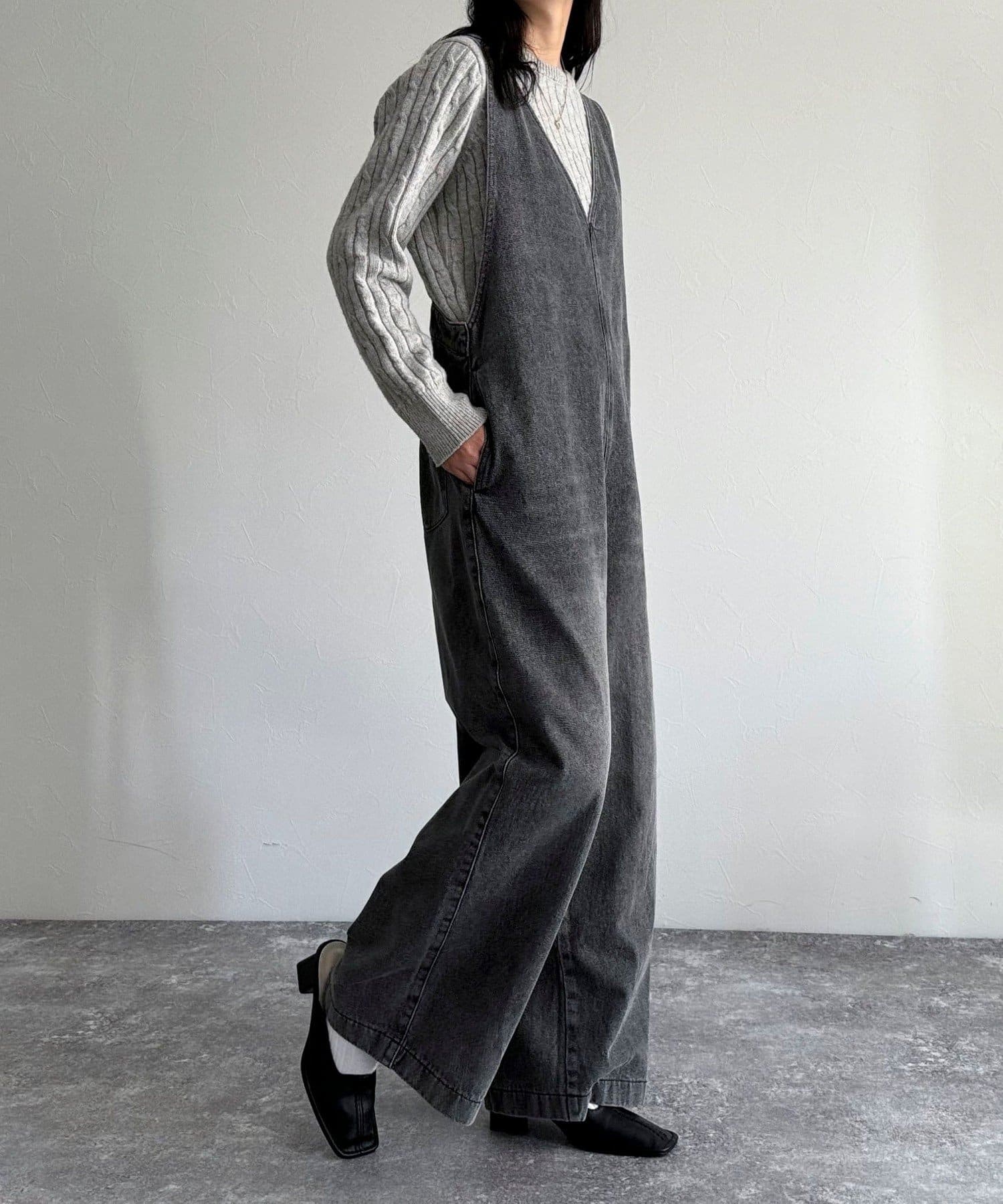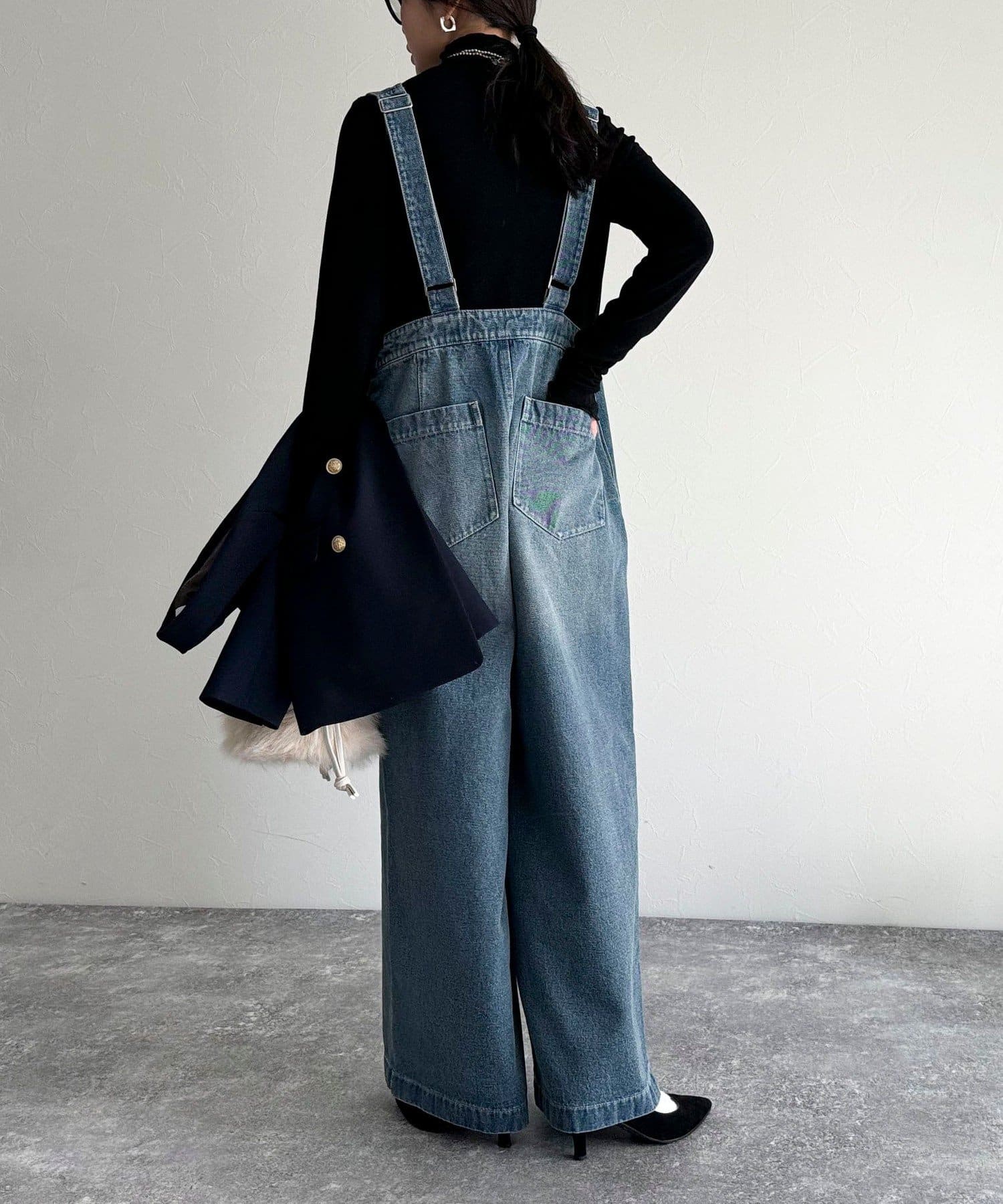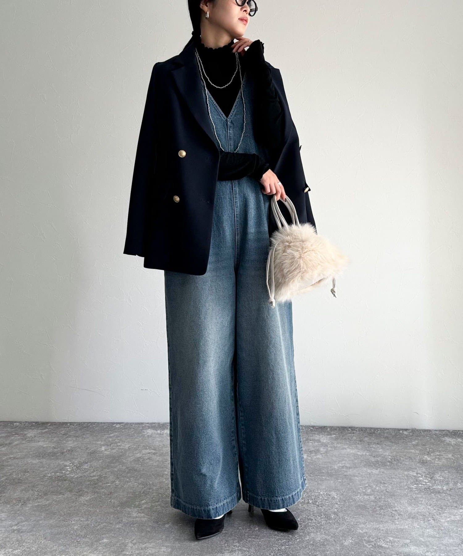 ・縦のシルエットがキレイな大人のデニムオールインワンです
