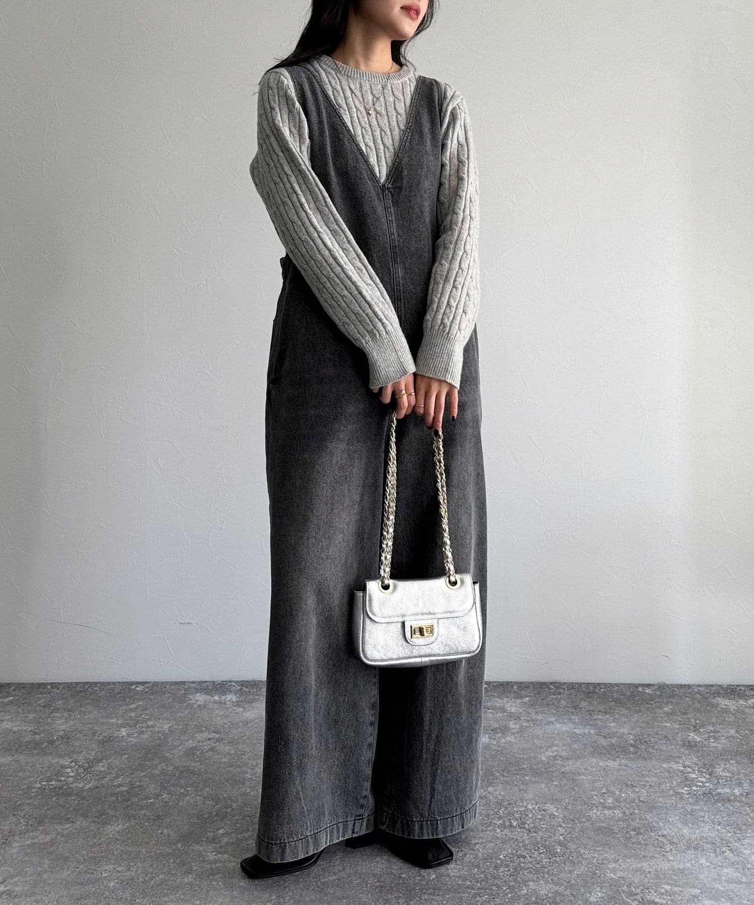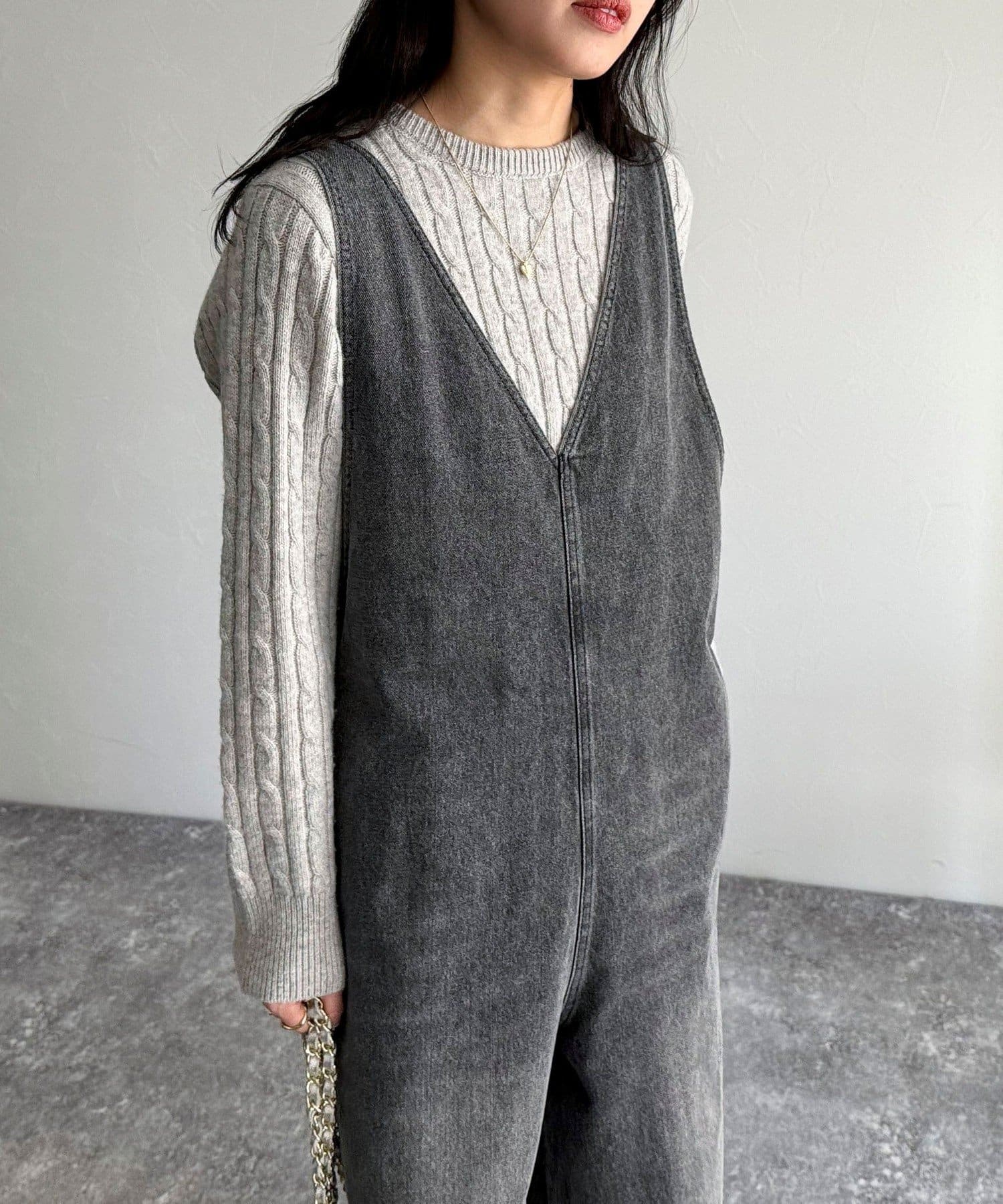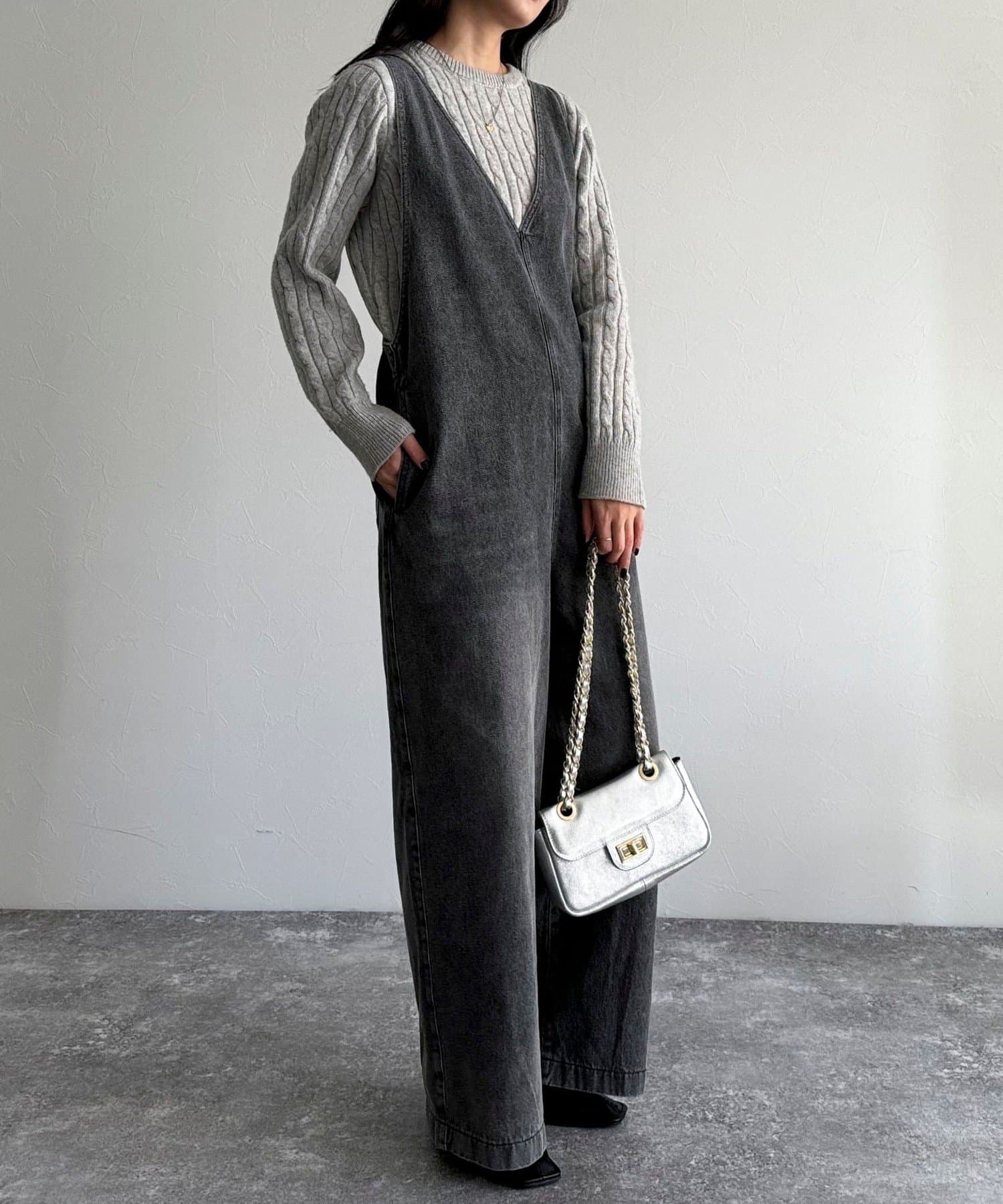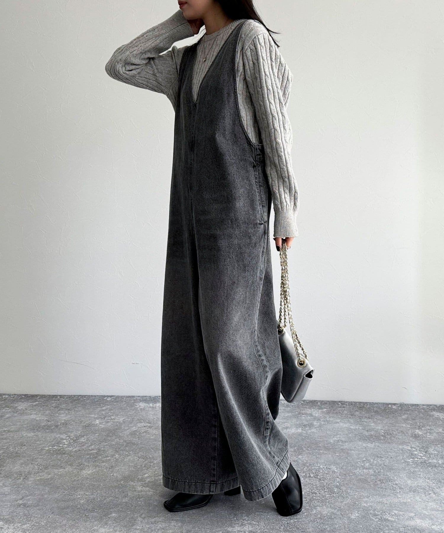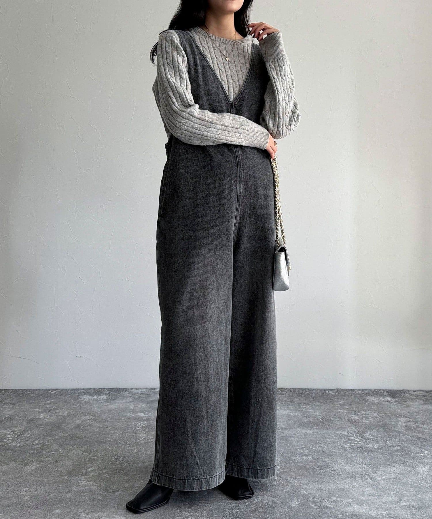 ・縦のシルエットがキレイな大人のデニムオールインワンです