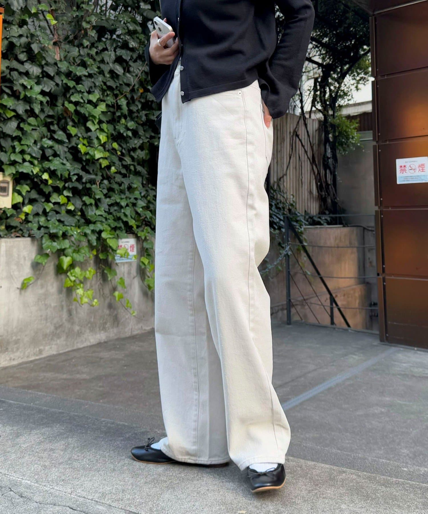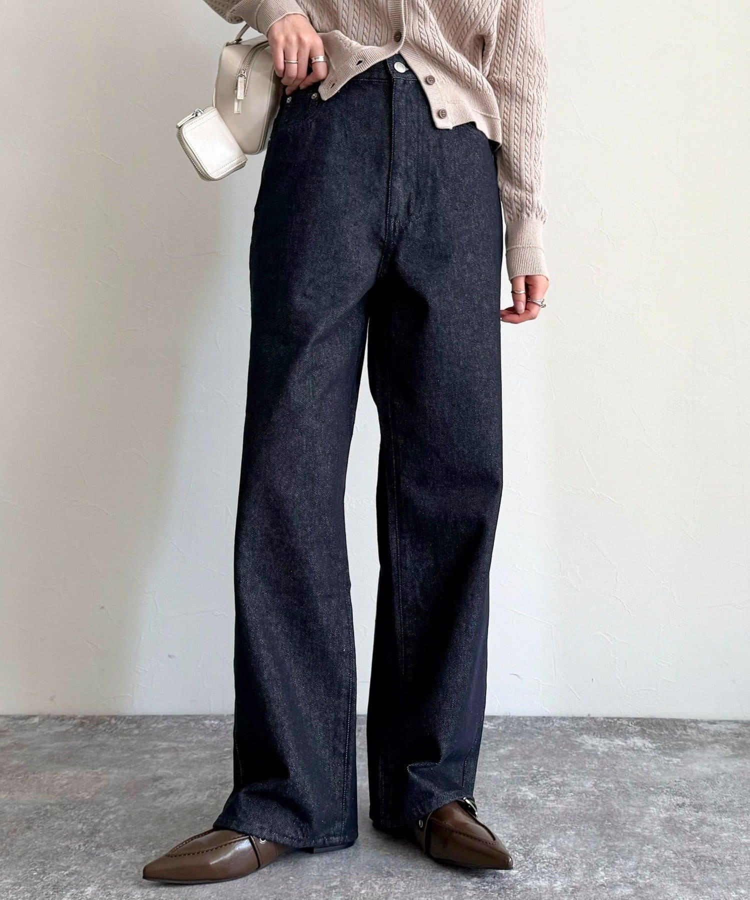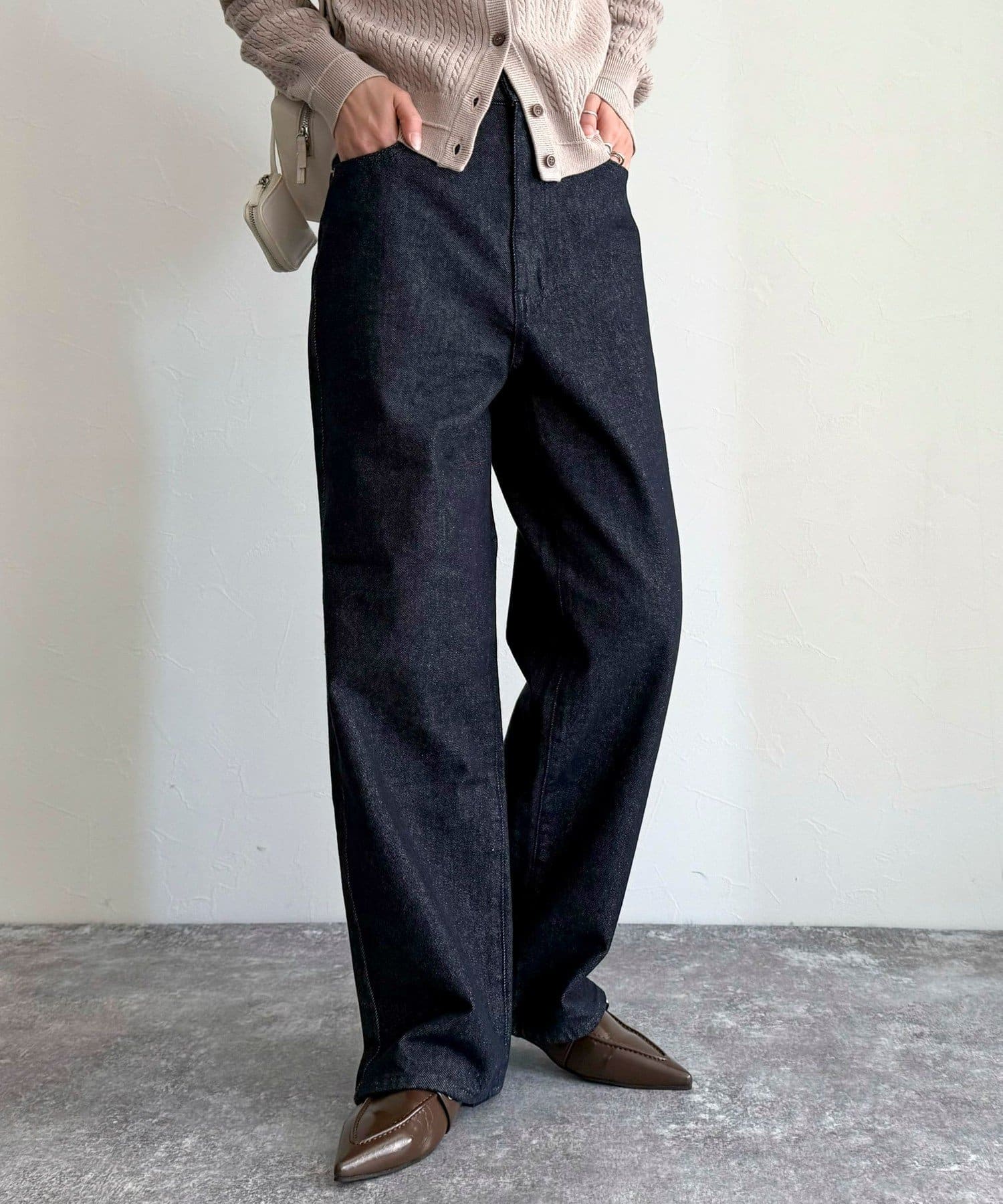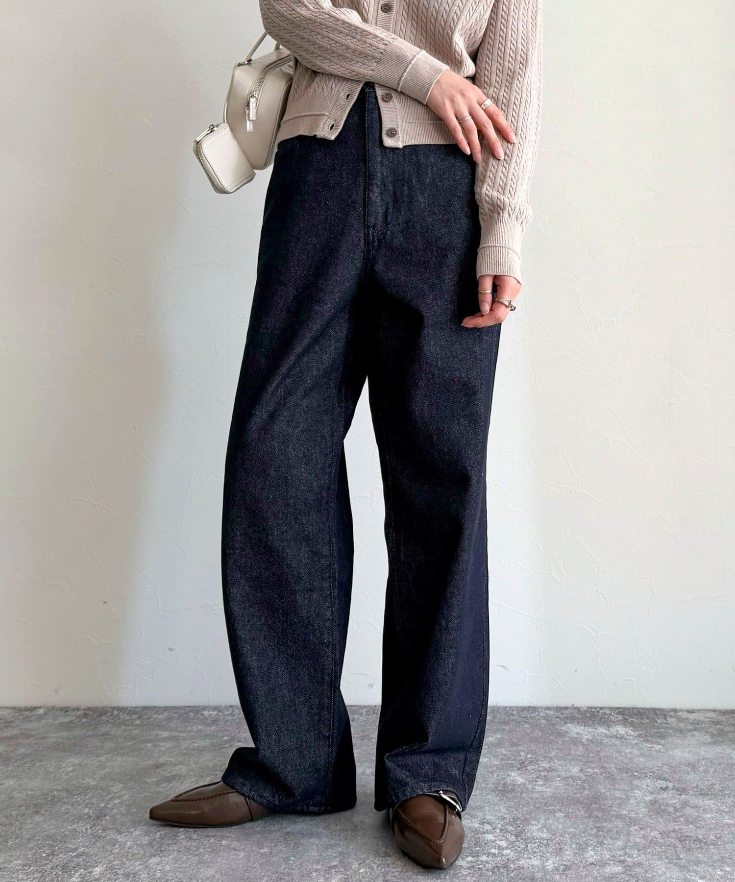 ・スタイルアップ効果抜群のシルエットが絶妙なテーパードデニムです