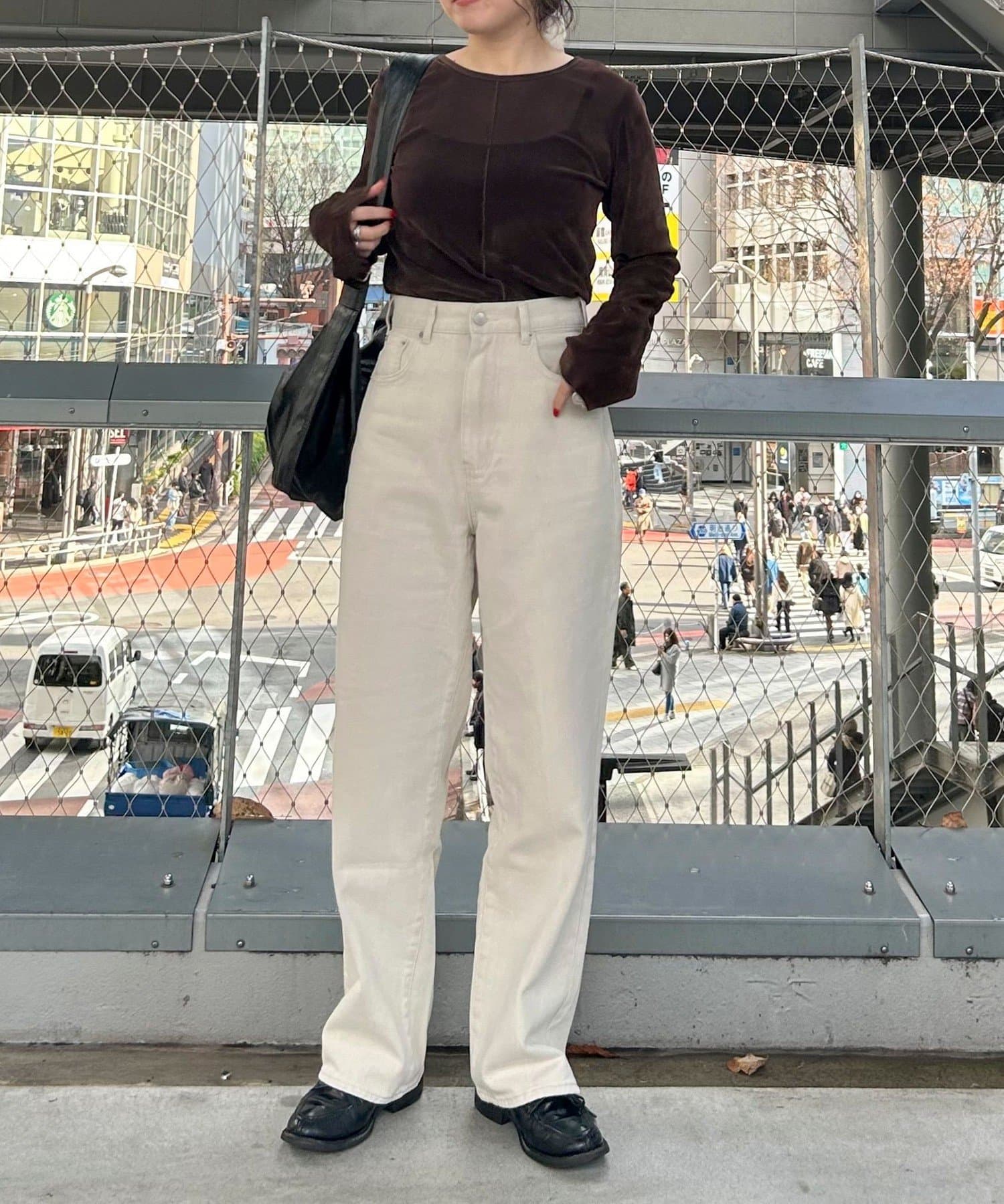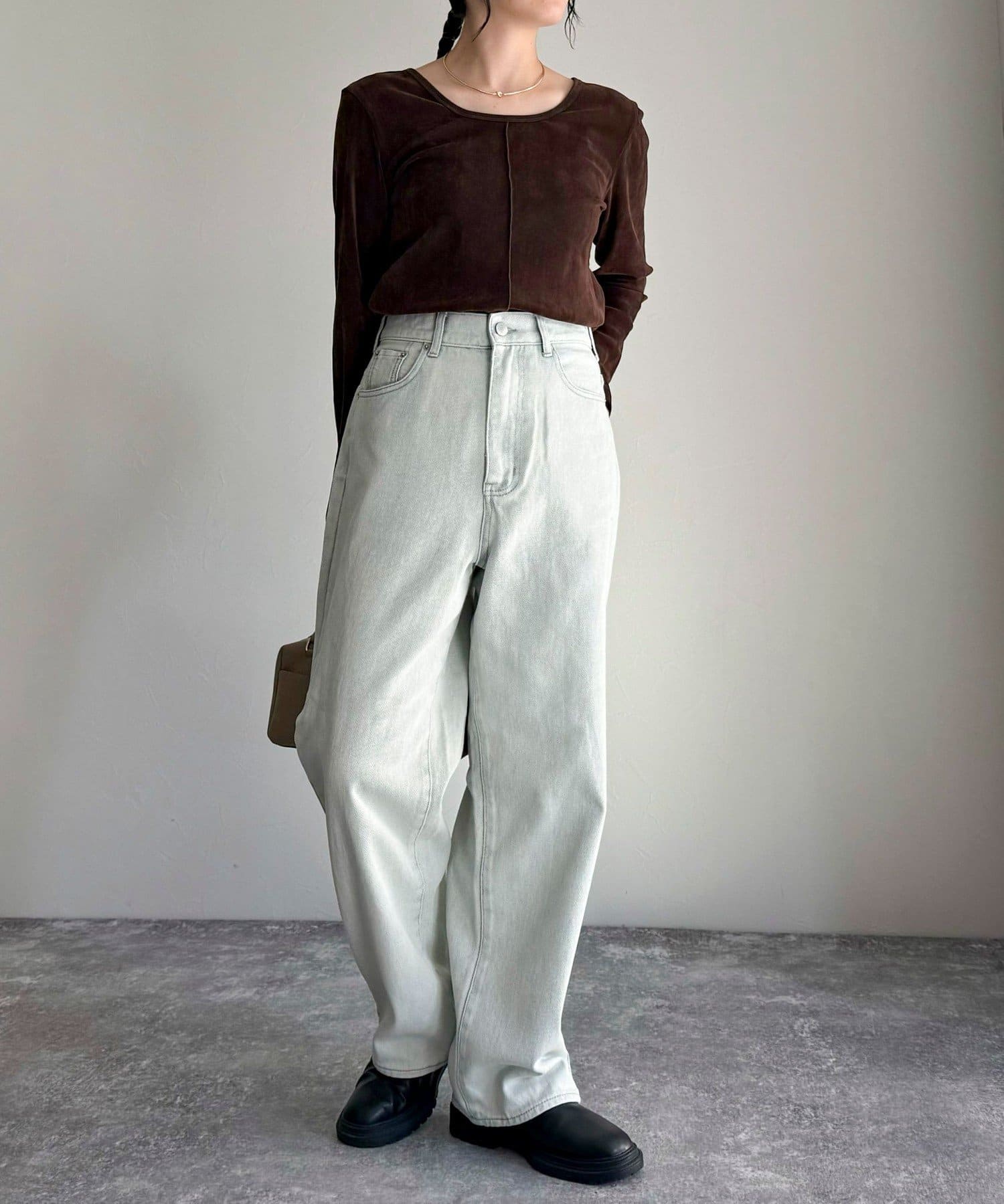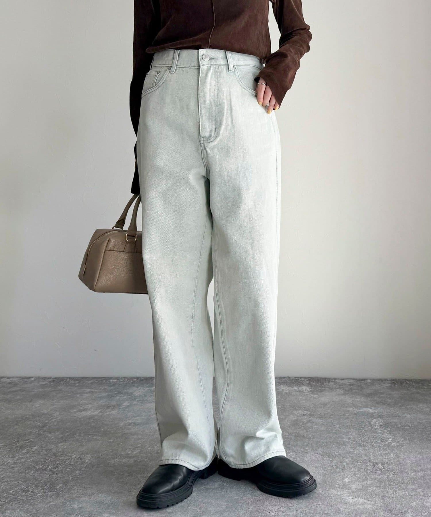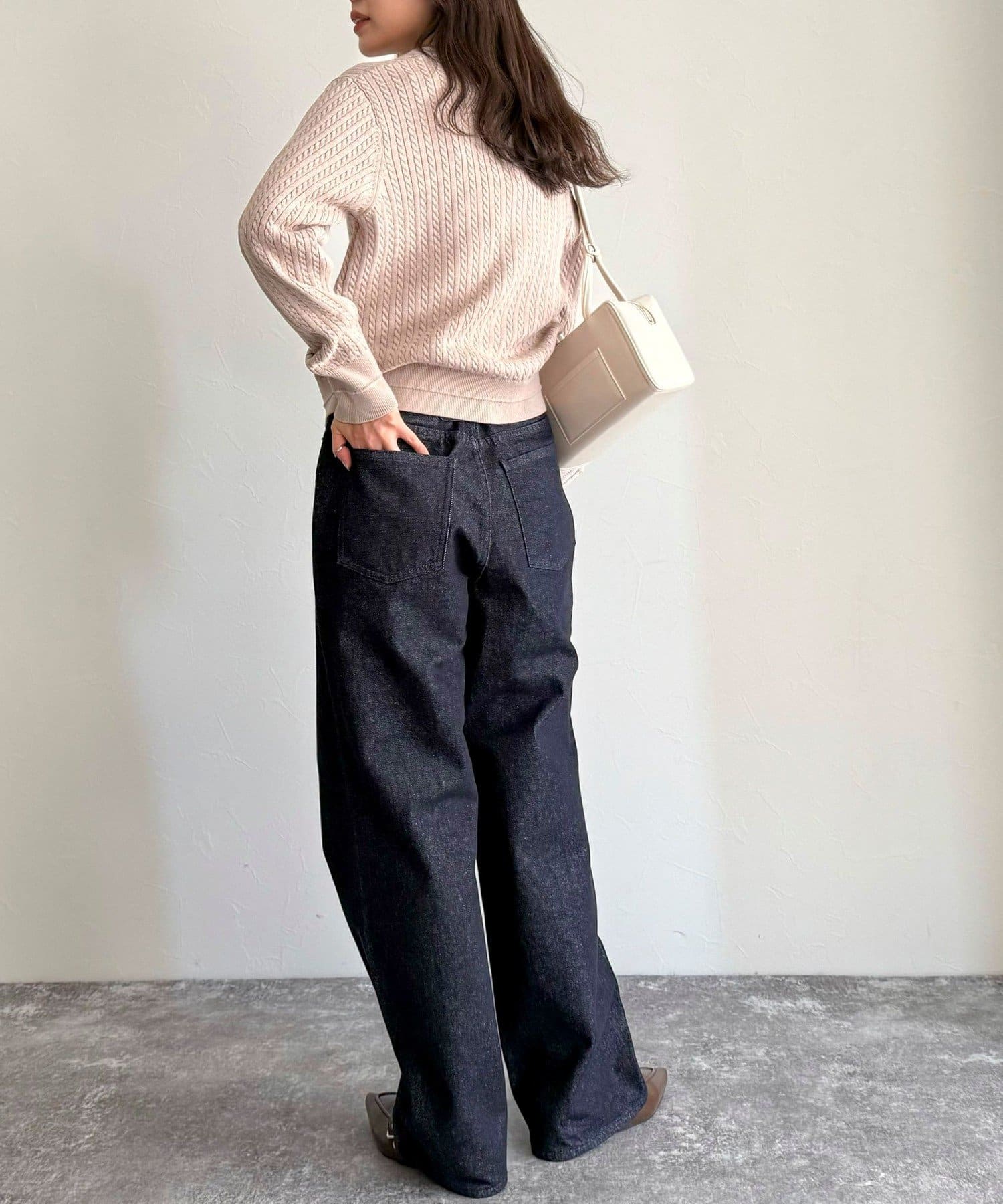 ・スタイルアップ効果抜群のシルエットが絶妙なテーパードデニムです