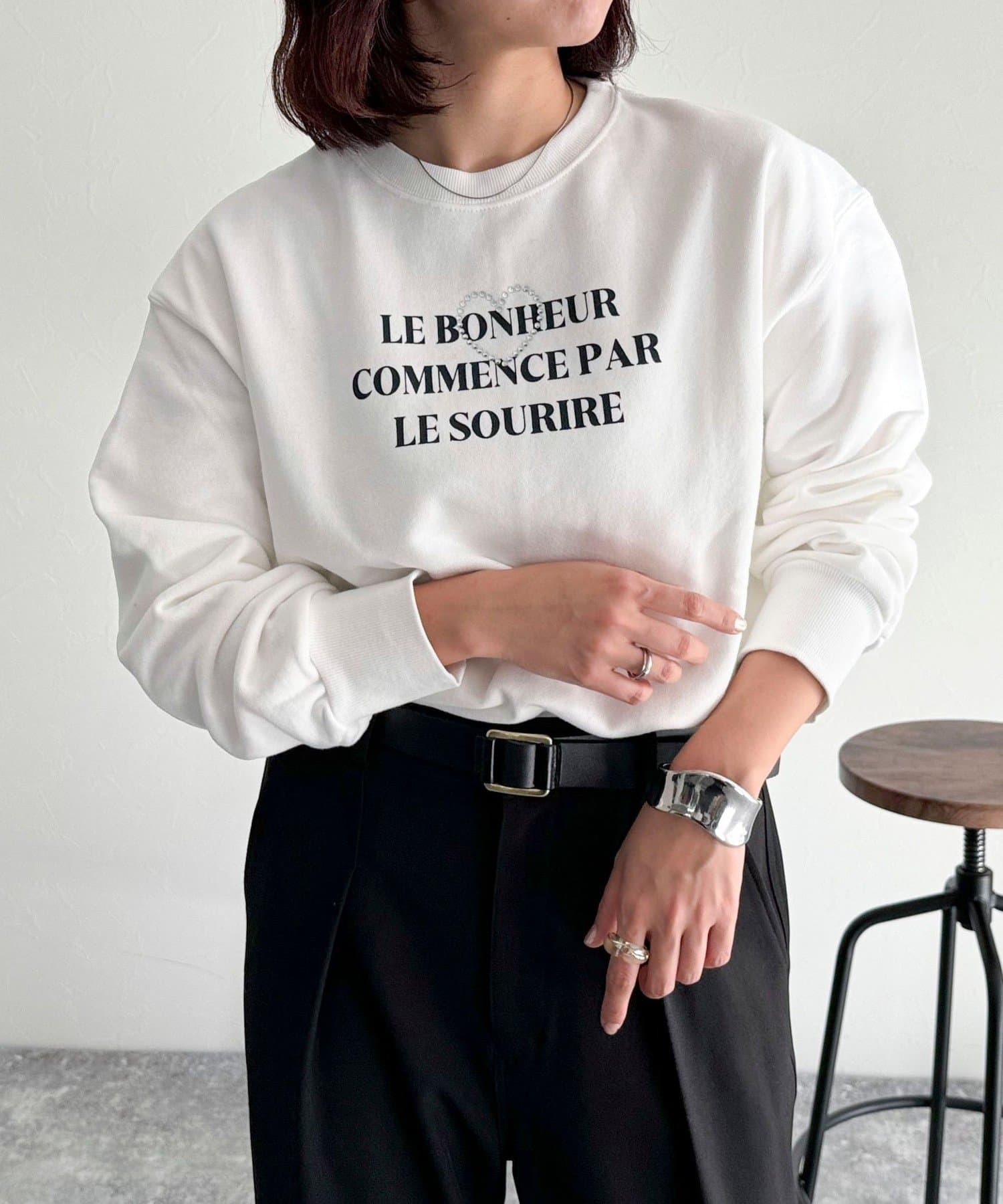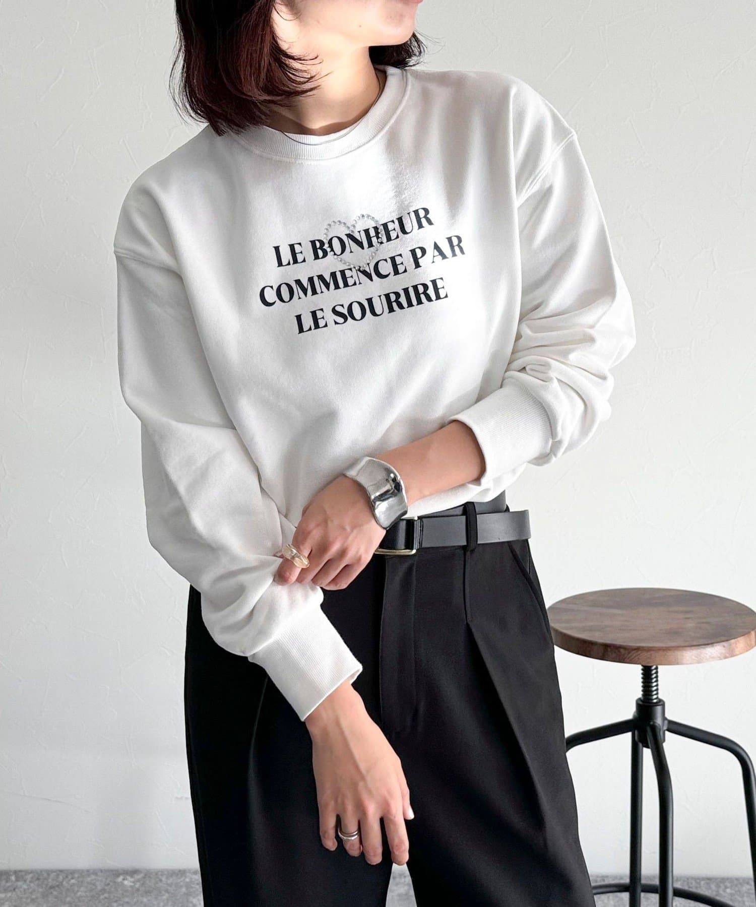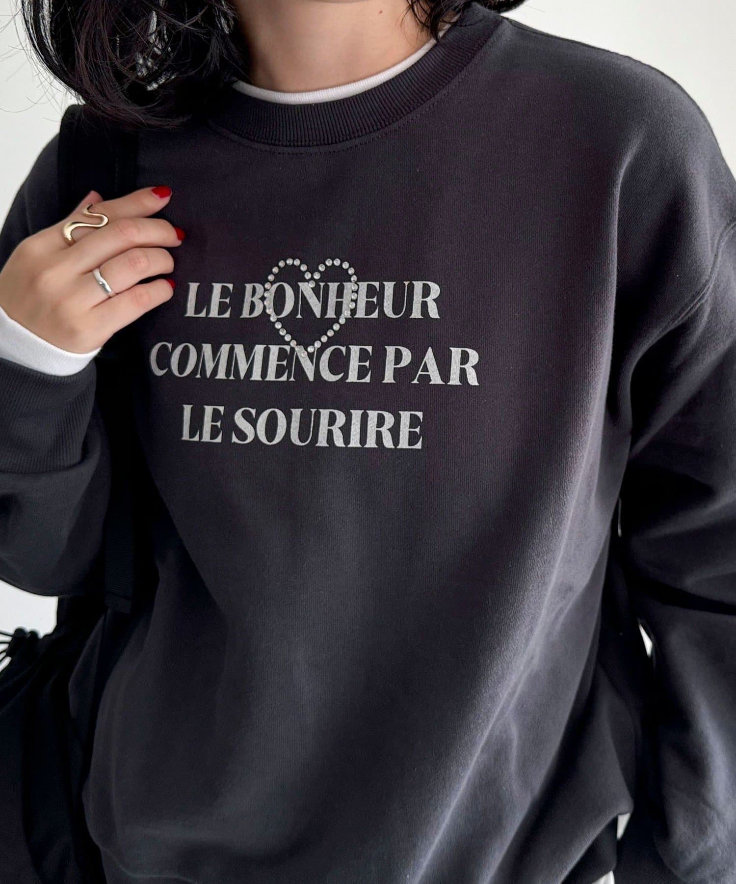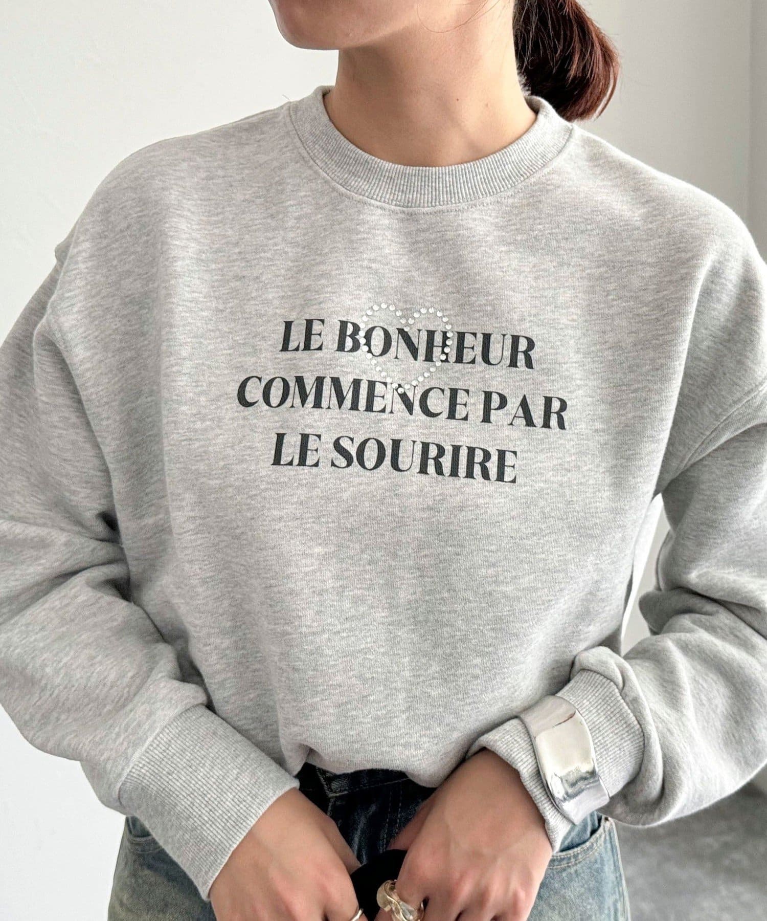 ・キラキラとしたハートのビジューがポイントのスウェットです