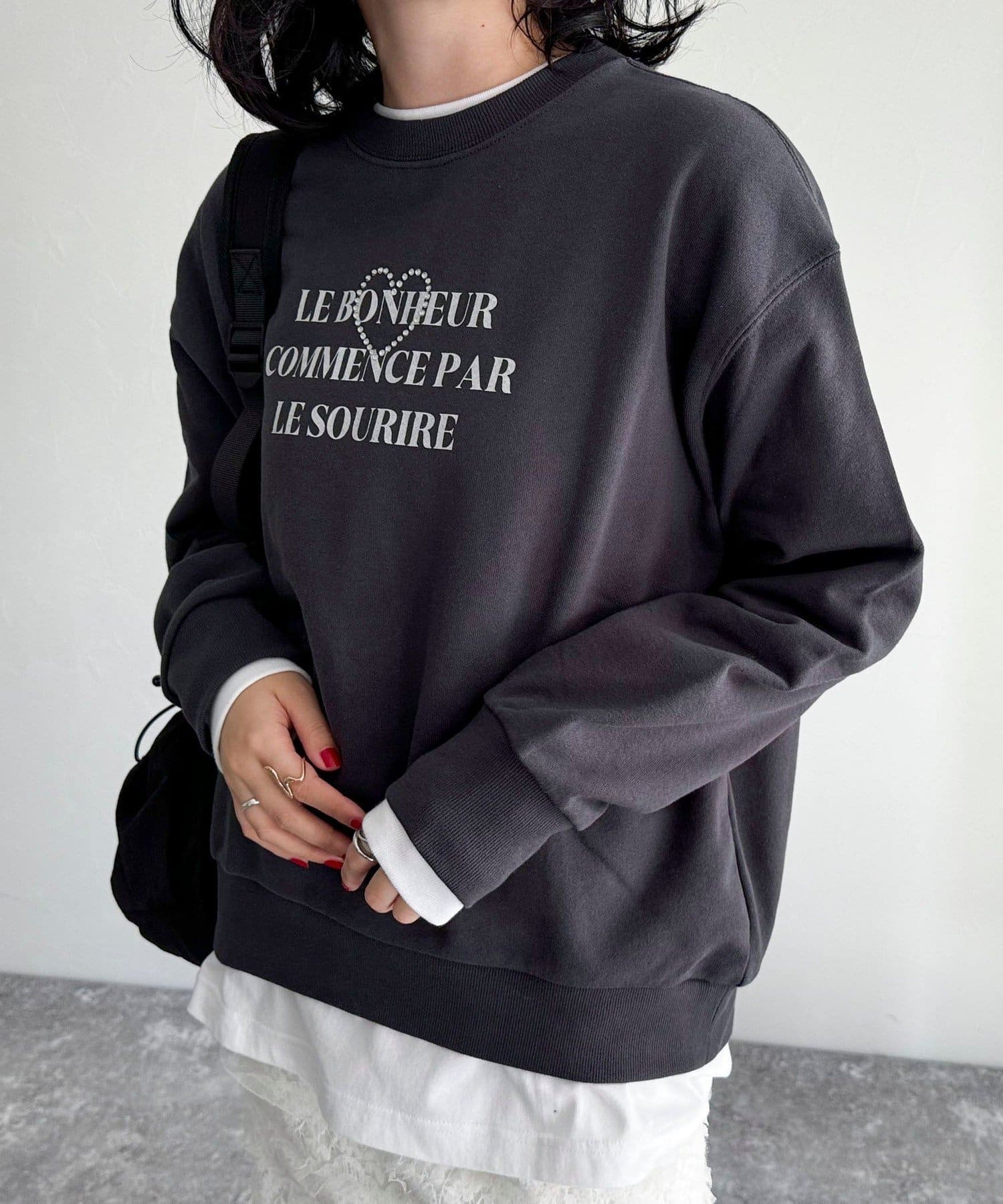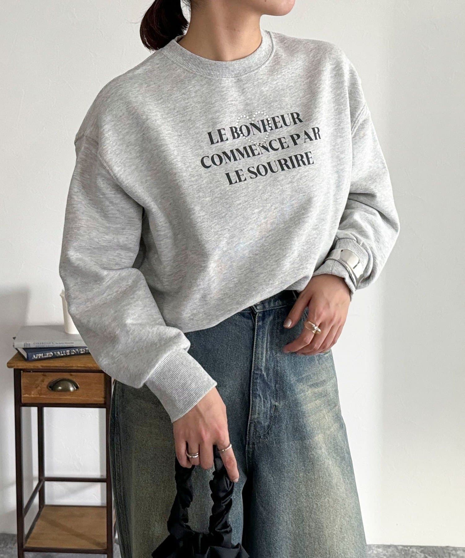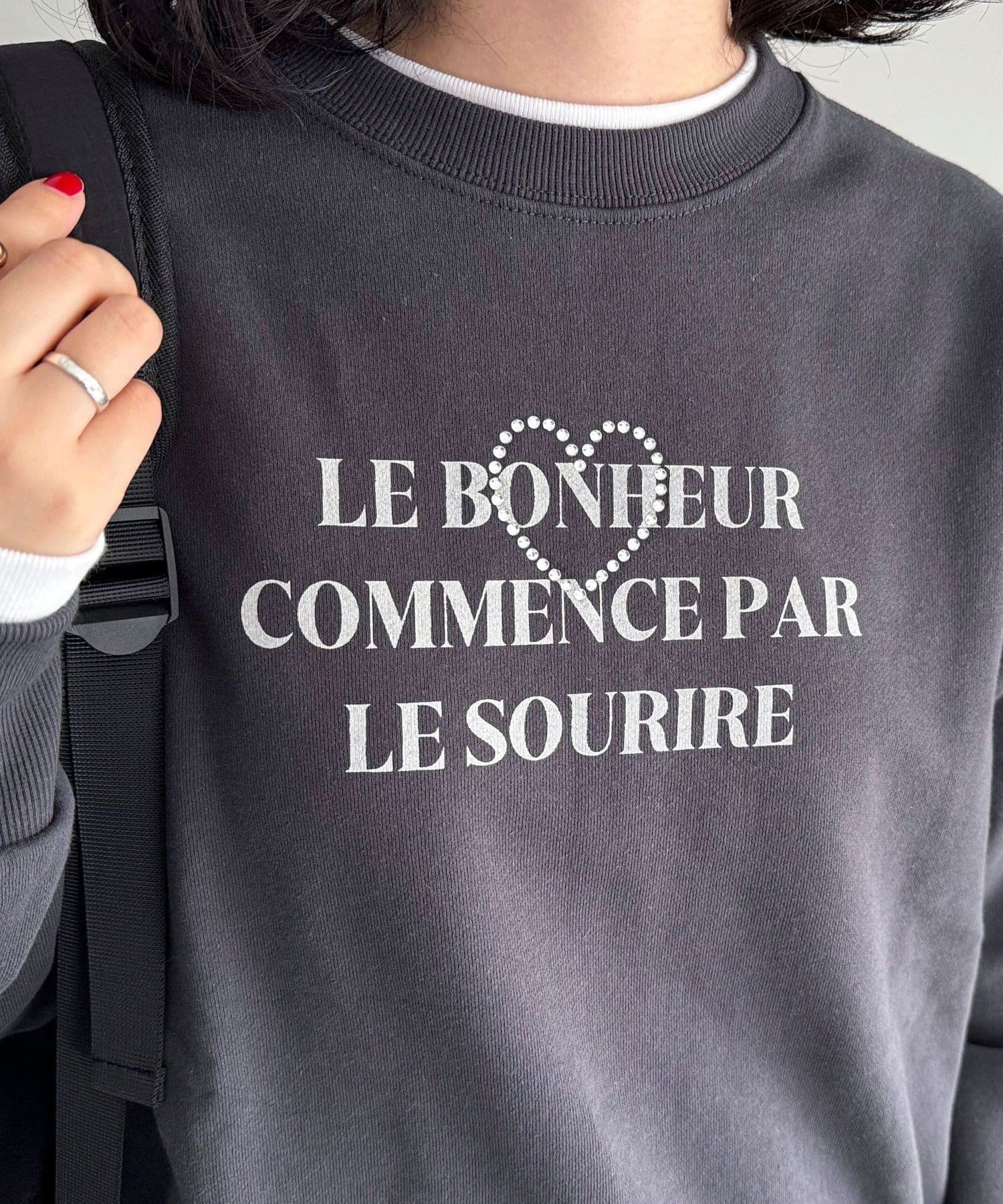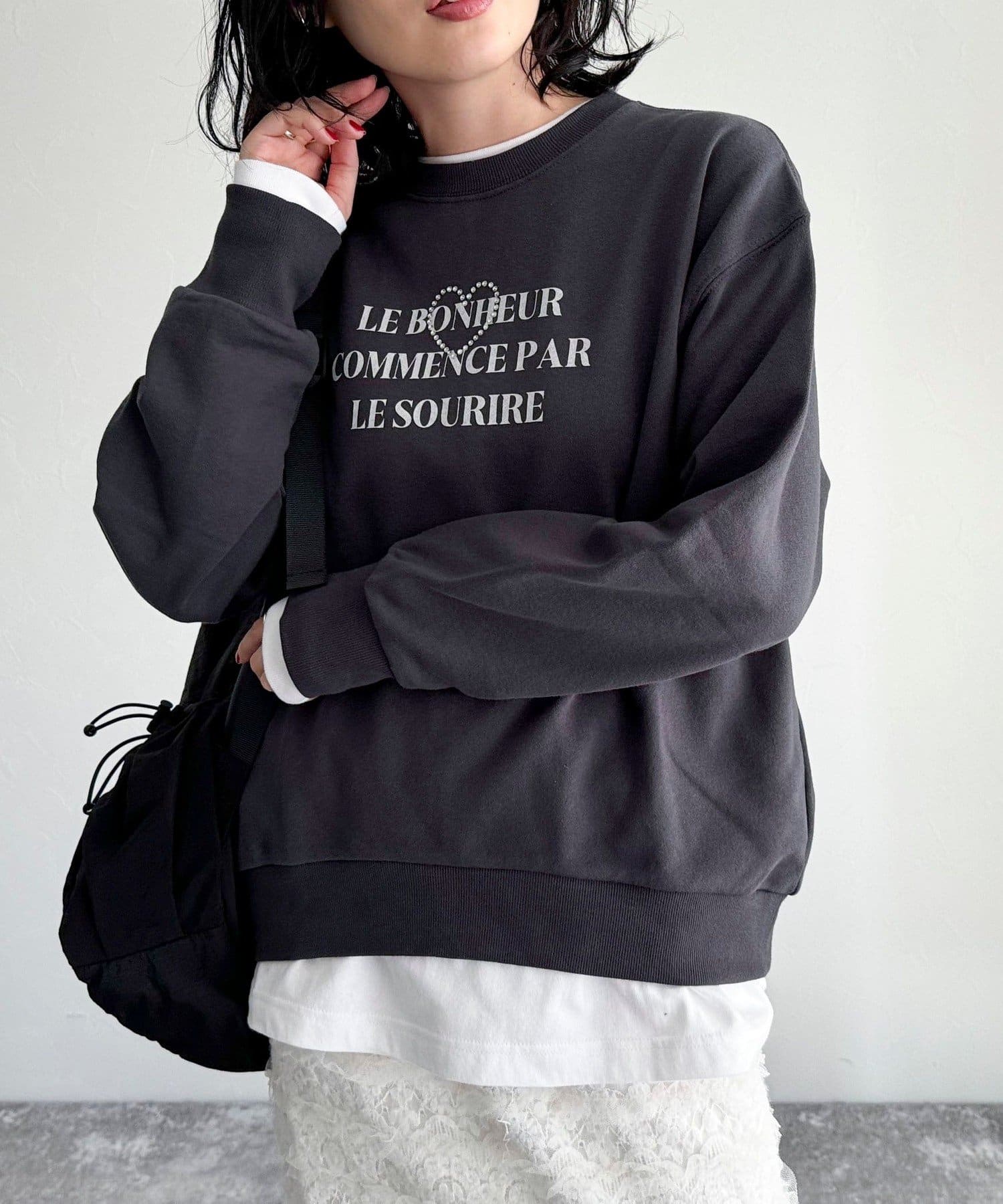・キラキラとしたハートのビジューがポイントのスウェットです