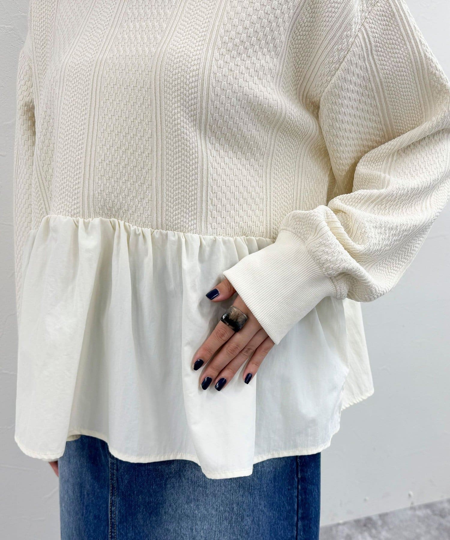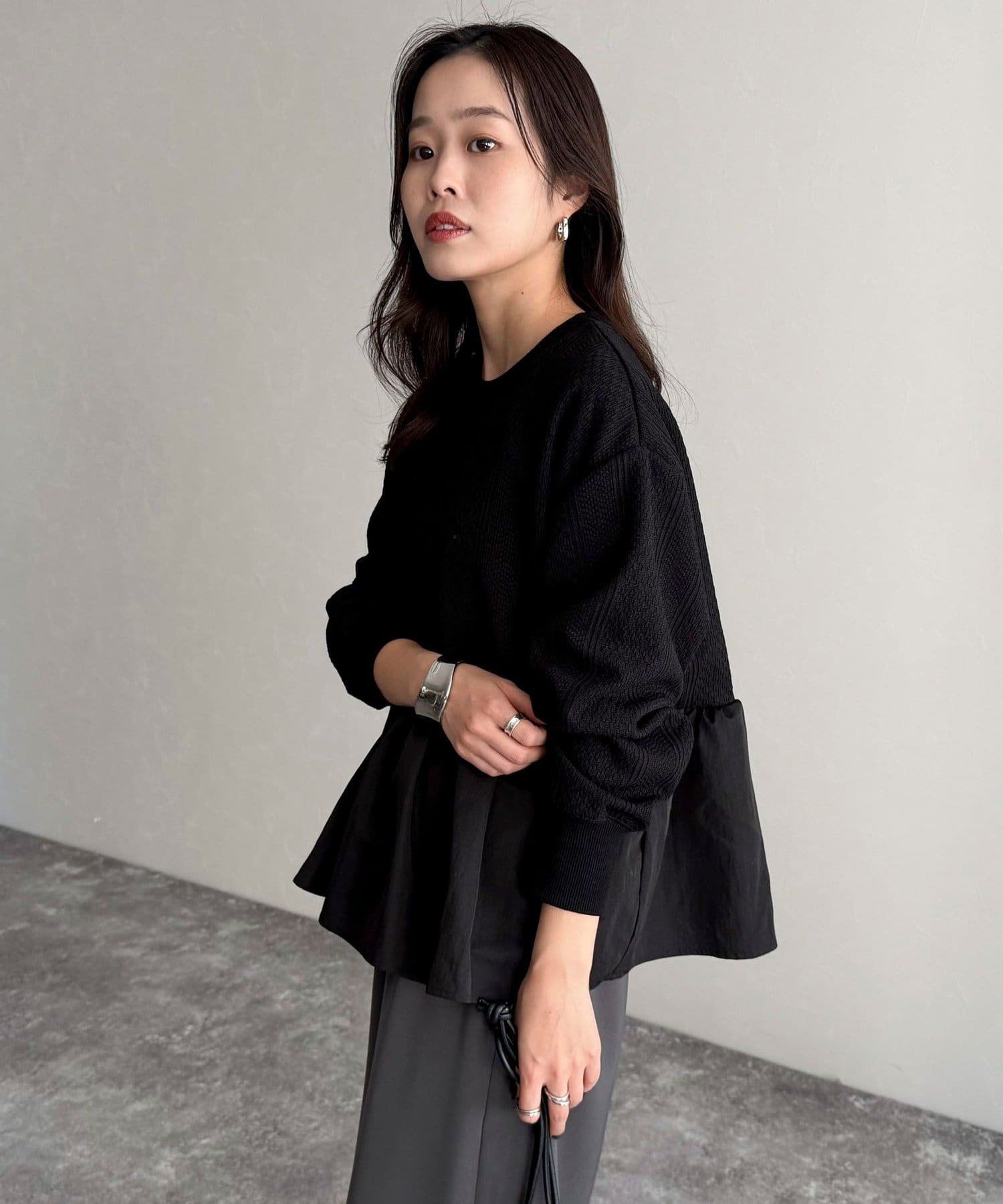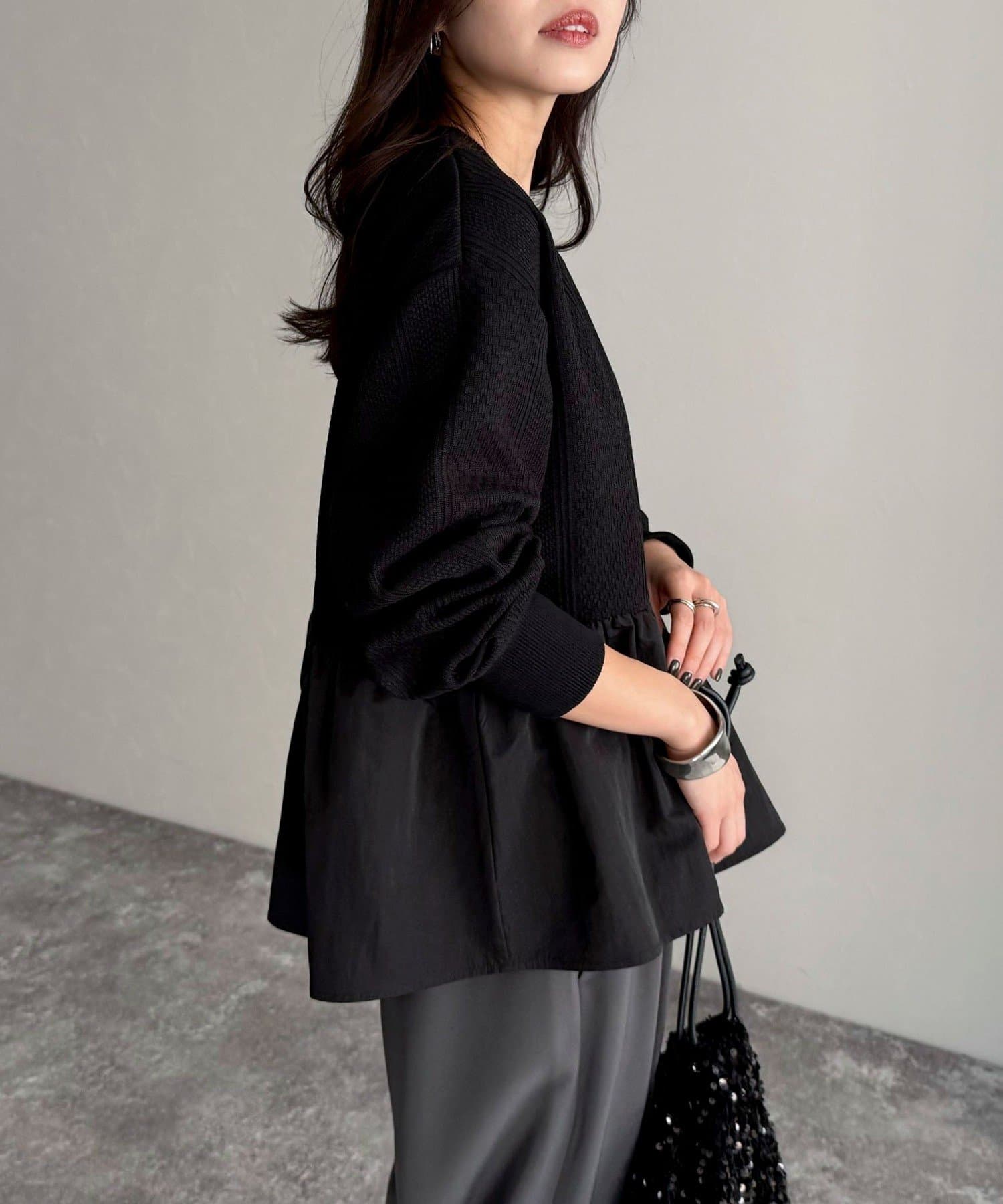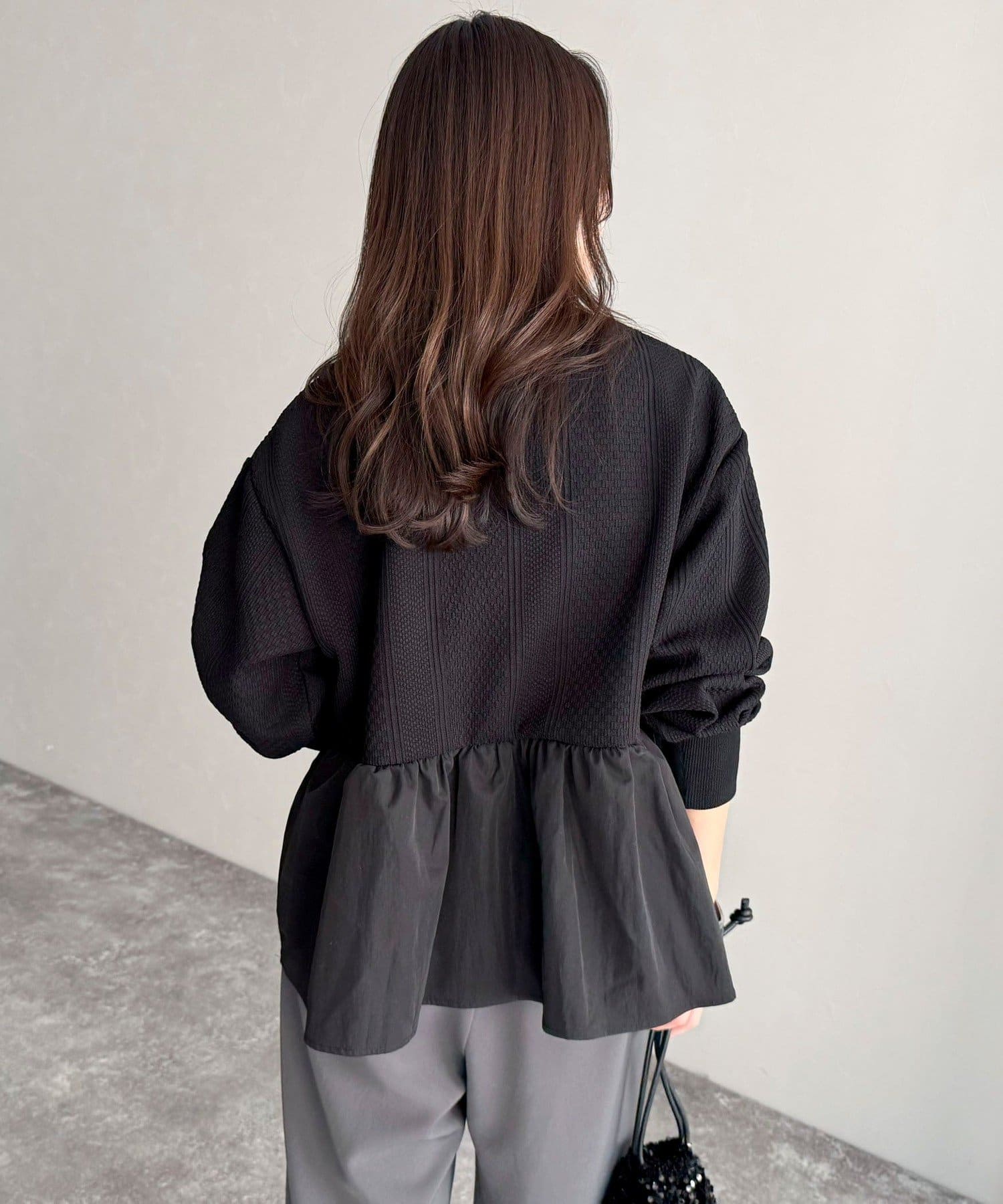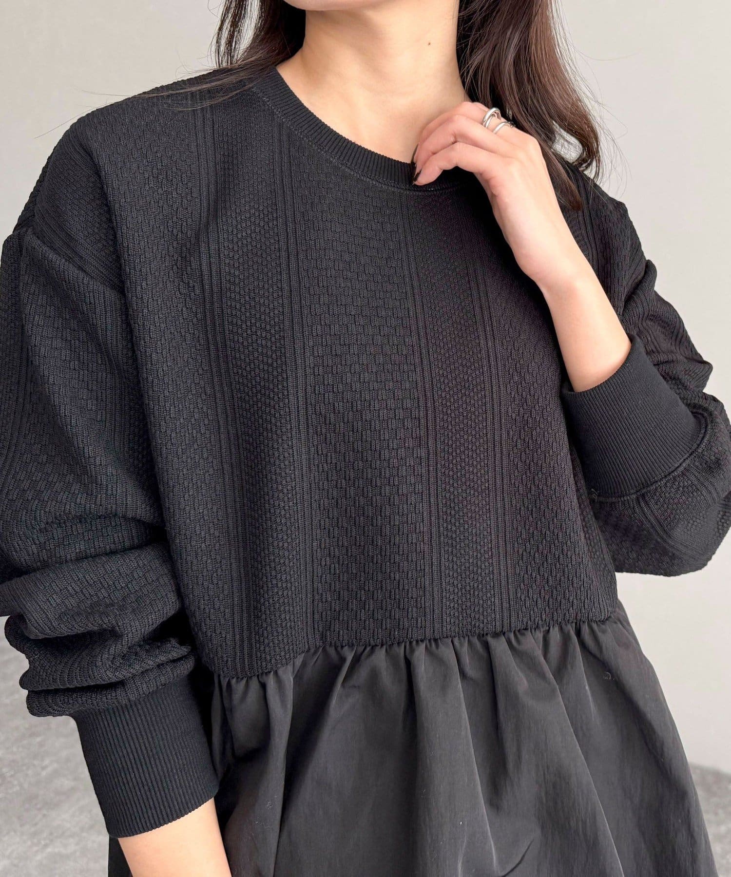 ・異素材のドッキングデザインがスタイリングにメリハリ感をプラスしてくれるプルオーバーです