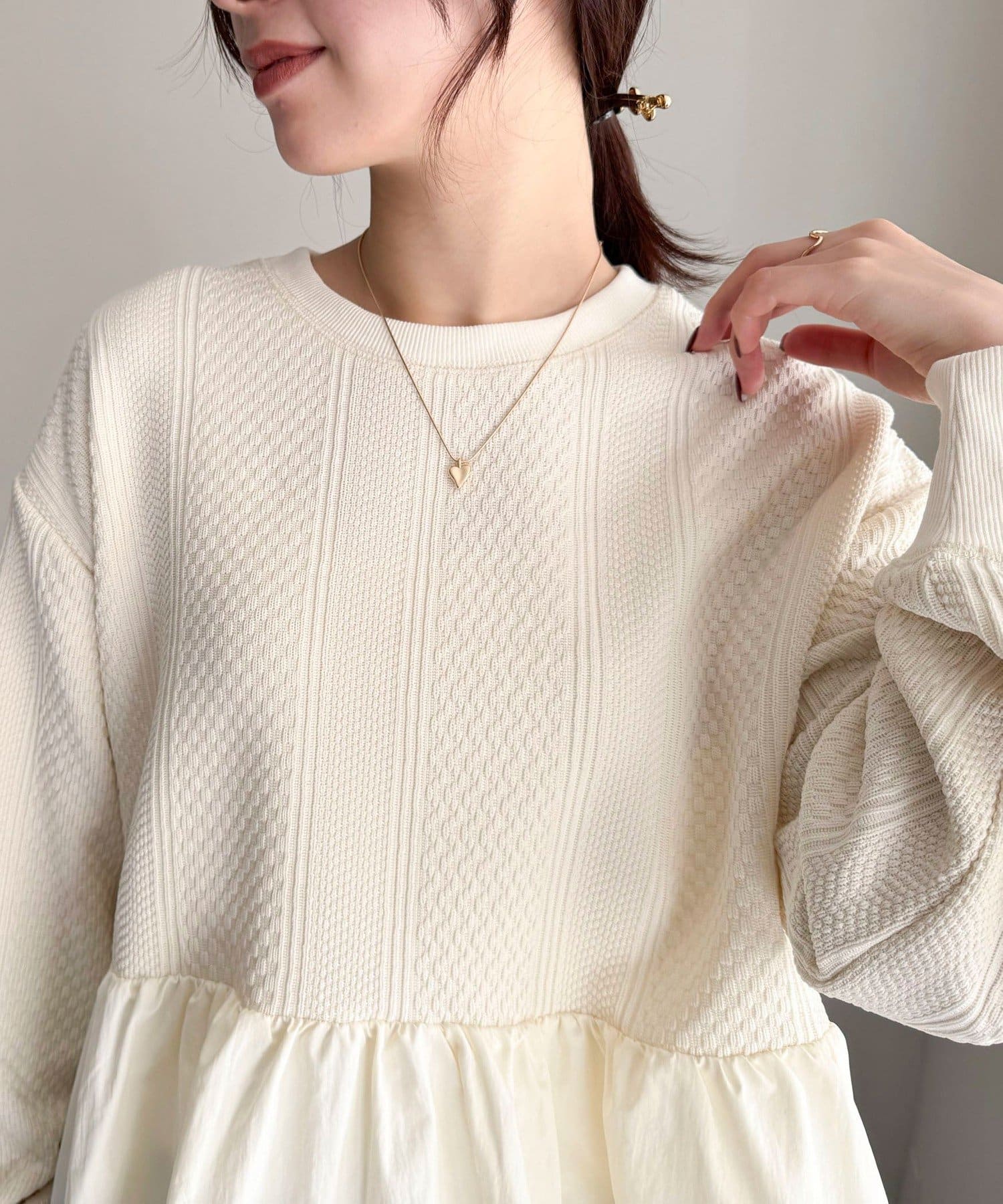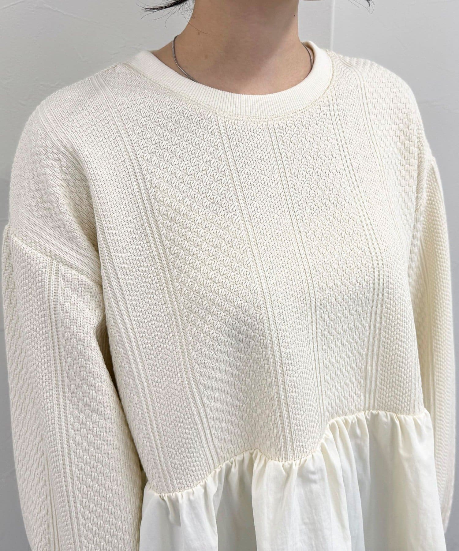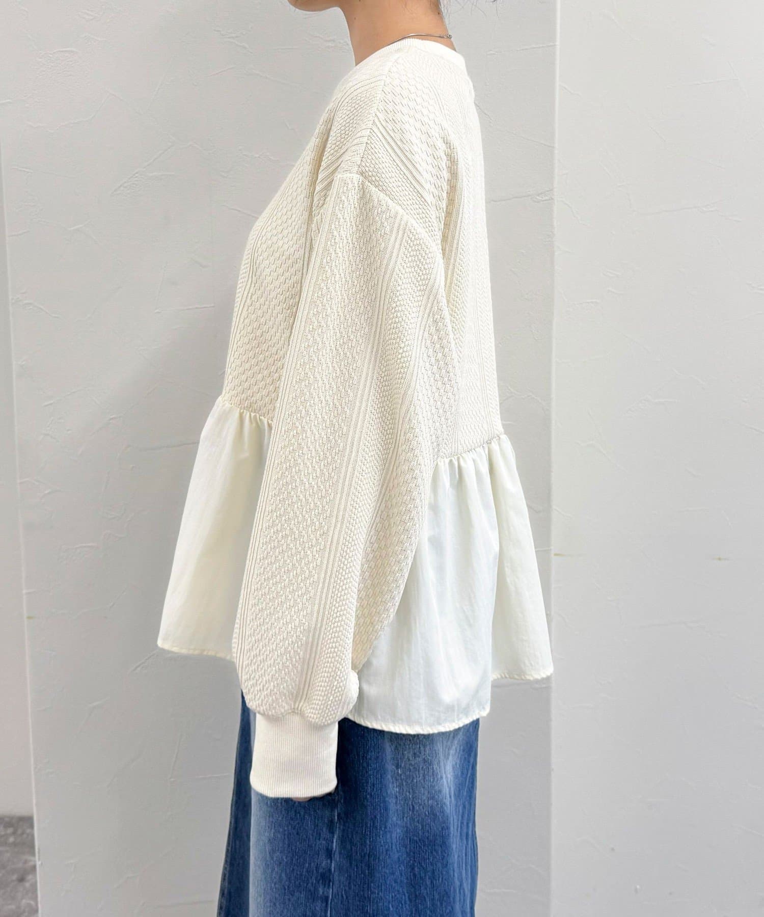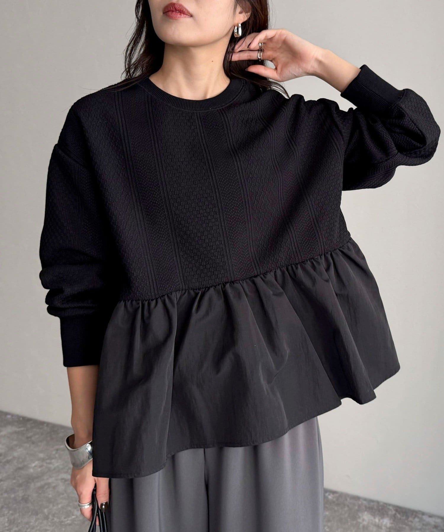 ・異素材のドッキングデザインがスタイリングにメリハリ感をプラスしてくれるプルオーバーです