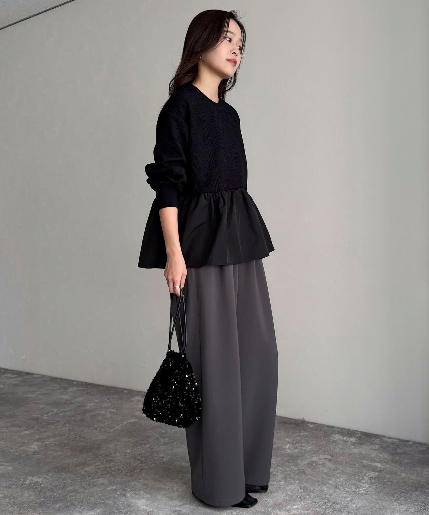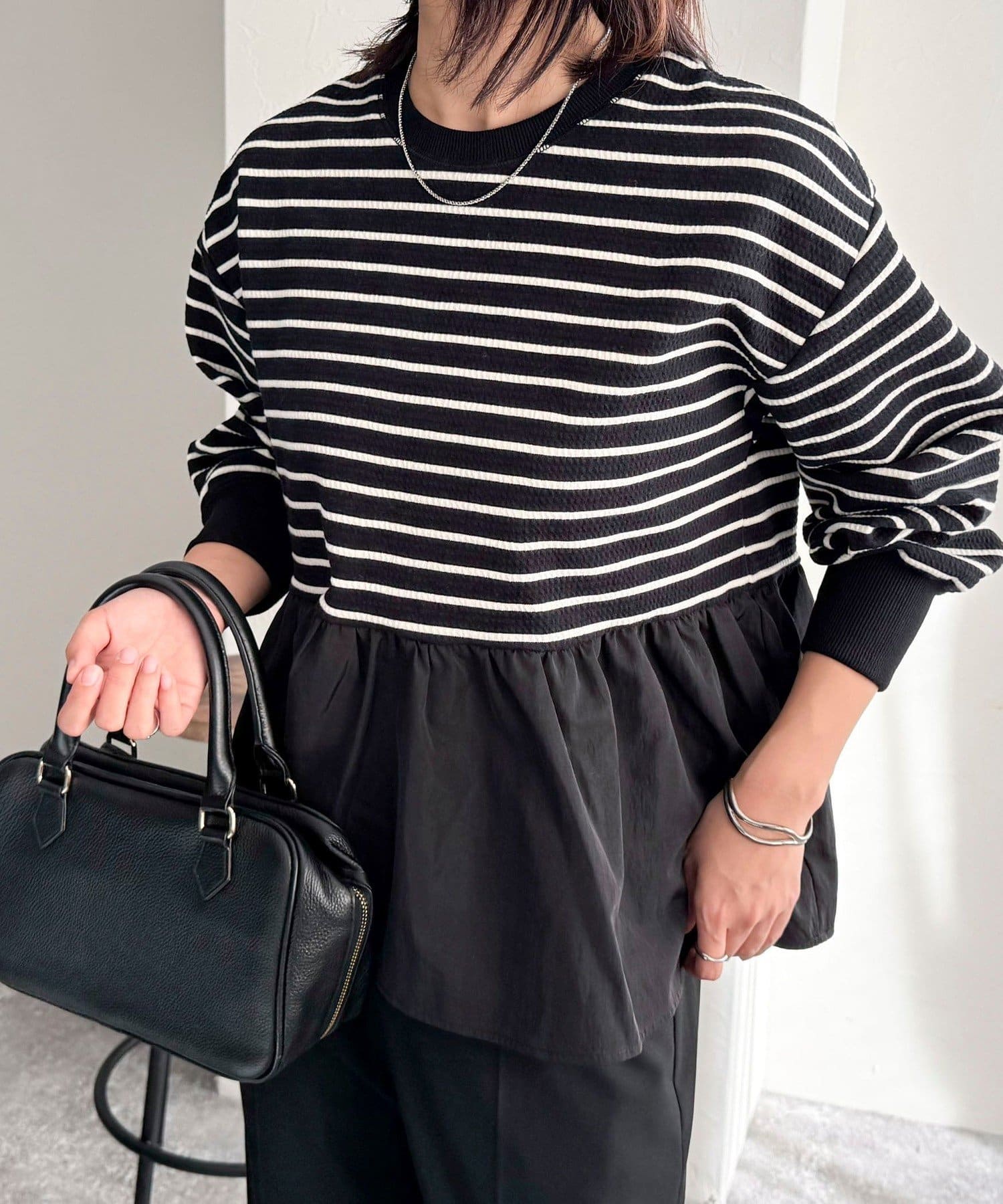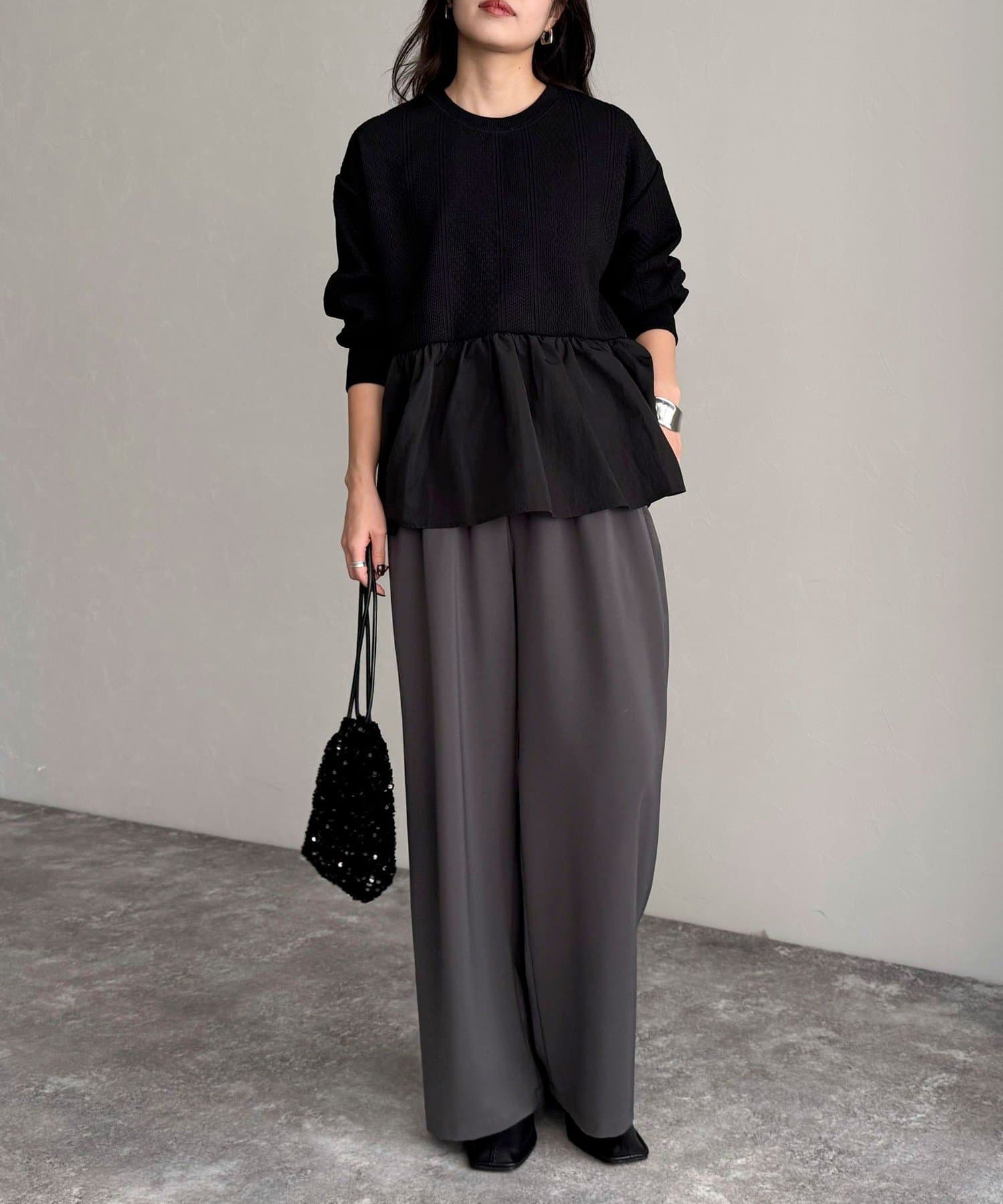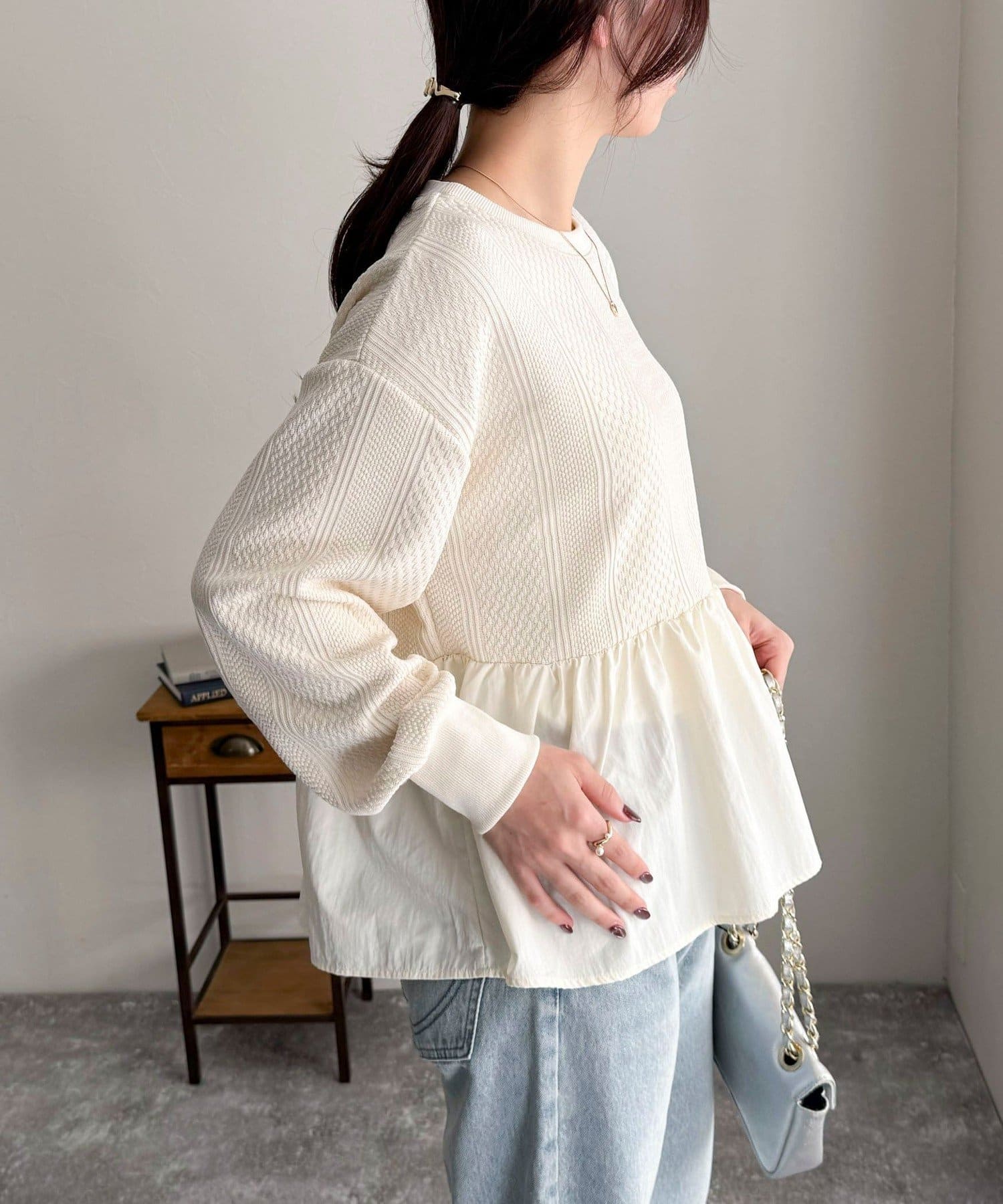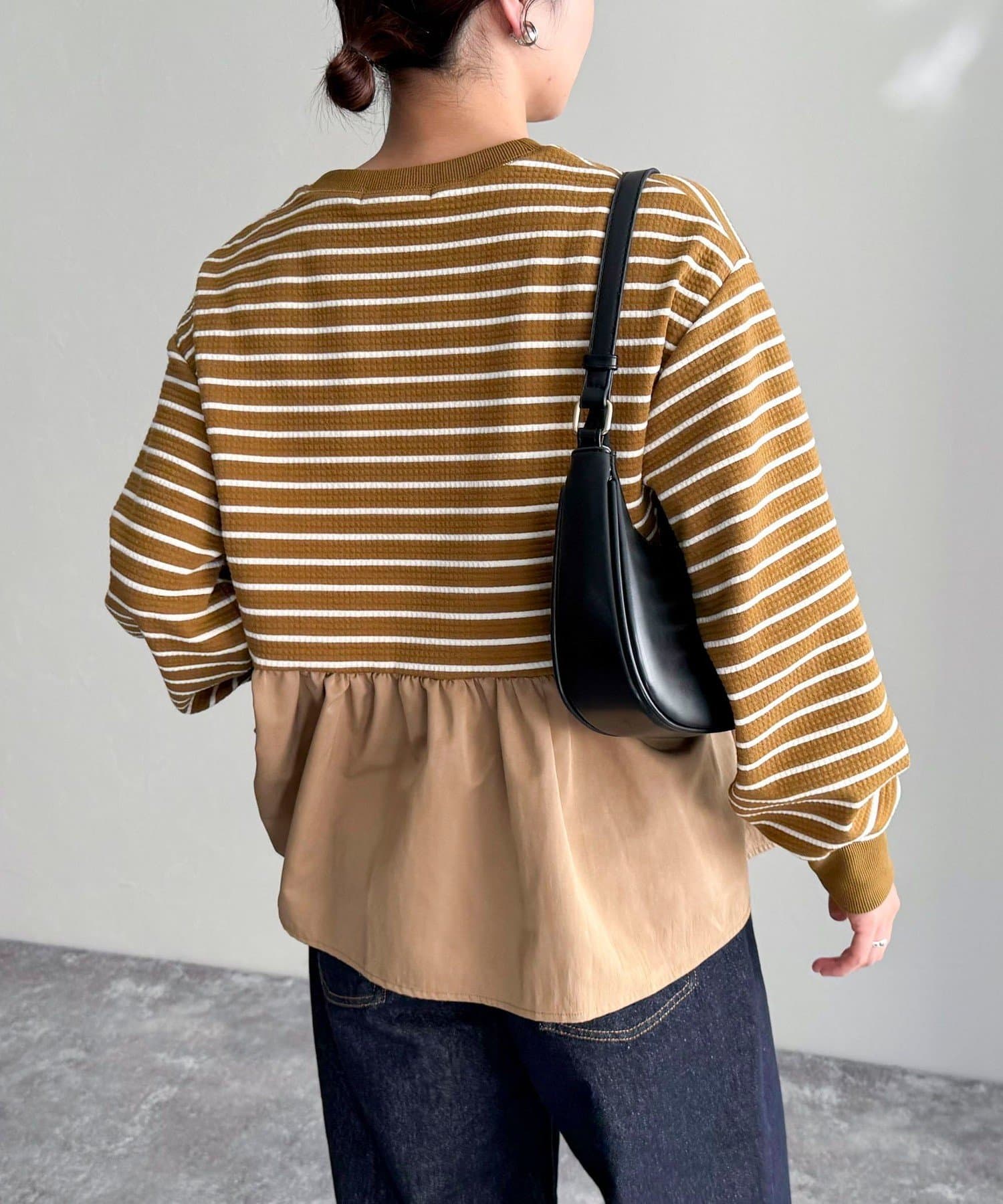 ・異素材のドッキングデザインがスタイリングにメリハリ感をプラスしてくれるプルオーバーです