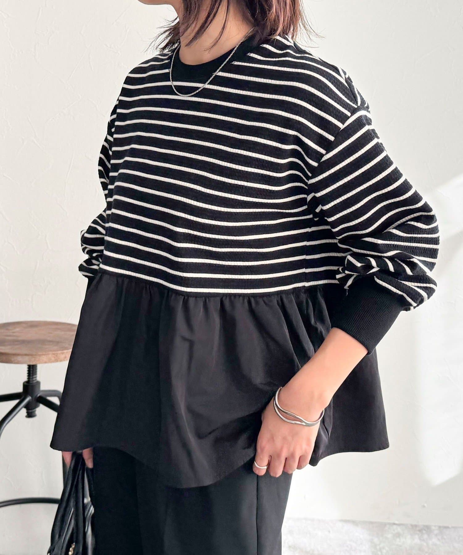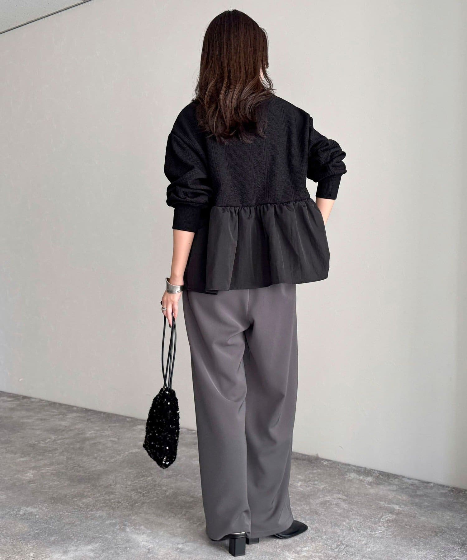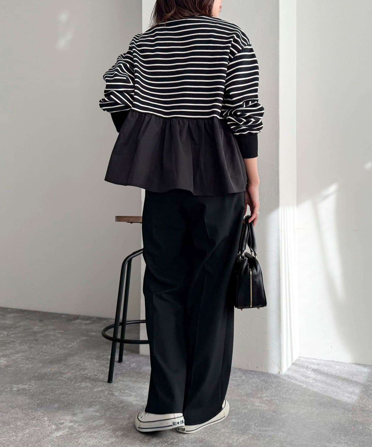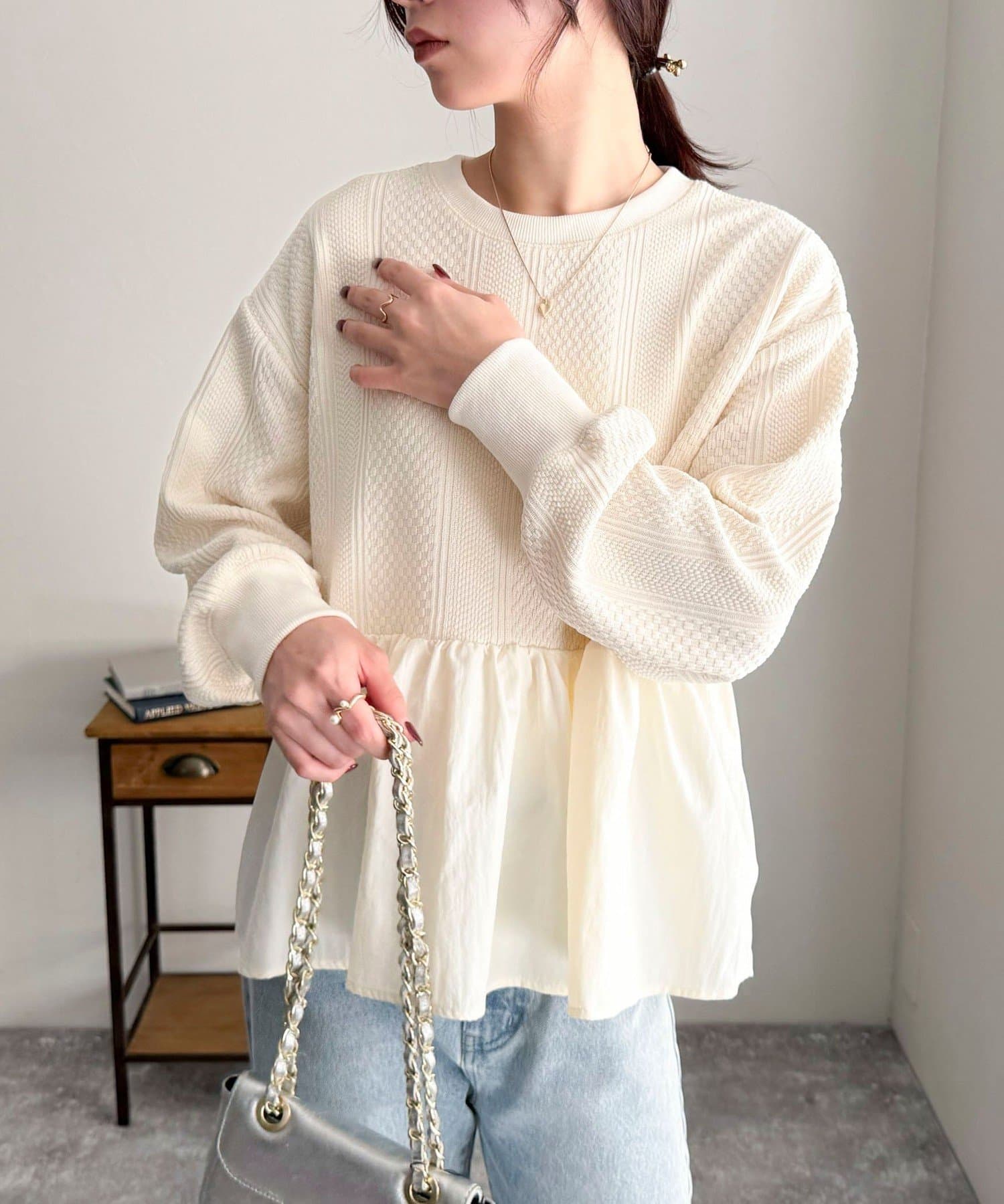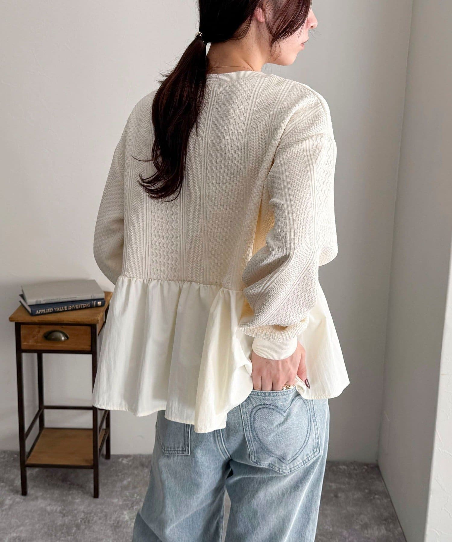 ・異素材のドッキングデザインがスタイリングにメリハリ感をプラスしてくれるプルオーバーです